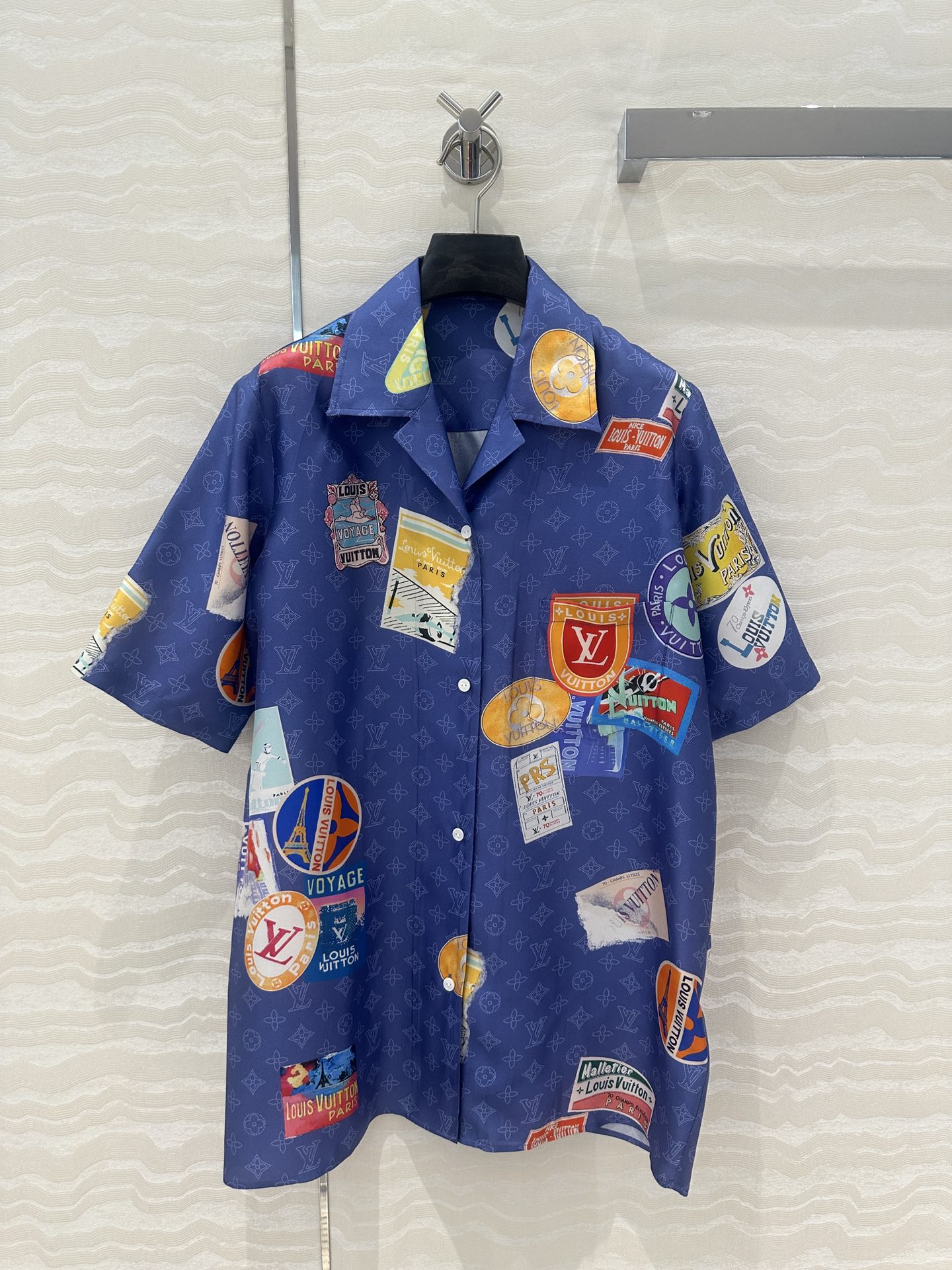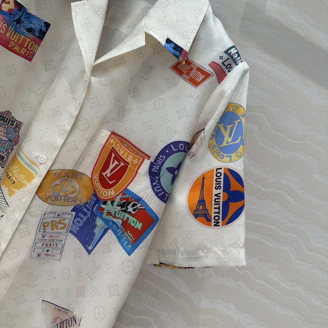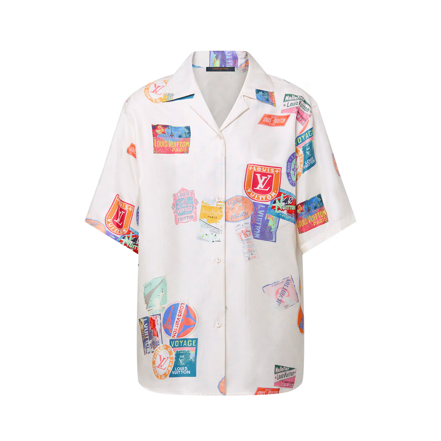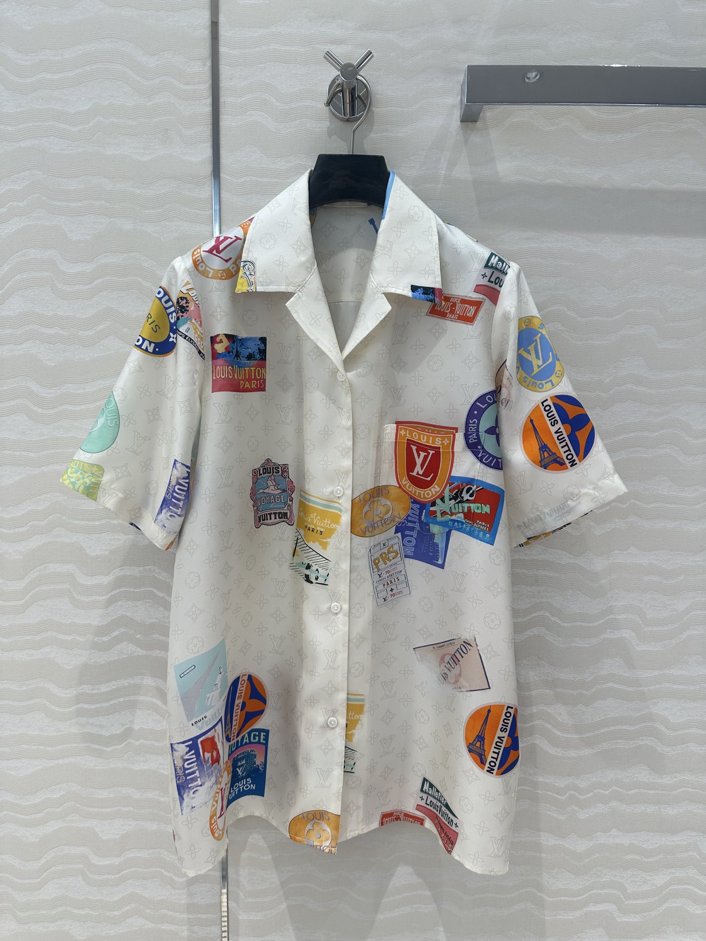 NIGO Louis Vuitton Women's Summer Badge Print Round Neck Single Button Silk Short Sleeve Shirt #nigo76991