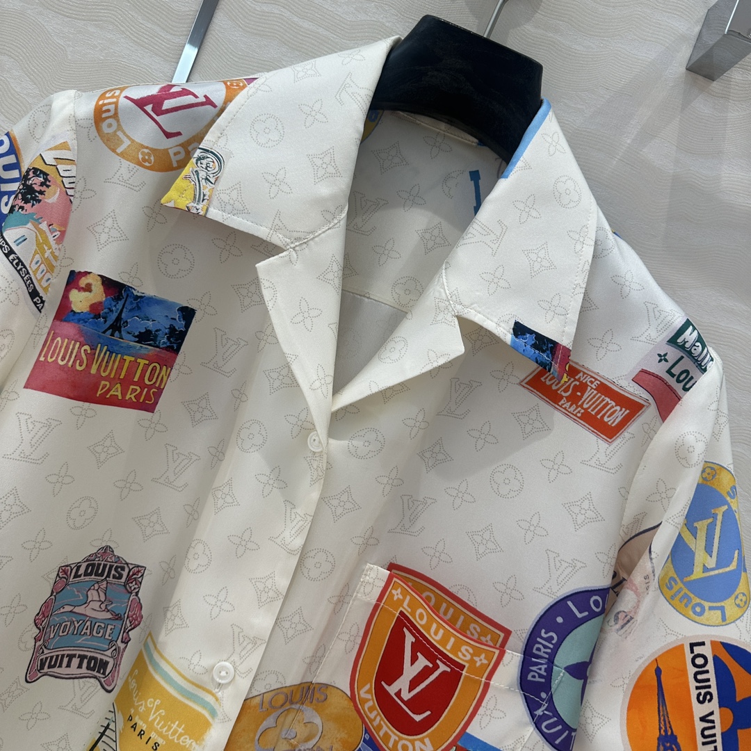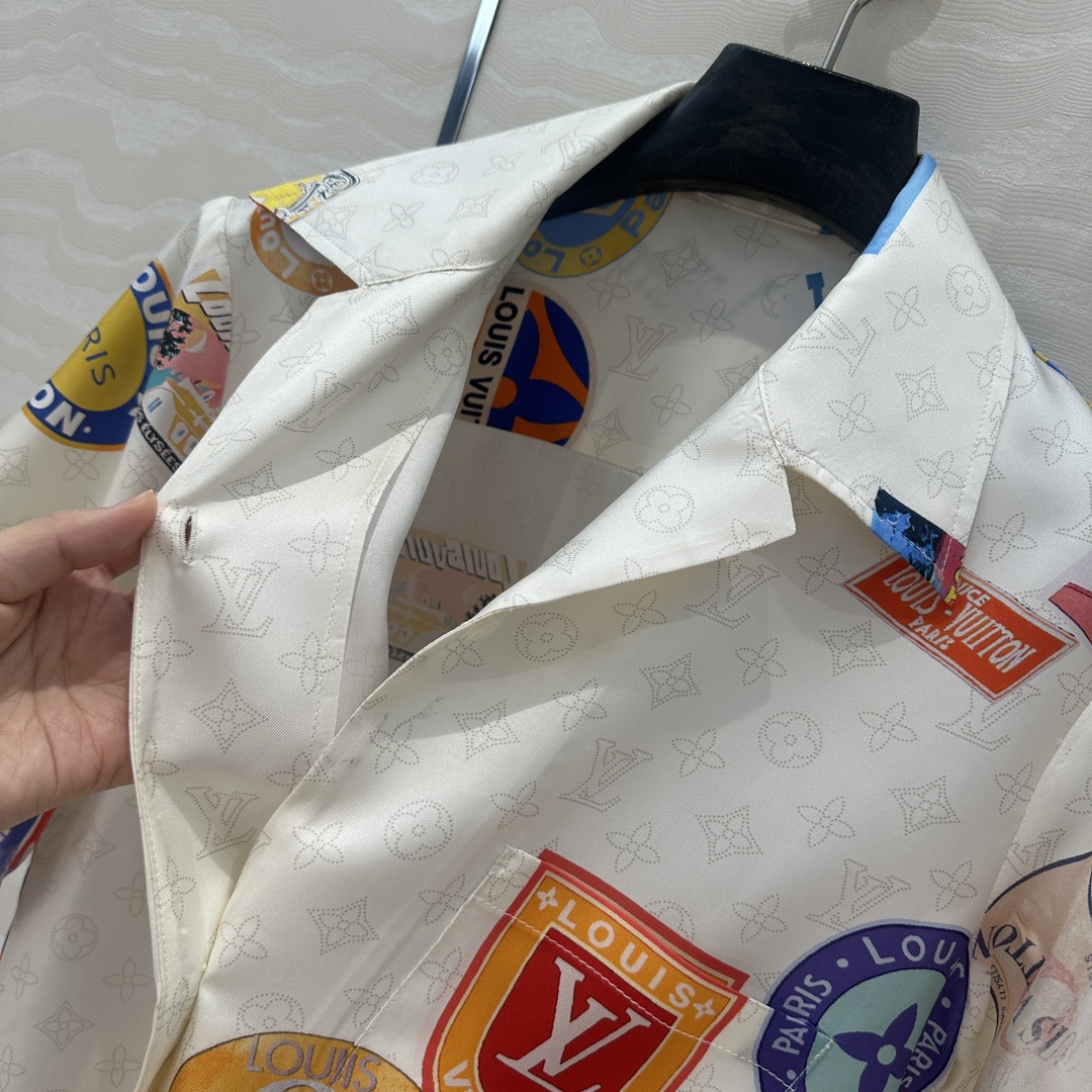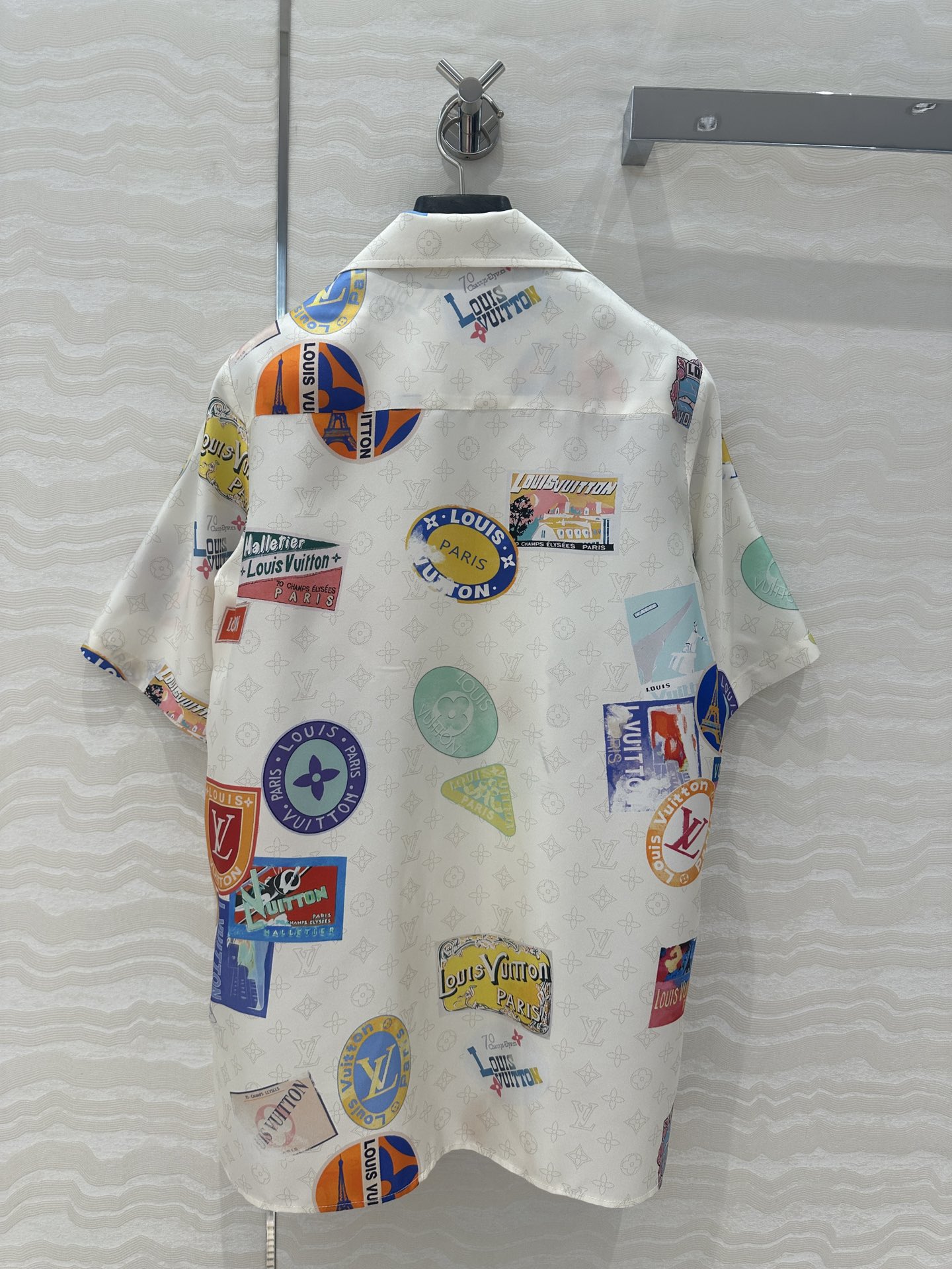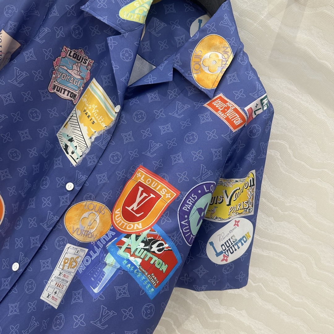 NIGO Louis Vuitton Women's Summer Badge Print Round Neck Single Button Silk Short Sleeve Shirt #nigo76991