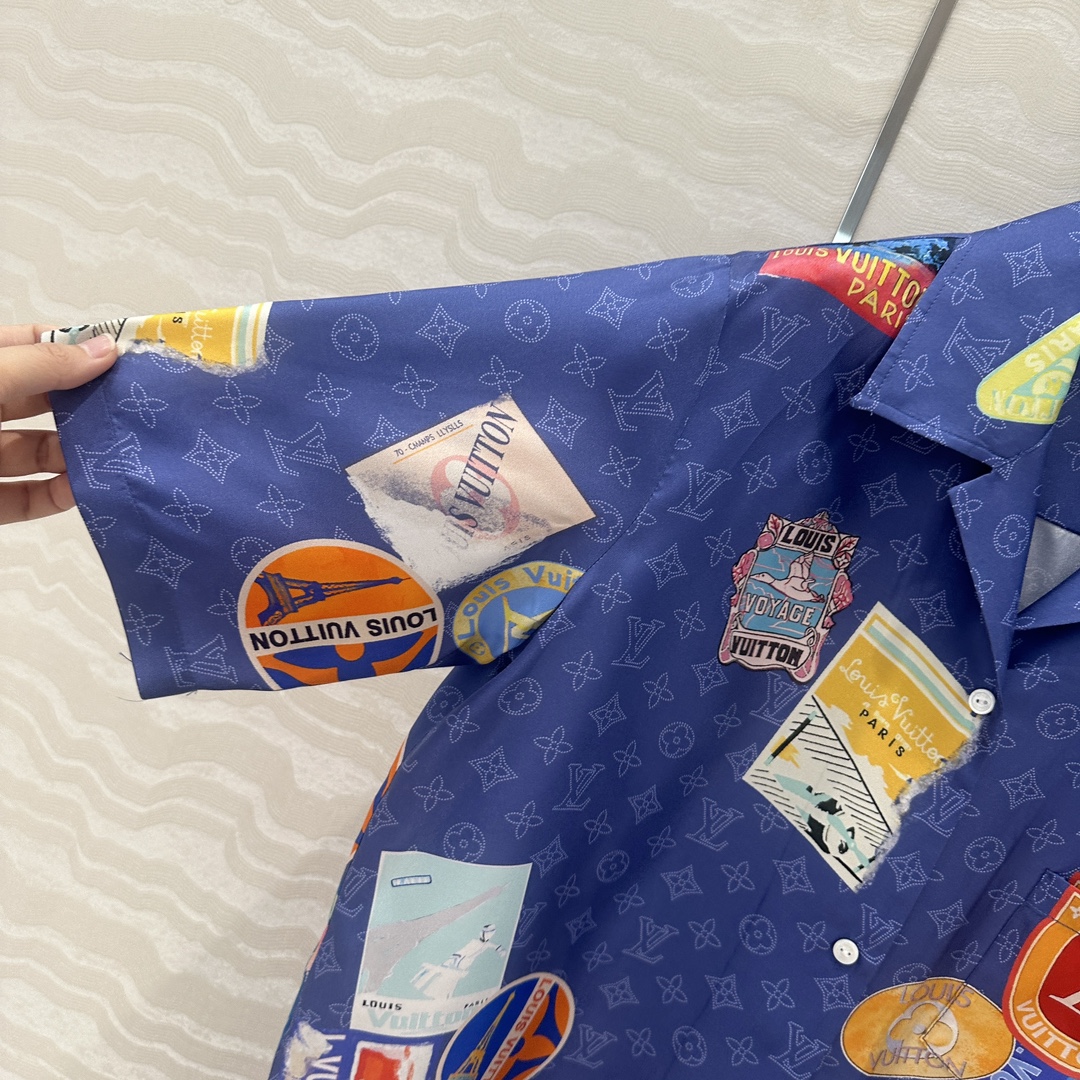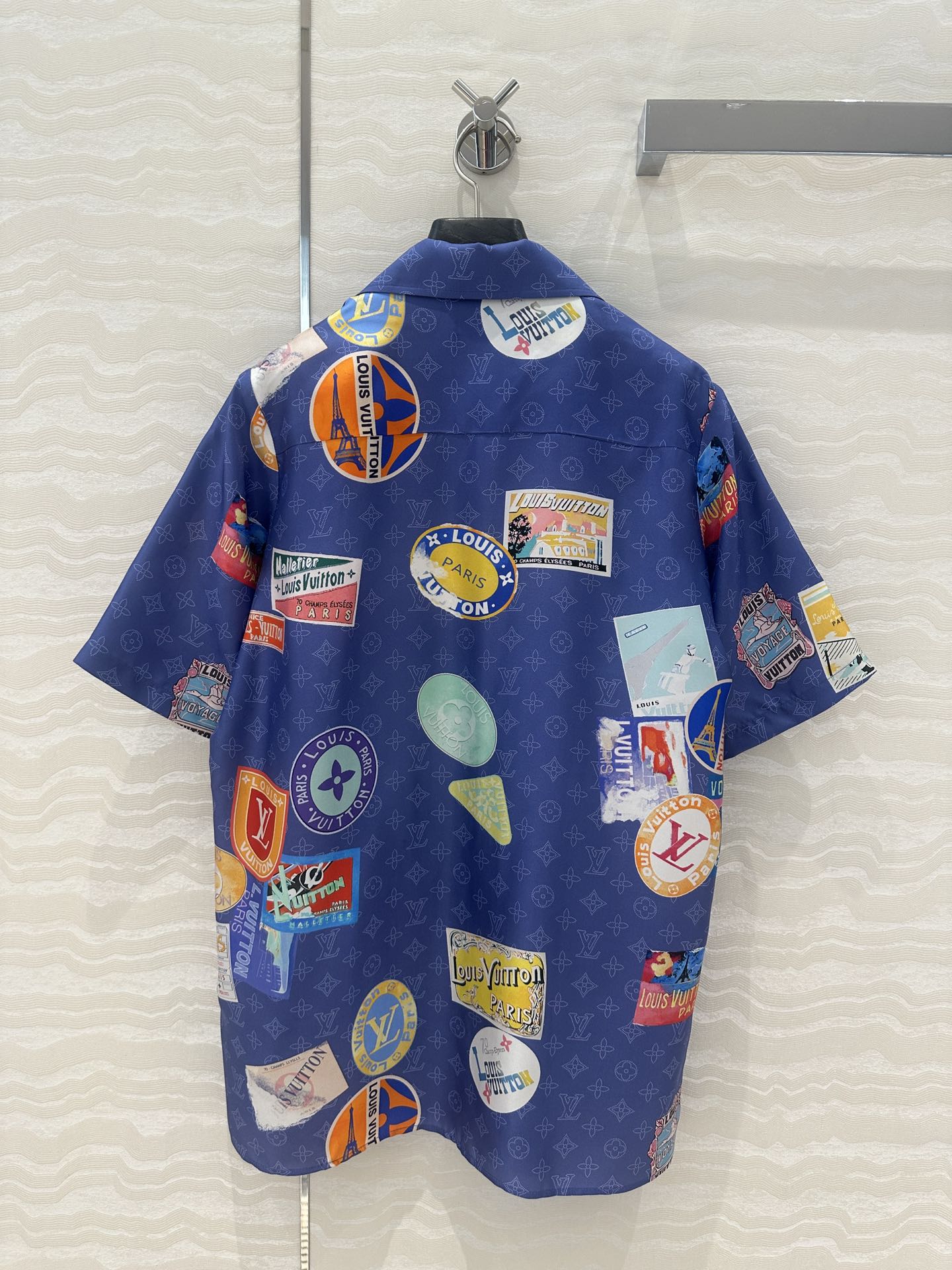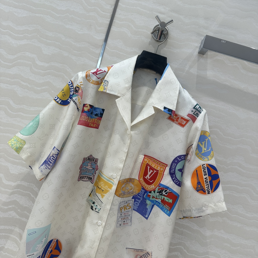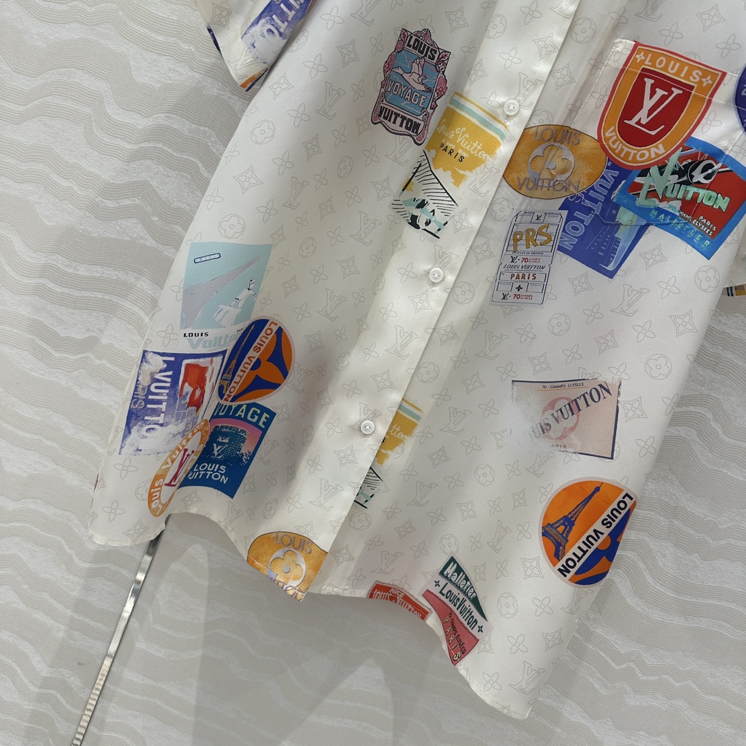 NIGO Louis Vuitton Women's Summer Badge Print Round Neck Single Button Silk Short Sleeve Shirt #nigo76991