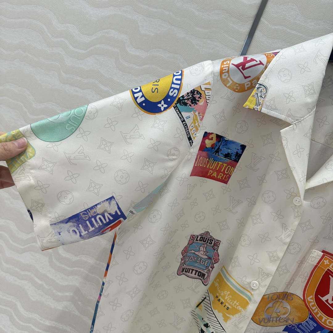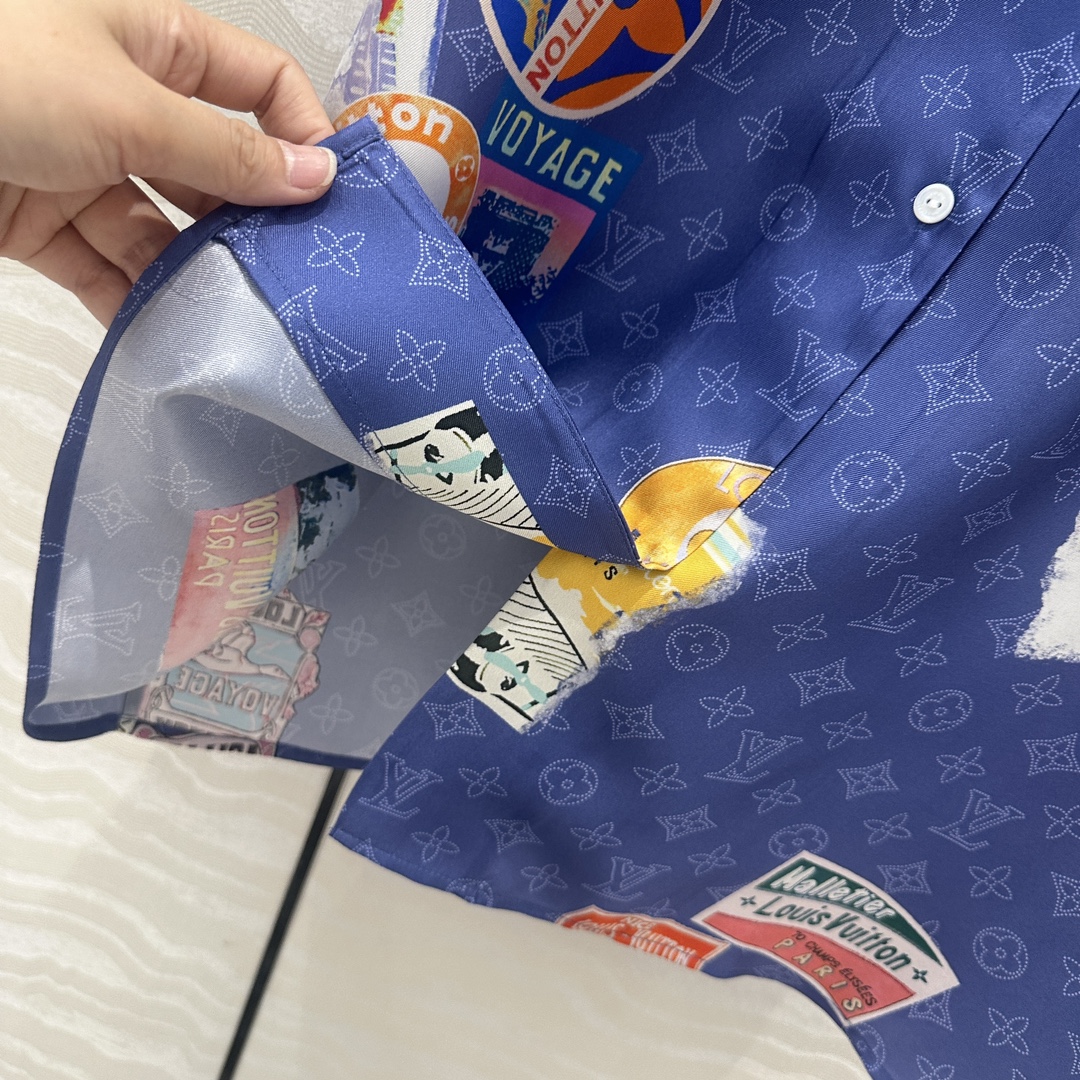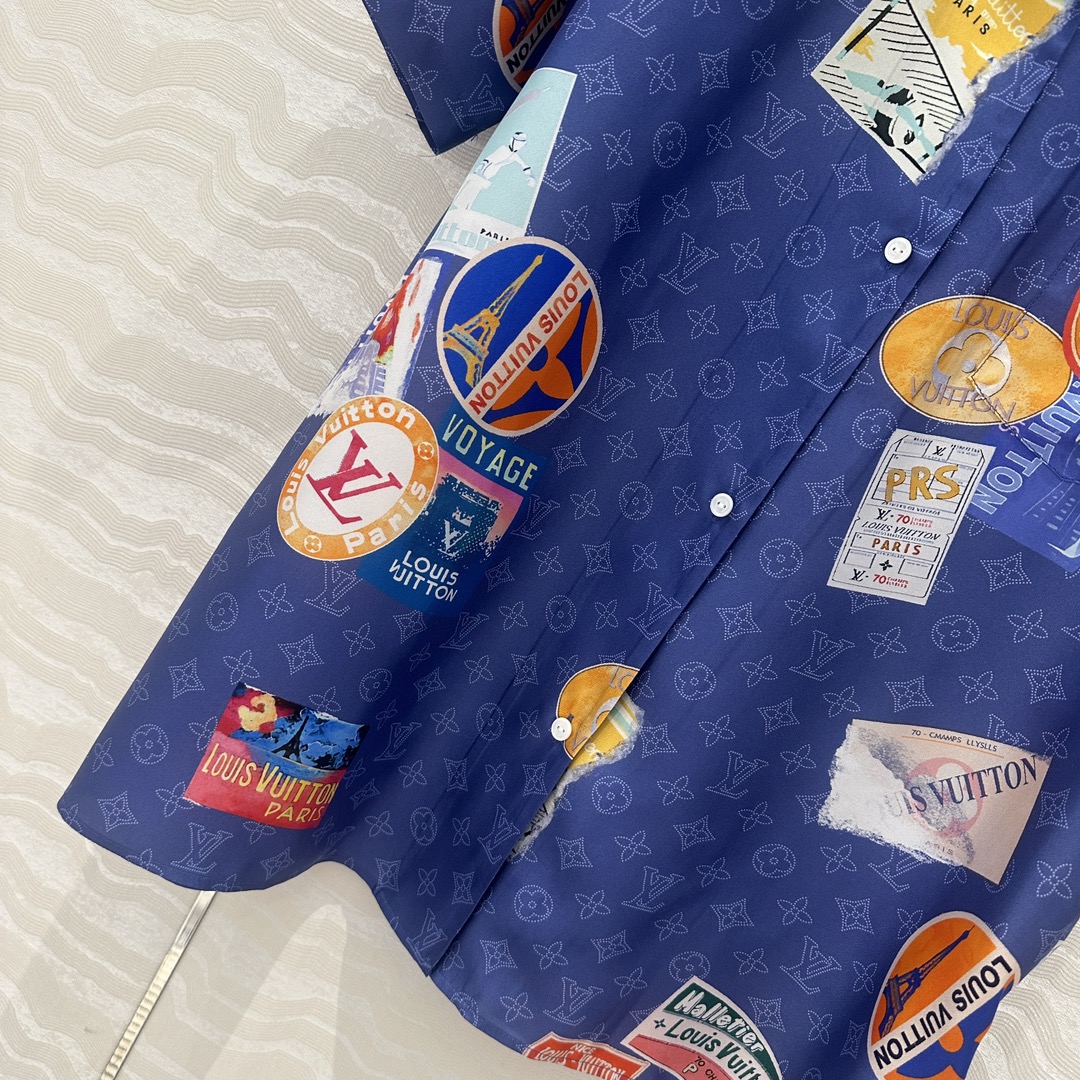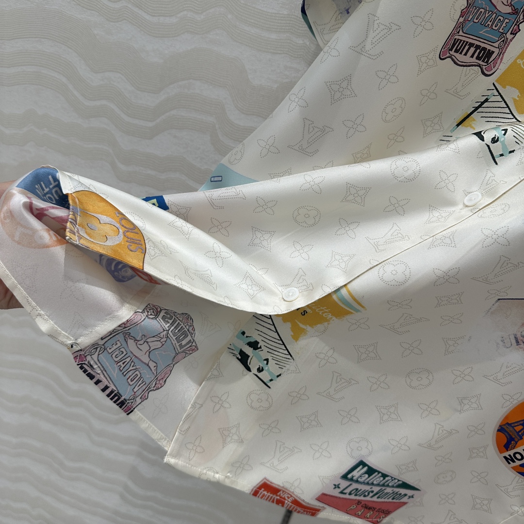 NIGO Louis Vuitton Women's Summer Badge Print Round Neck Single Button Silk Short Sleeve Shirt #nigo76991