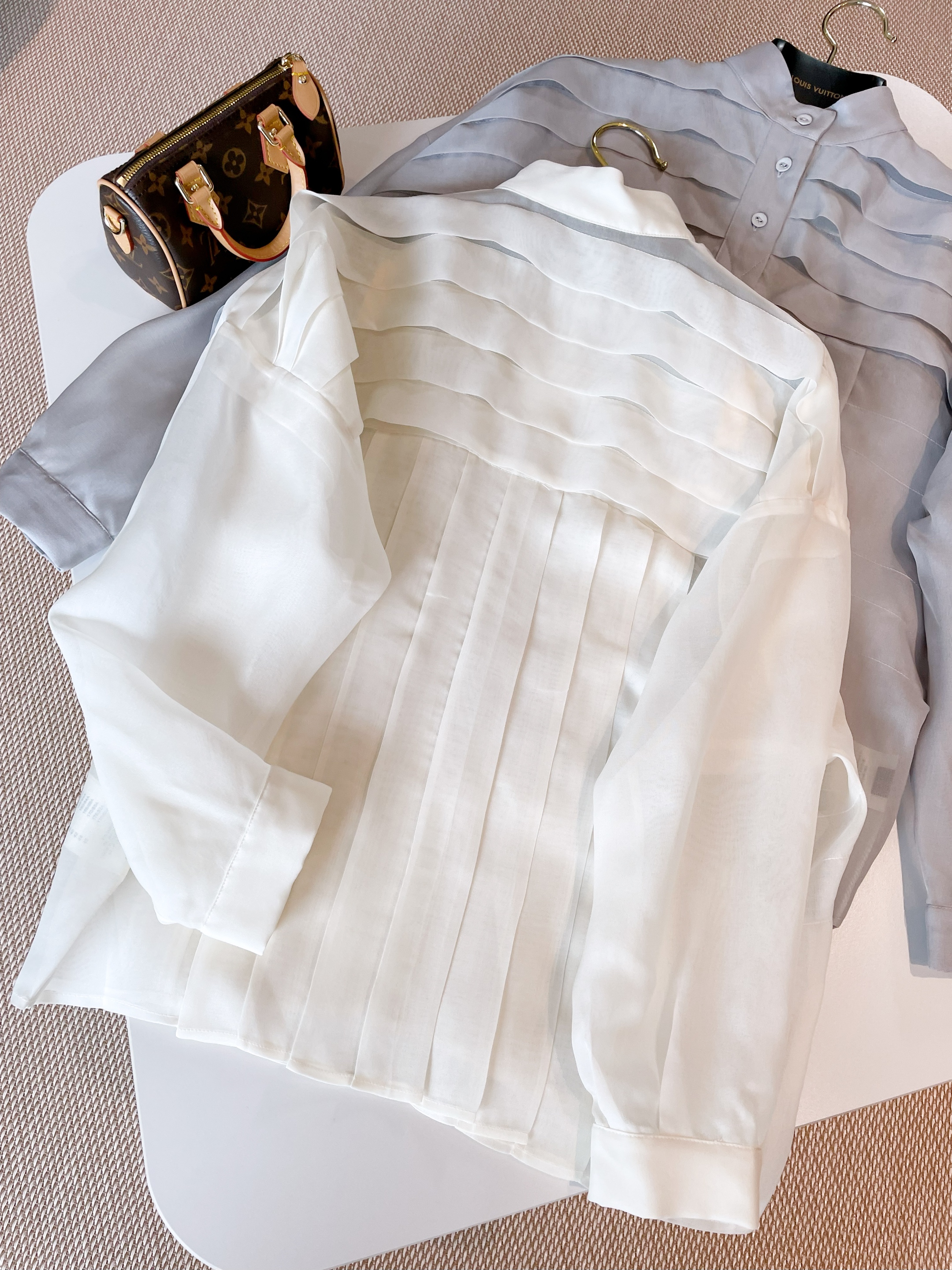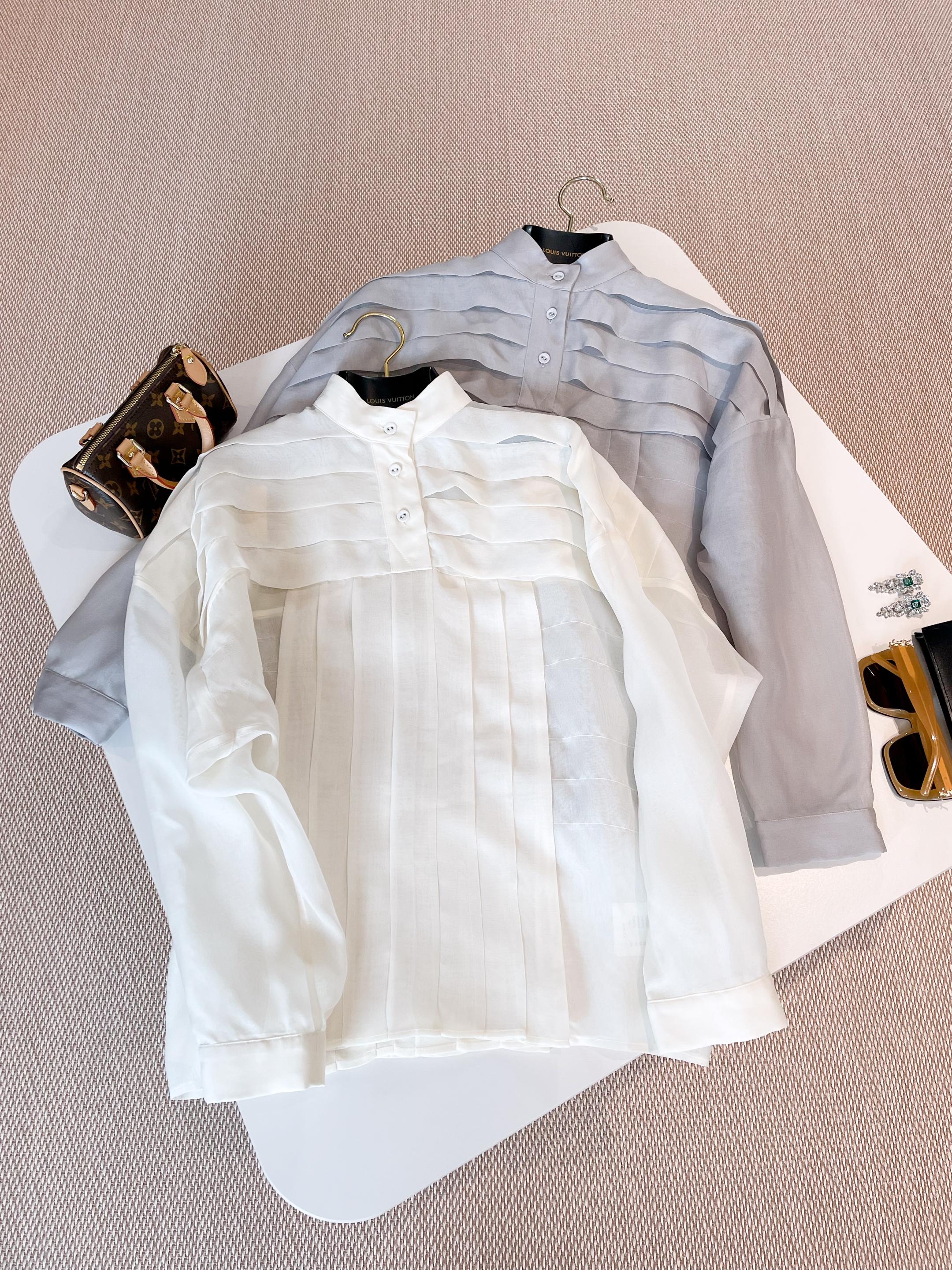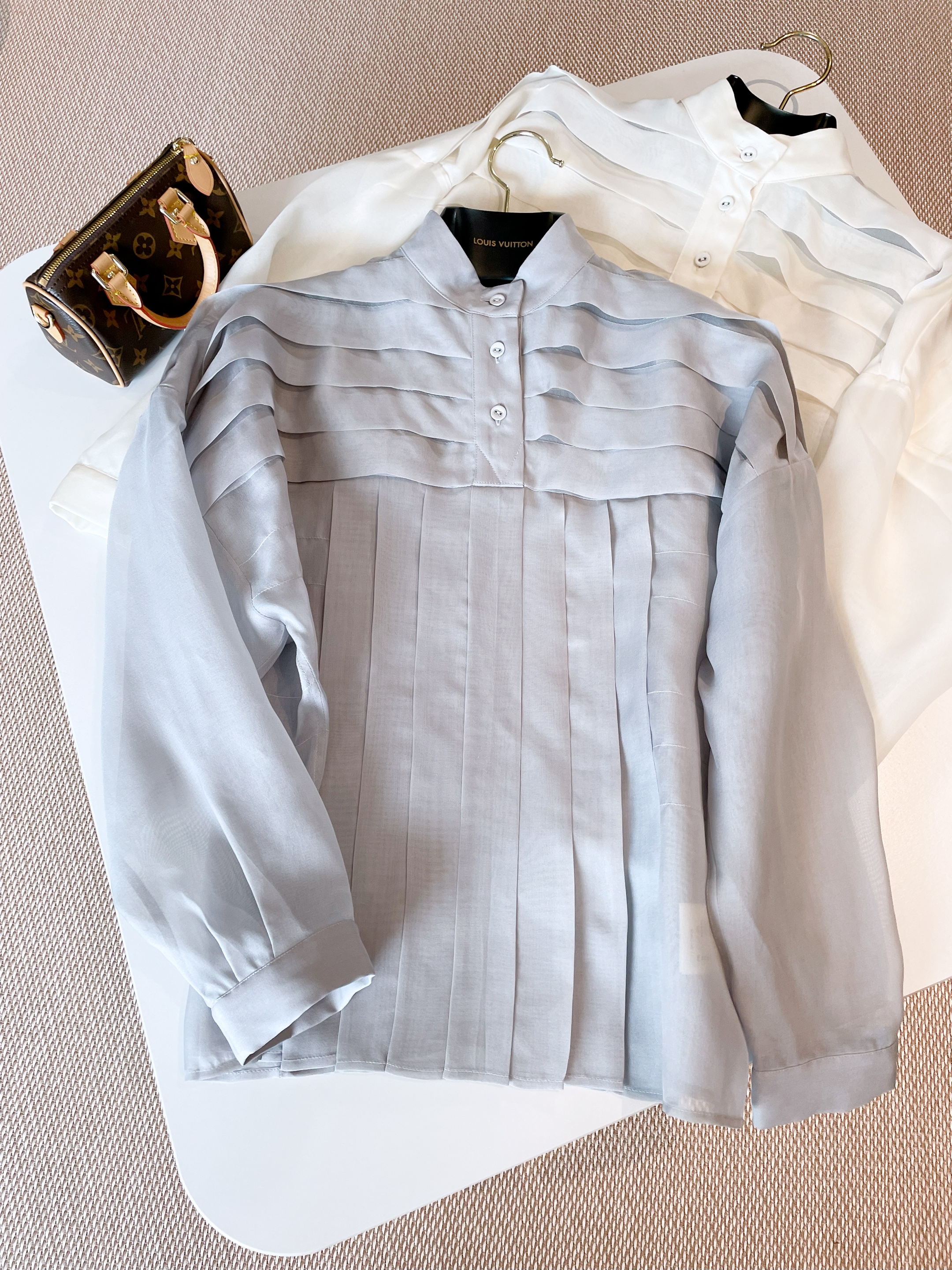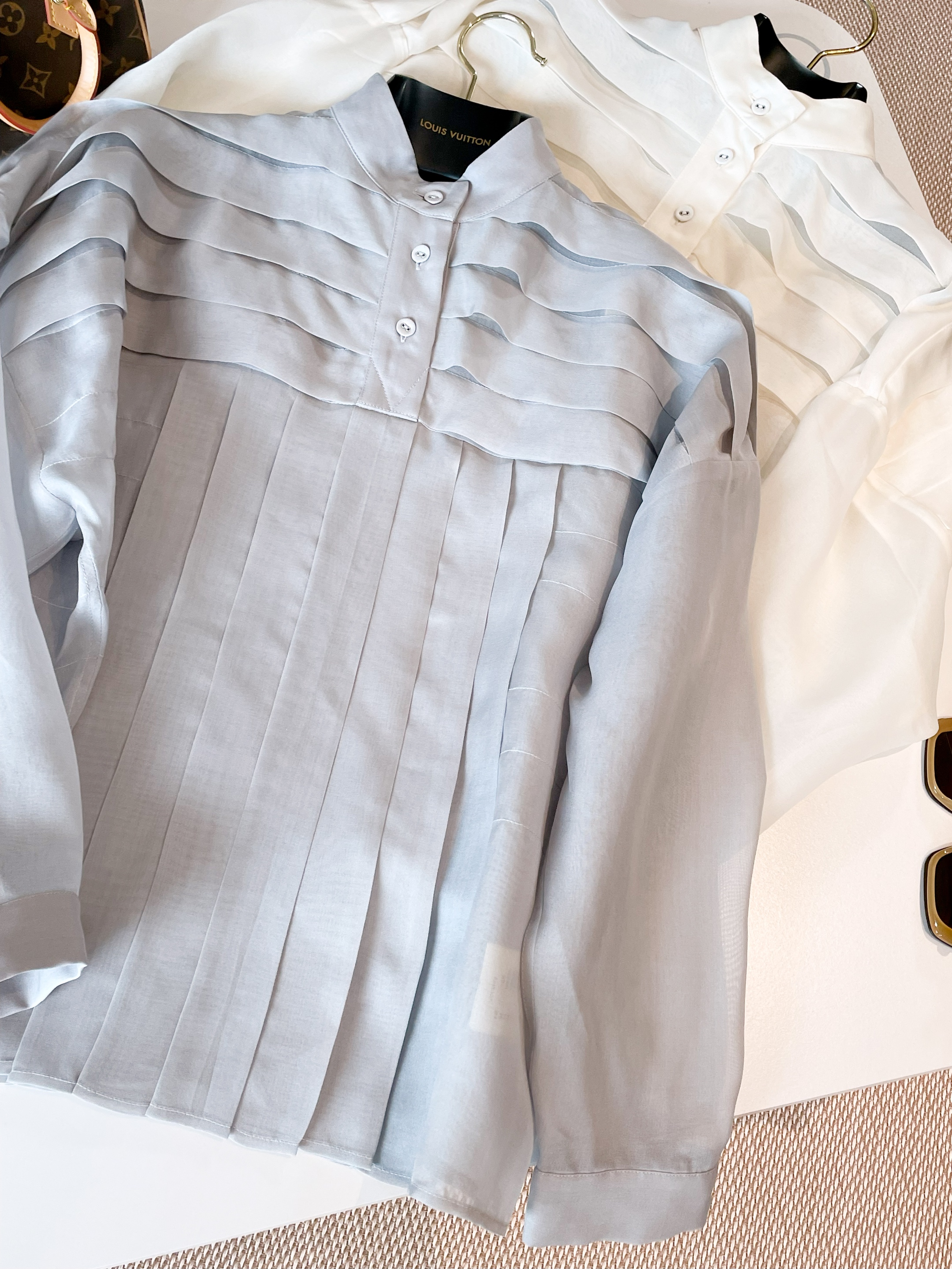 NIGO Louis Vuitton Women's Workwear Striped Mulberry Silk Shirt Solid Colour Thin Standing Collar Long Sleeve Comfortable Breathable Shirt Fashion Trend Tops Ngvp #nigo1325