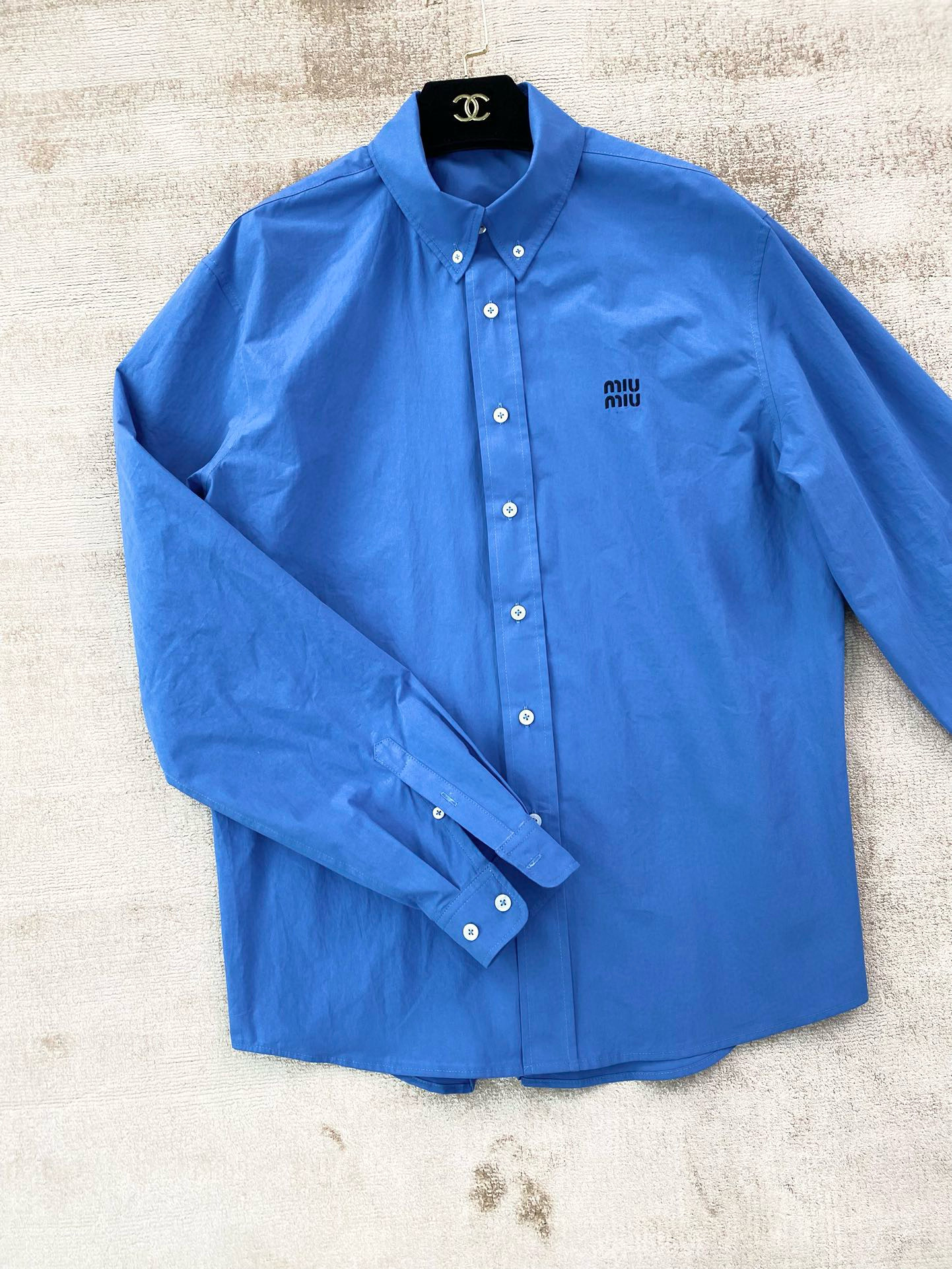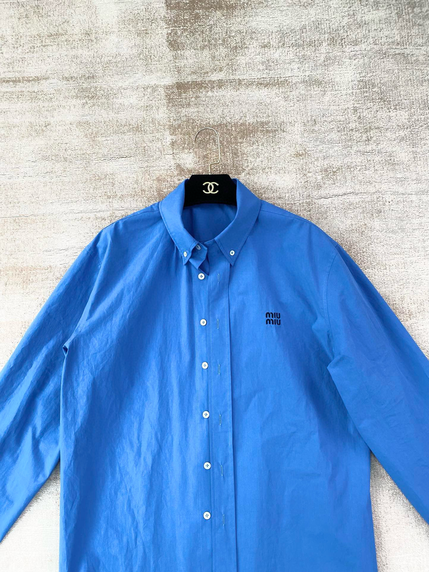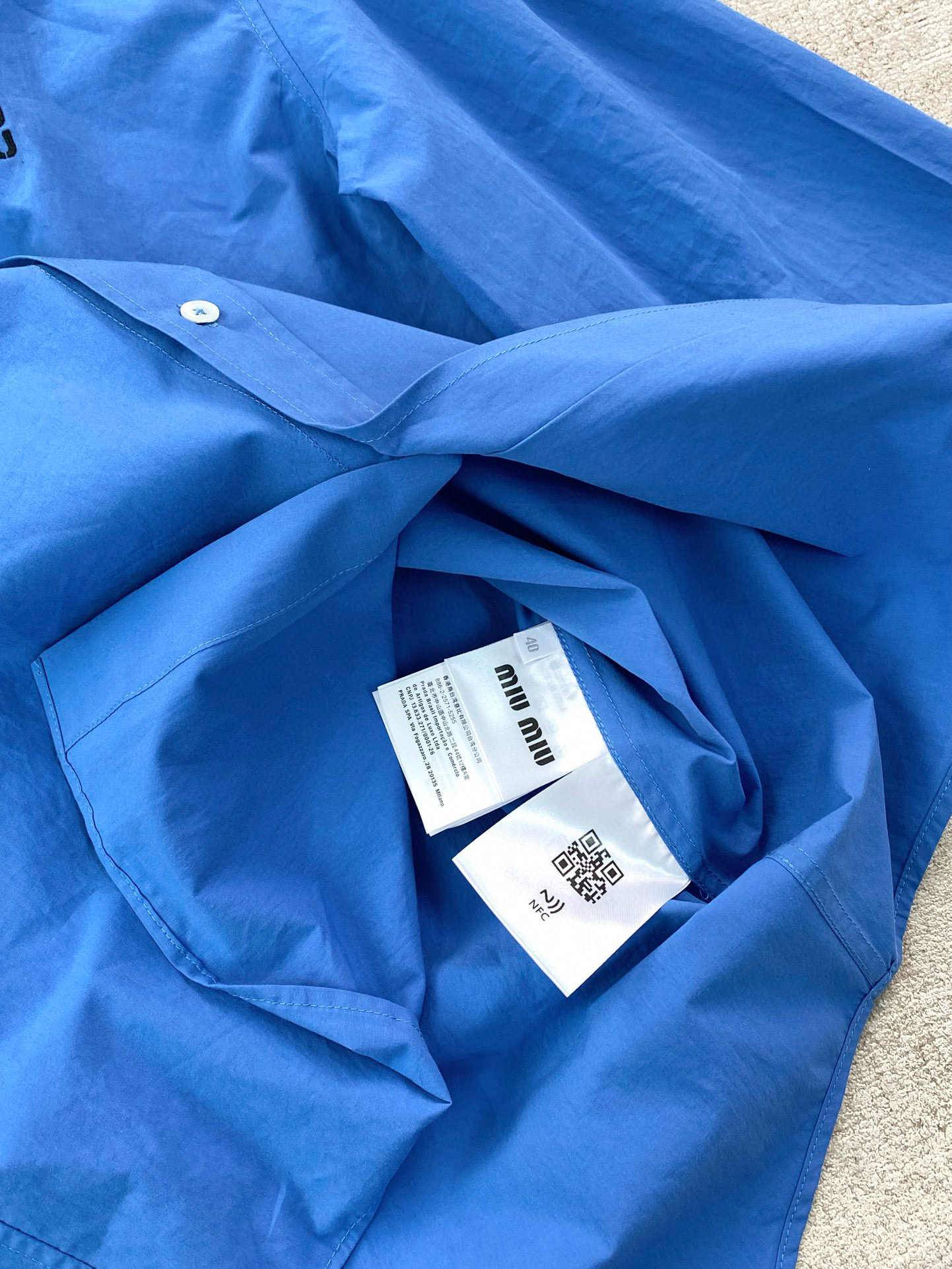 NIGO MiuMiu Men's Spring Summer Blue Letter Printed Lapel Single Breasted Long Sleeve Shirt #nigo98988