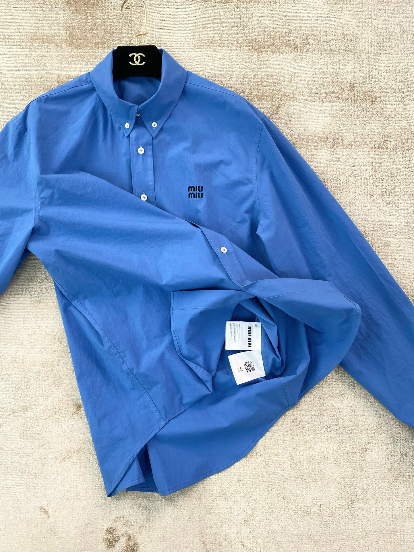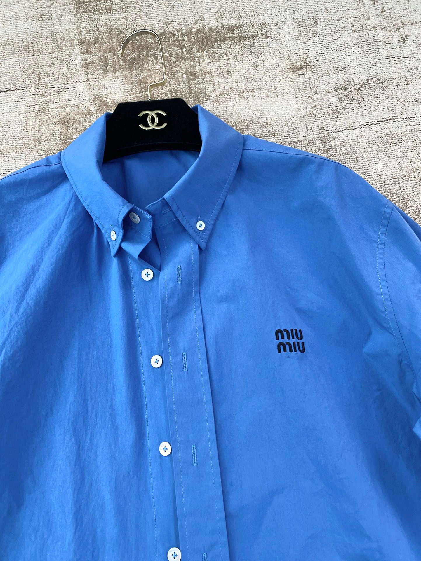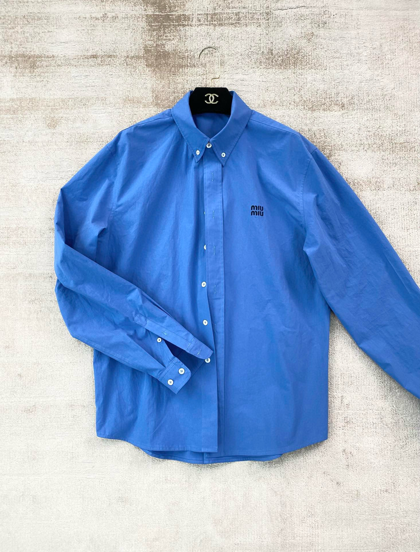 NIGO MiuMiu Men's Spring Summer Blue Letter Printed Lapel Single Breasted Long Sleeve Shirt #nigo98988