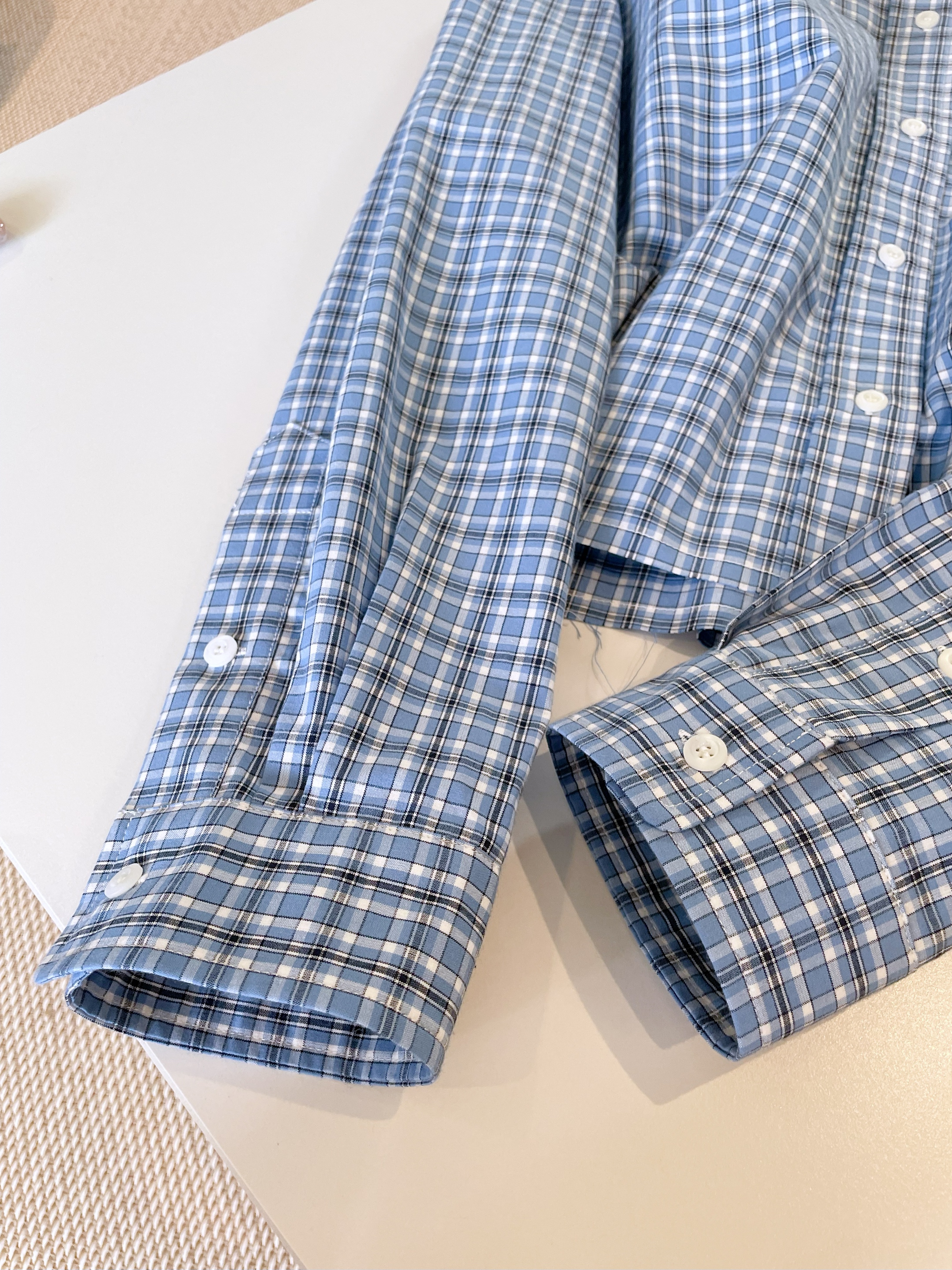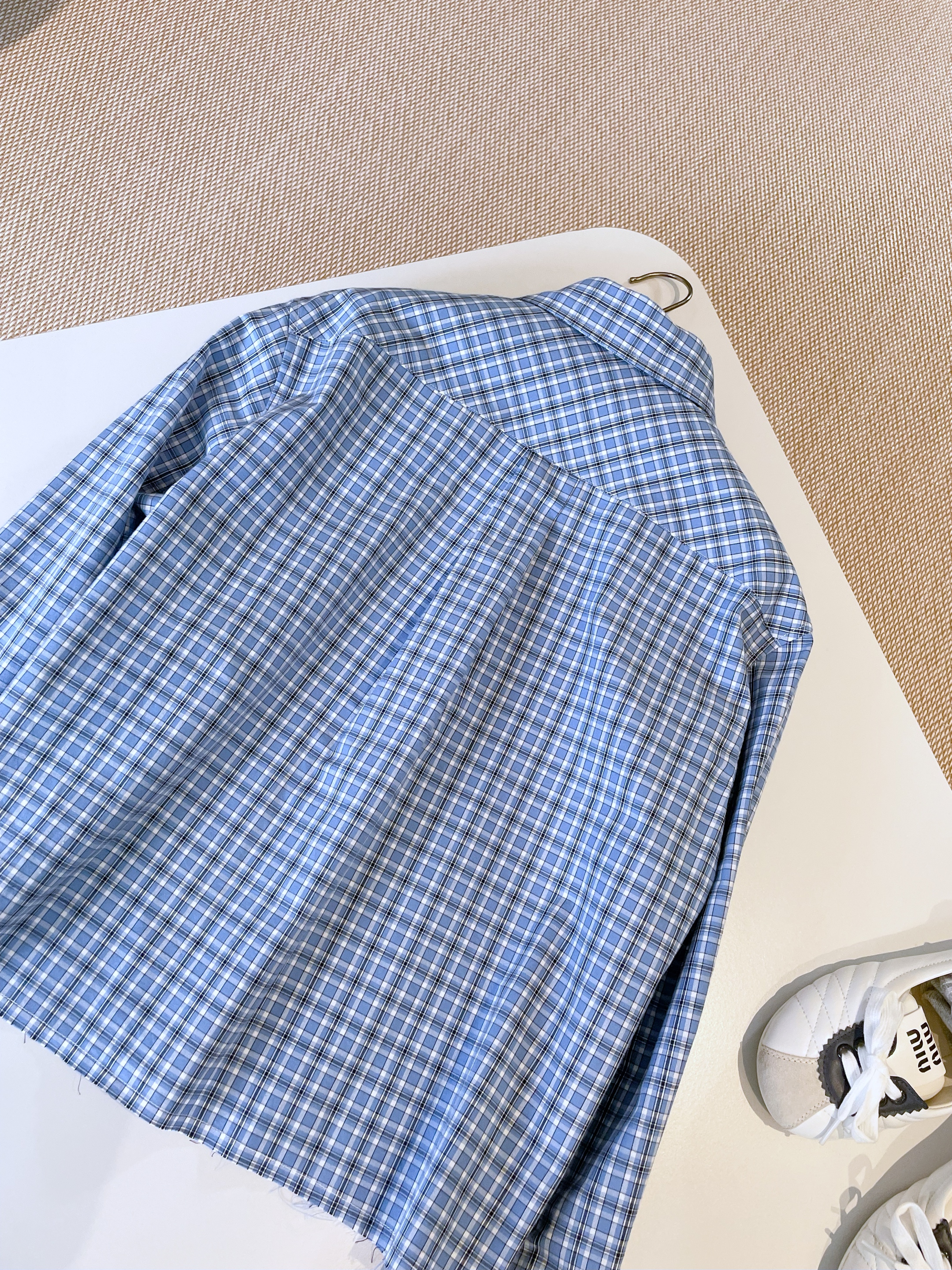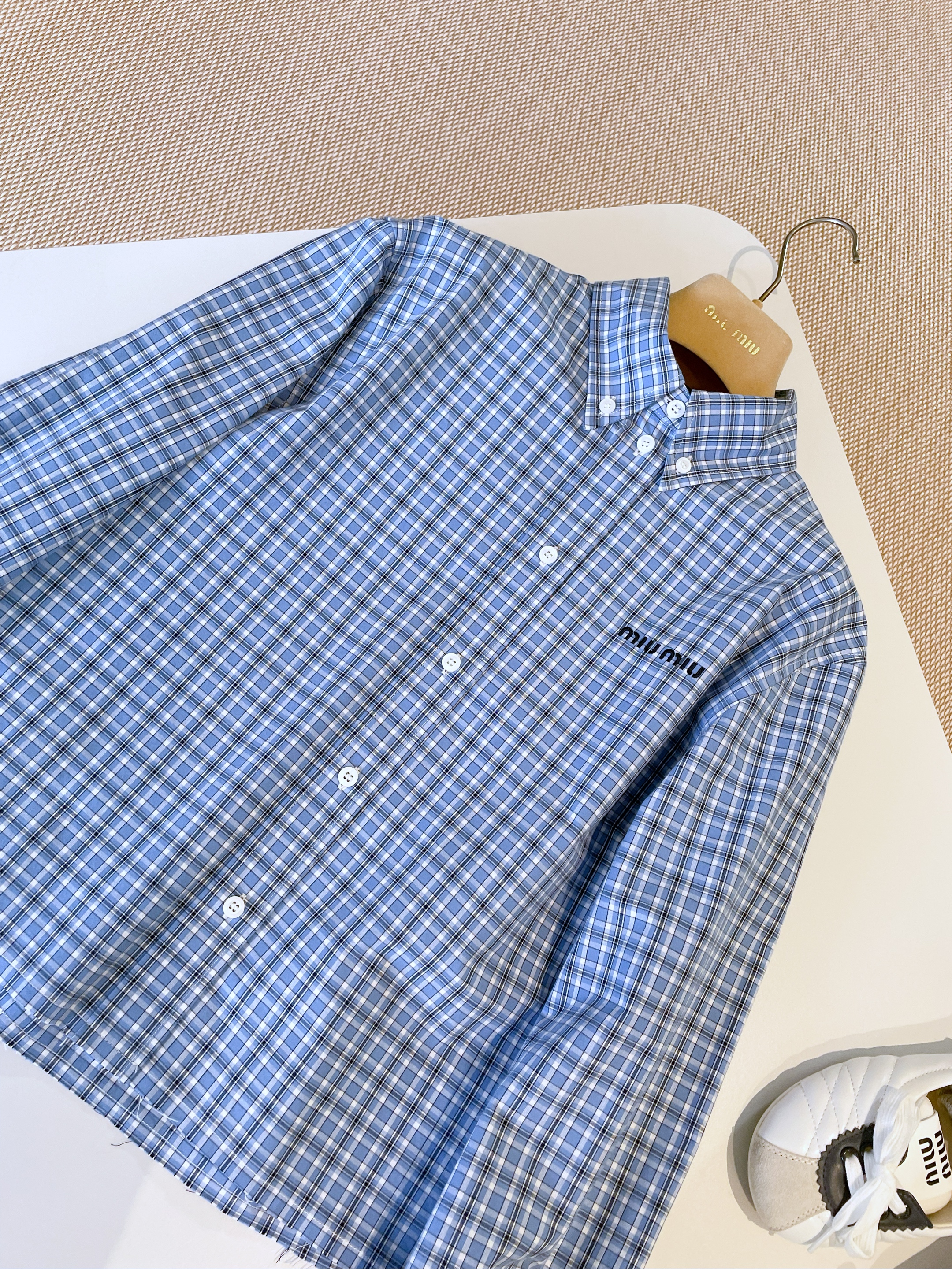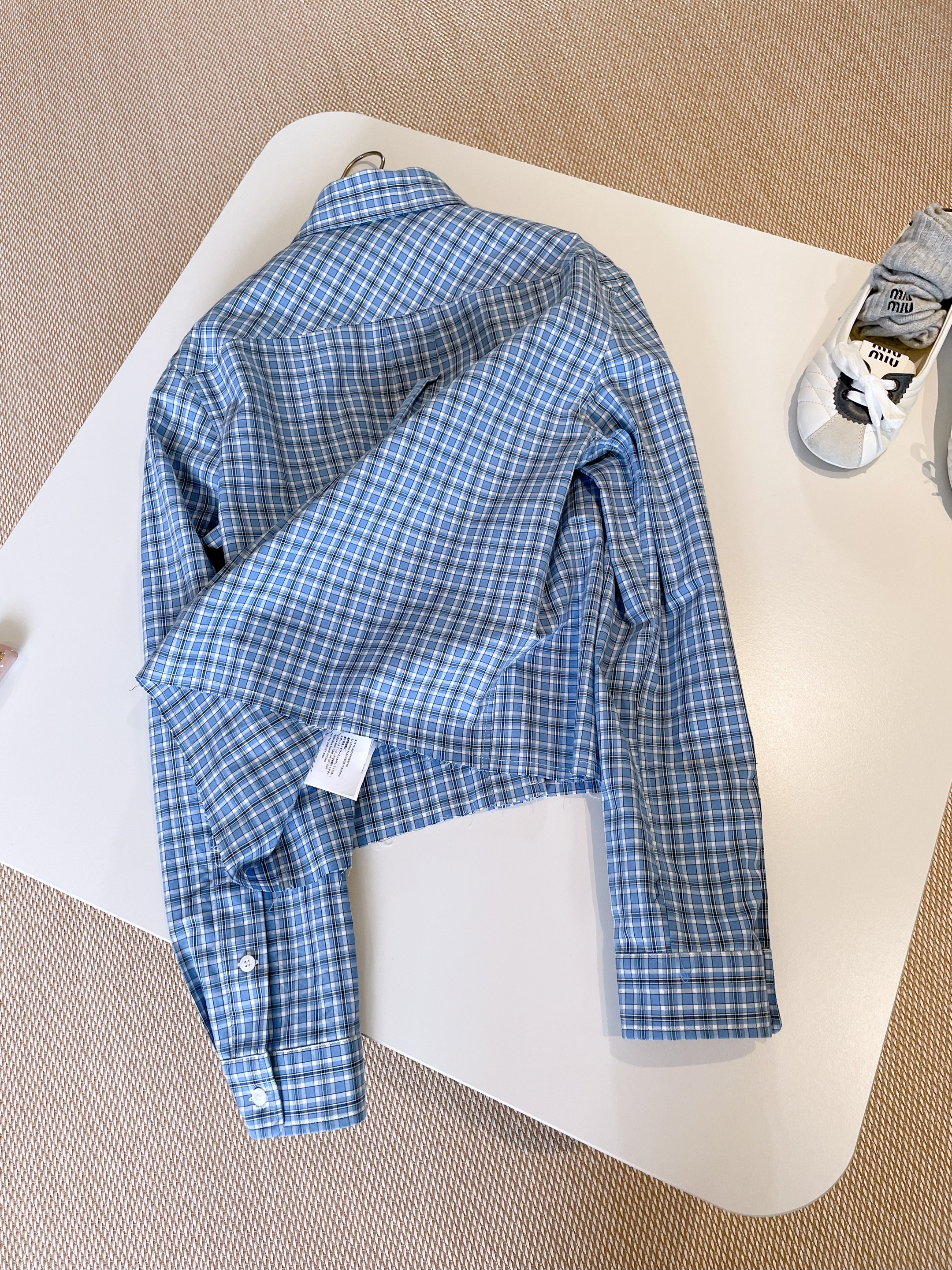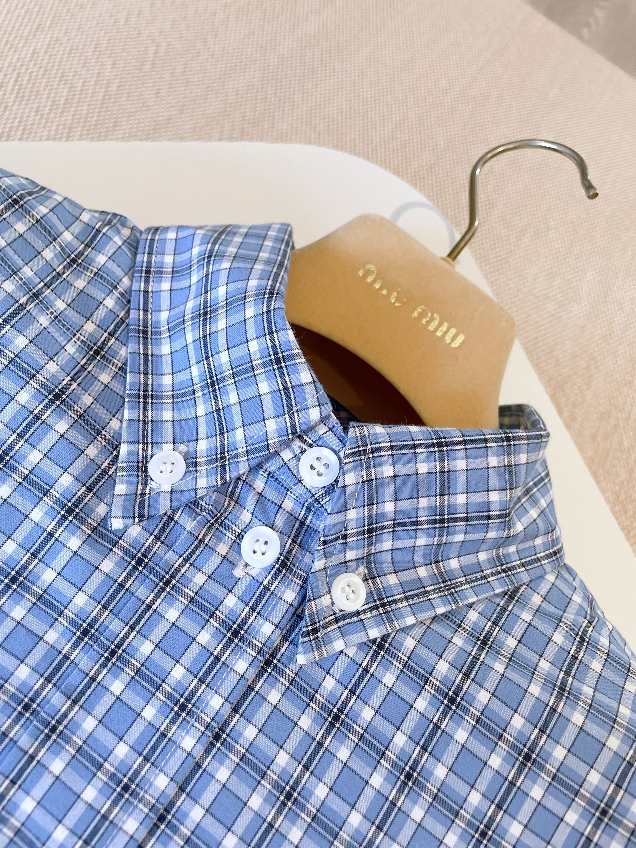 NIGO MiuMiu Women's Spring/Summer Blue Check Embroidered Letter Print Single Breasted Long Sleeve Shirt #nigo75714