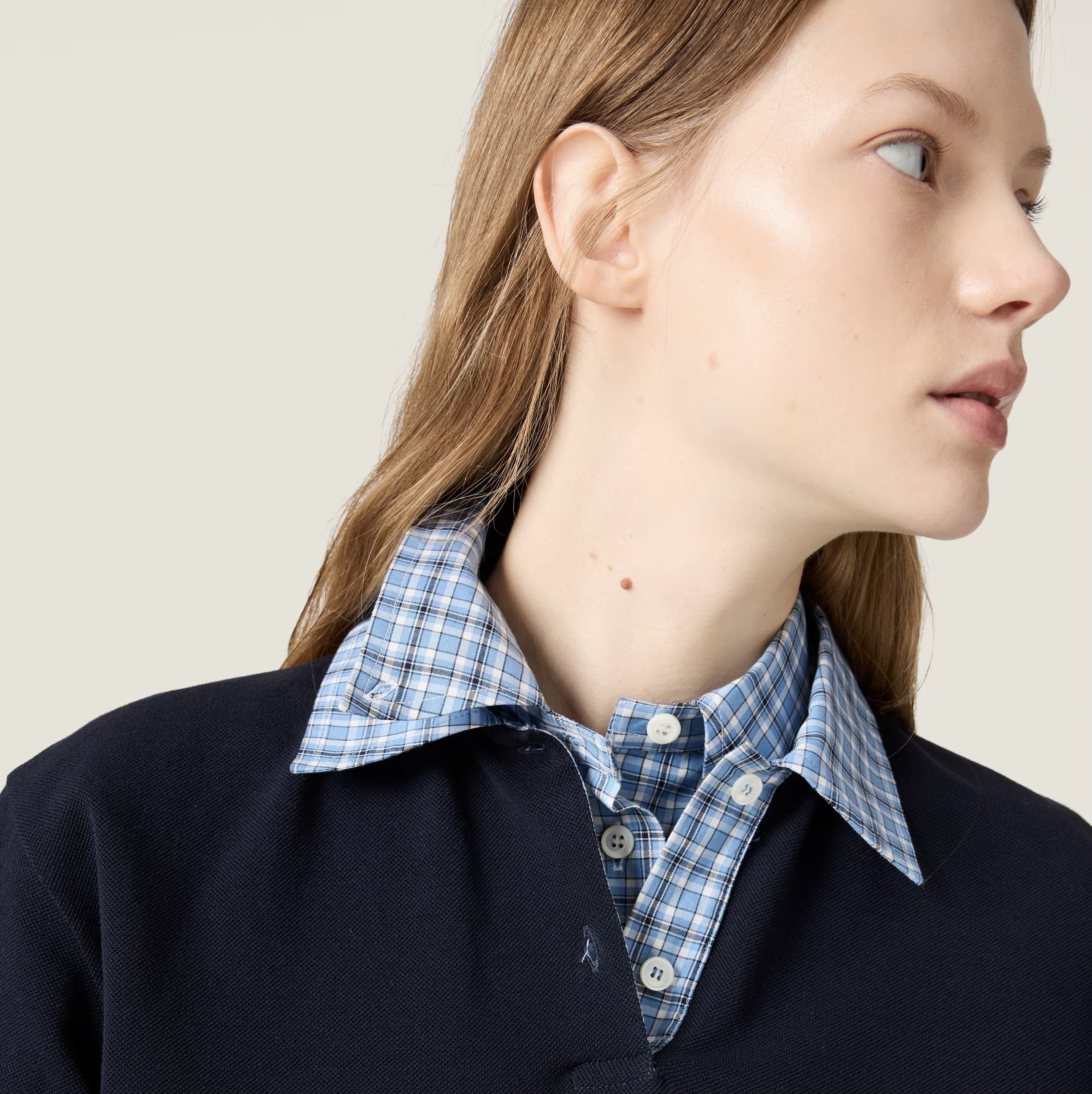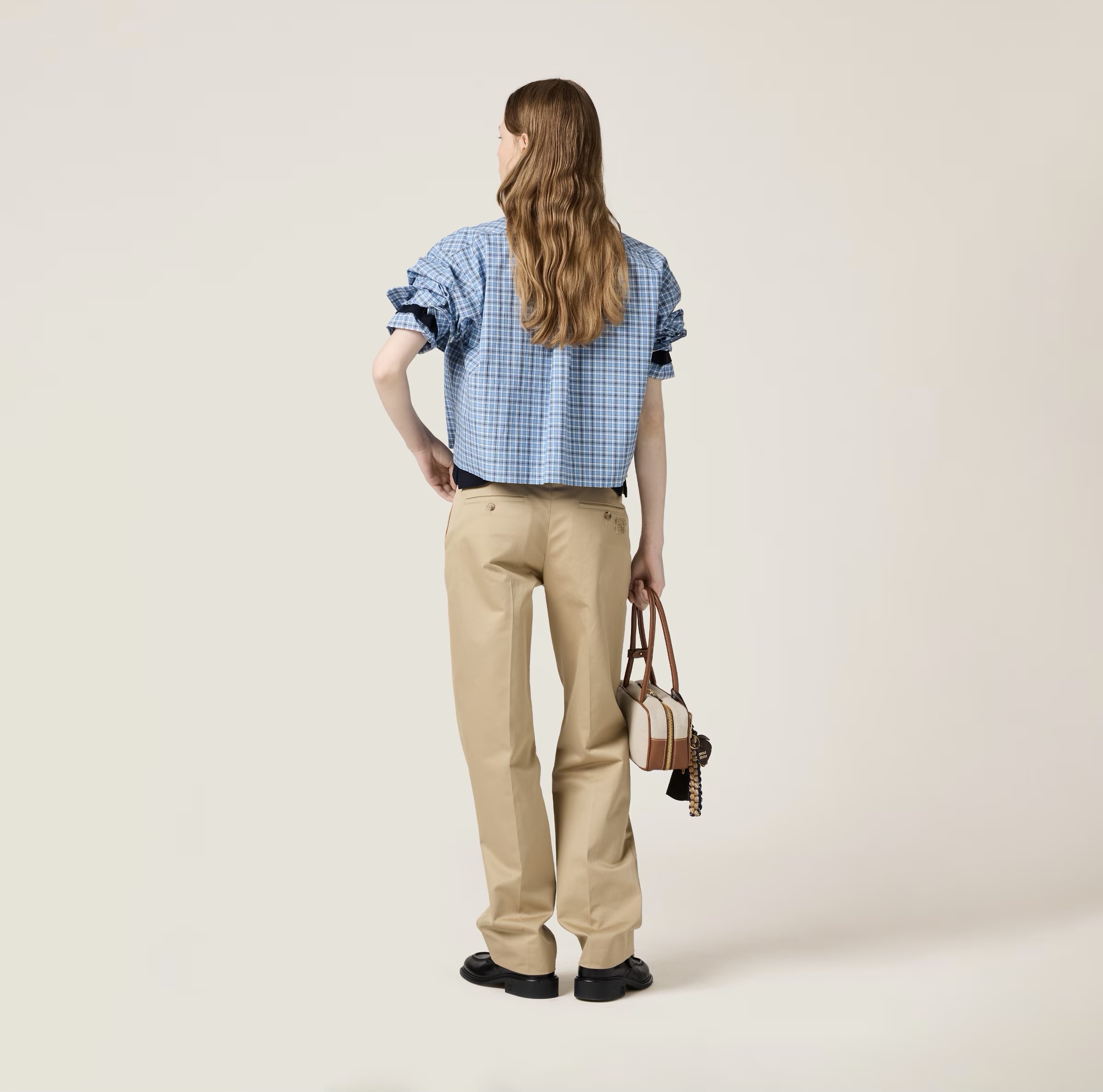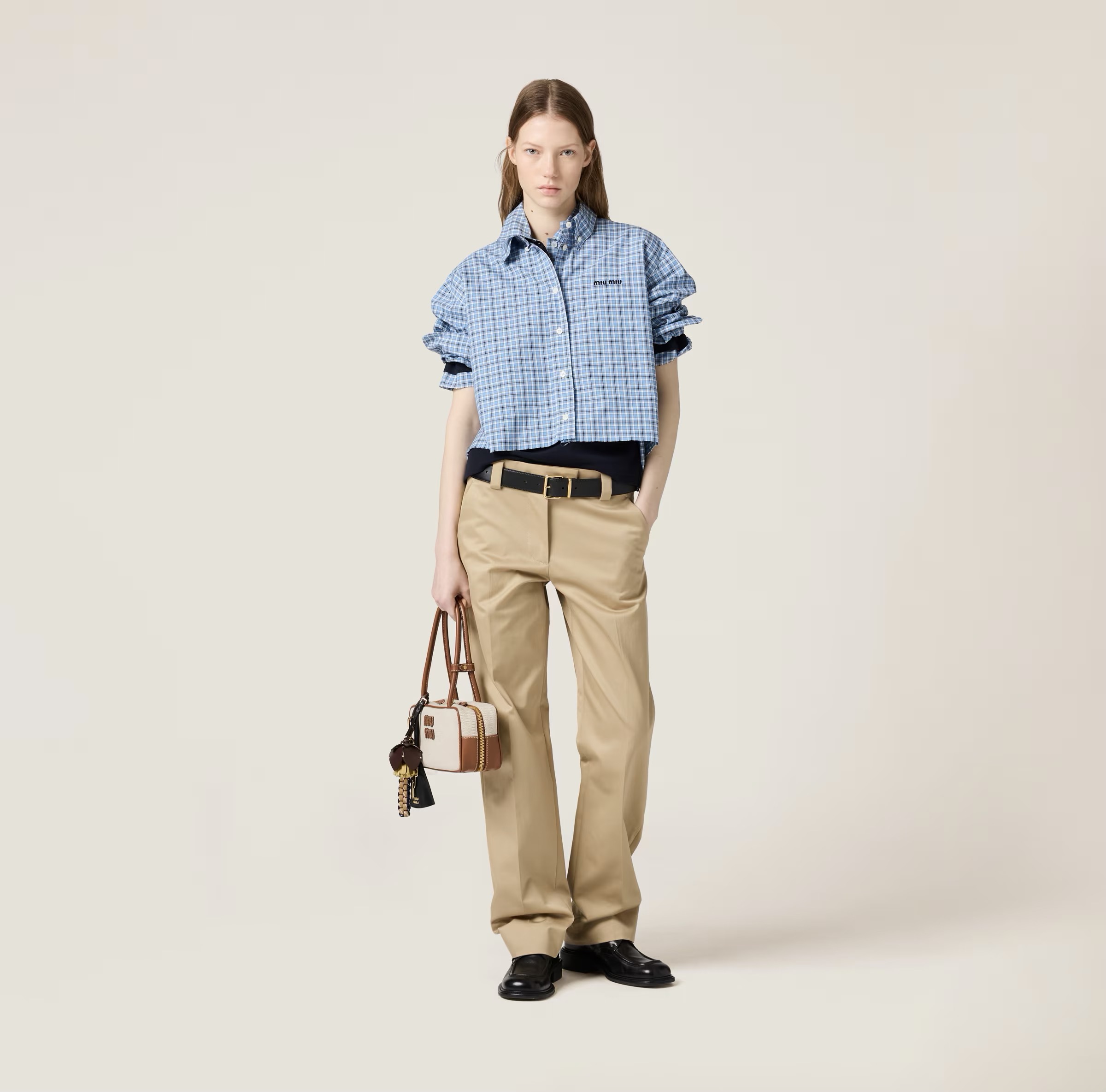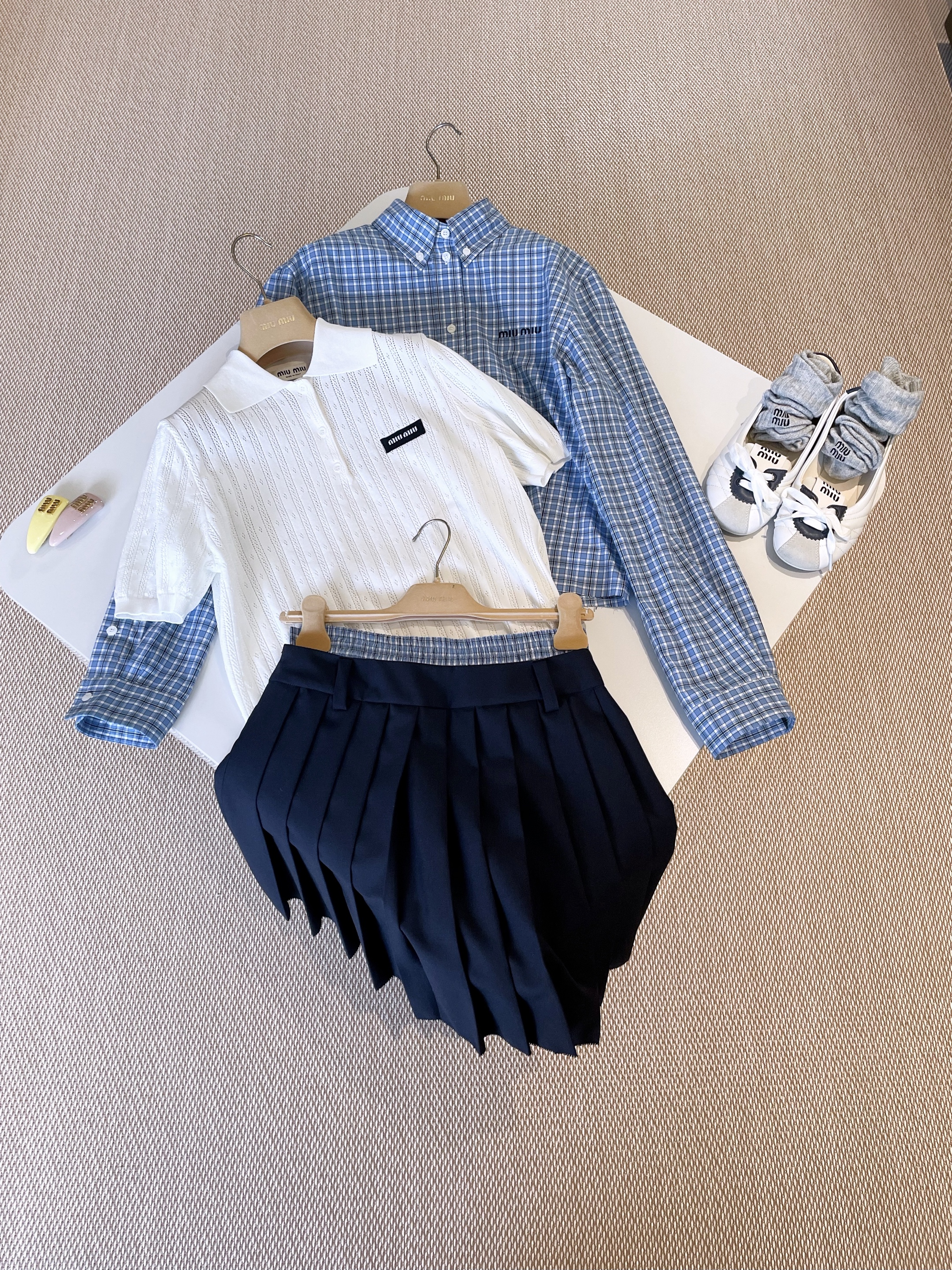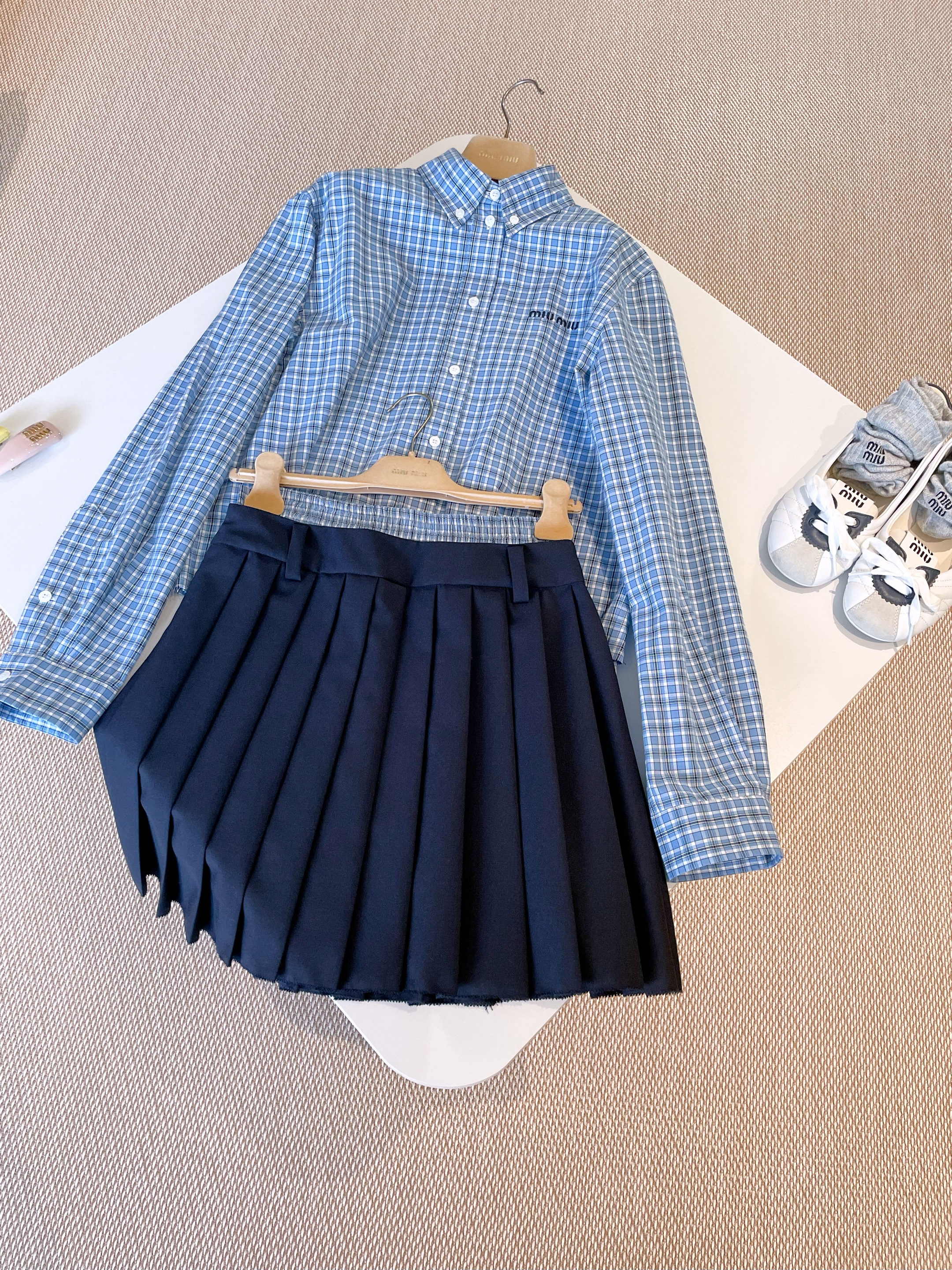 NIGO MiuMiu Women's Spring/Summer Blue Check Embroidered Letter Print Single Breasted Long Sleeve Shirt #nigo75714