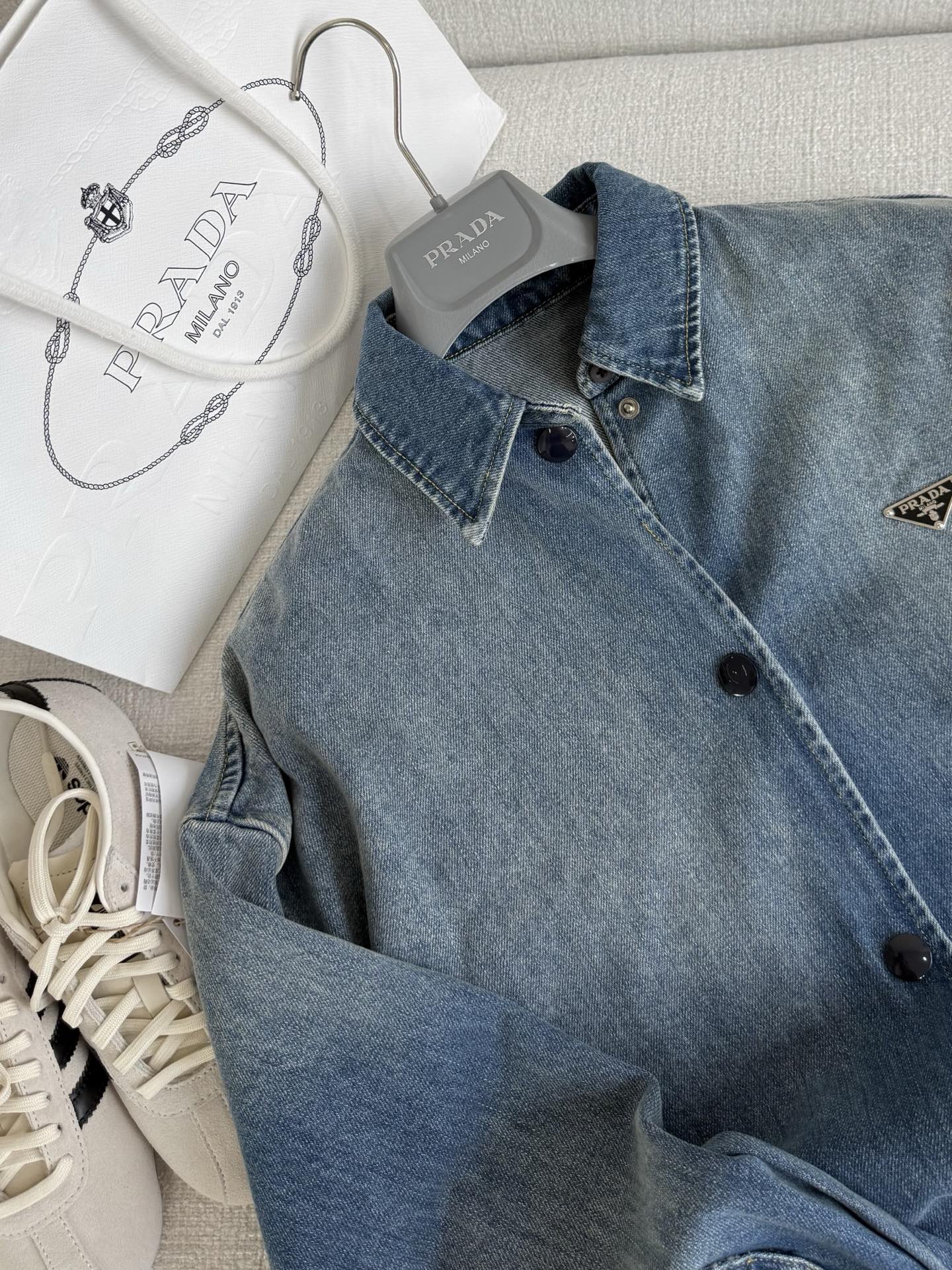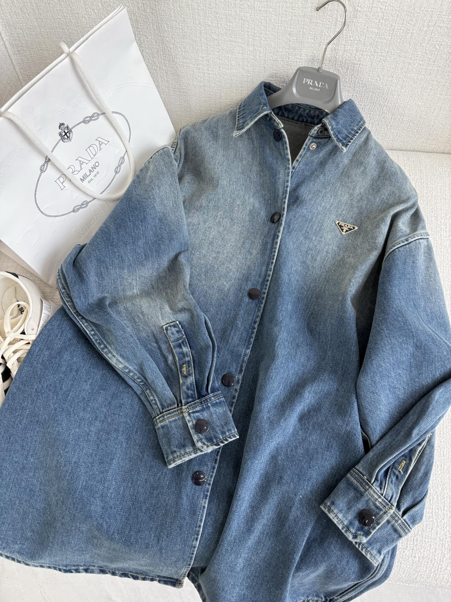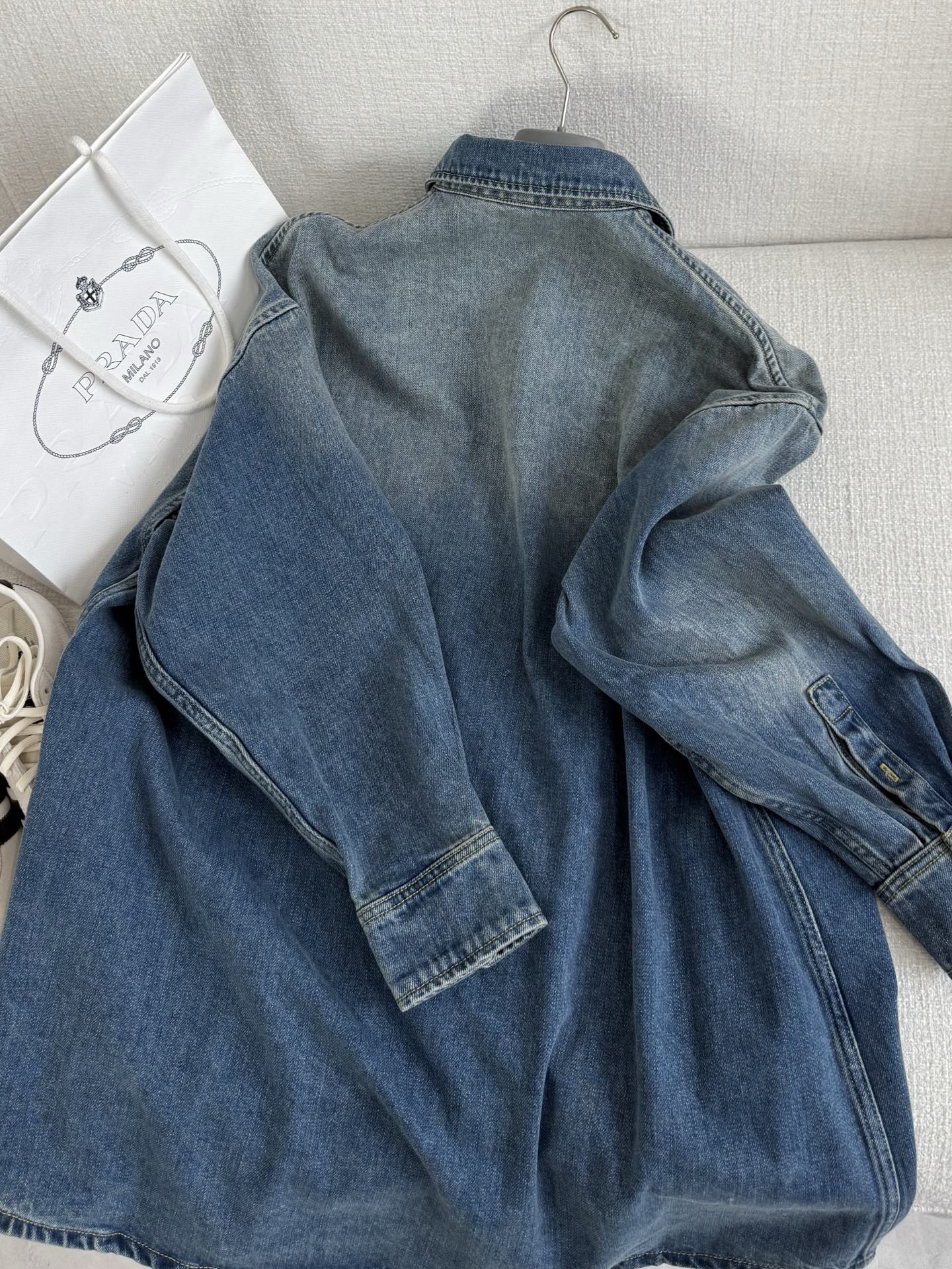 NIGO Prada Denim Shirt Women's Fall And Winter Do Old Loose Oversize Fashion Easy Casual Style Triangle Metal Emblem Logo Shirt Jacket #nigo81441
