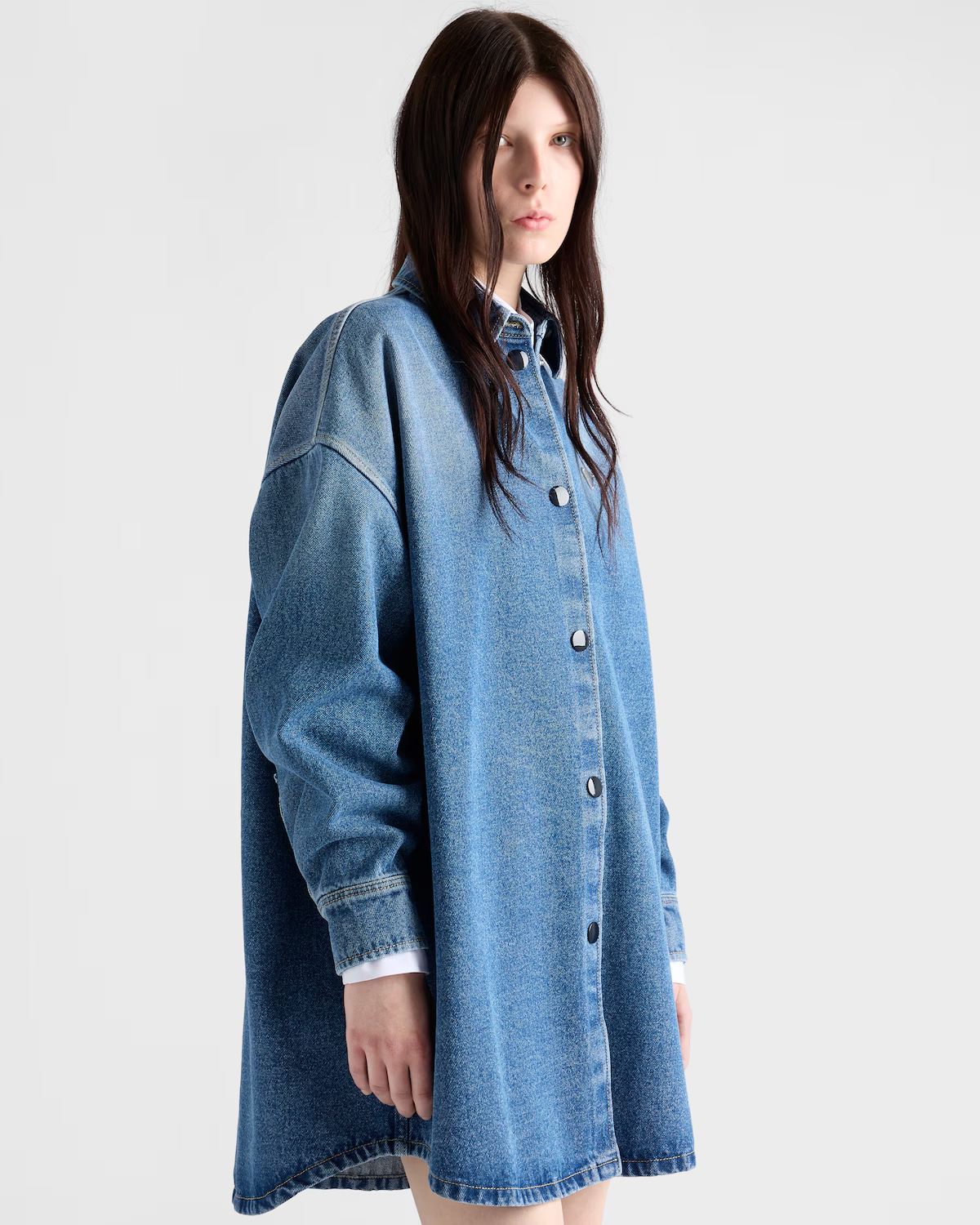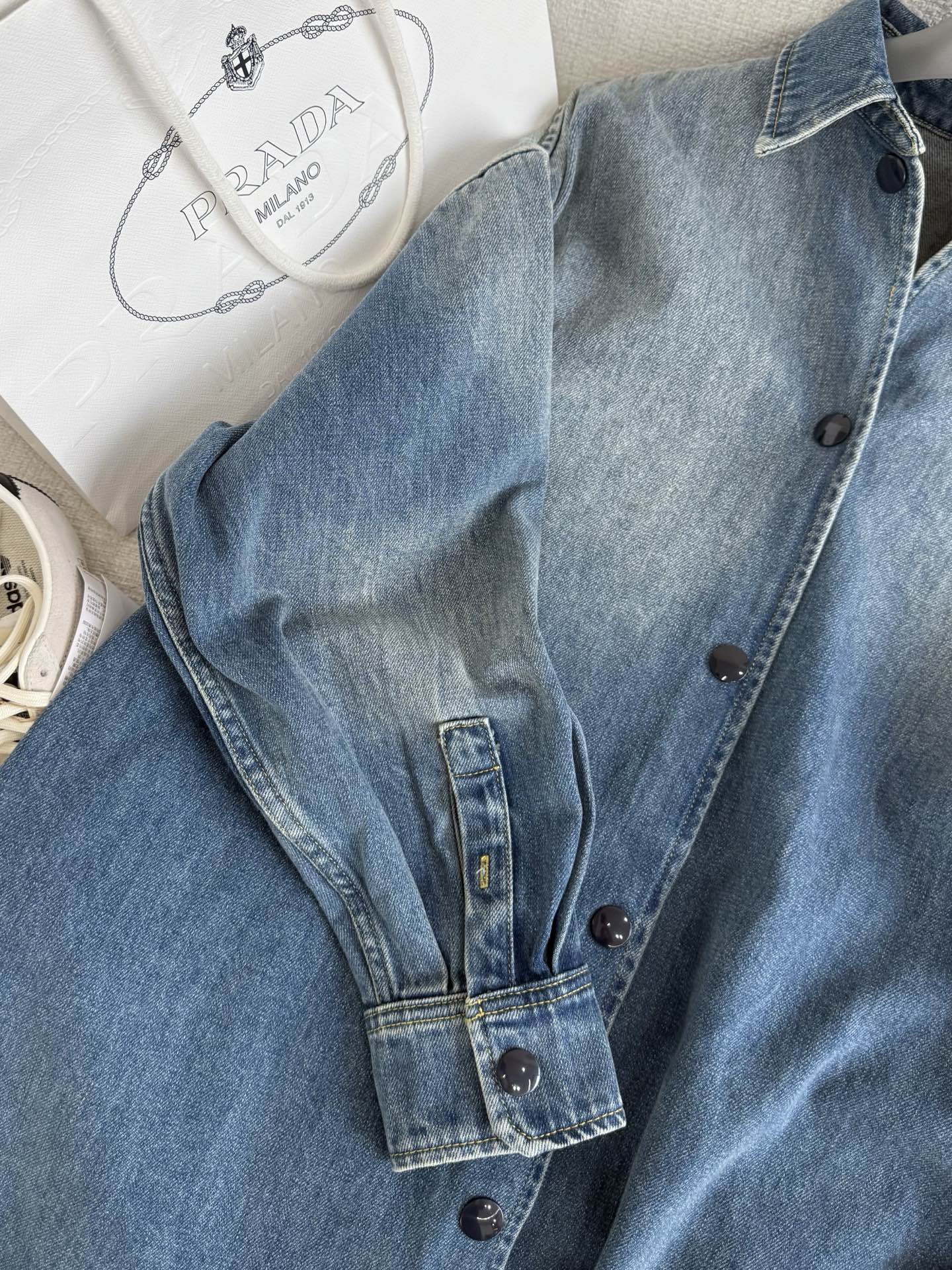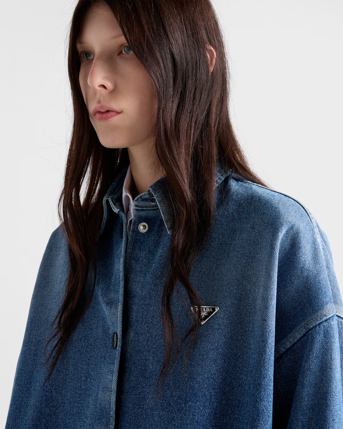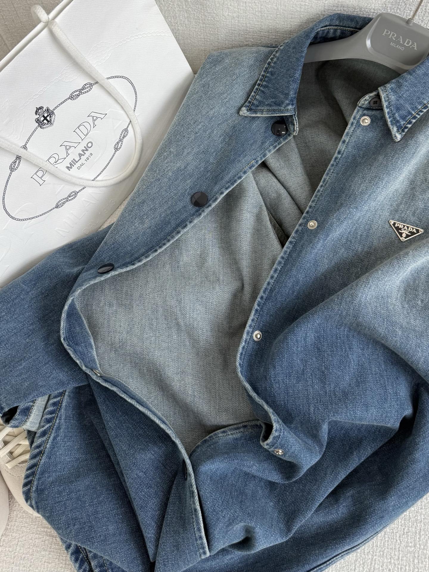 NIGO Prada Denim Shirt Women's Fall And Winter Do Old Loose Oversize Fashion Easy Casual Style Triangle Metal Emblem Logo Shirt Jacket #nigo81441