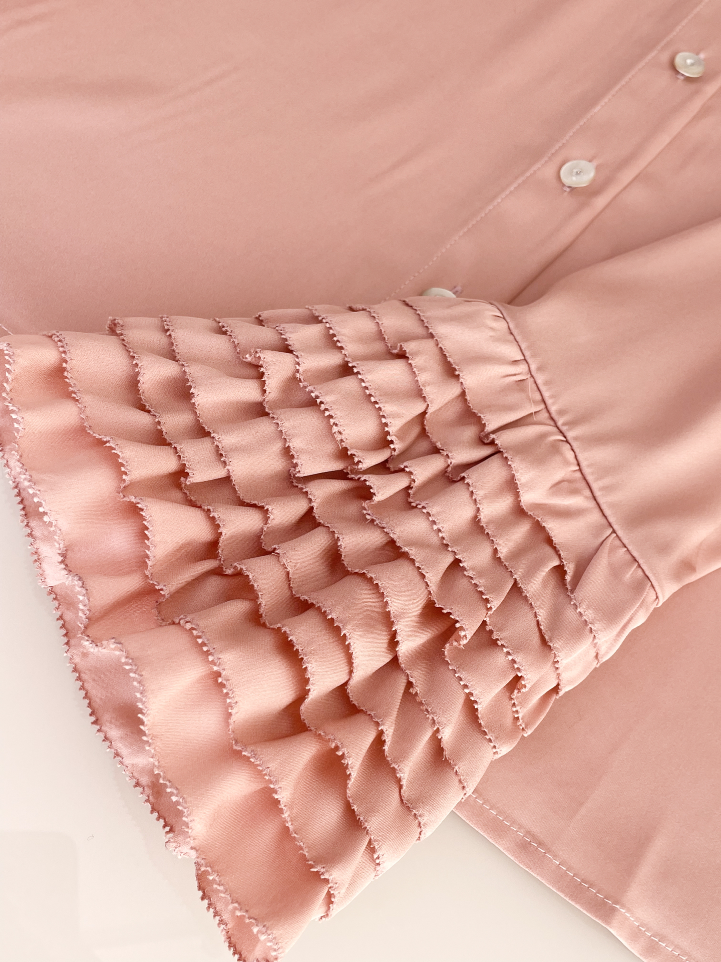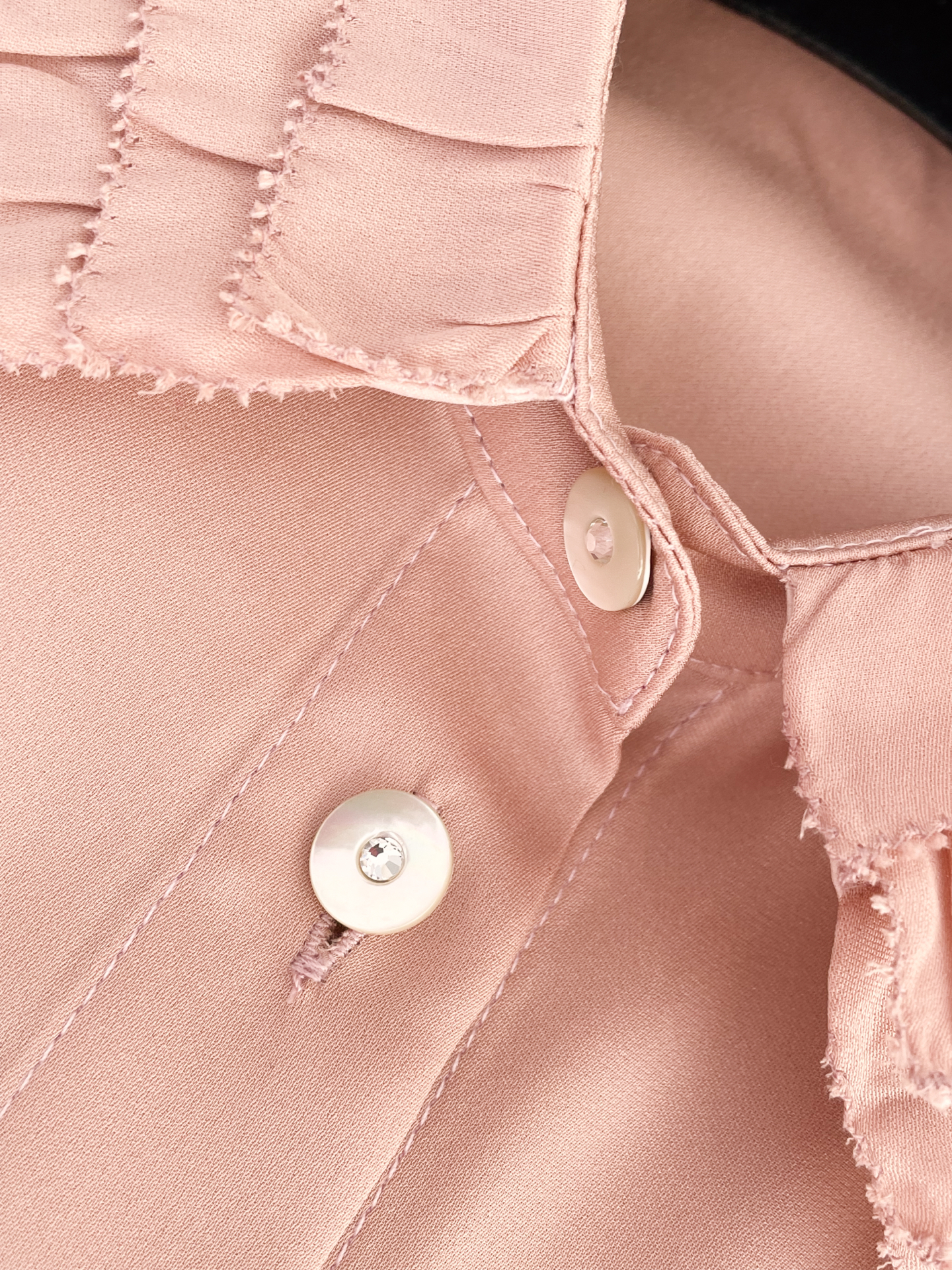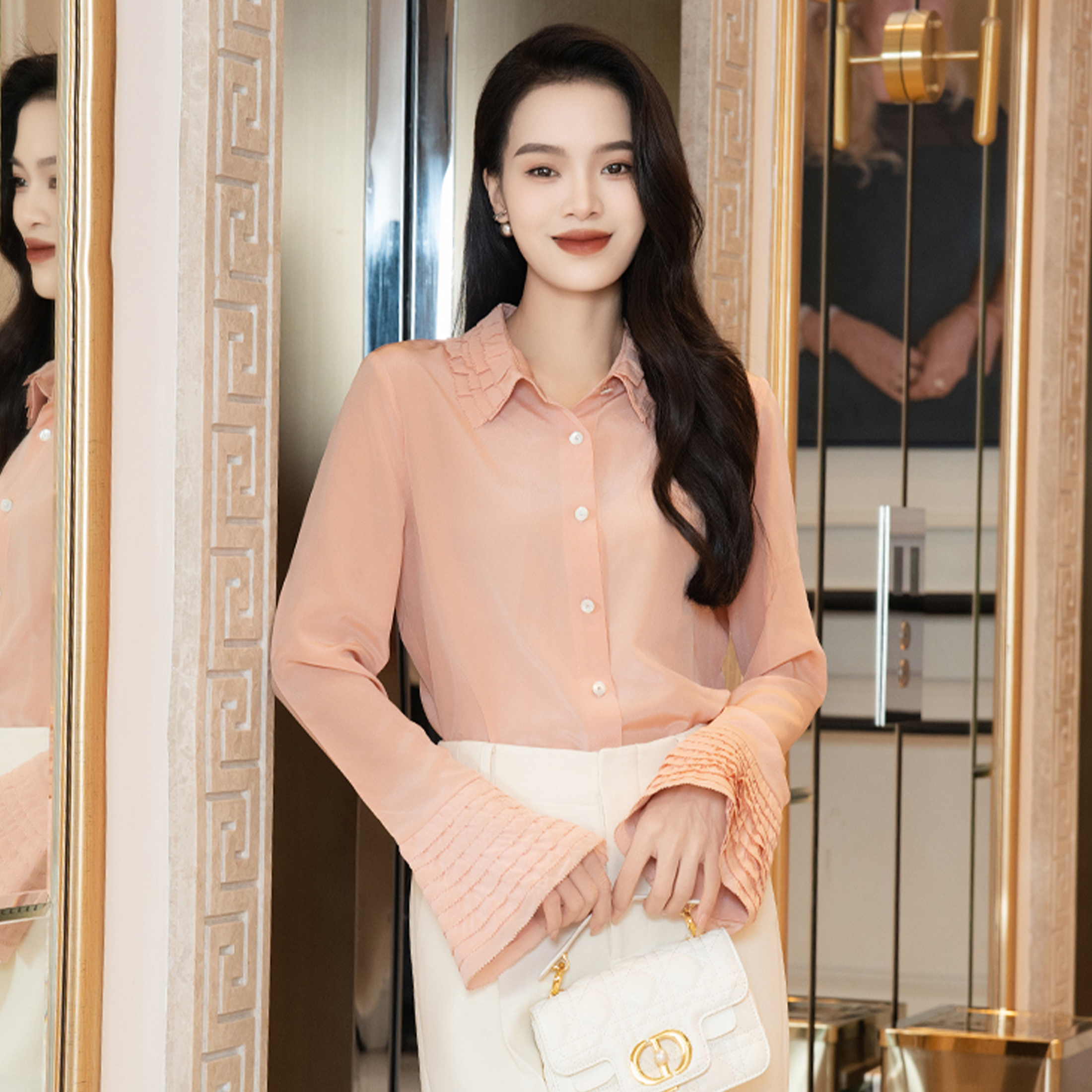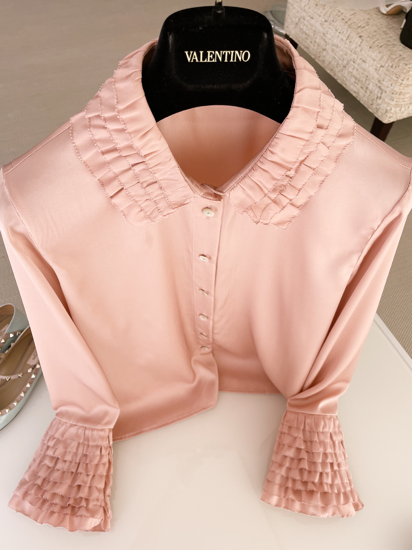 NIGO Valentino Women's Spring Pink Ruffled Lapel Single-breasted Silk Shirt Fashionable Temperament Elegant Blouse Ngvp #nigo9913