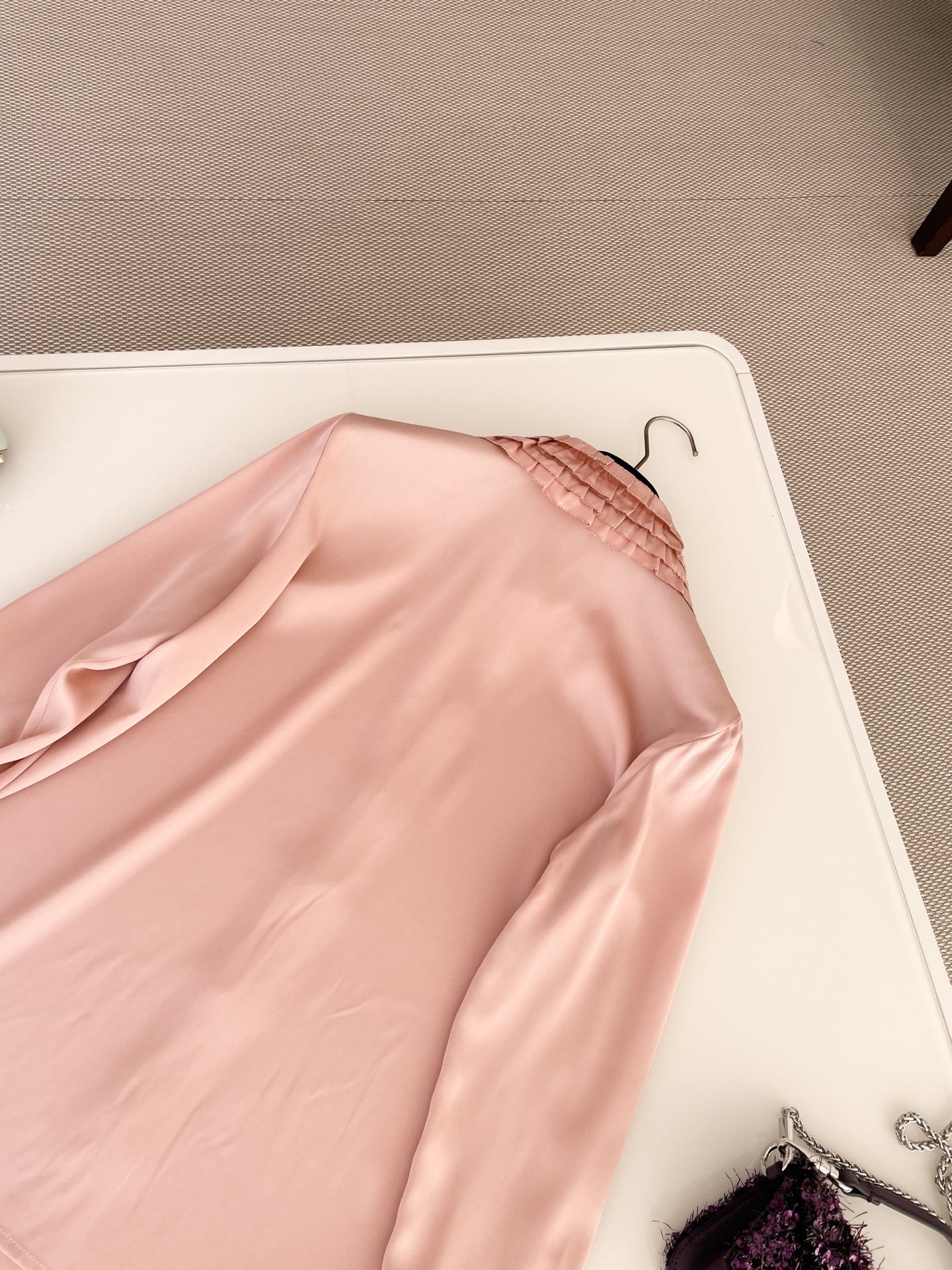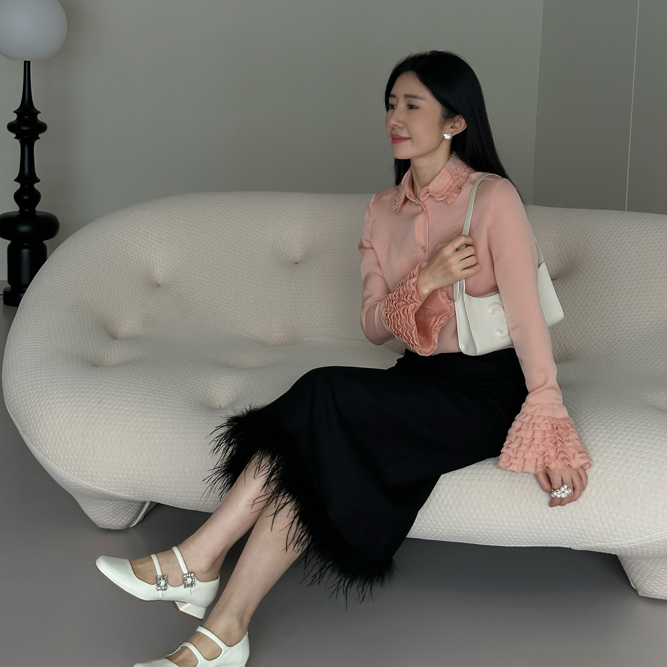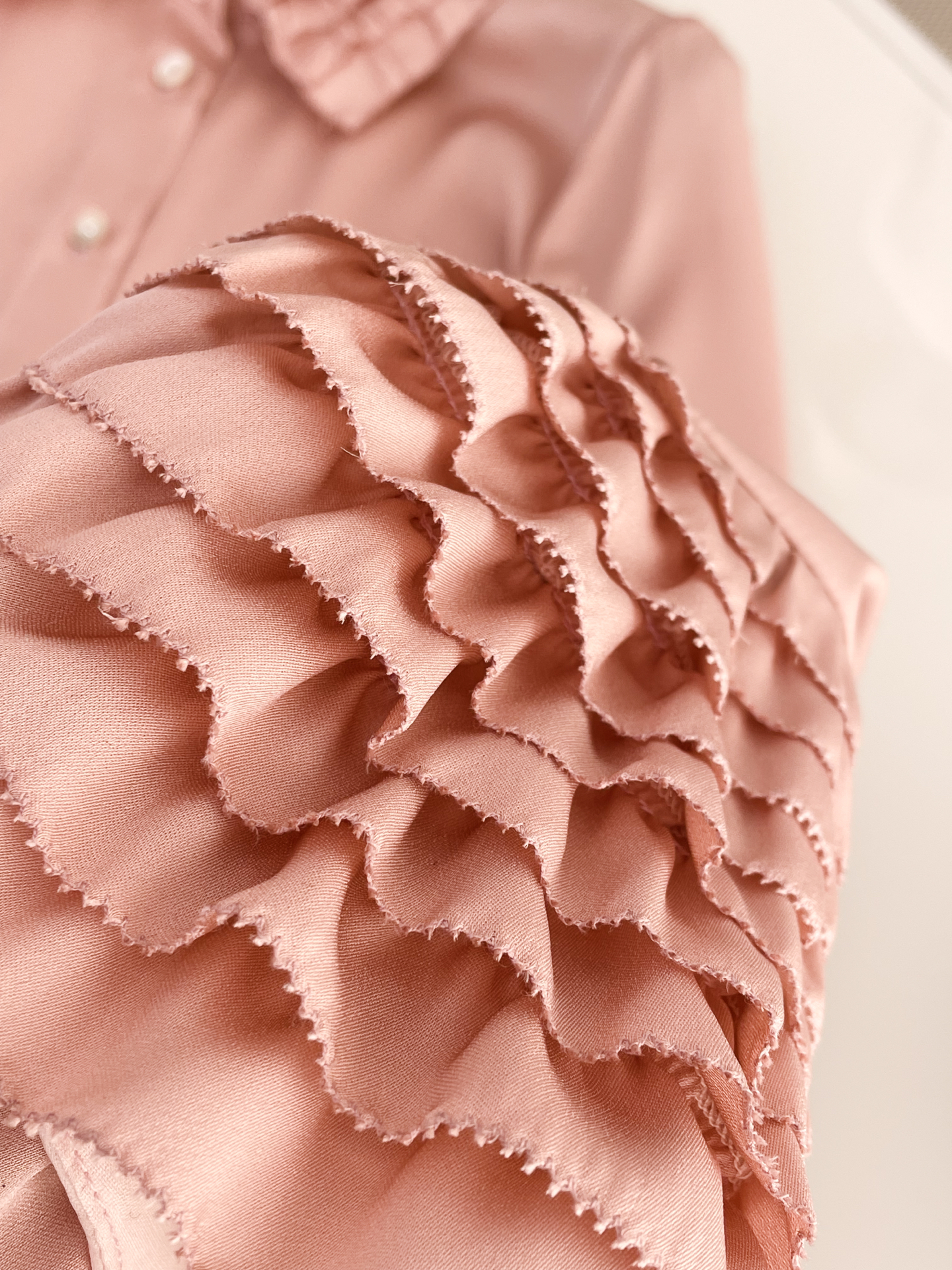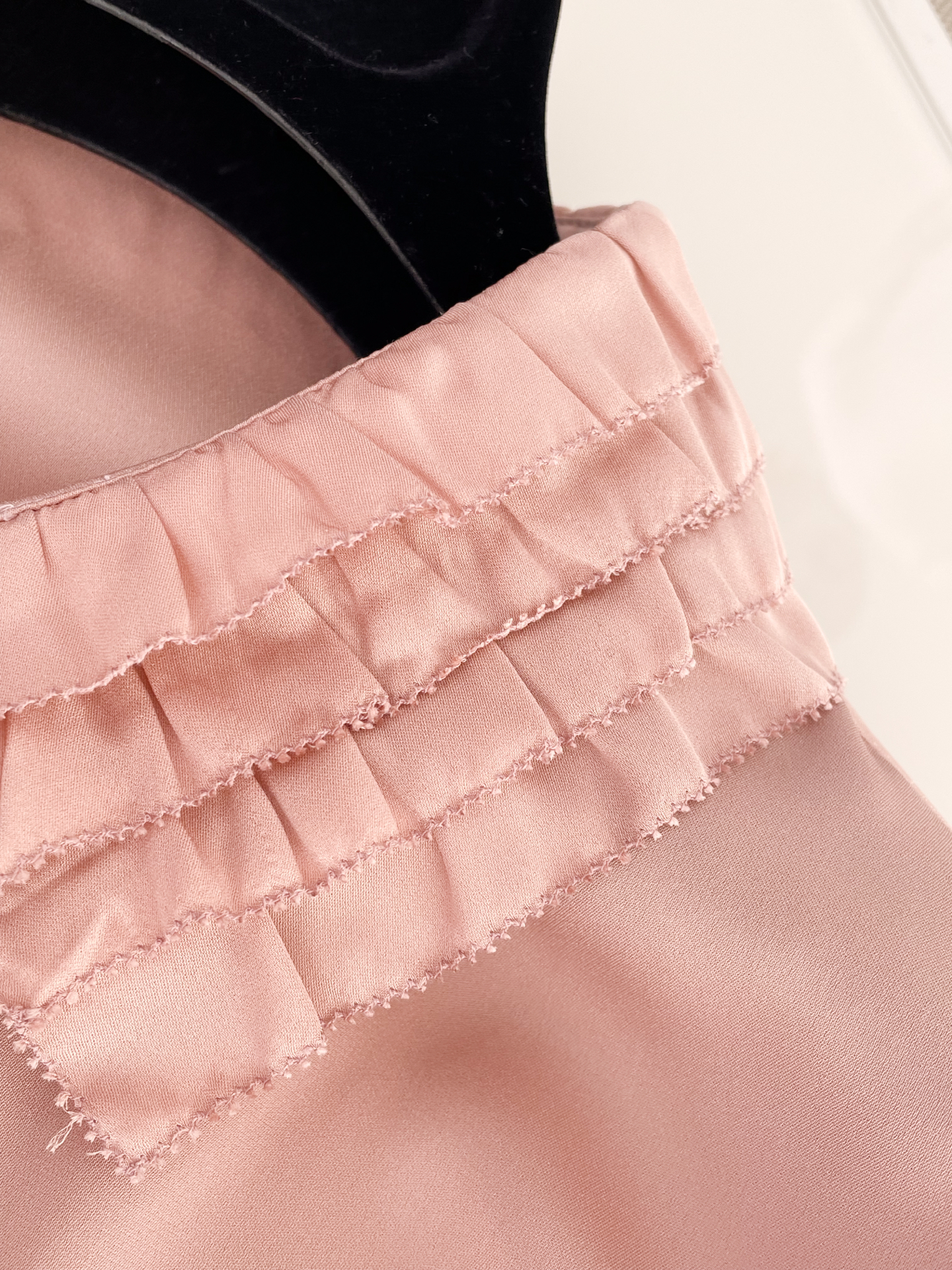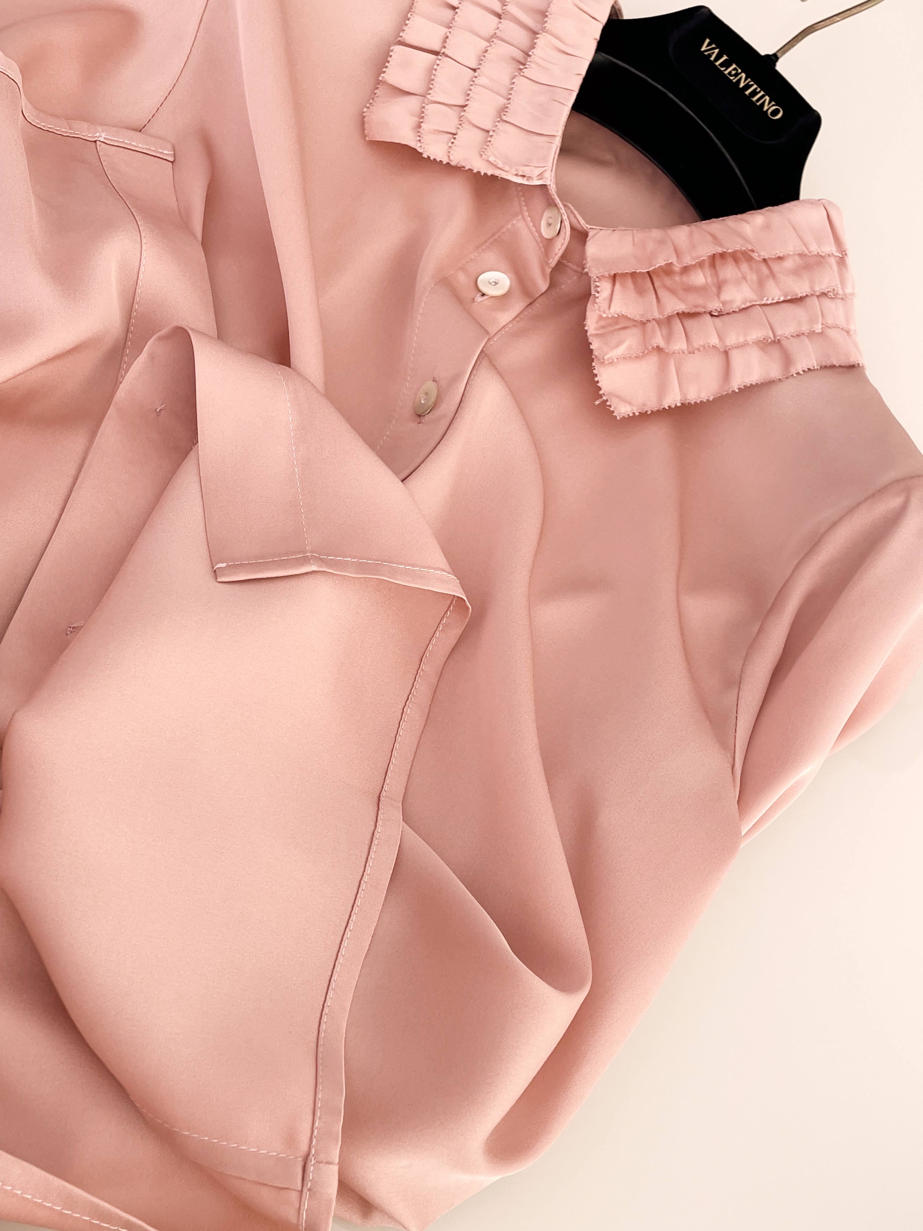 NIGO Valentino Women's Spring Pink Ruffled Lapel Single-breasted Silk Shirt Fashionable Temperament Elegant Blouse Ngvp #nigo9913