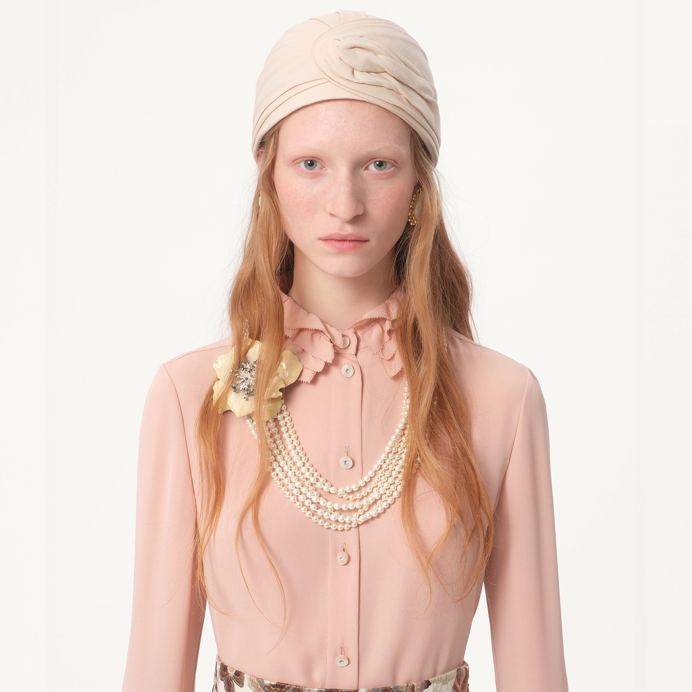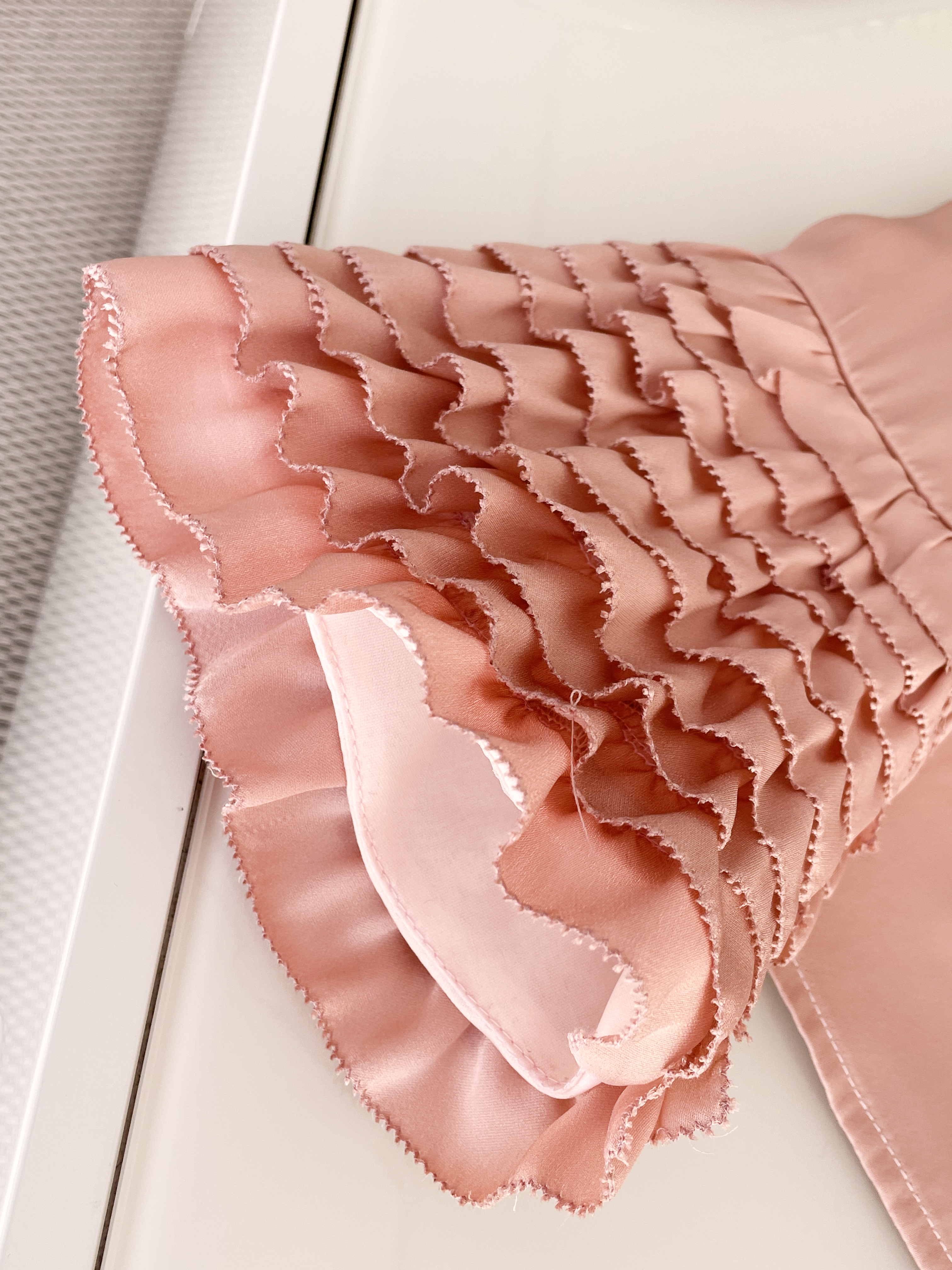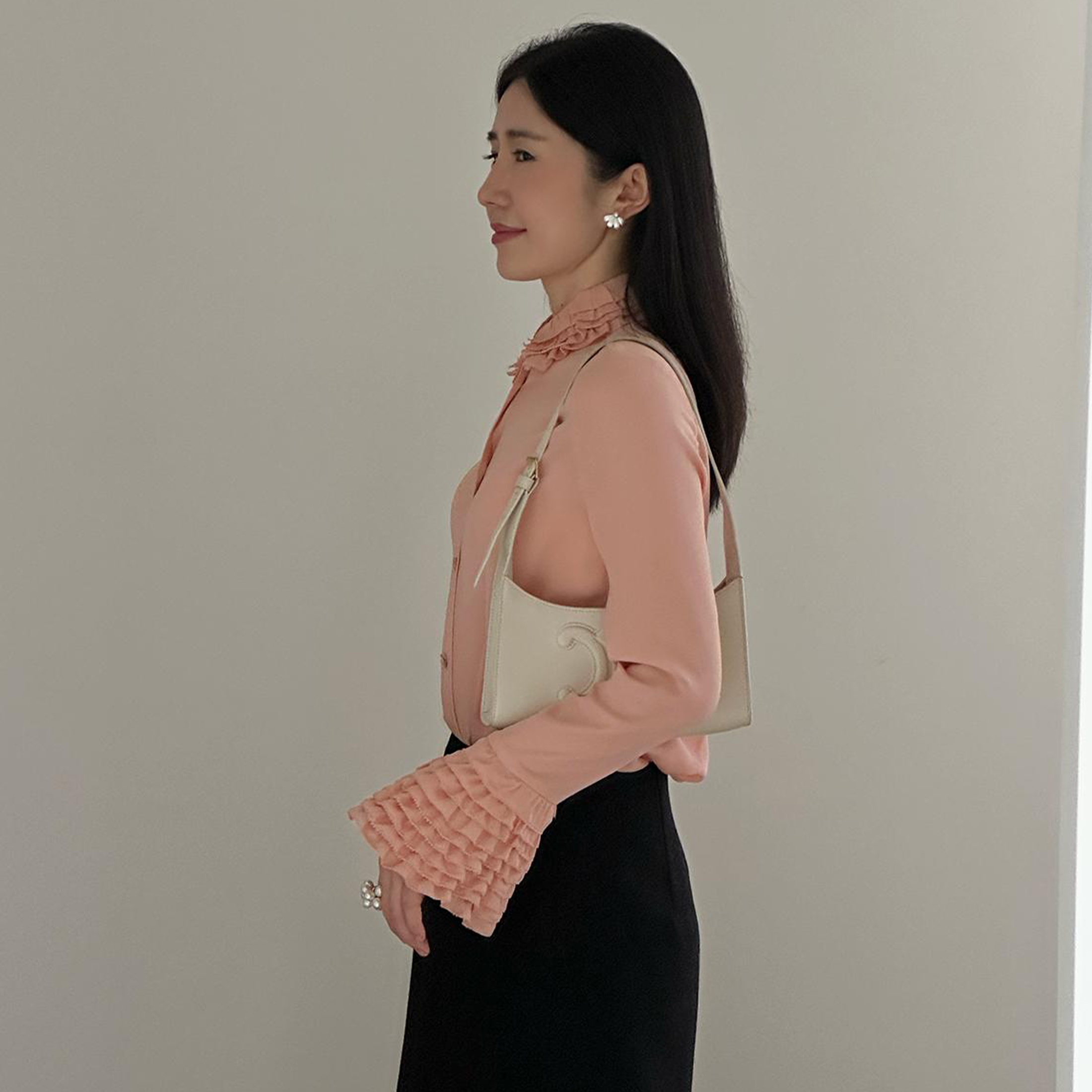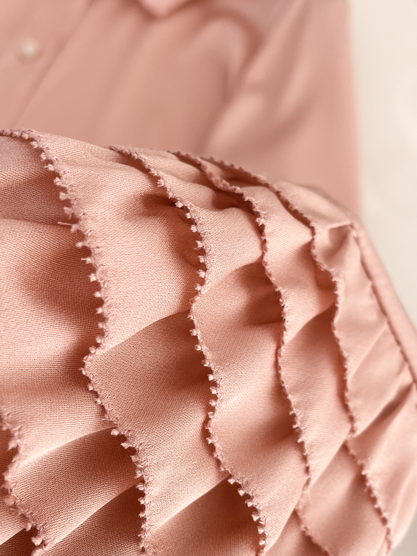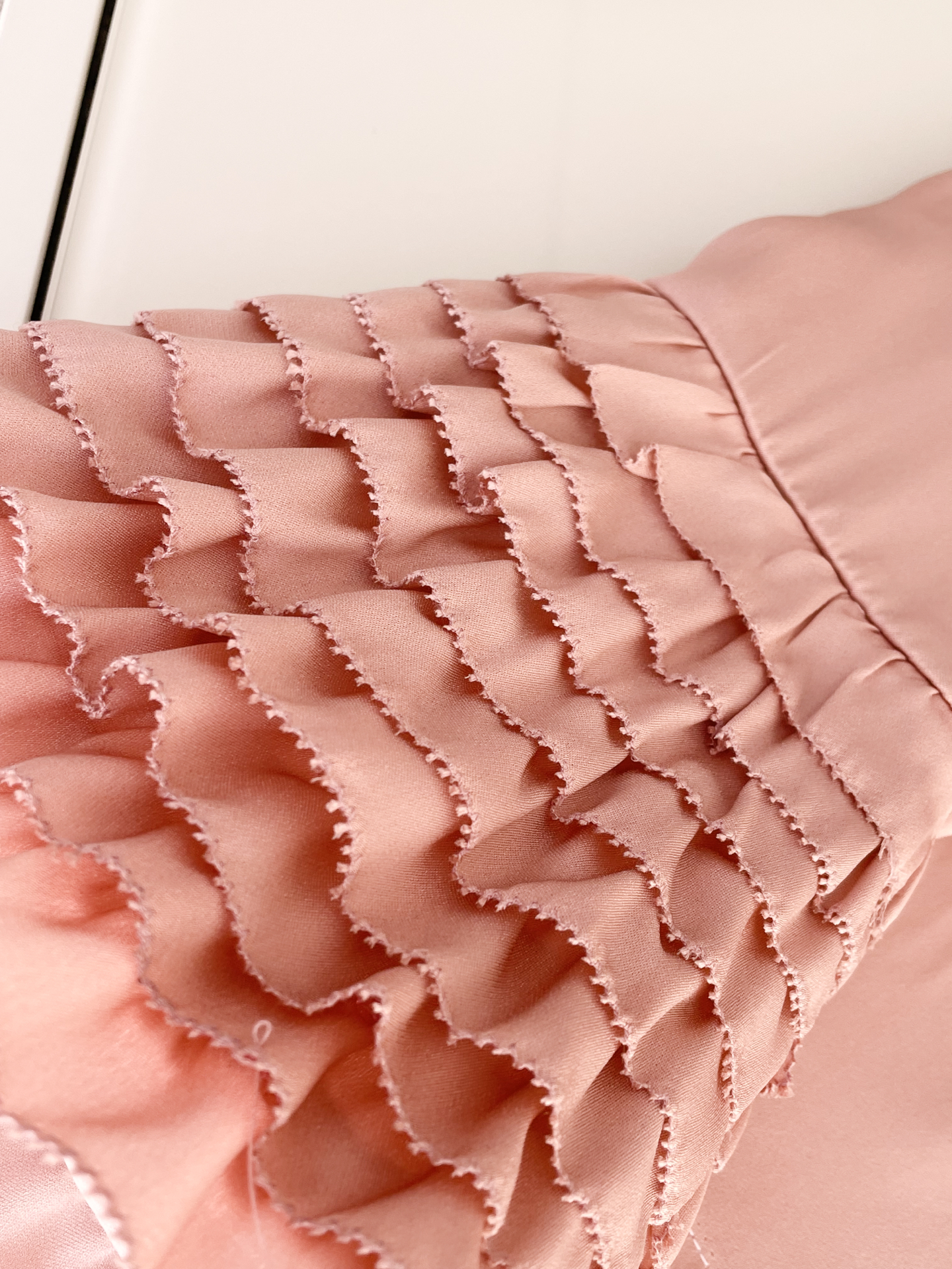 NIGO Valentino Women's Spring Pink Ruffled Lapel Single-breasted Silk Shirt Fashionable Temperament Elegant Blouse Ngvp #nigo9913