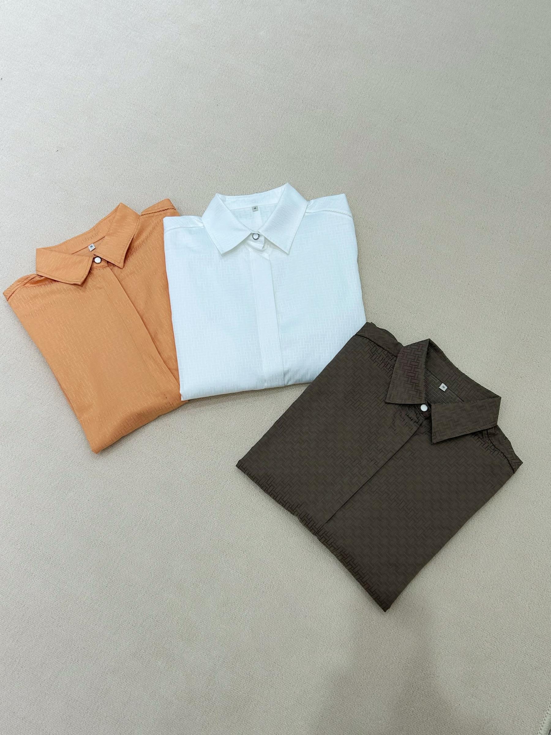 NIGO Hermes Women's Spring/Summer Solid Color Plain Pattern Single Button Long Sleeve “Mosaique” Shirt #nigo77514