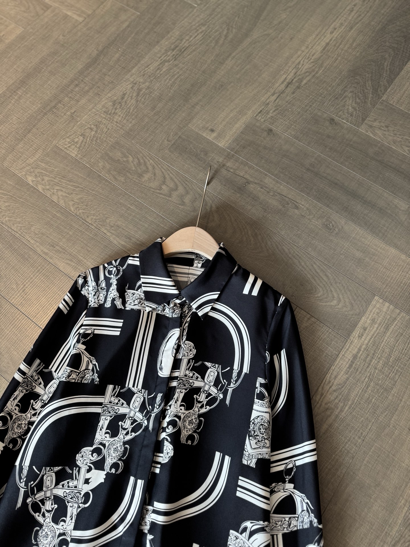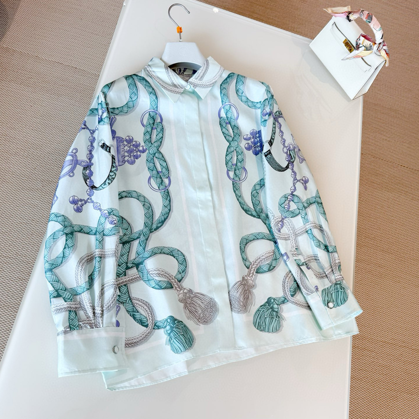 NIGO Hermes Women's Chain Printed Lapel Solid Color Silk Spring Summer Autumn Long Sleeve Fitted Shirt Ngvp #nigo2119