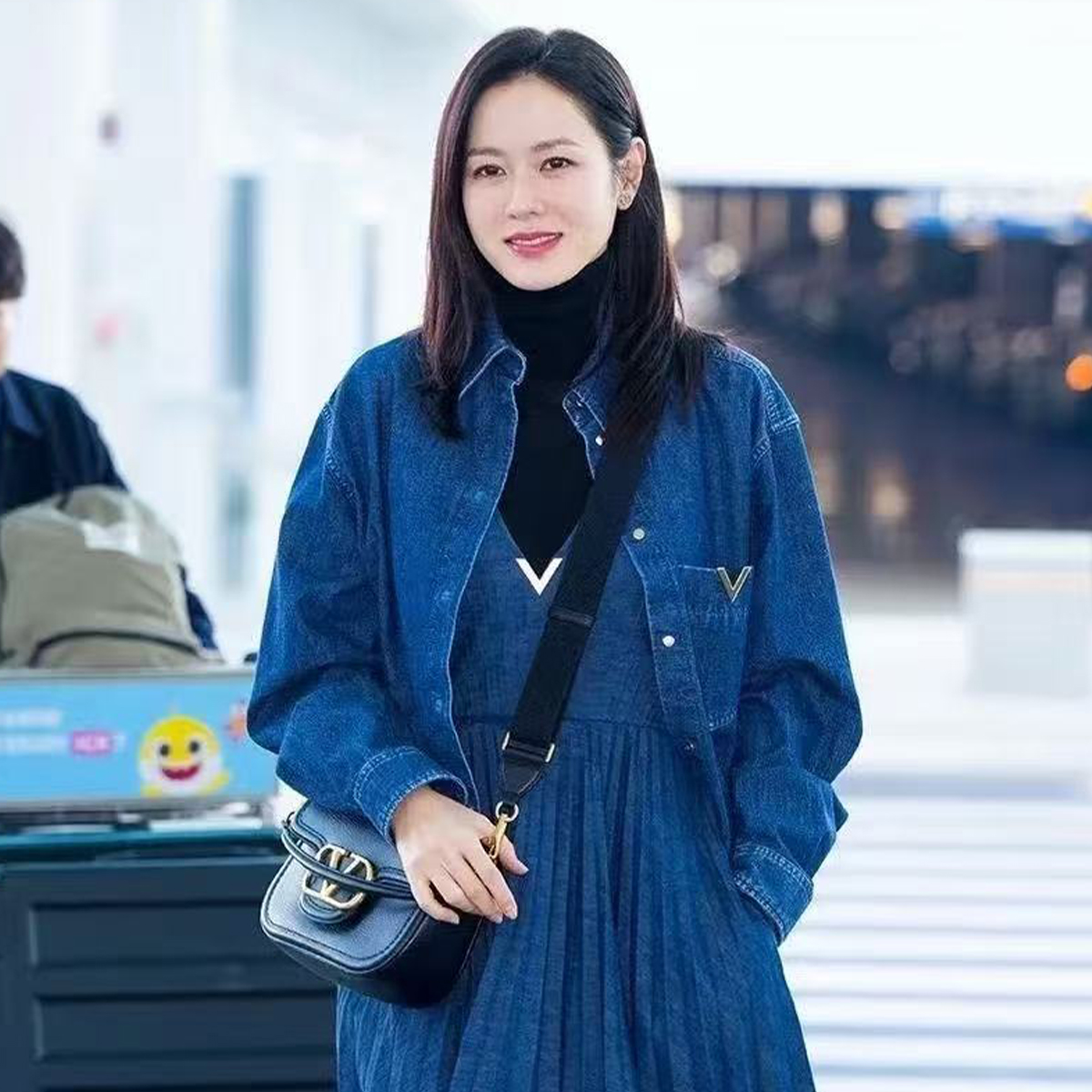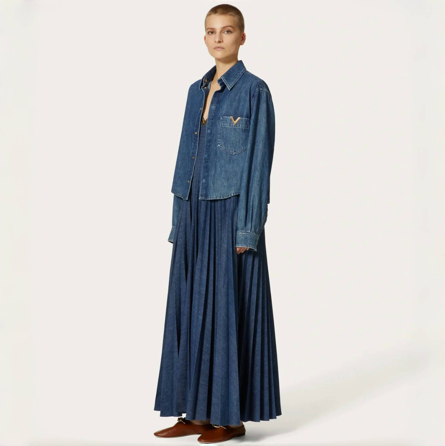 NIGO Valentino Women's Spring And Fall V Metal Logo Long Sleeve Vintage Lapel Single-breasted Denim Shirt Ngvp #nigo1988