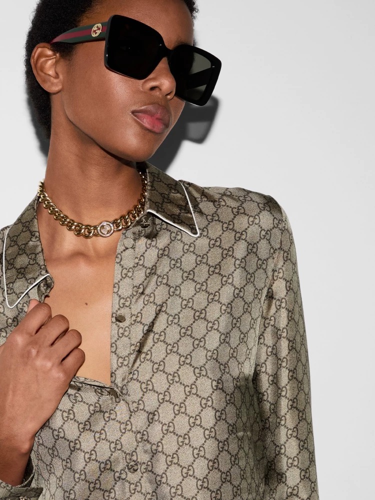 NIGO Gucci Women's Summer Solid Color Letter Print Single Button Long Sleeve Shirt #nigo77923