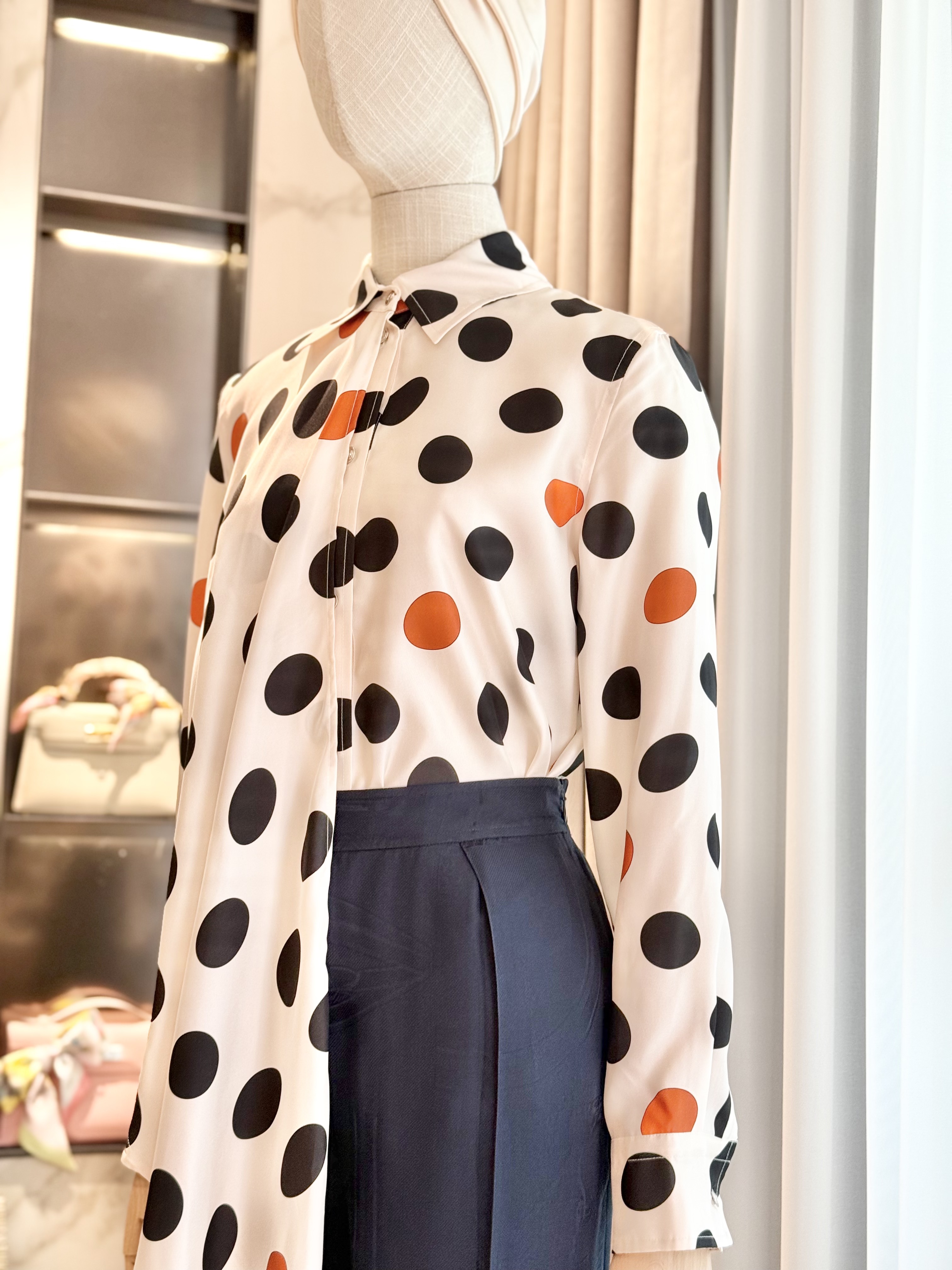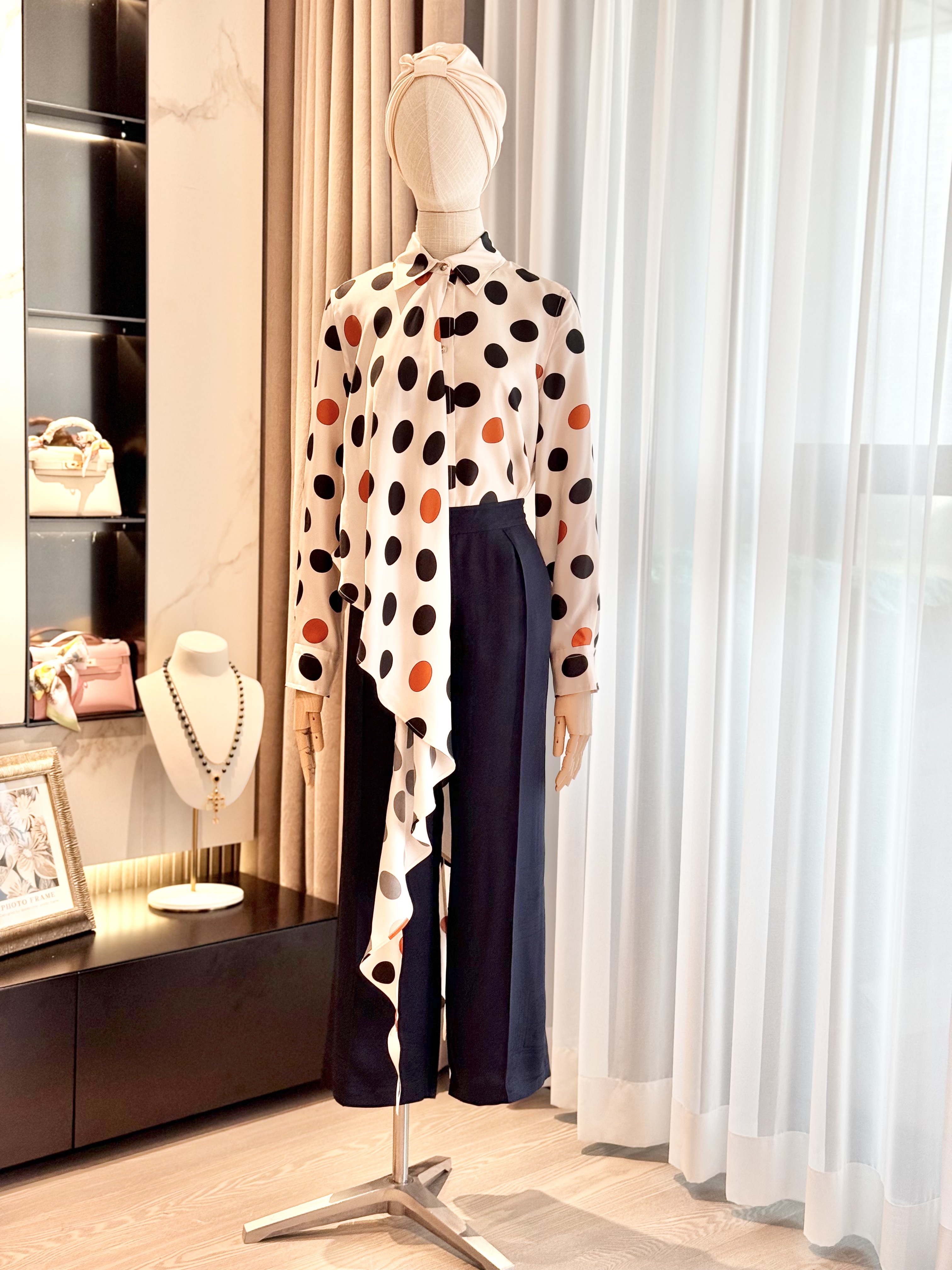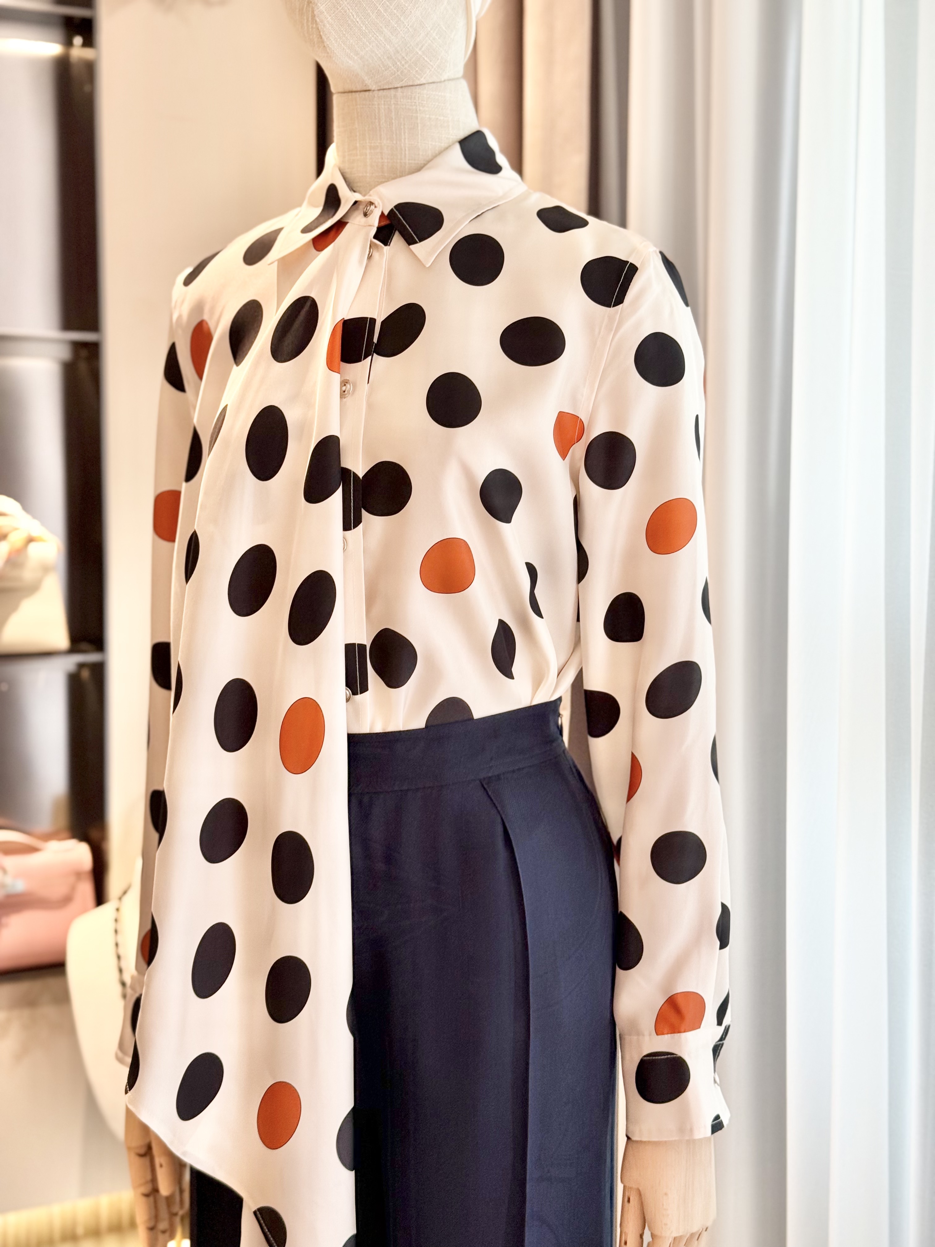 NIGO Bottega Veneta Women's Summer Polka Dot Printed Ribbon Lapel Long Sleeve Silk Shirt Ngvp #nigo9945