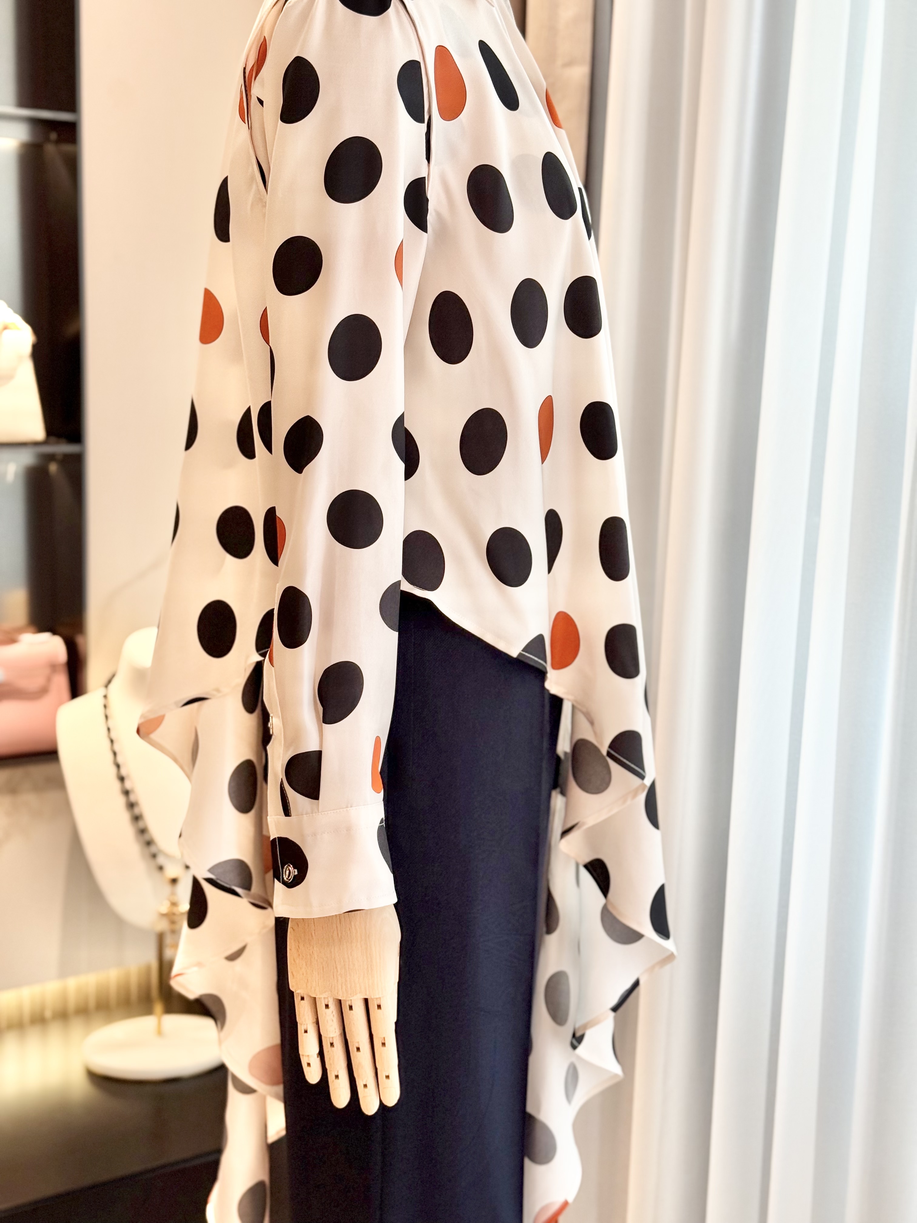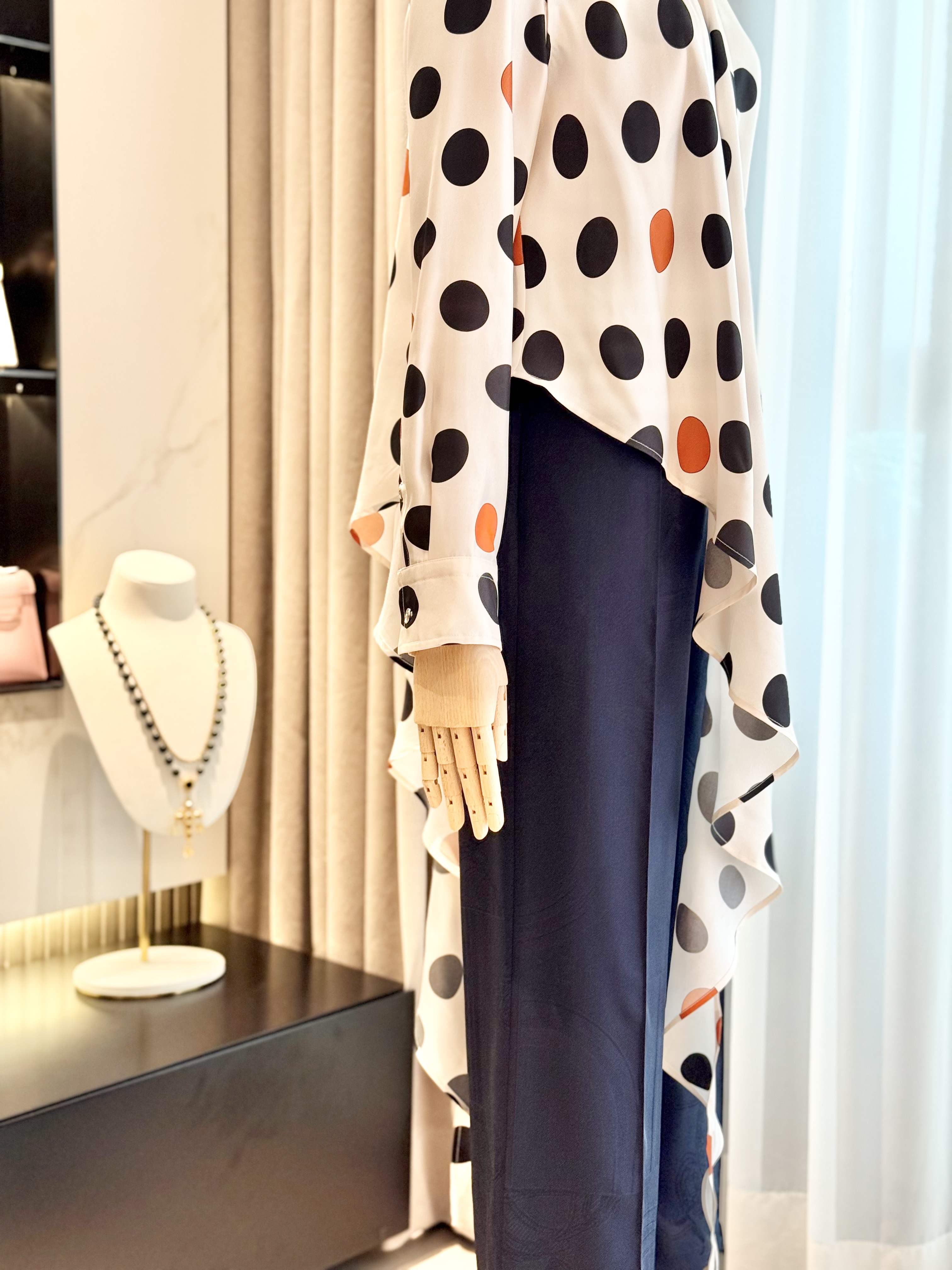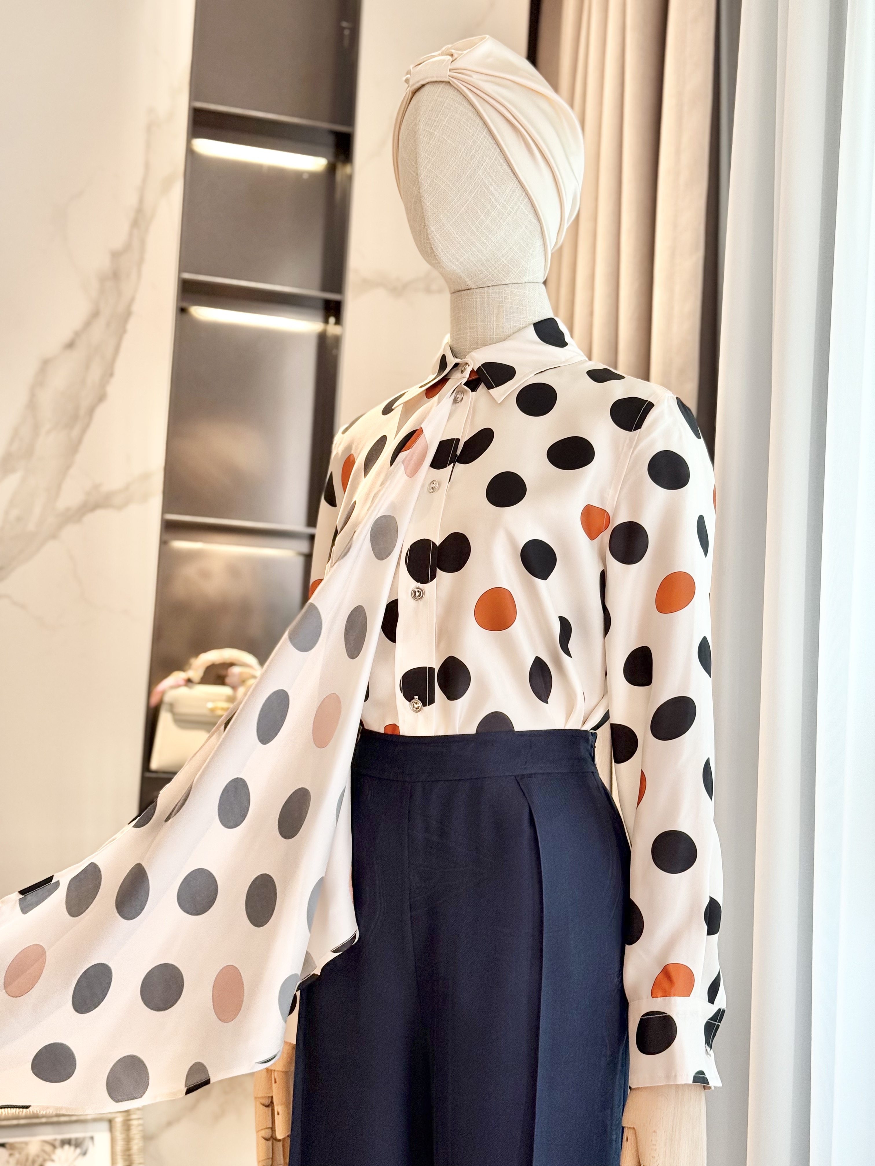 NIGO Bottega Veneta Women's Summer Polka Dot Printed Ribbon Lapel Long Sleeve Silk Shirt Ngvp #nigo9945