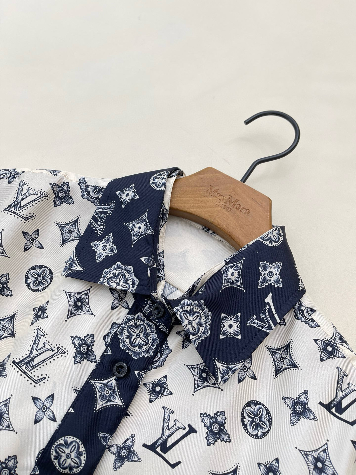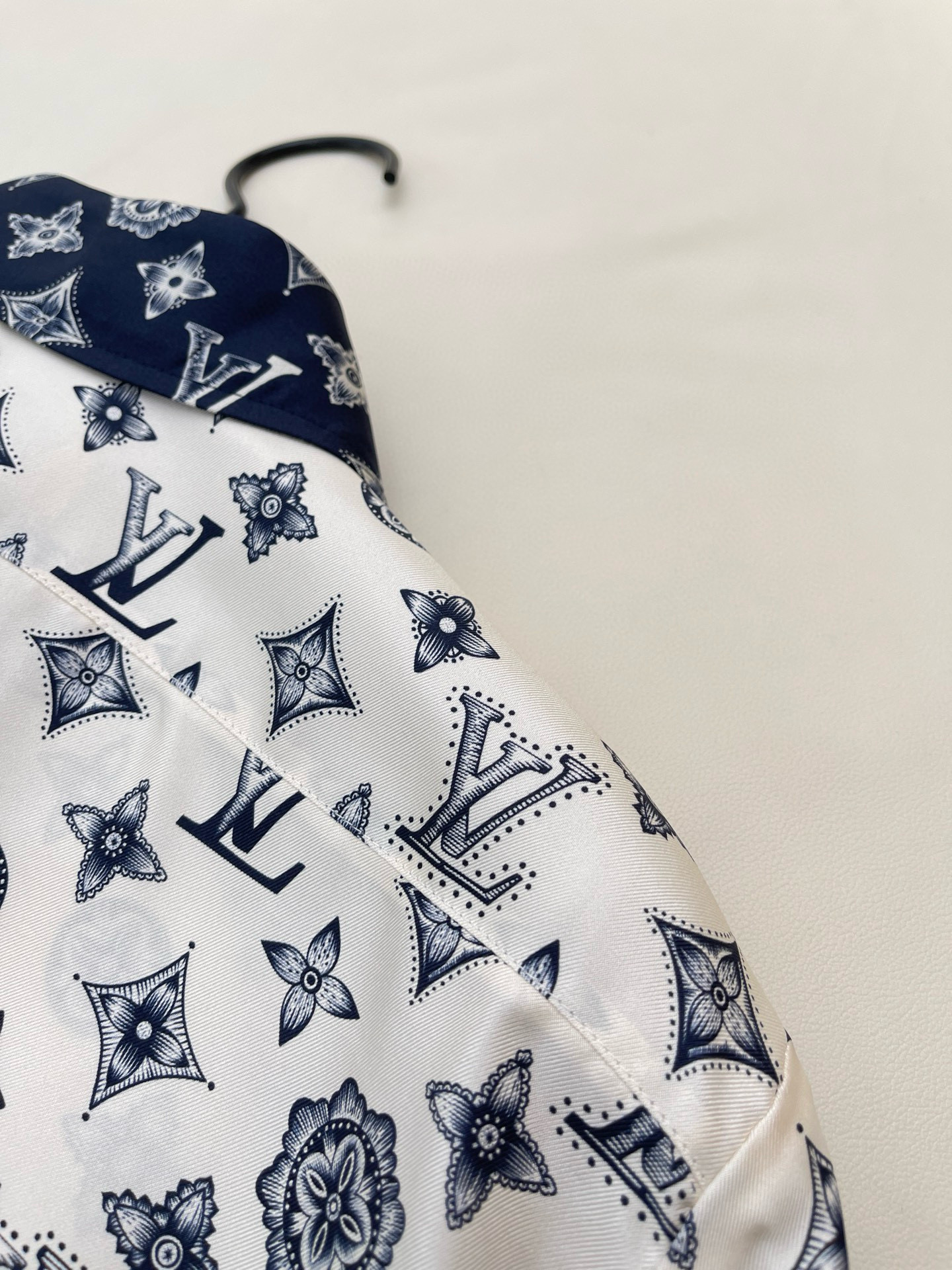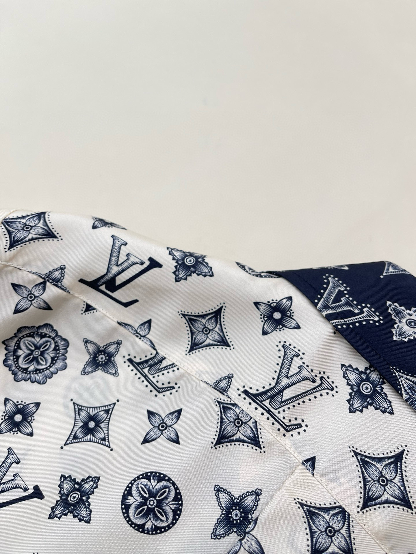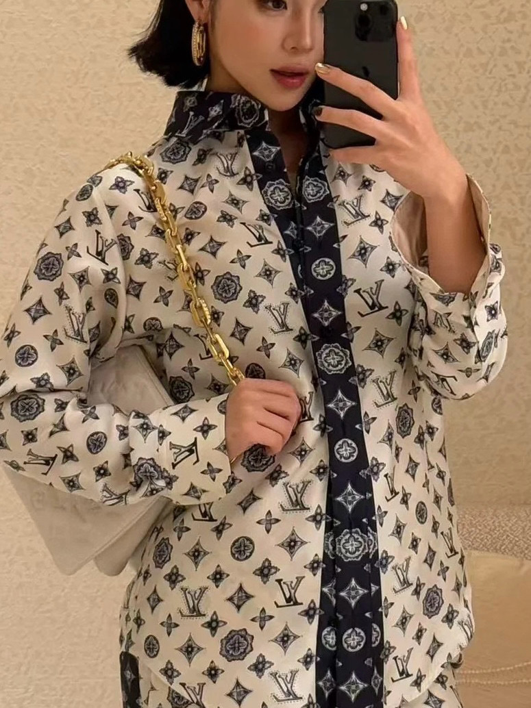 NIGO Louis Vuitton Women's Summer Letter Logo Print Twill Silk Solid Color Long Sleeve Shirt #nigo75394