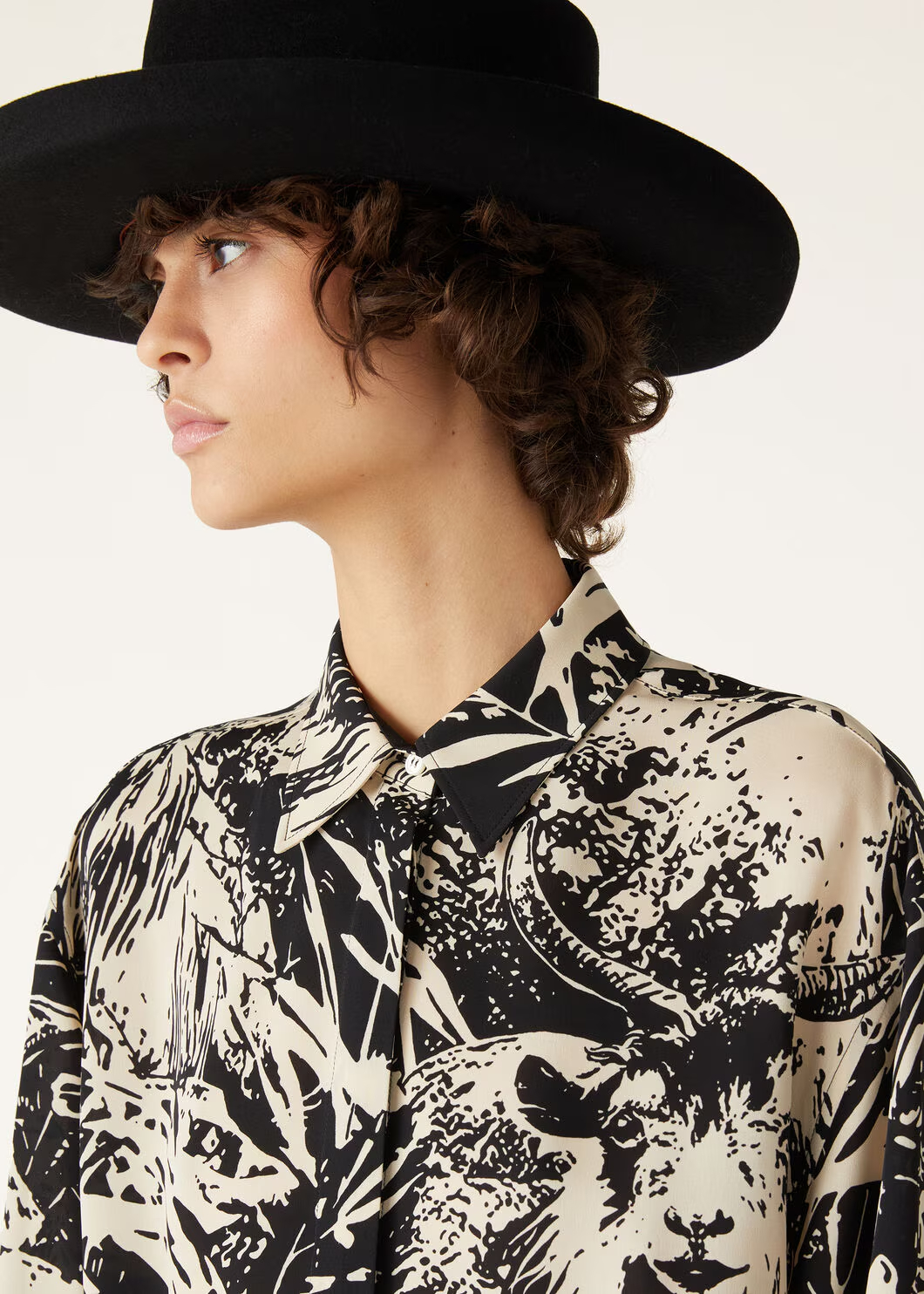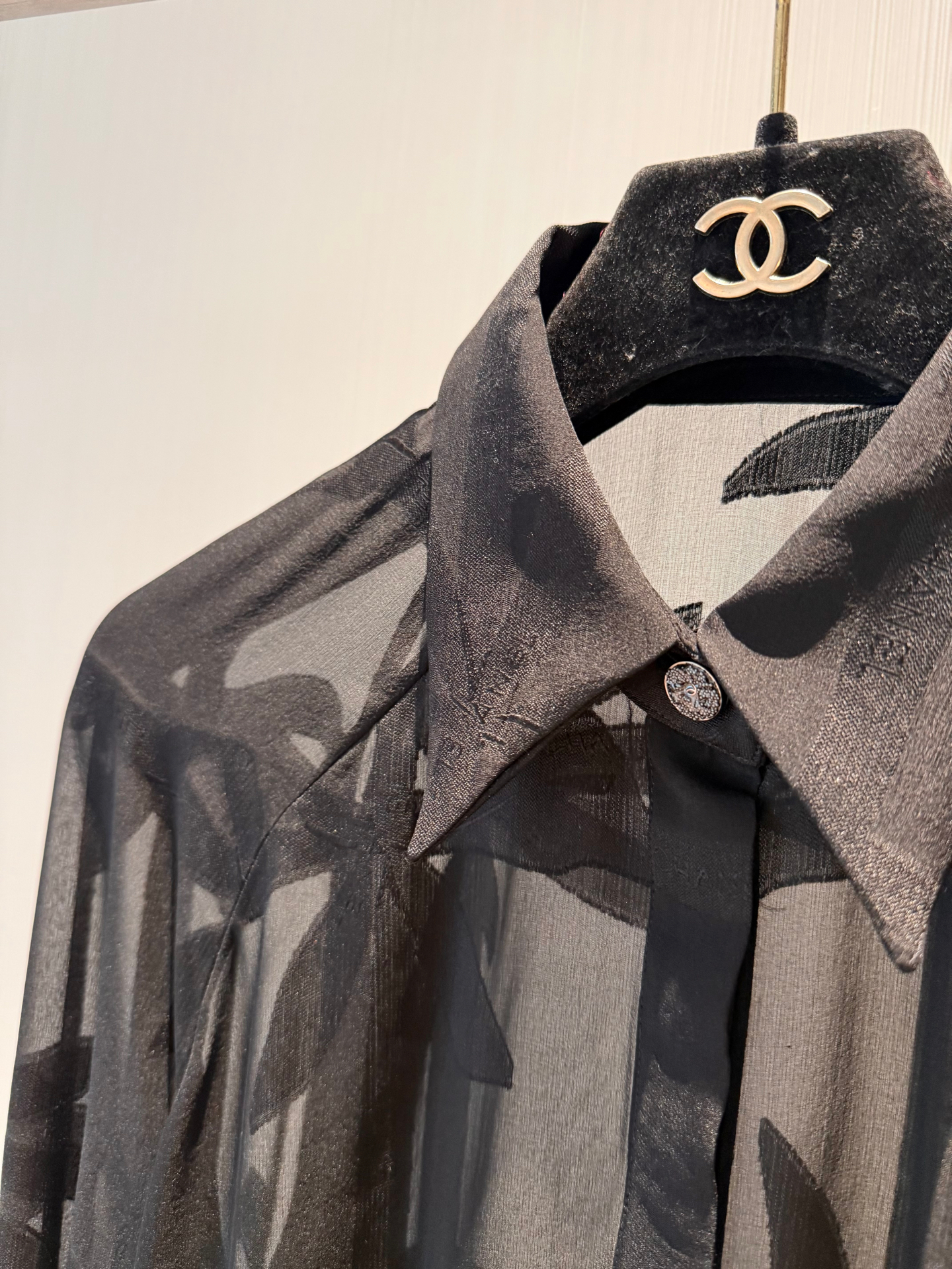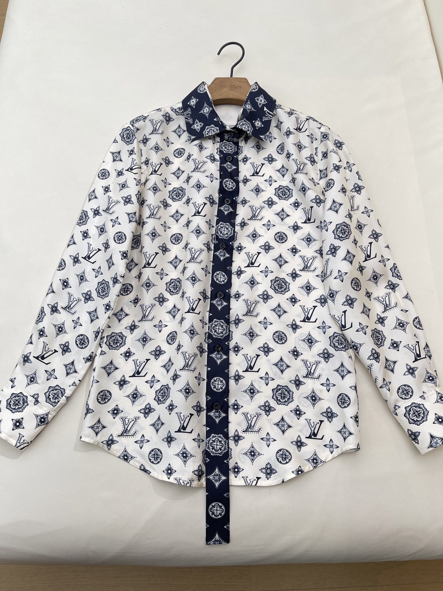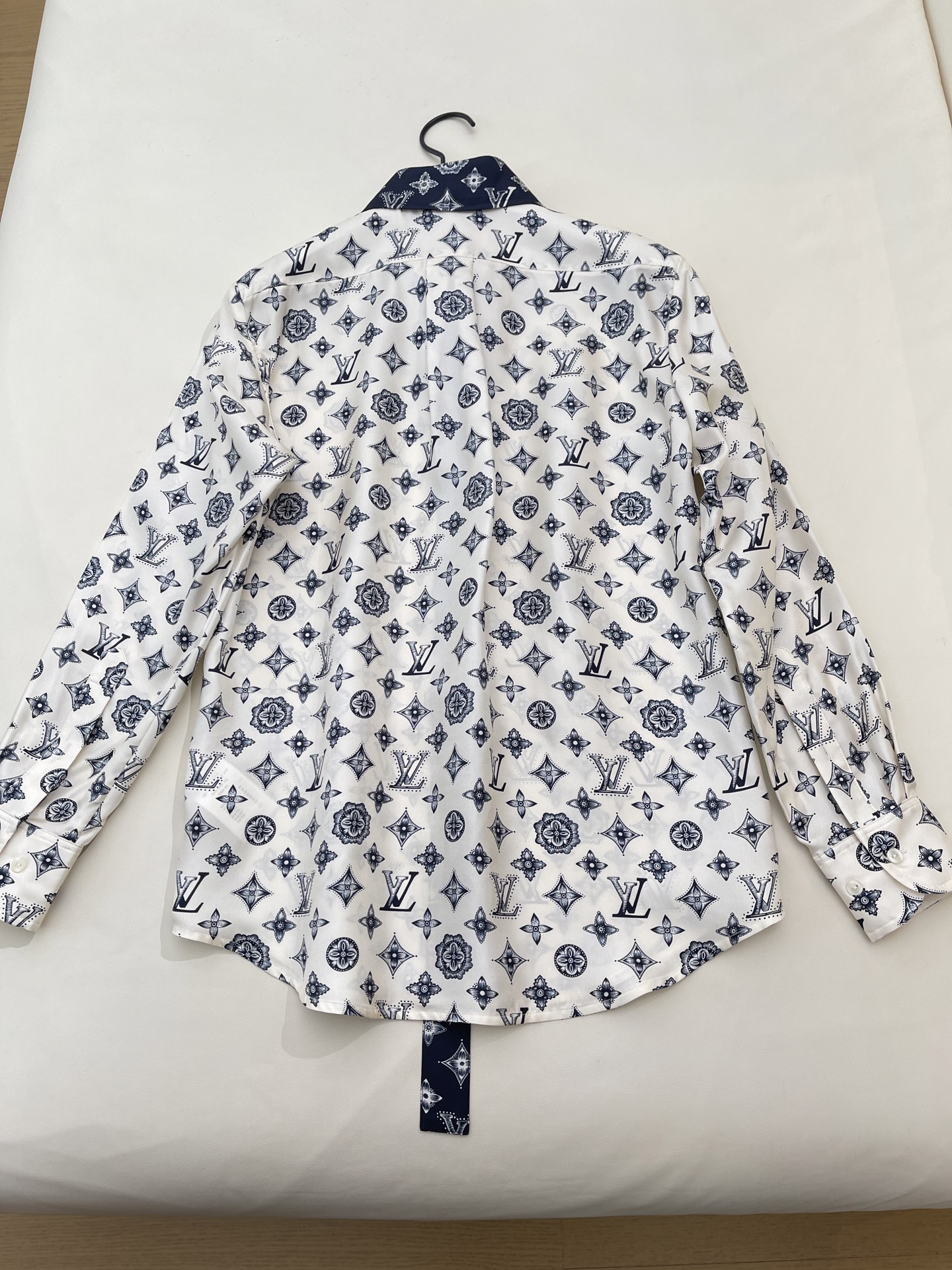 NIGO Louis Vuitton Women's Summer Letter Logo Print Twill Silk Solid Color Long Sleeve Shirt #nigo75394