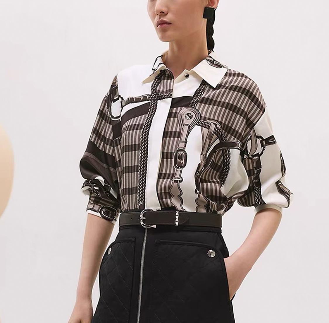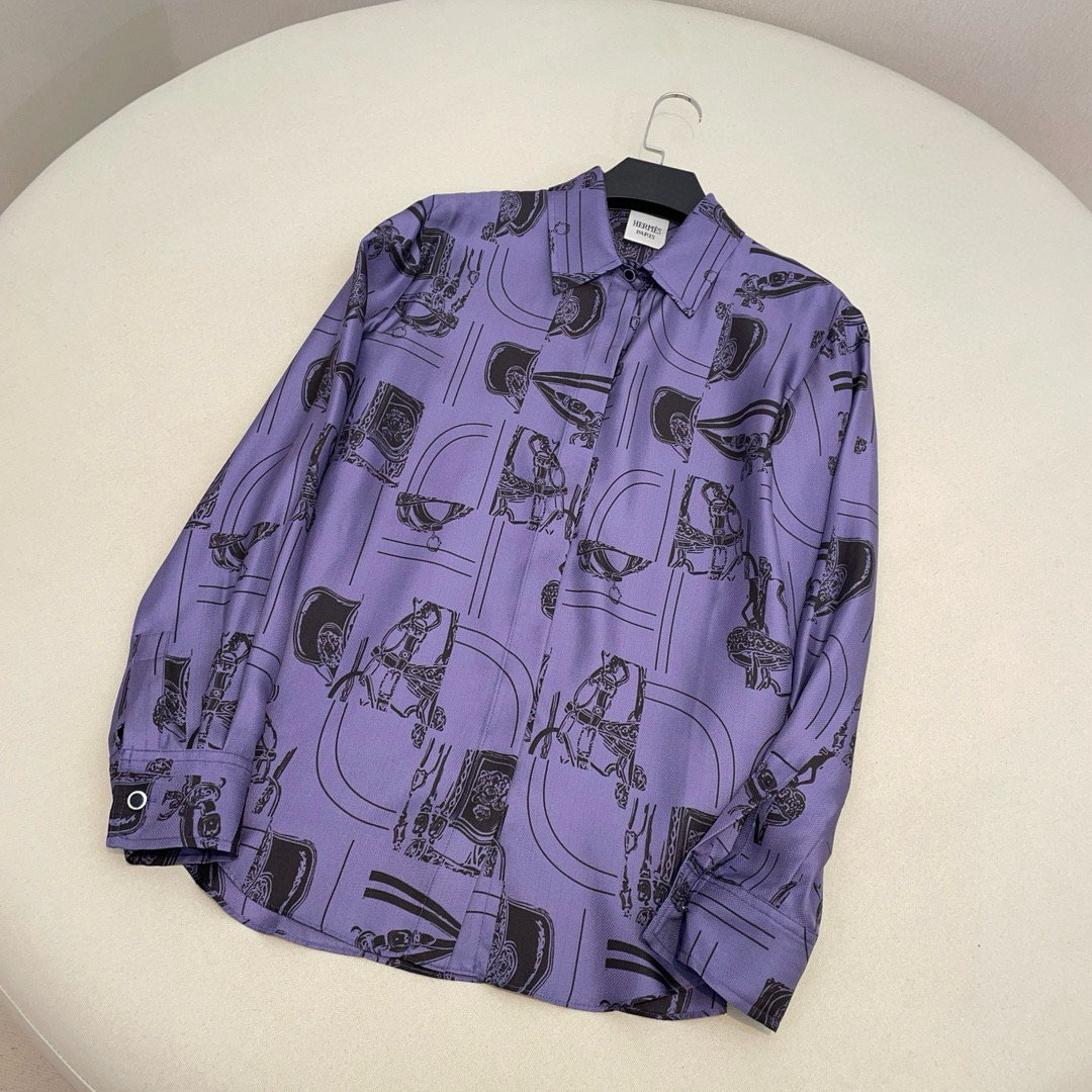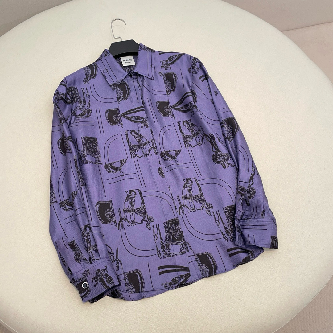 NIGO Hermes Women's Summer Jacquard Solid Color Silk Loose Lapel Long Sleeve Shirt Ngvp #nigo1144