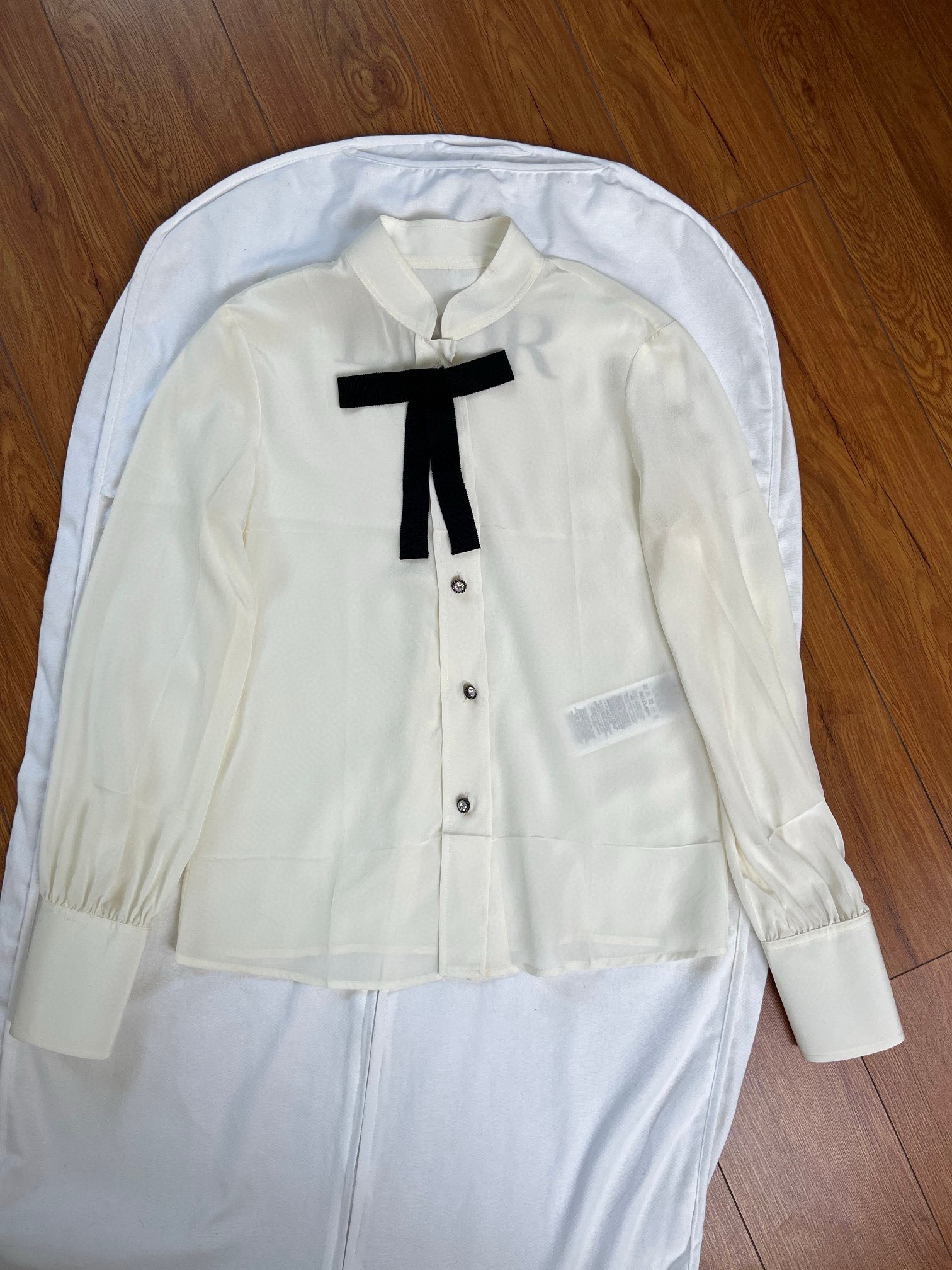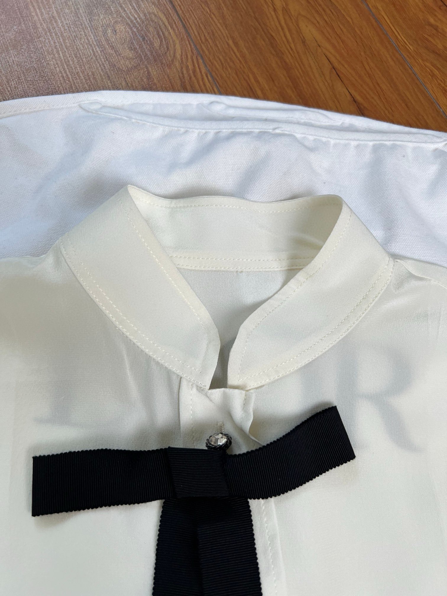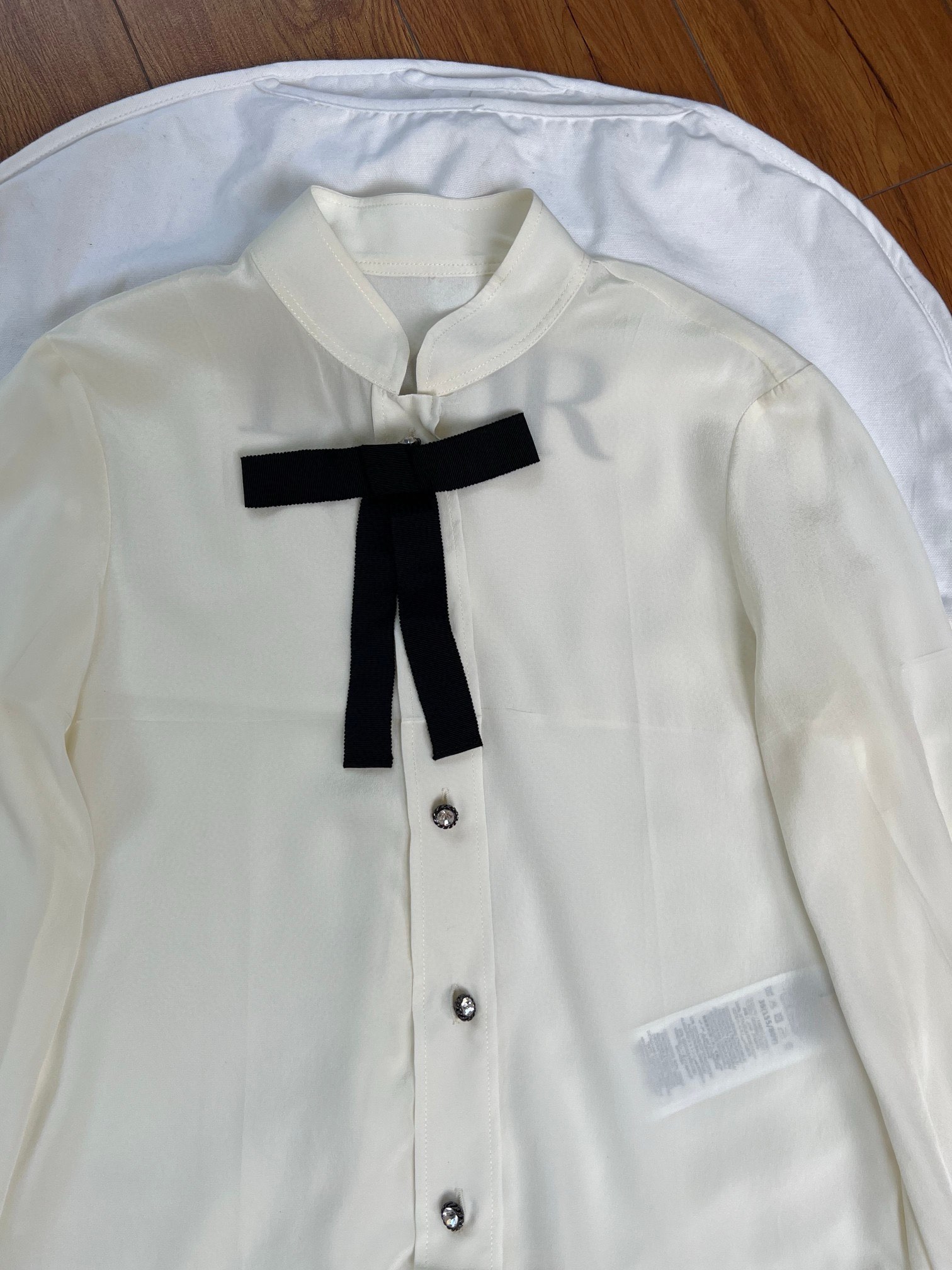 NIGO Valentino Women's Summer Solid Color Long Sleeved Bow Flutter Silk Single Breasted Shirt #nigo74765