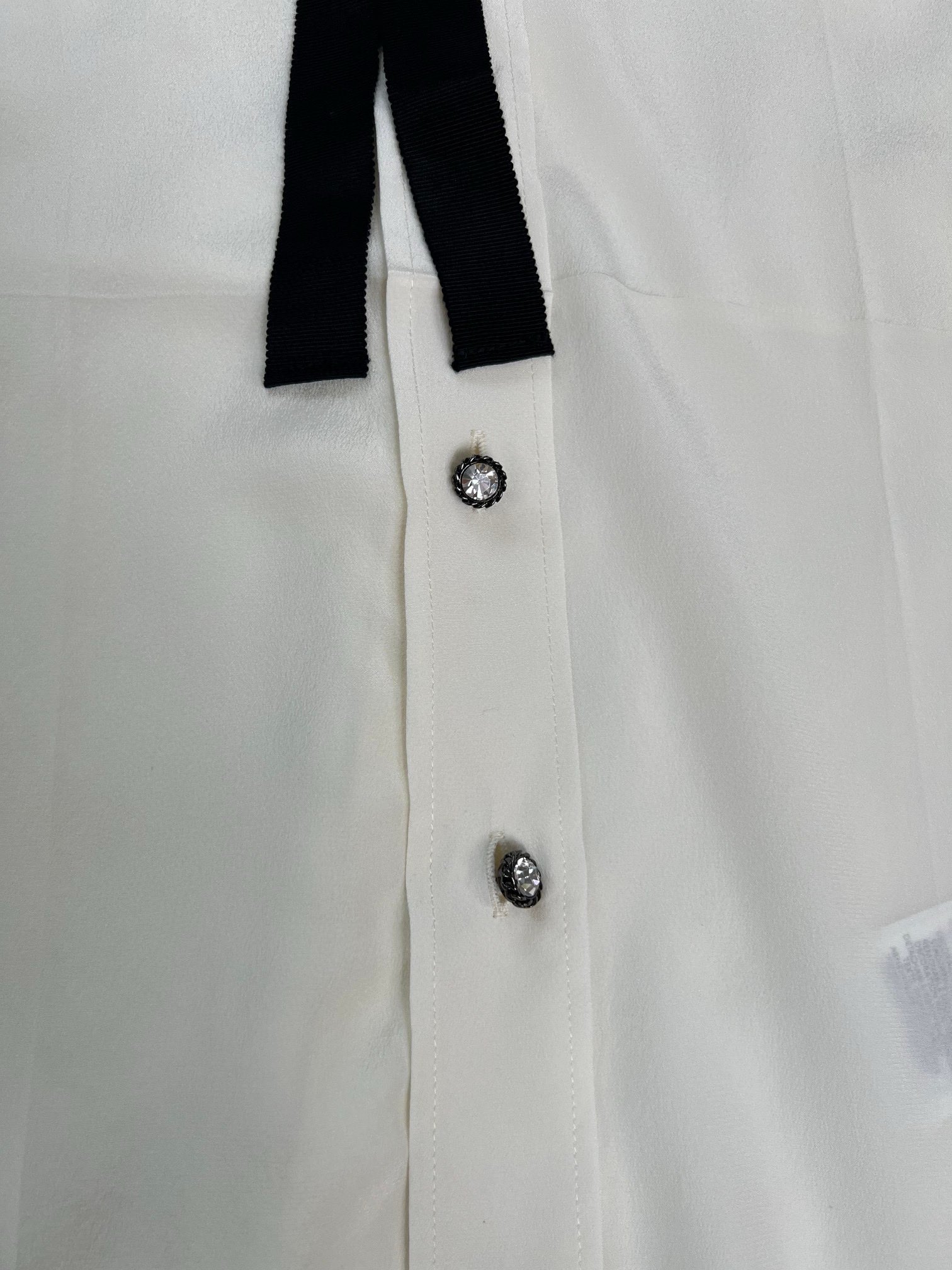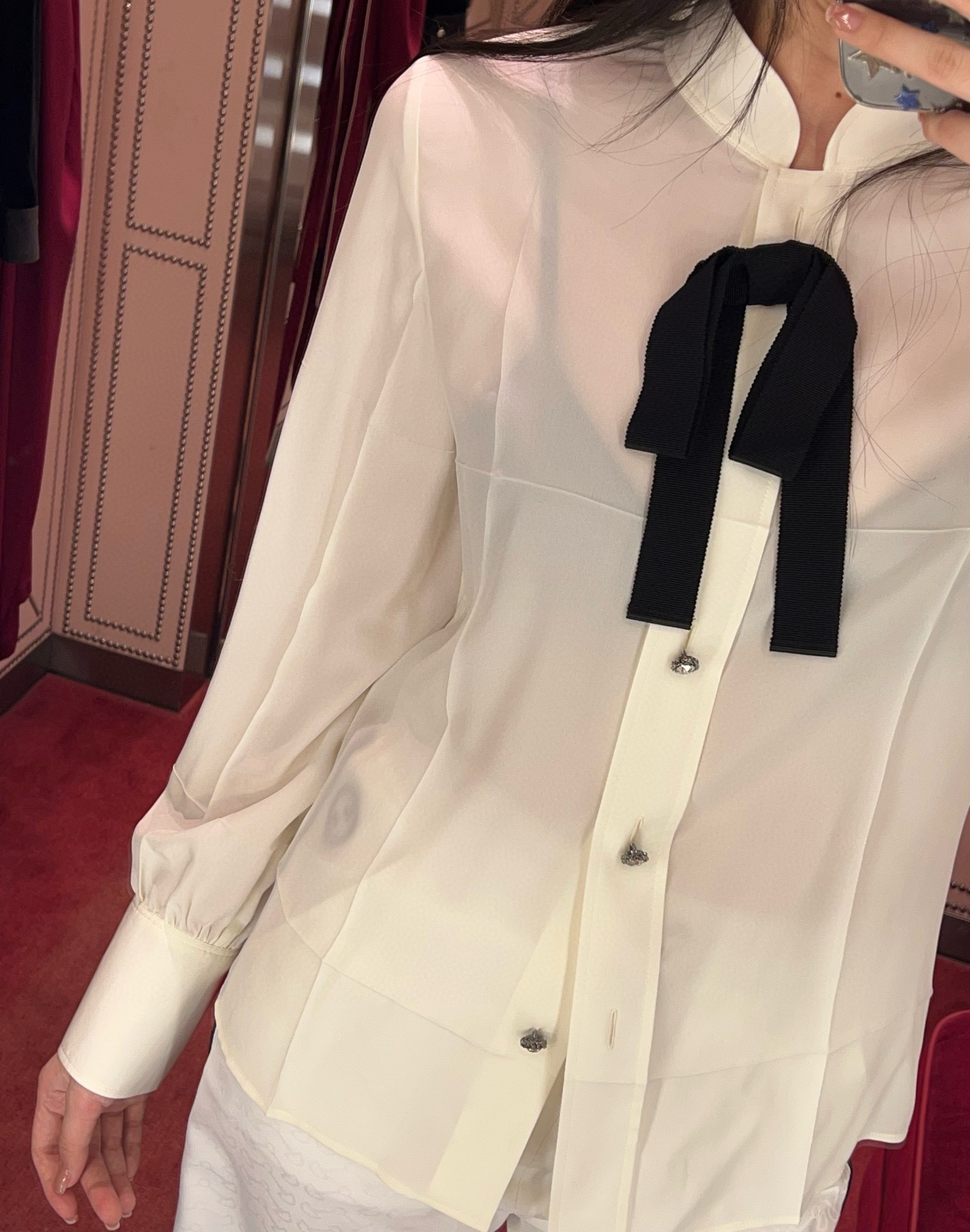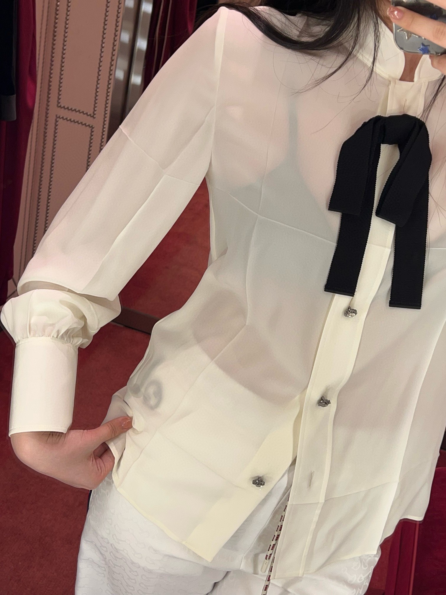 NIGO Valentino Women's Summer Solid Color Long Sleeved Bow Flutter Silk Single Breasted Shirt #nigo74765