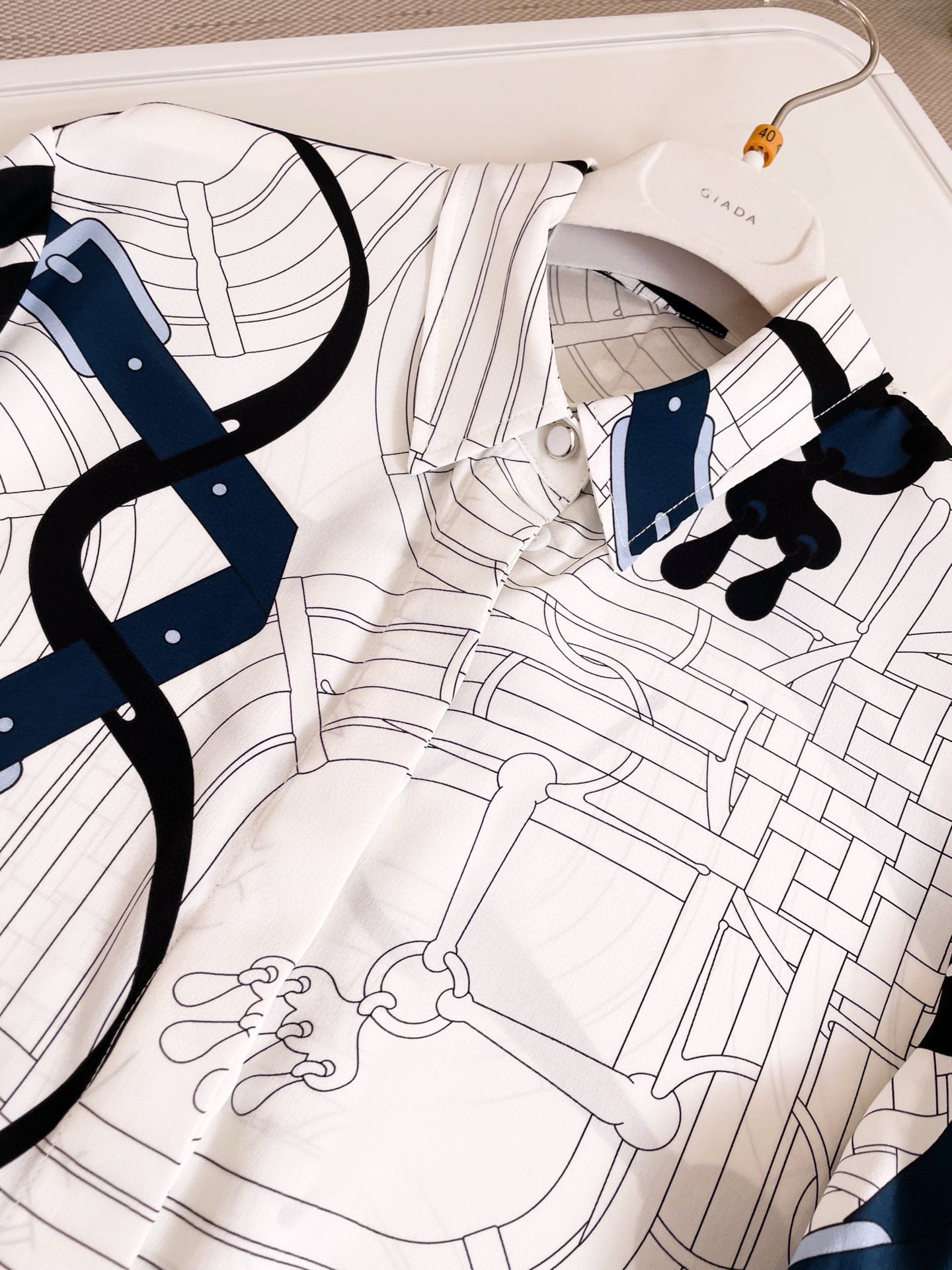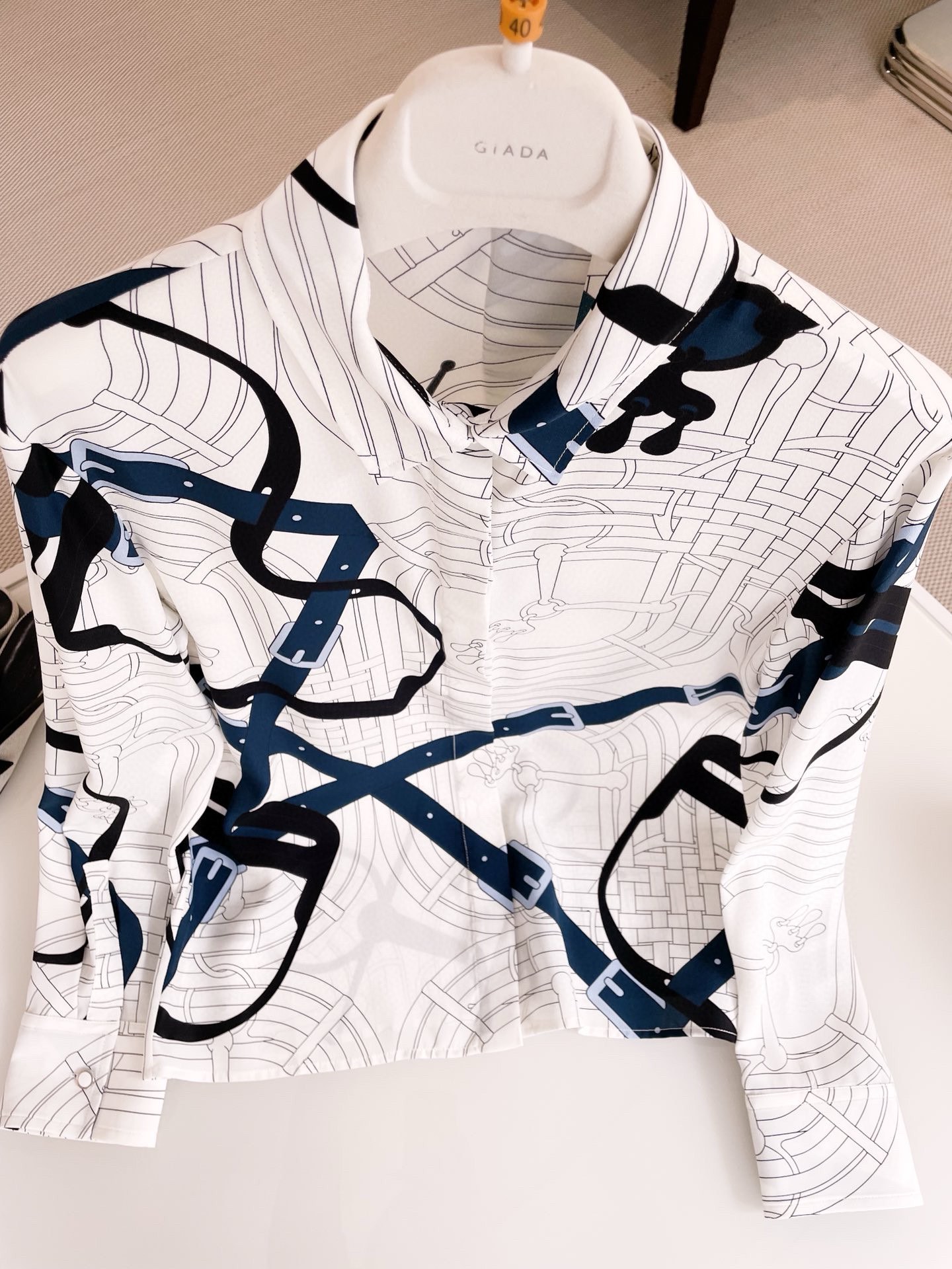 NIGO Valentino Women's Summer Solid Color Letter Printed Silk Lapel Single Breasted Long Sleeve Shirt #nigo74352