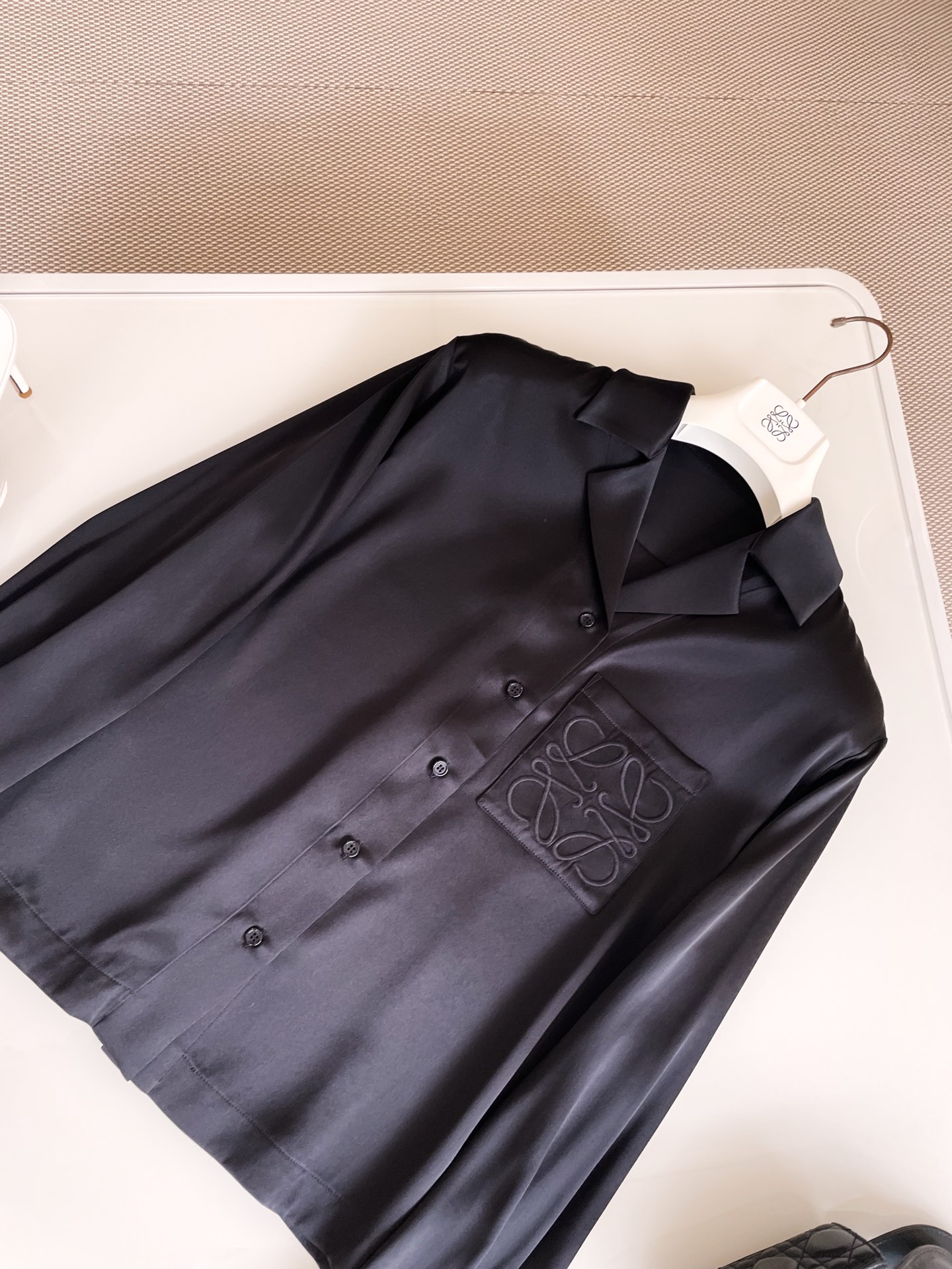 NIGO Loewe Women's Spring And Summer Solid Color Lapel Single Breasted Silk Loose Long Sleeved Shirt #nigo74392