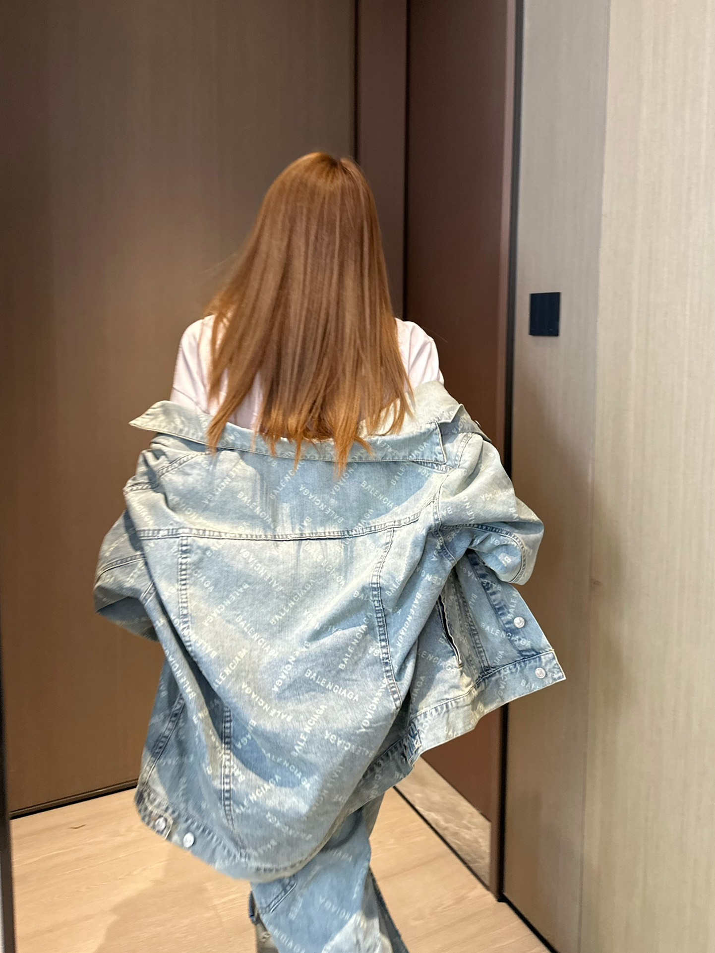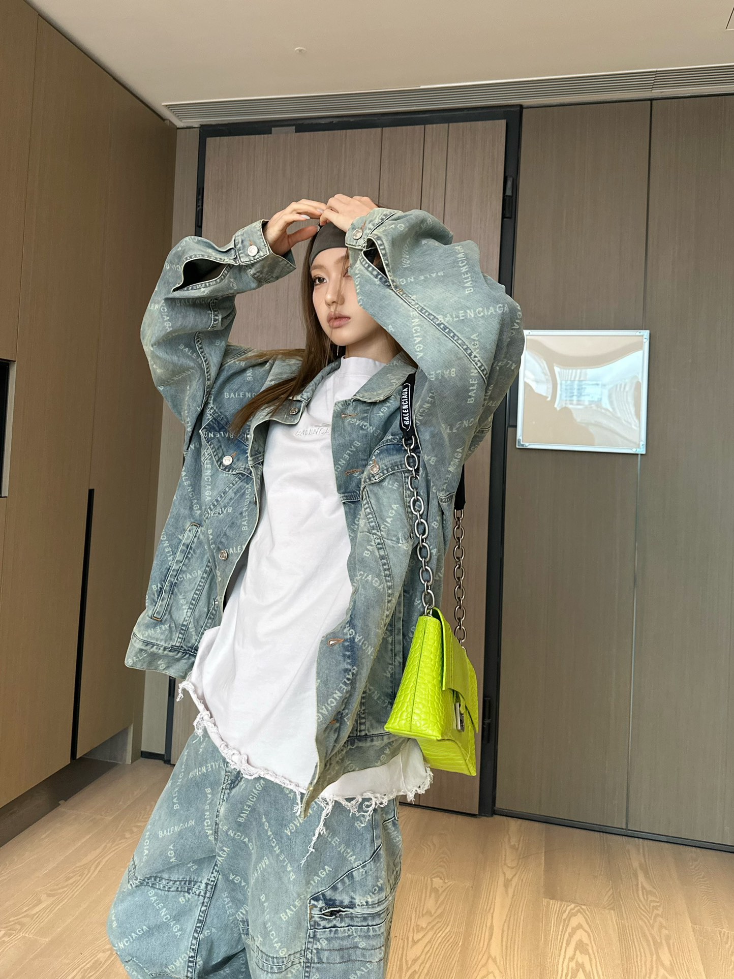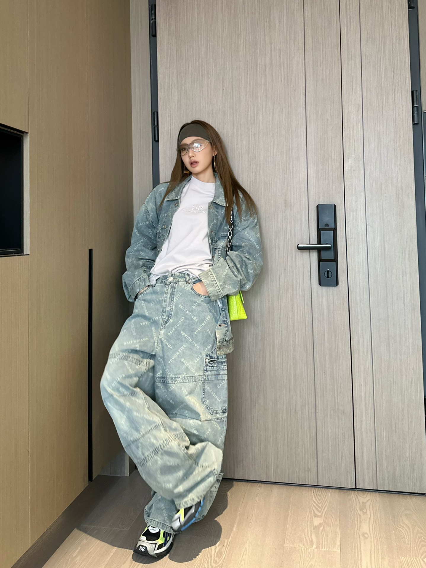 NIGO Balenciaga Women's Spring and Autumn Letter Logo Printed Single Breasted Long Sleeve Denim Jacket Jeans Pants Suit Set #nigo73524