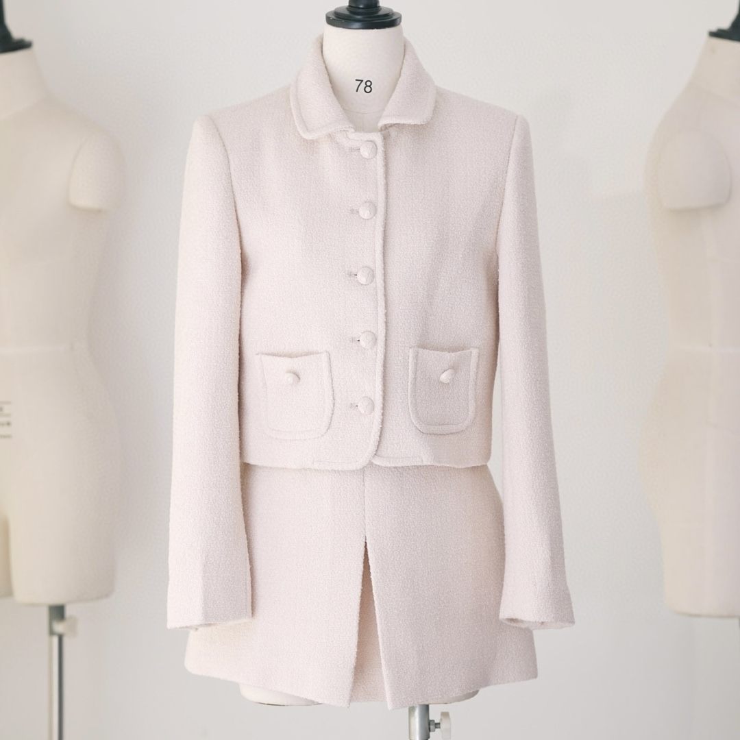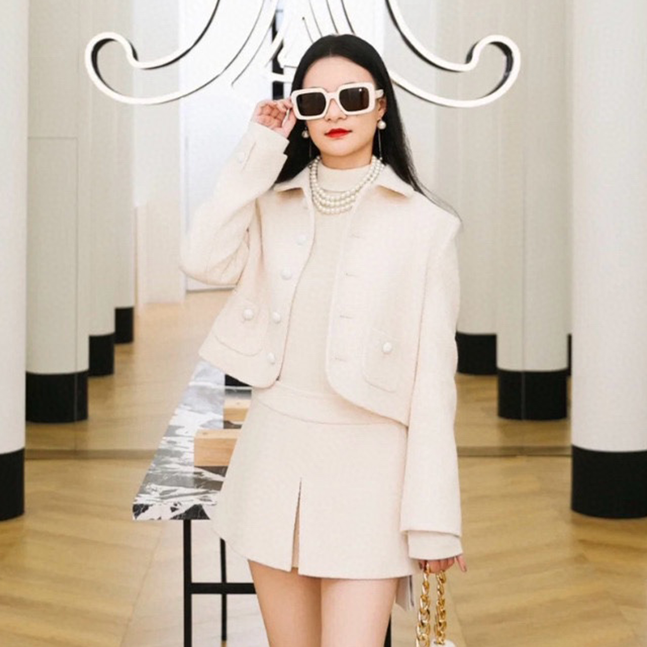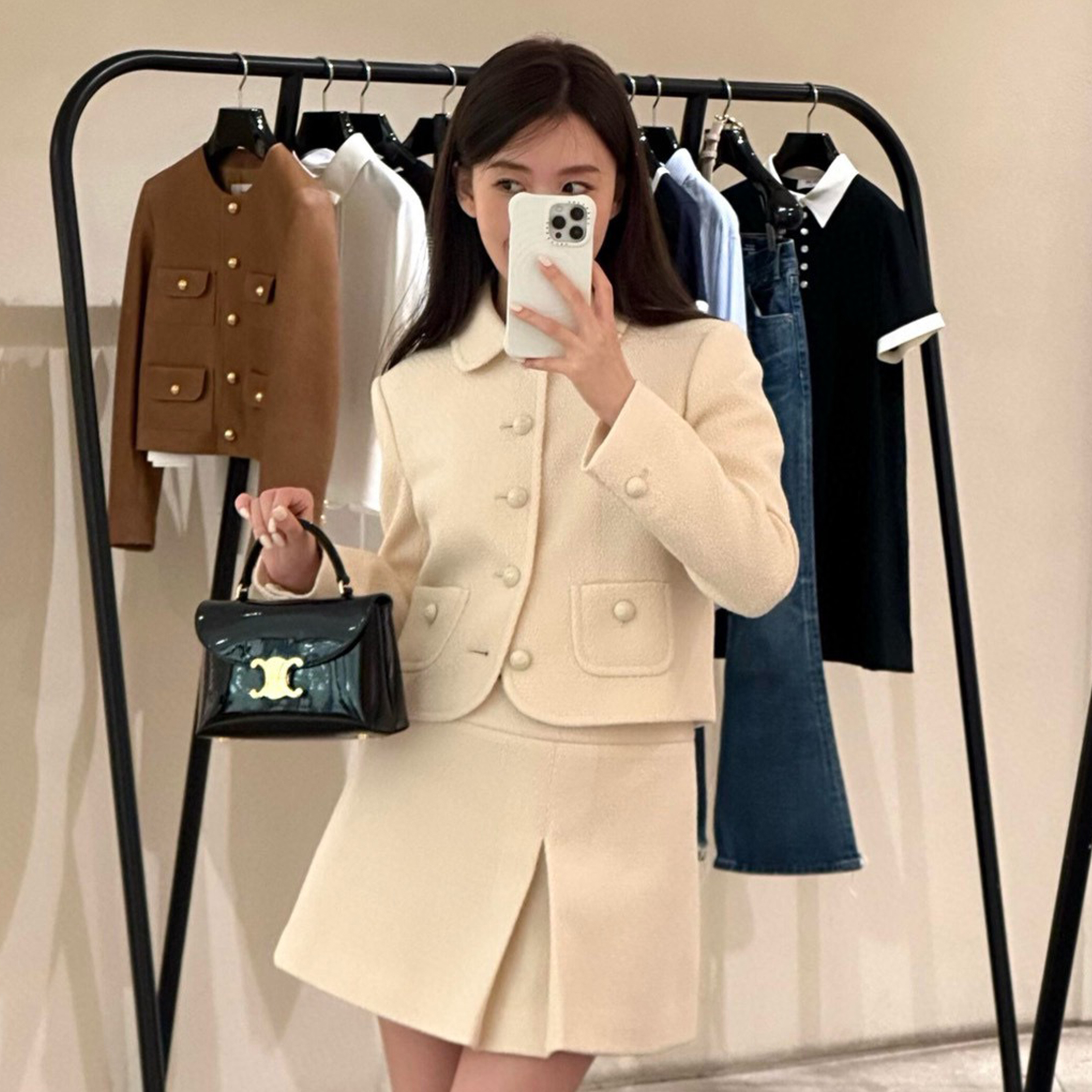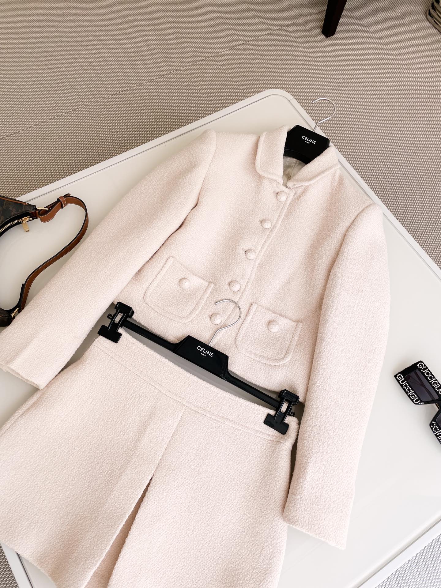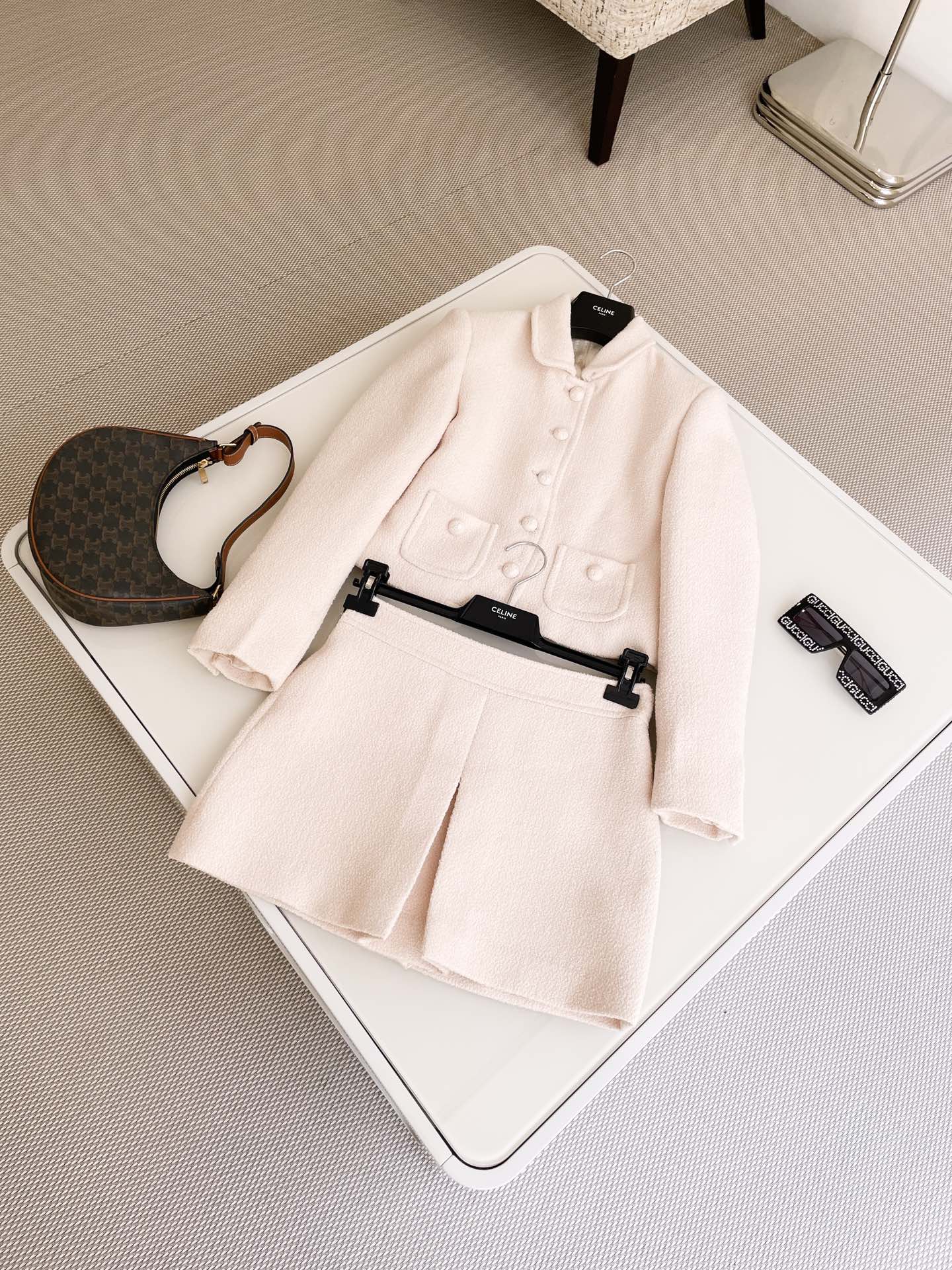 NIGO Celine Women's Fall/winter Verneuil Cashmere Tweed Jacket Cream Lapel Jacket Mini Swing Skirt Suit Set Ngvp #nigo9141