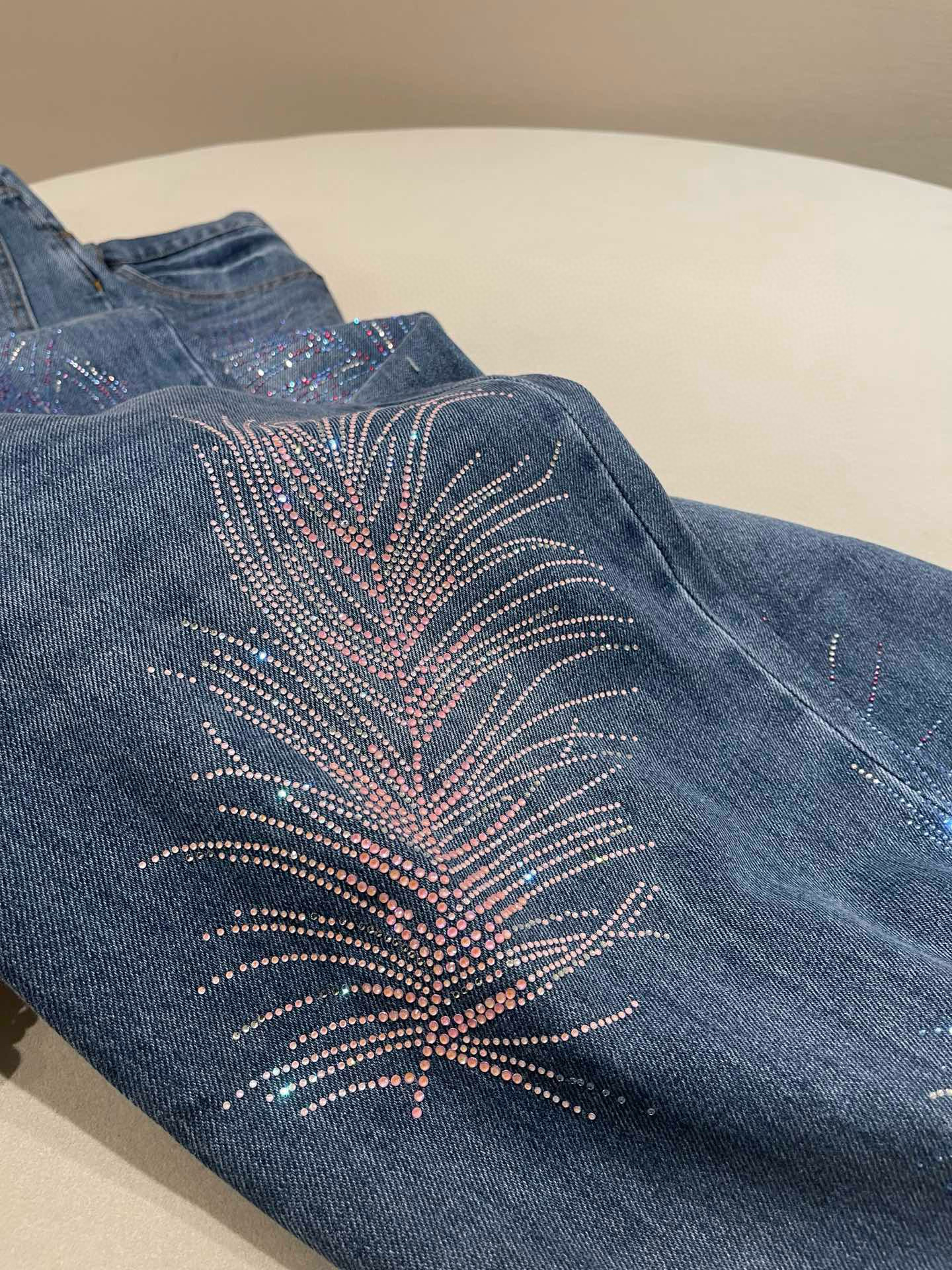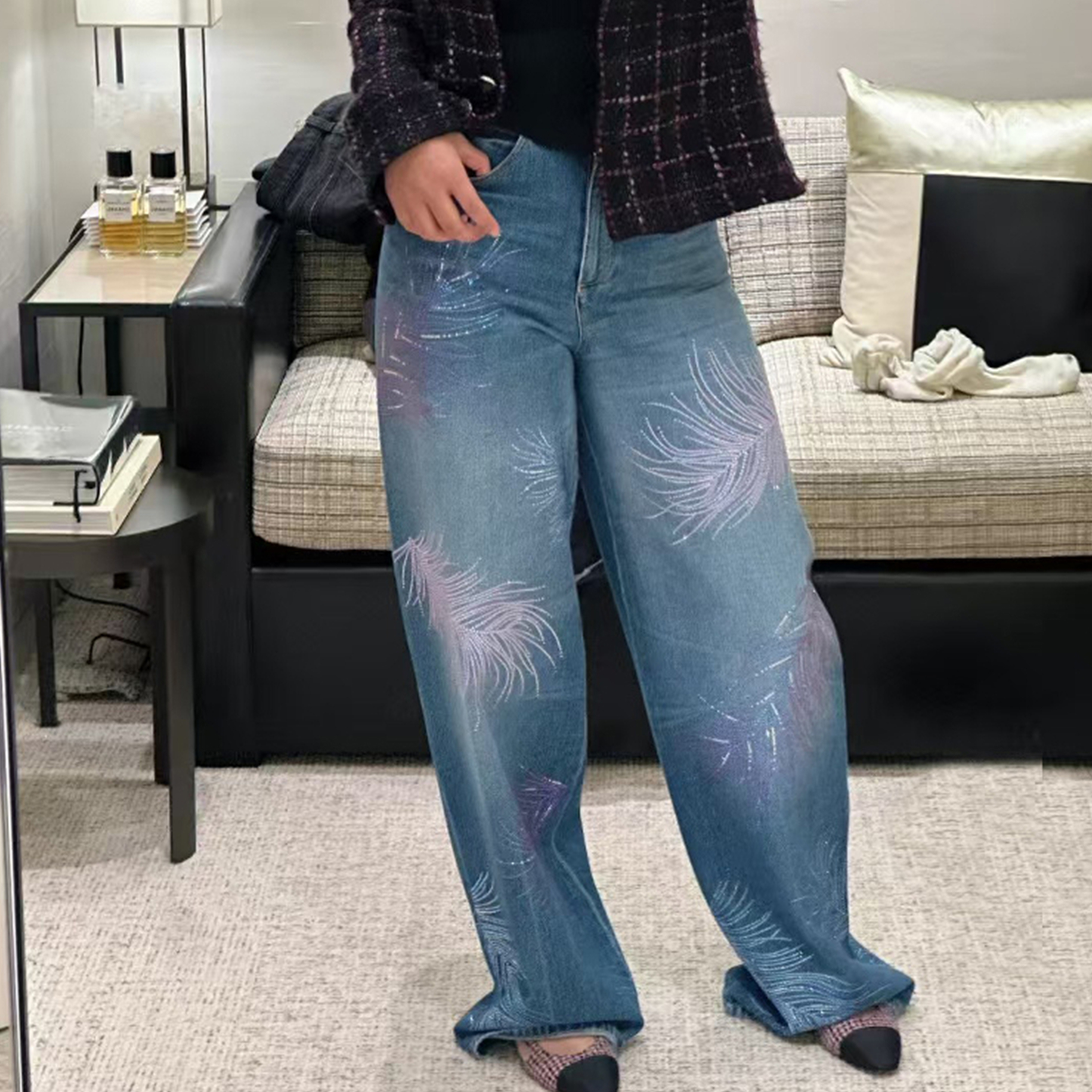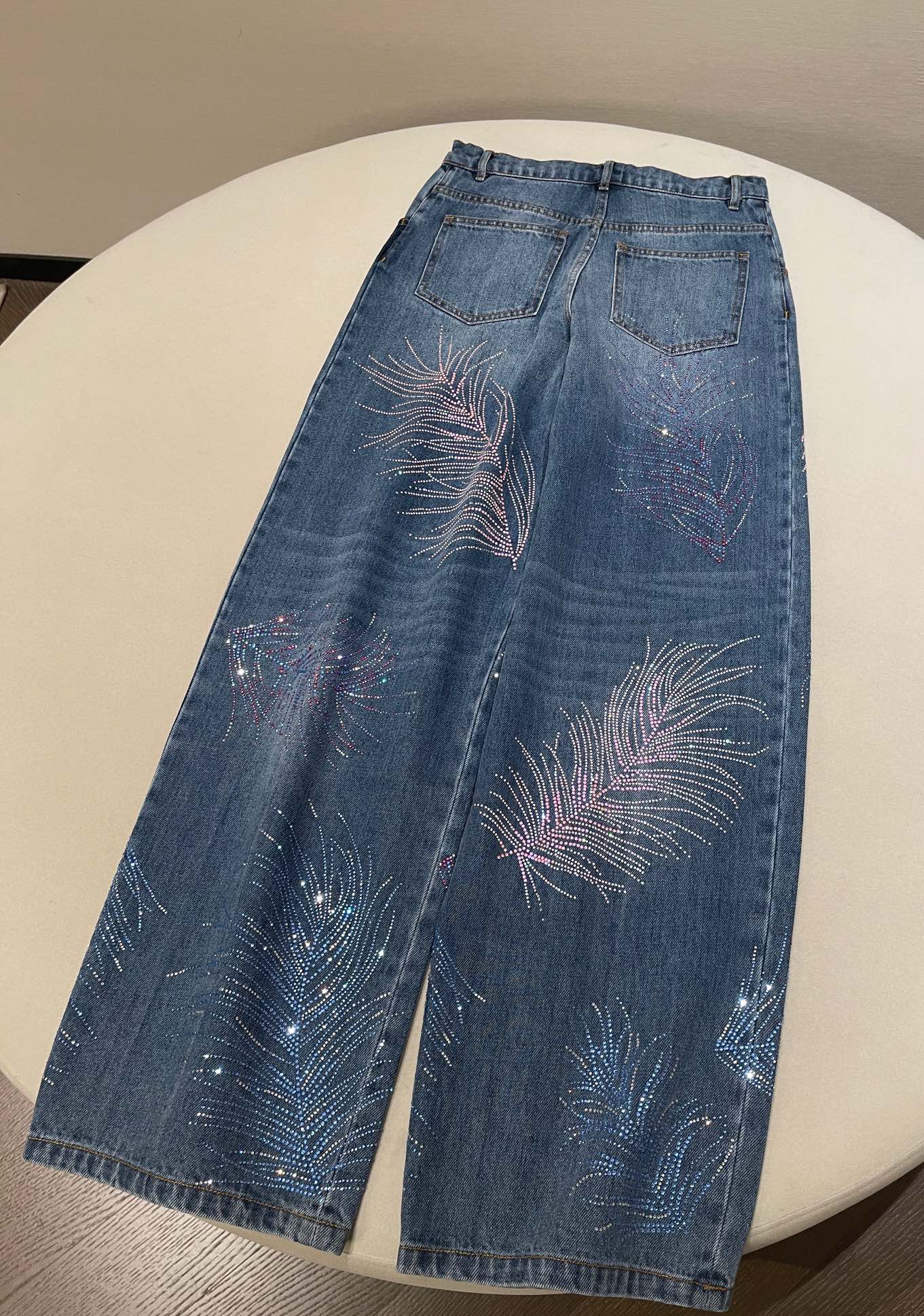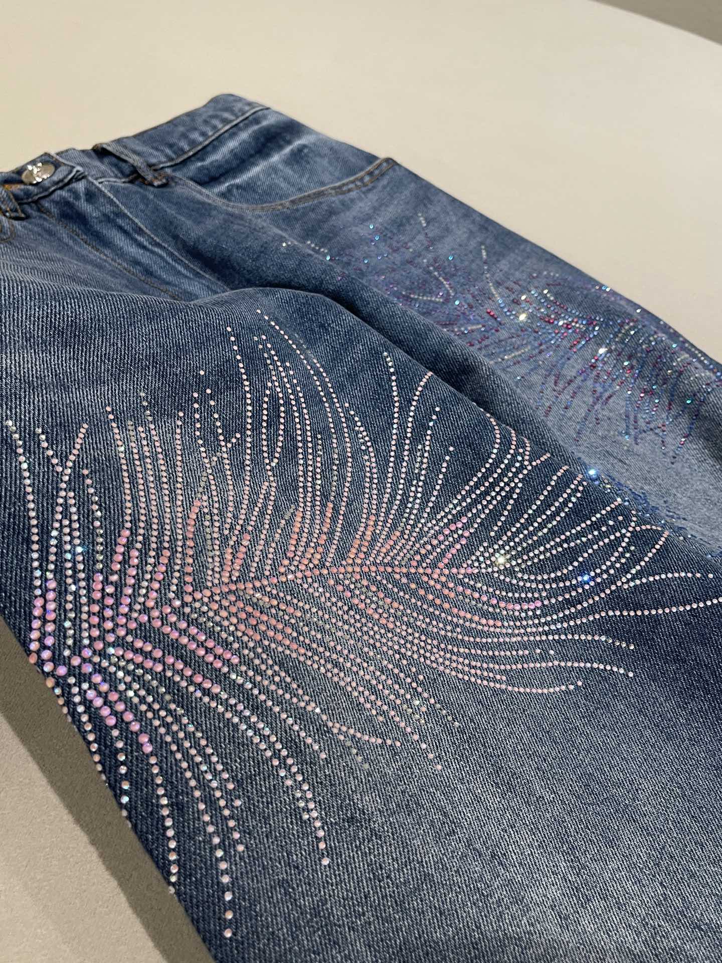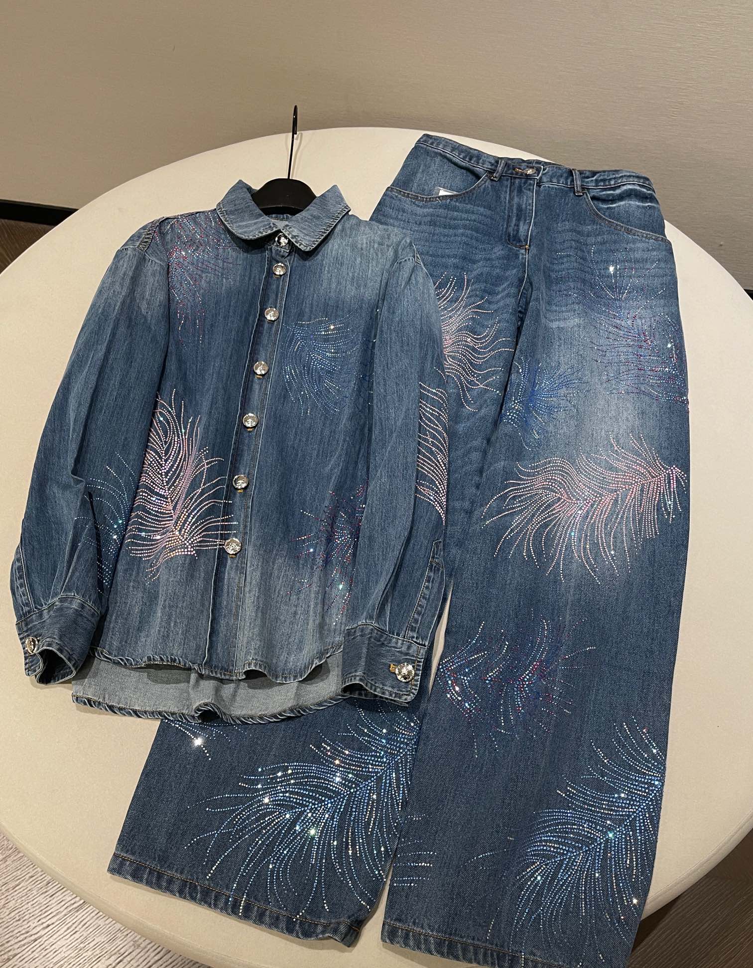 NIGO Chanel Embroidered Denim Shirt Feather Hot Diamonds Suit Set Spring Summer Gradient Colour Straight Leg Pants Loose High Waist Denim Trousers Ngvp #nigo1486