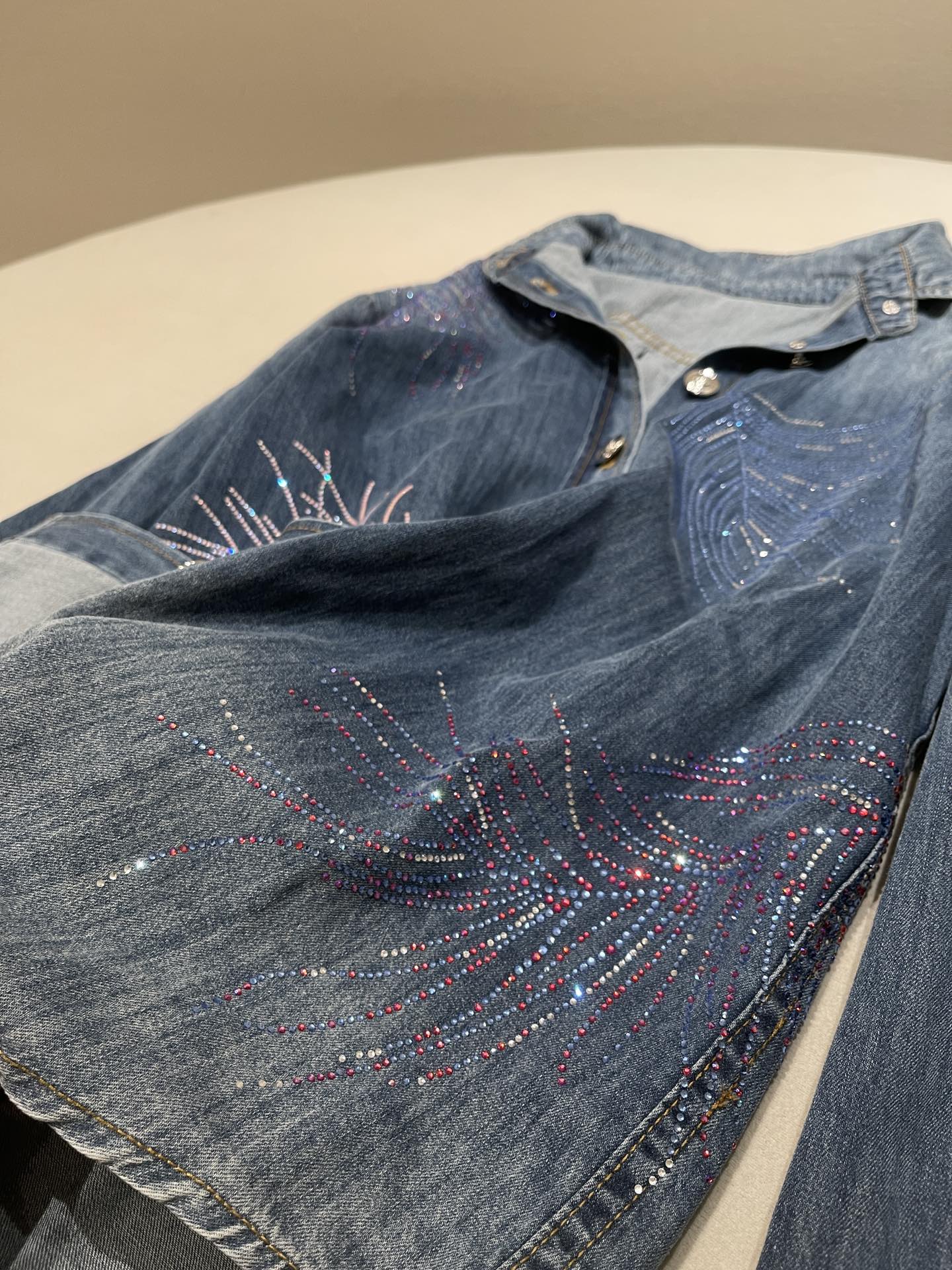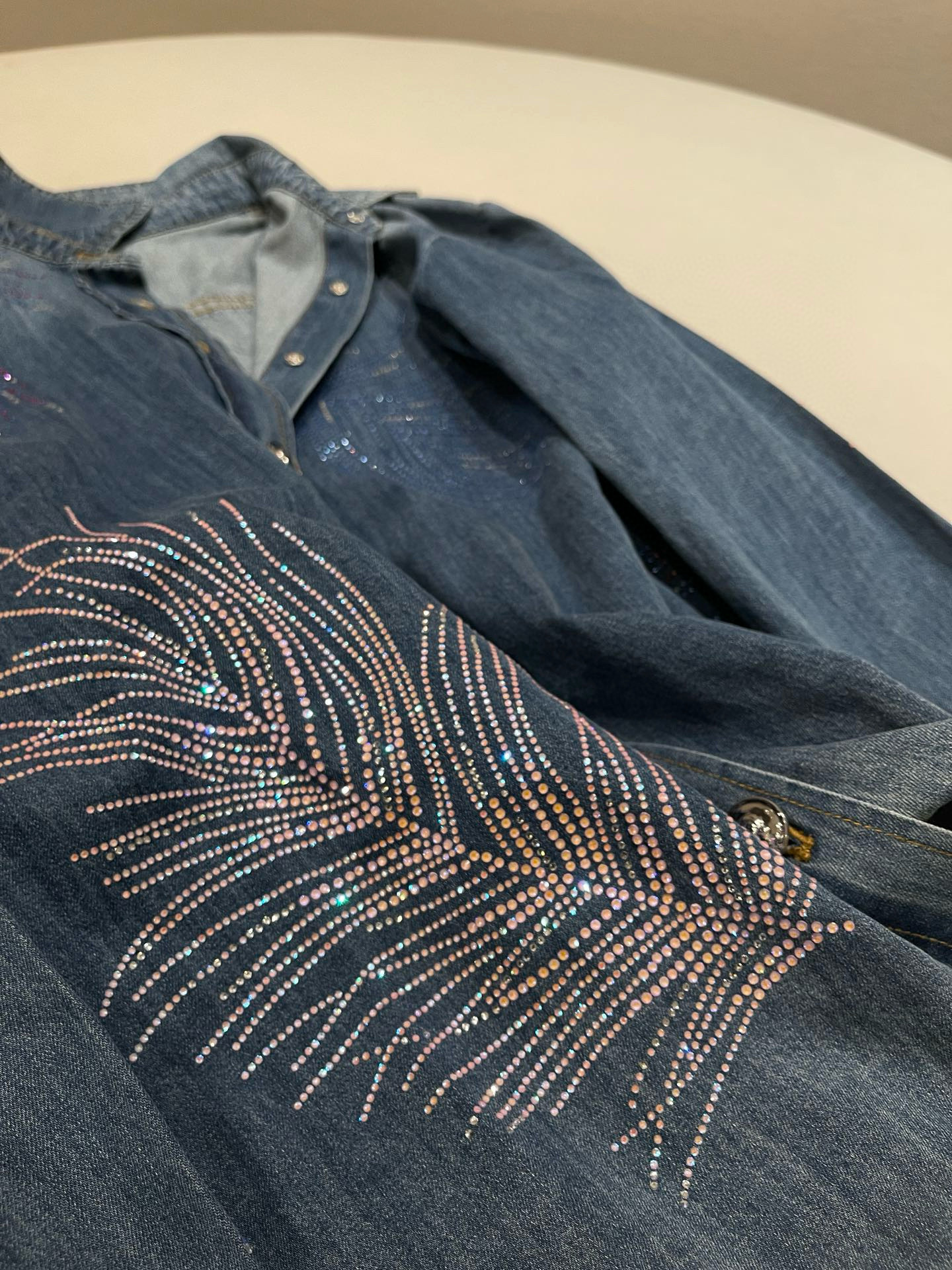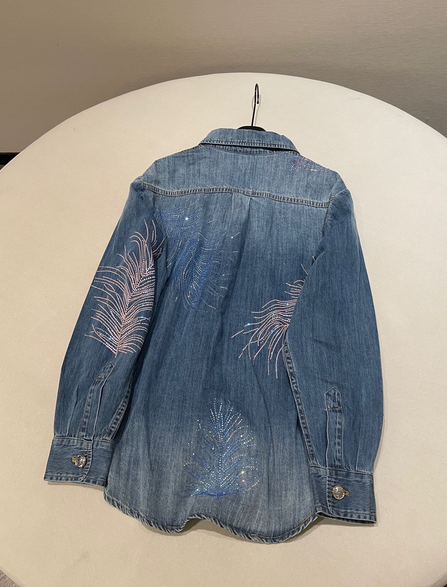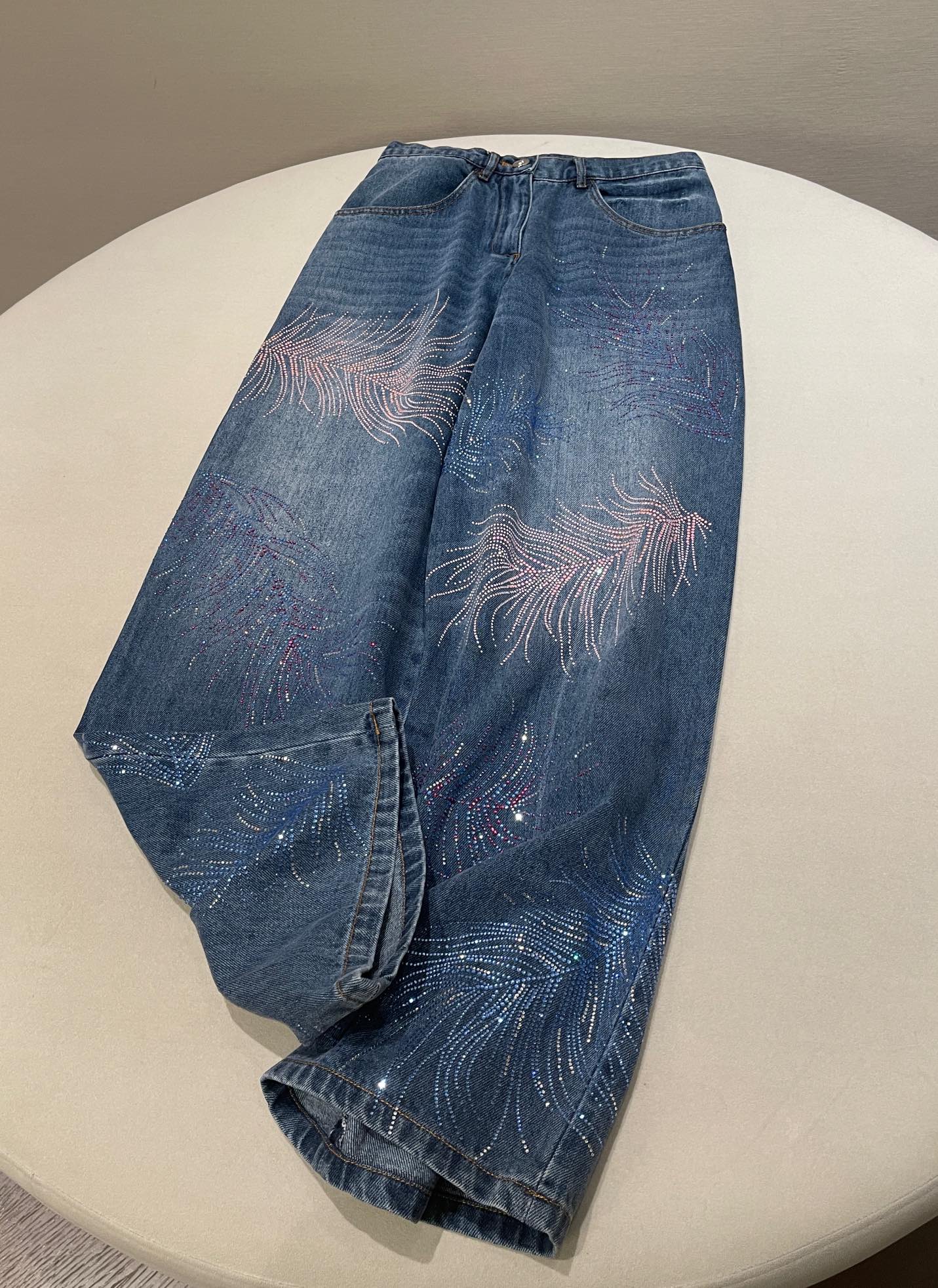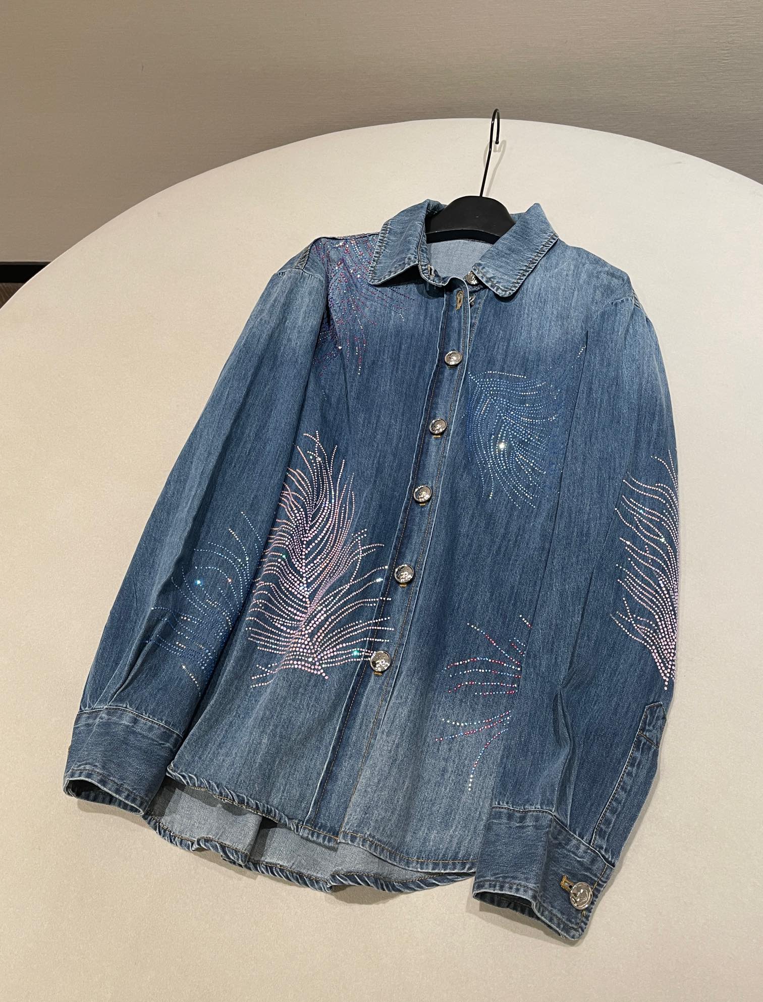 NIGO Chanel Embroidered Denim Shirt Feather Hot Diamonds Suit Set Spring Summer Gradient Colour Straight Leg Pants Loose High Waist Denim Trousers Ngvp #nigo1486