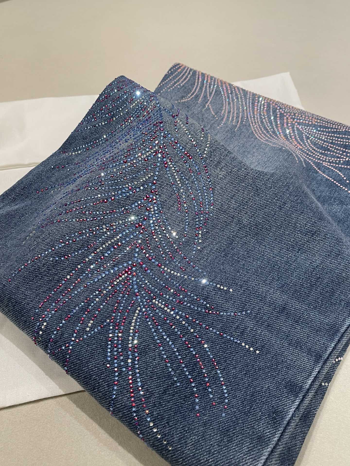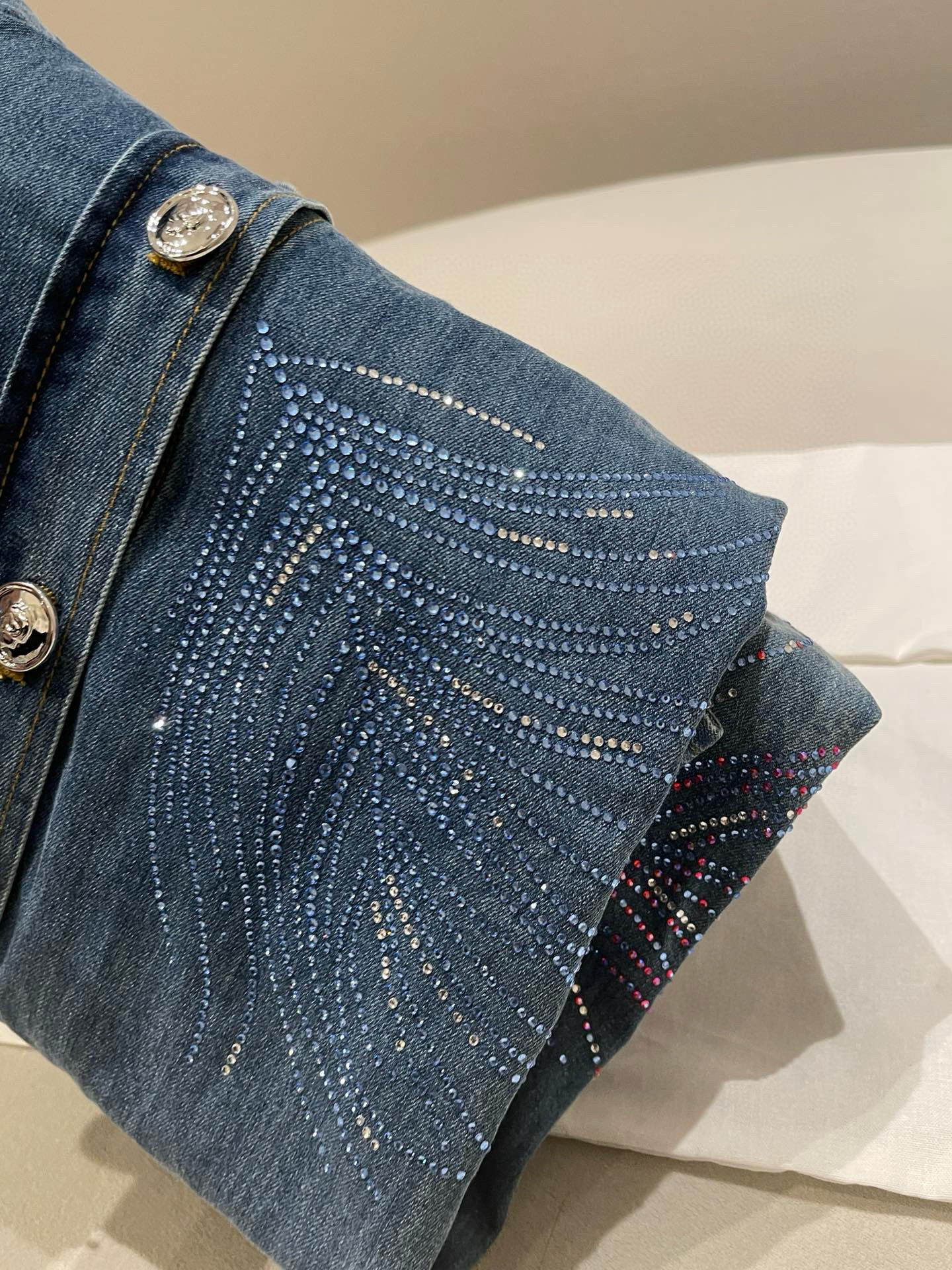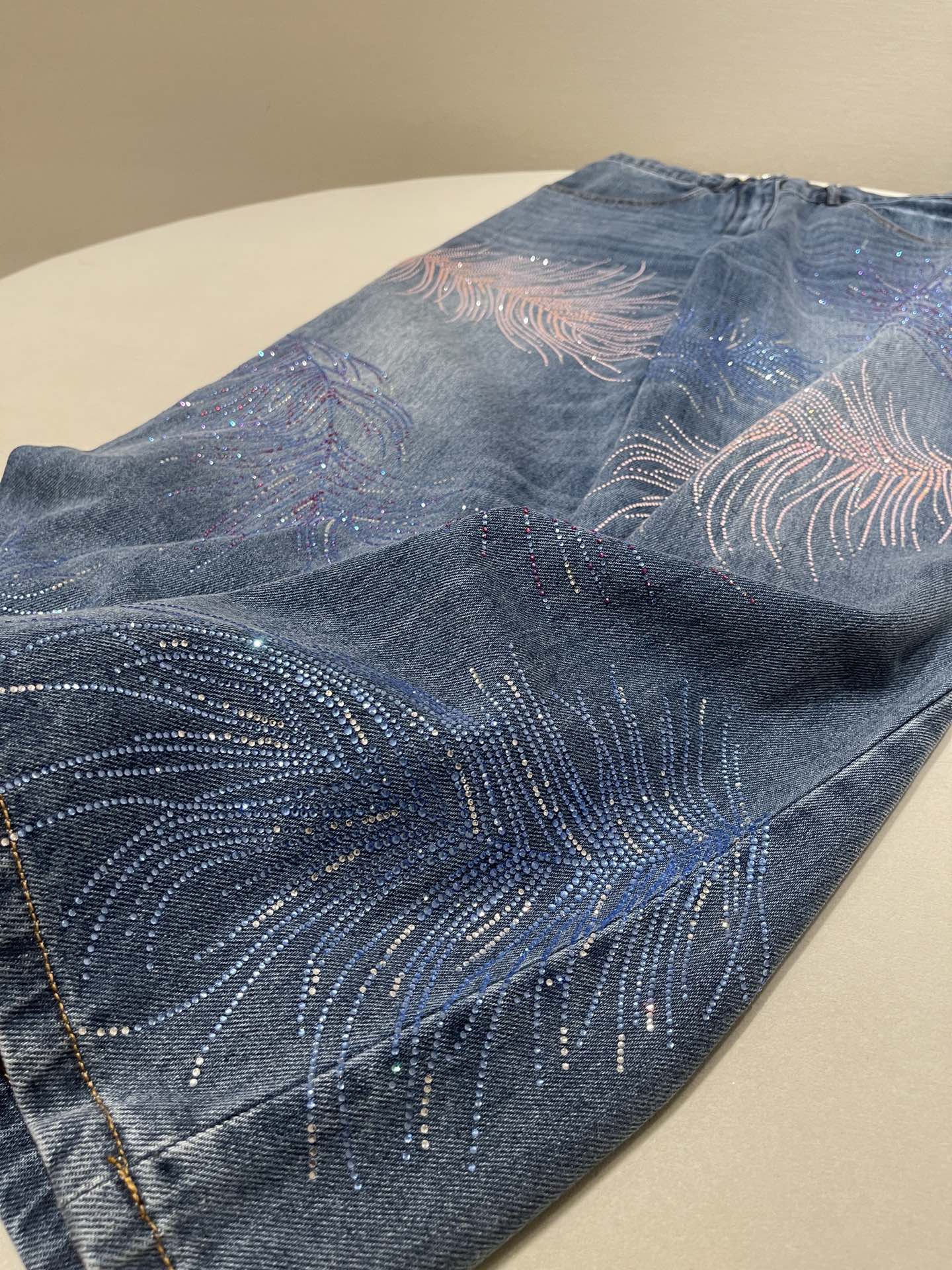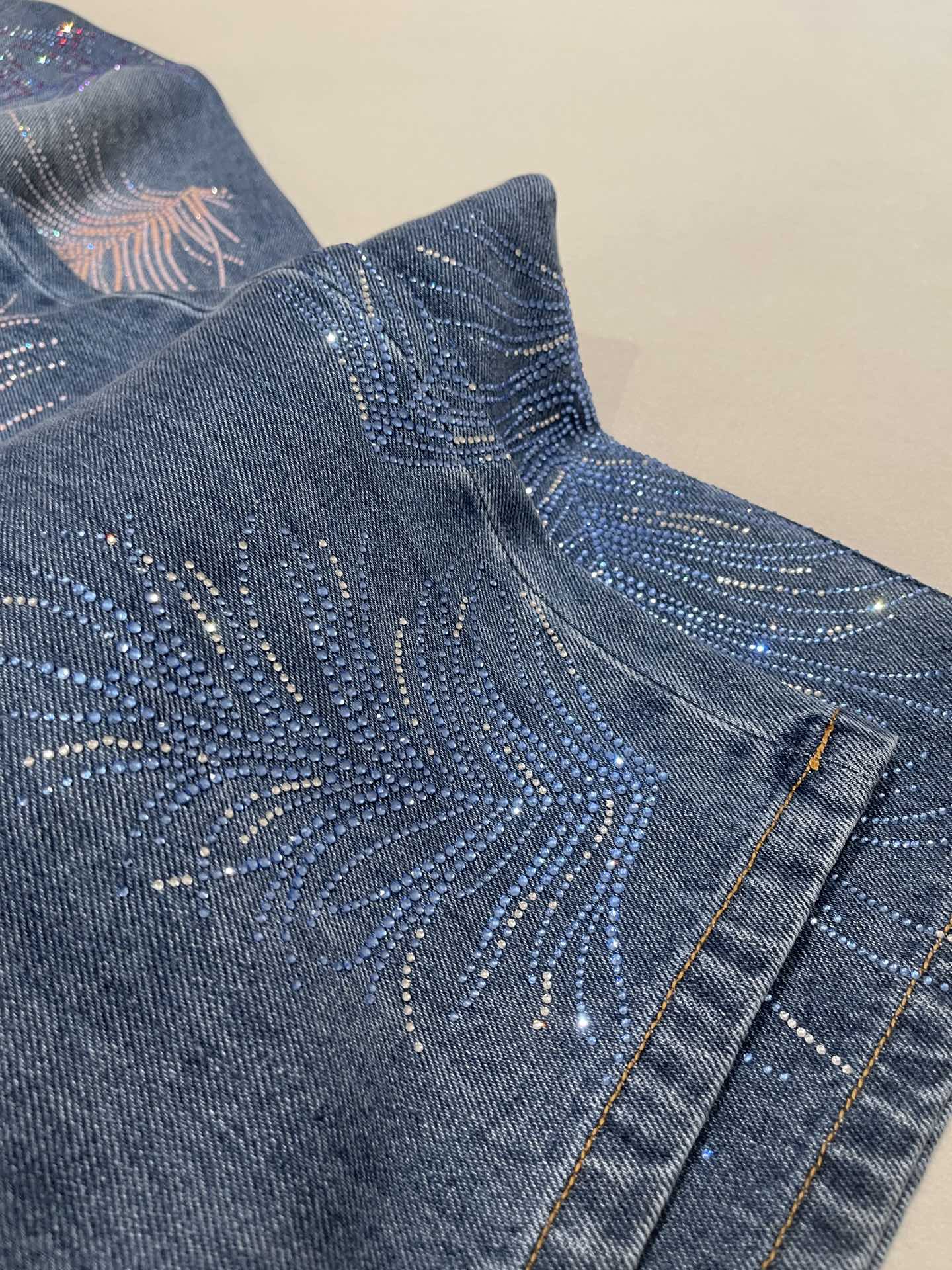 NIGO Chanel Embroidered Denim Shirt Feather Hot Diamonds Suit Set Spring Summer Gradient Colour Straight Leg Pants Loose High Waist Denim Trousers Ngvp #nigo1486