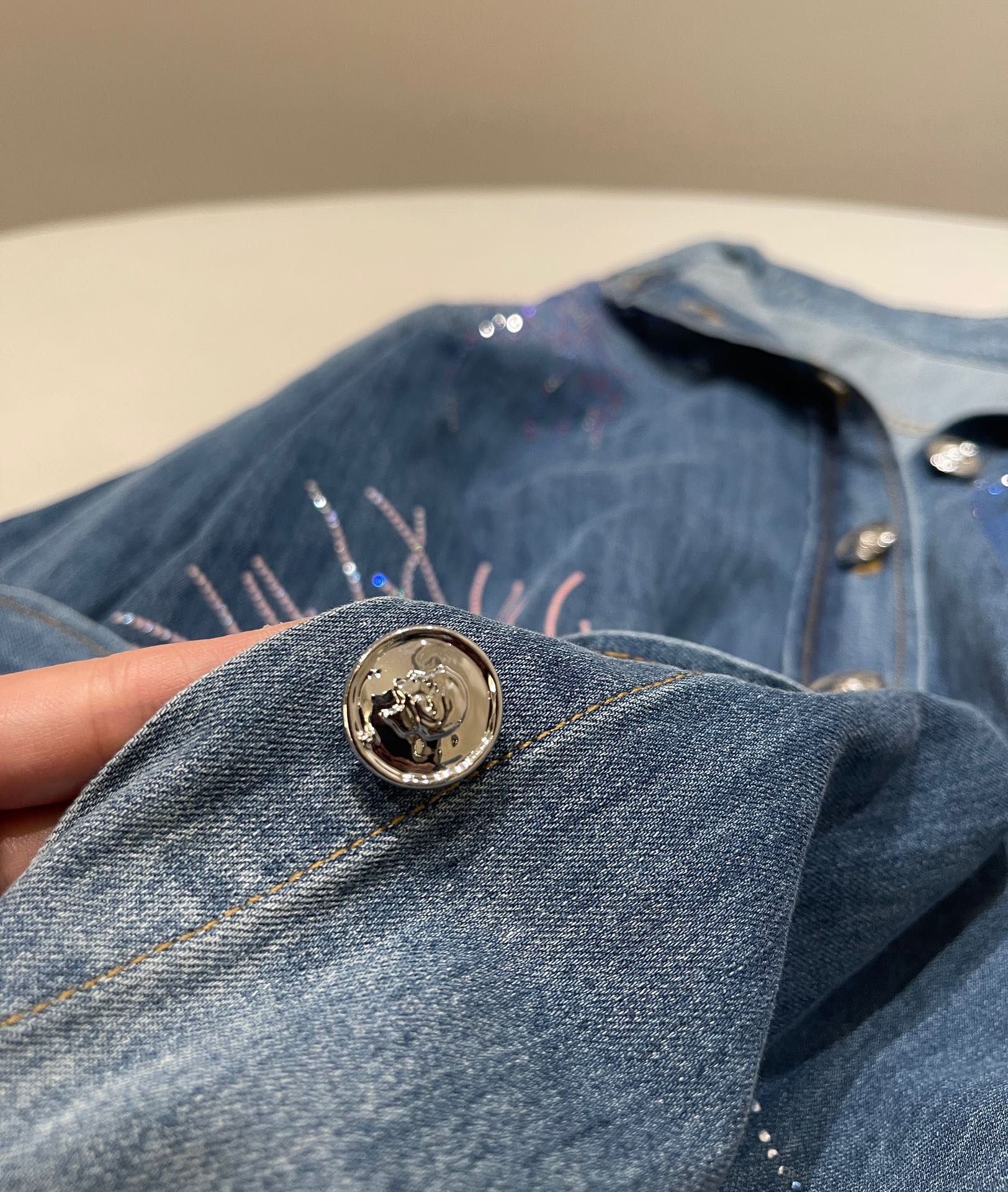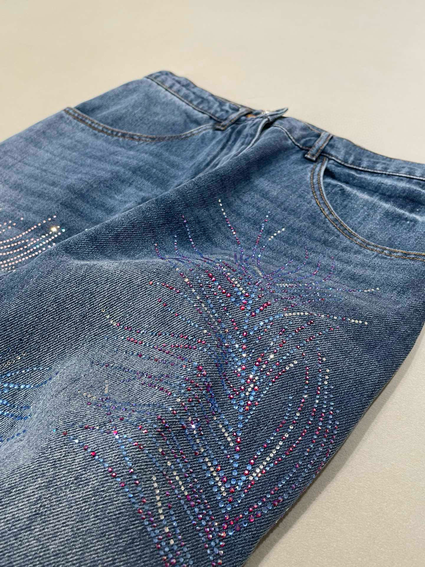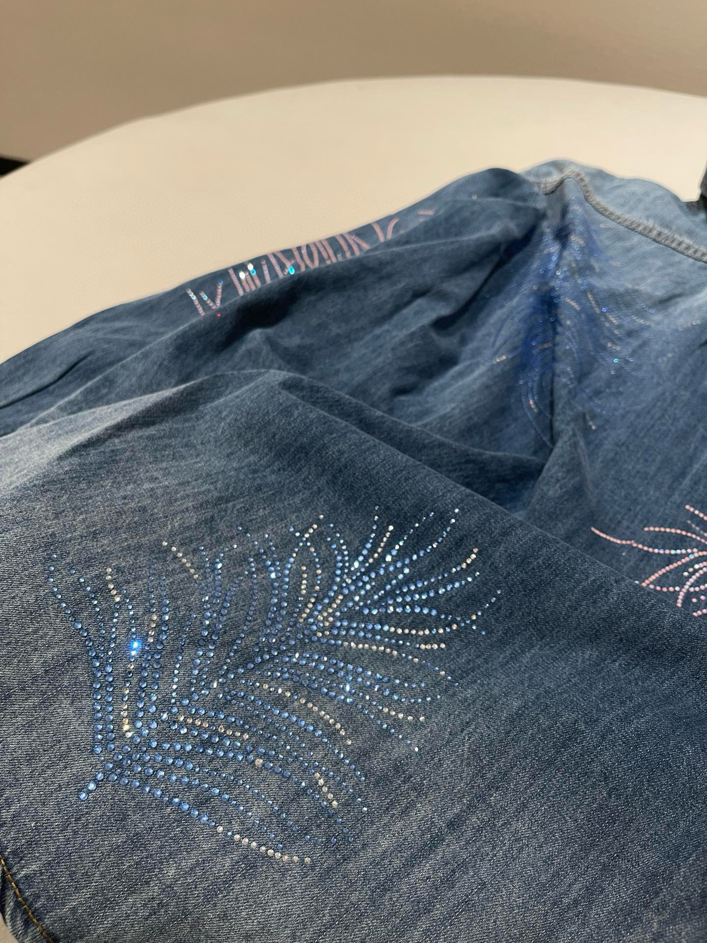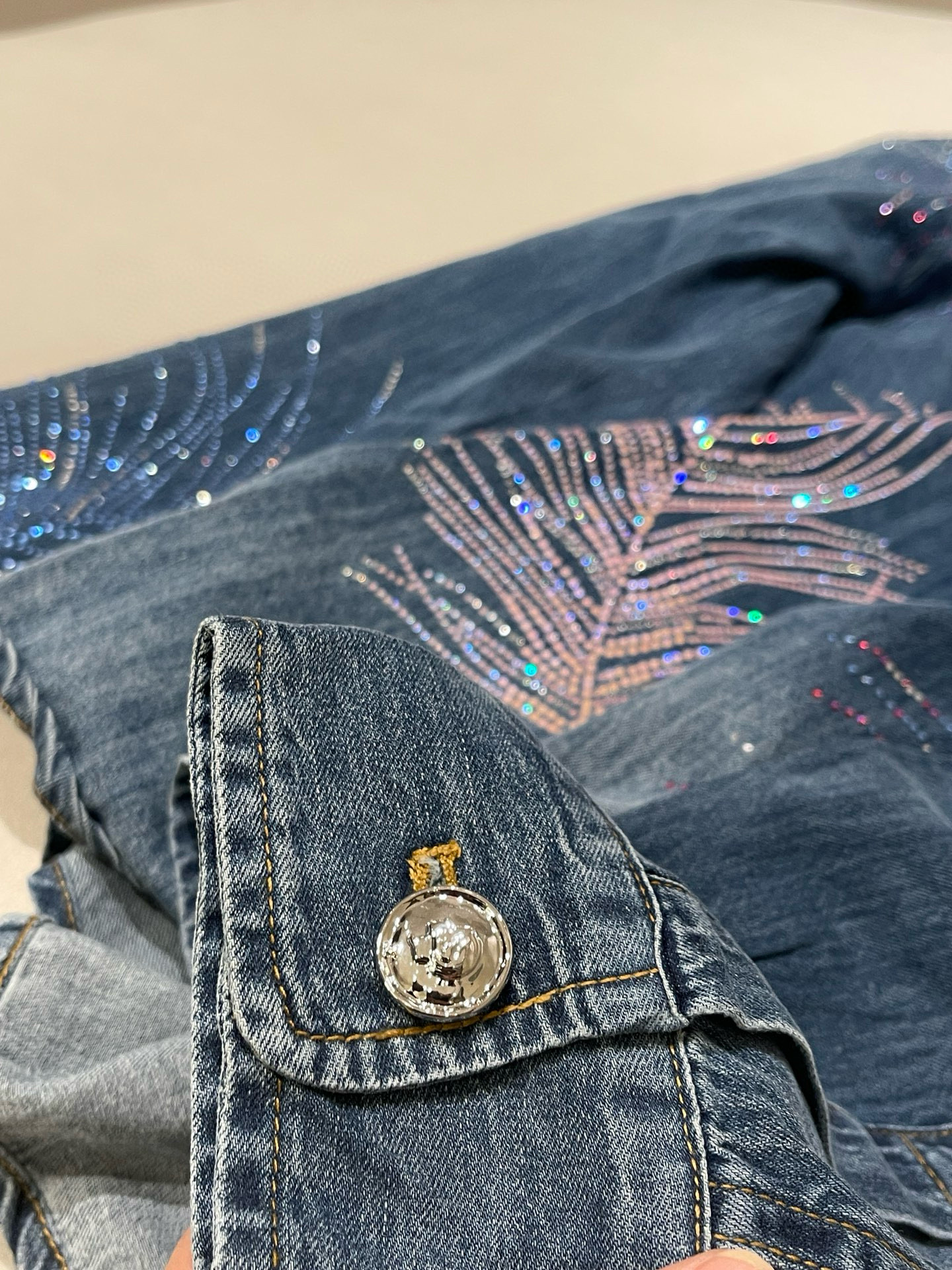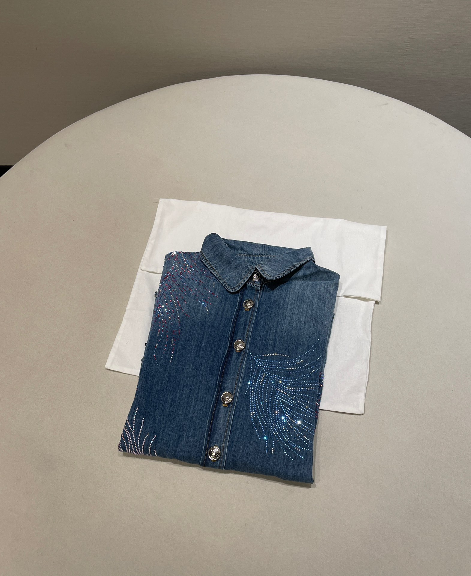 NIGO Chanel Embroidered Denim Shirt Feather Hot Diamonds Suit Set Spring Summer Gradient Colour Straight Leg Pants Loose High Waist Denim Trousers Ngvp #nigo1486