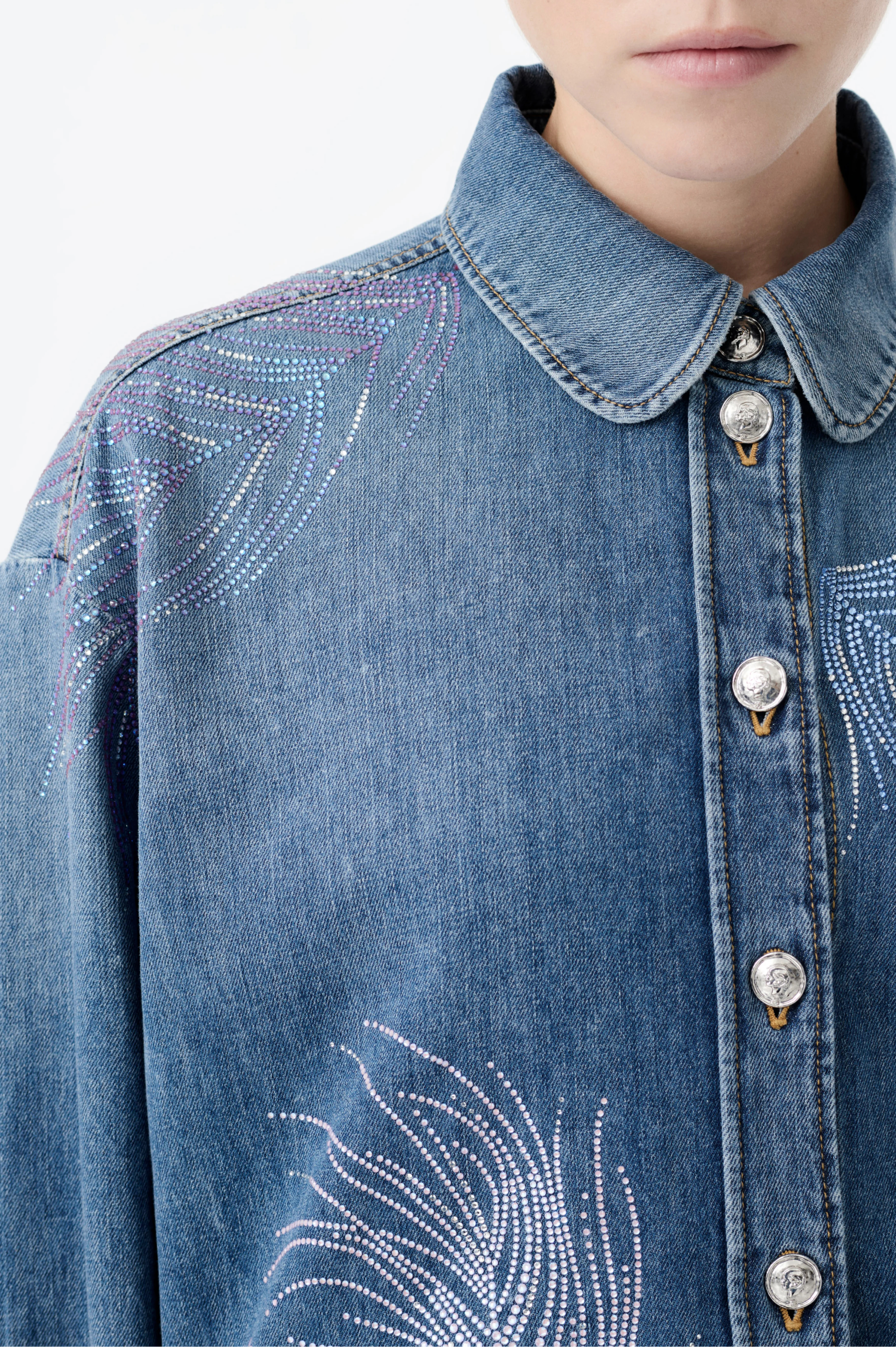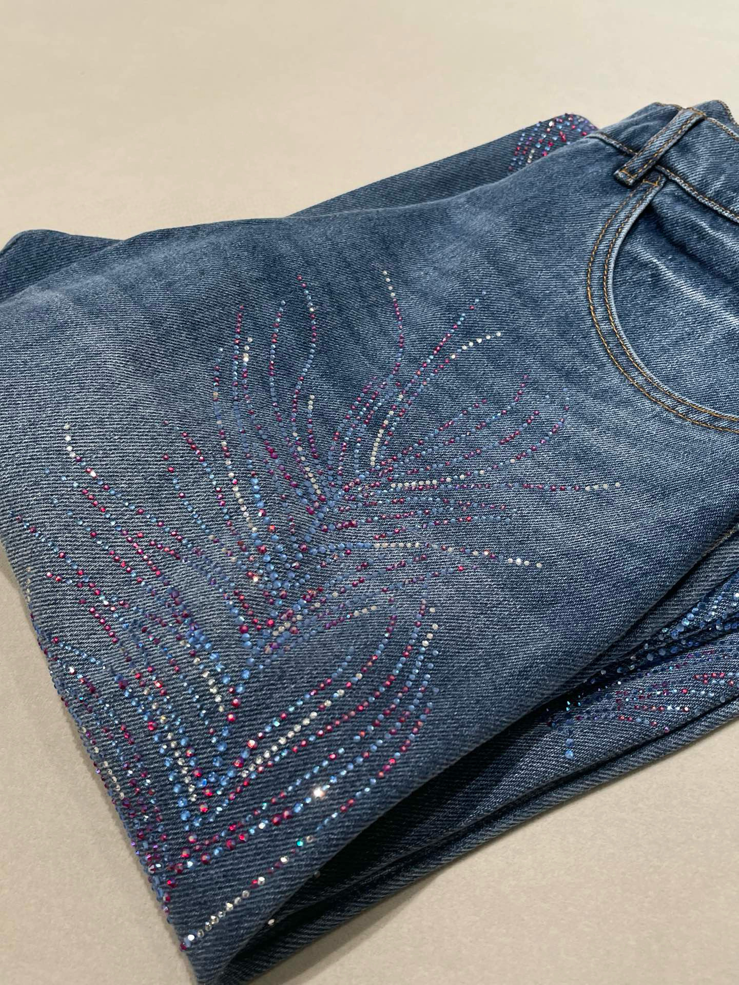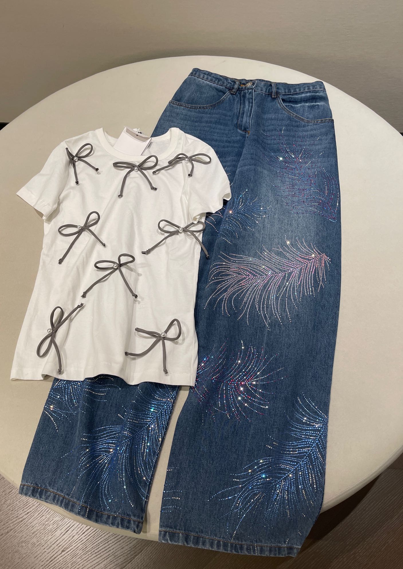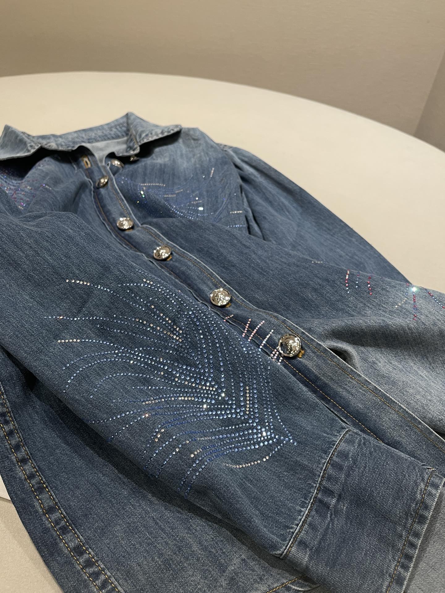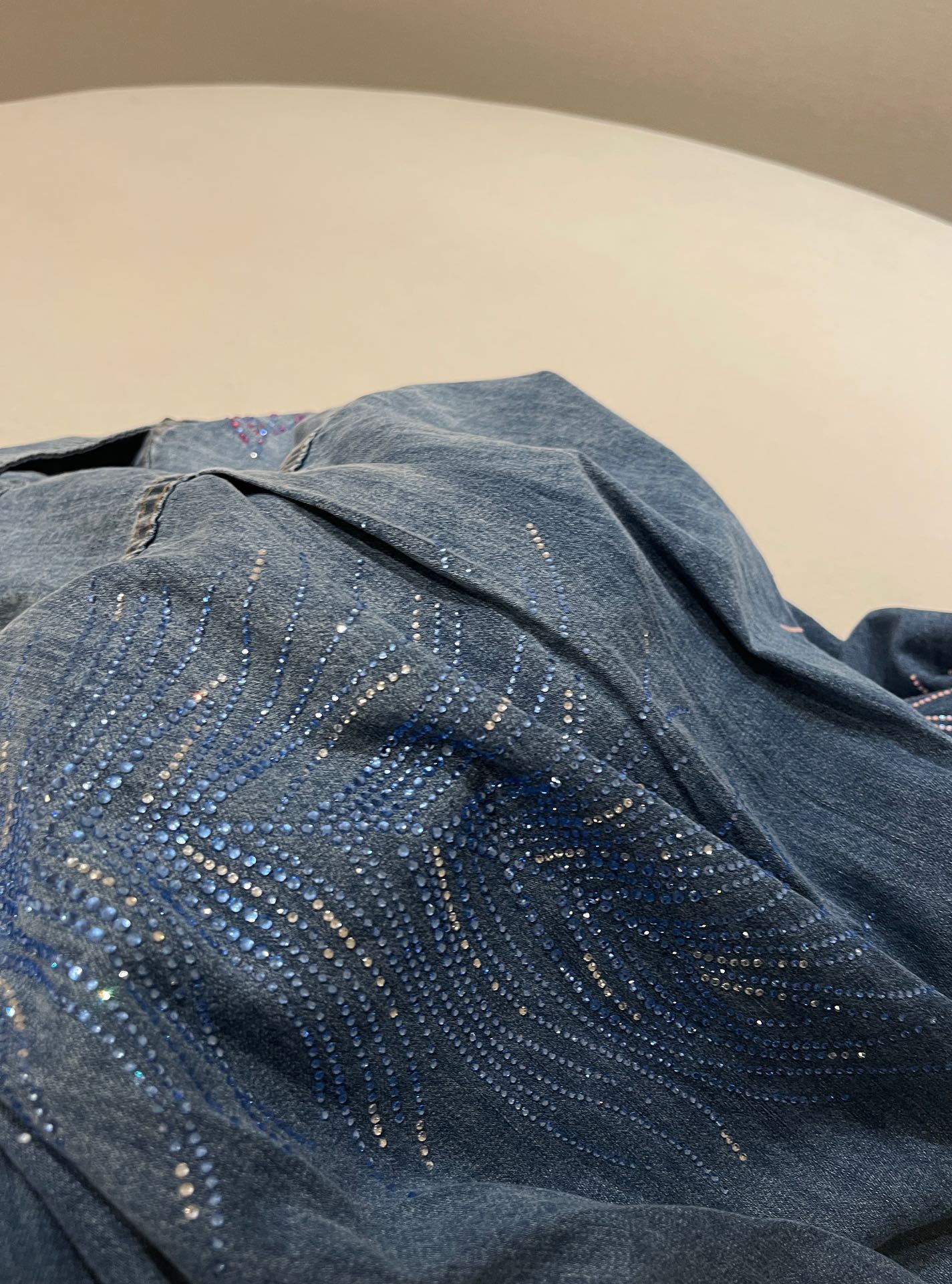 NIGO Chanel Embroidered Denim Shirt Feather Hot Diamonds Suit Set Spring Summer Gradient Colour Straight Leg Pants Loose High Waist Denim Trousers Ngvp #nigo1486