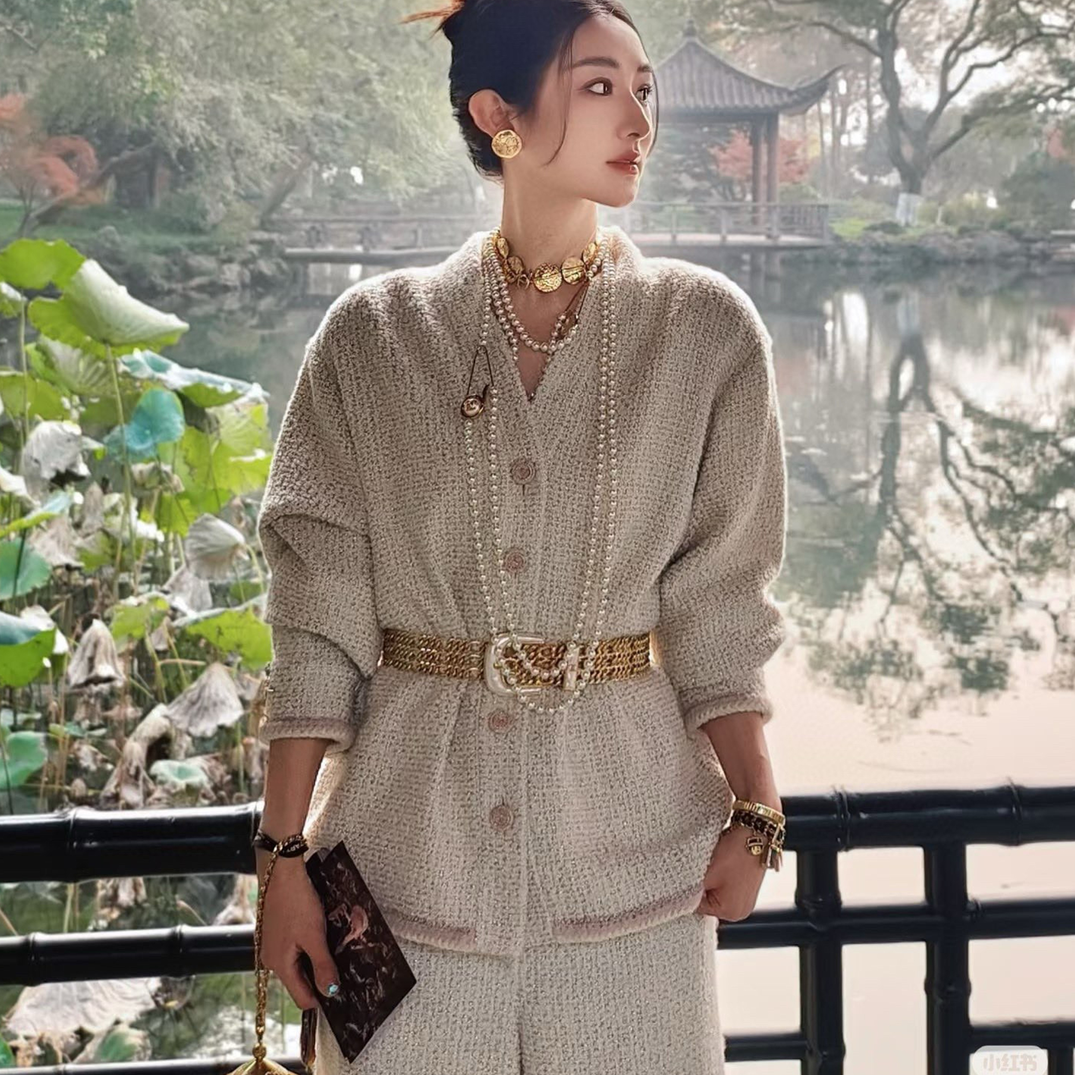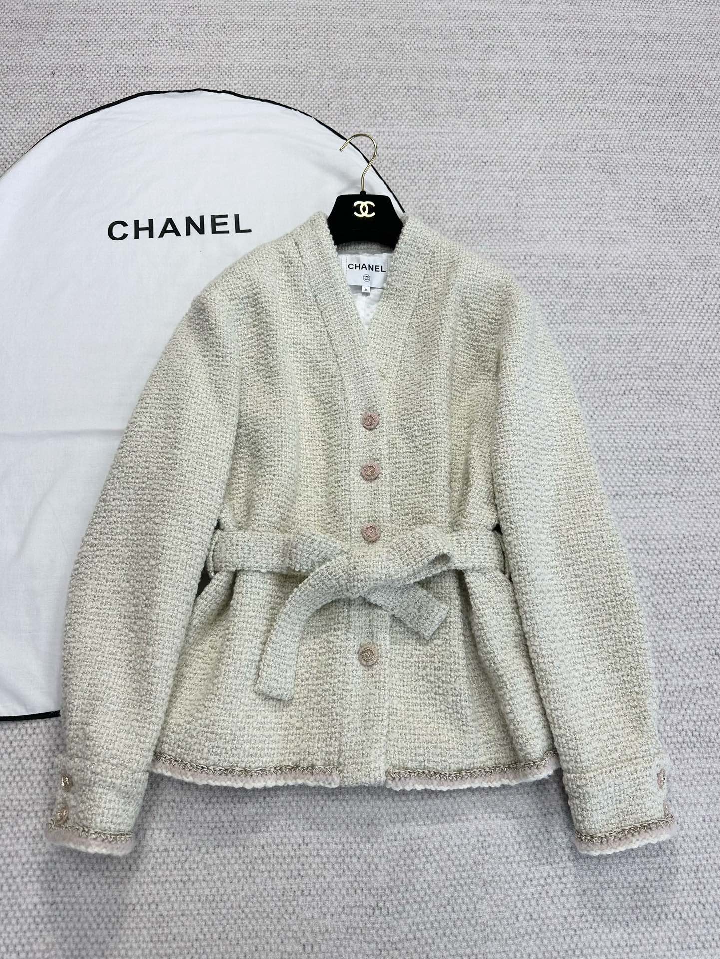 NIGO Chanel Women's Autumn And Winter New Beige Jacket V-neck Bathrobe Belt Tweed Top Straight Trousers Pants Casual Suit Set Ngvp #nigo9951