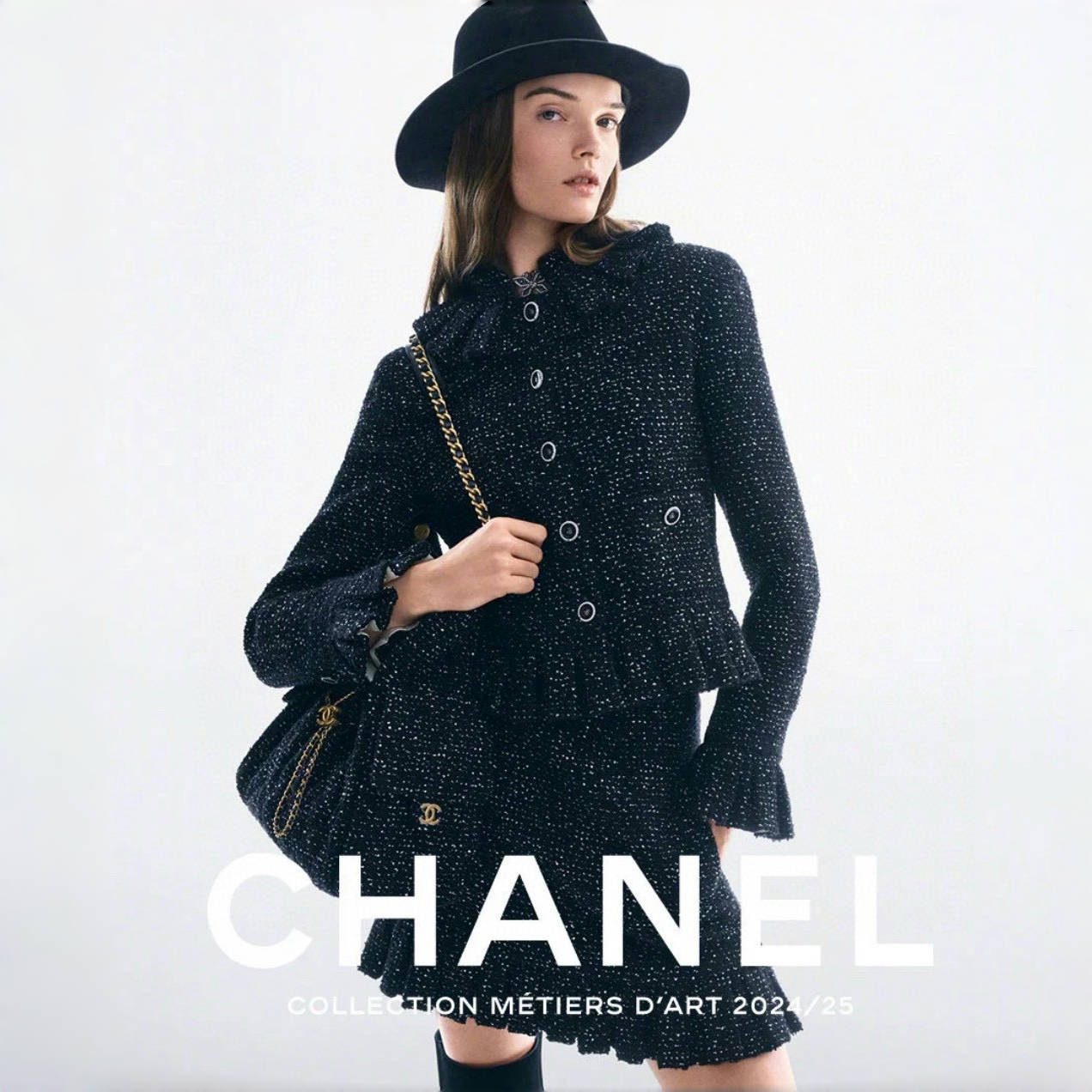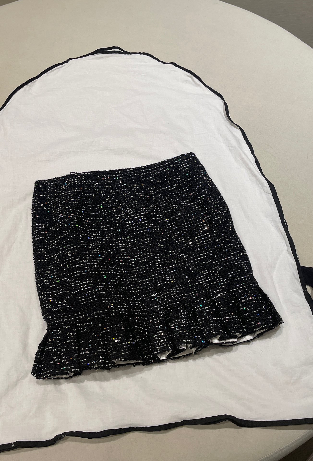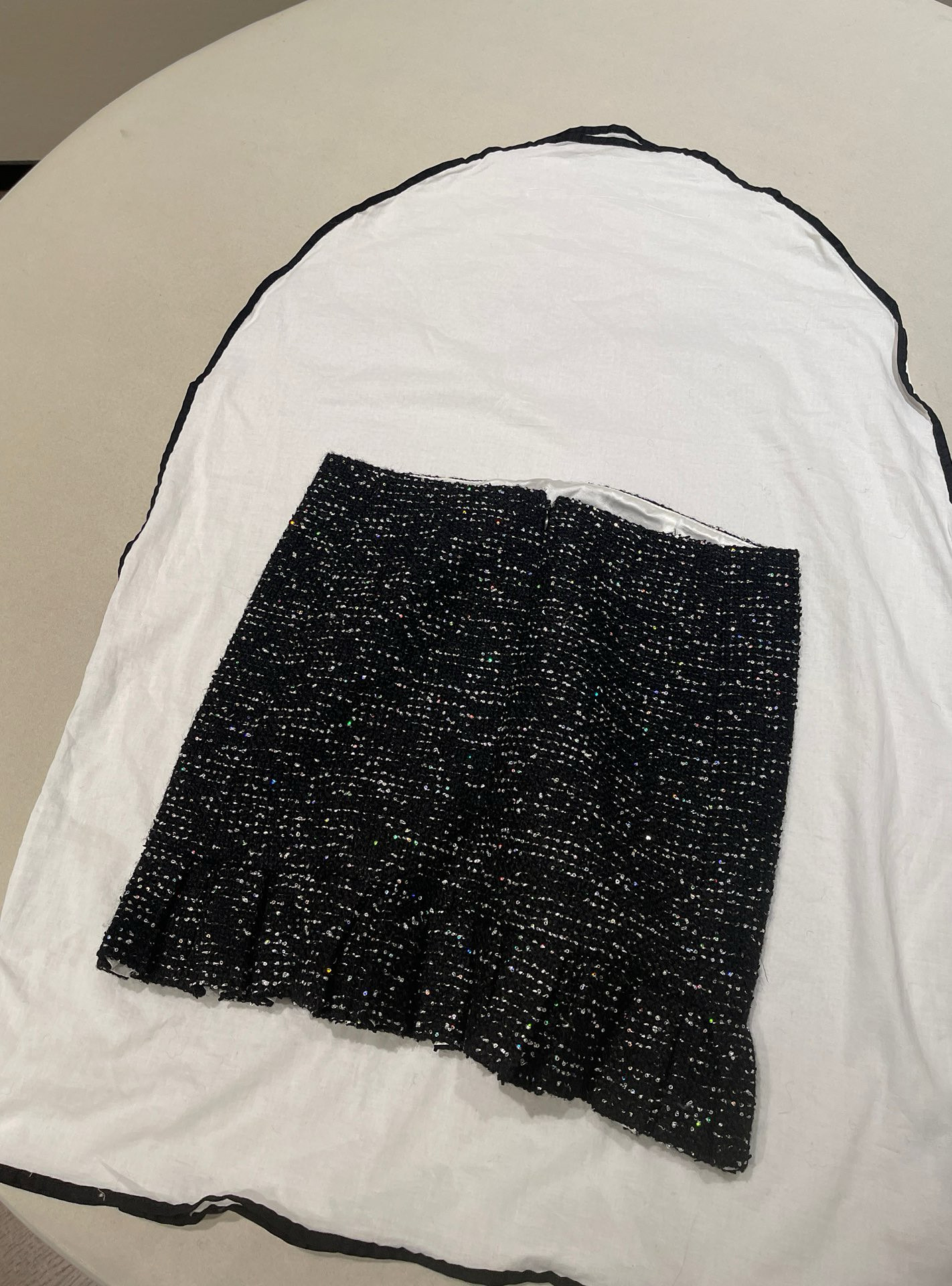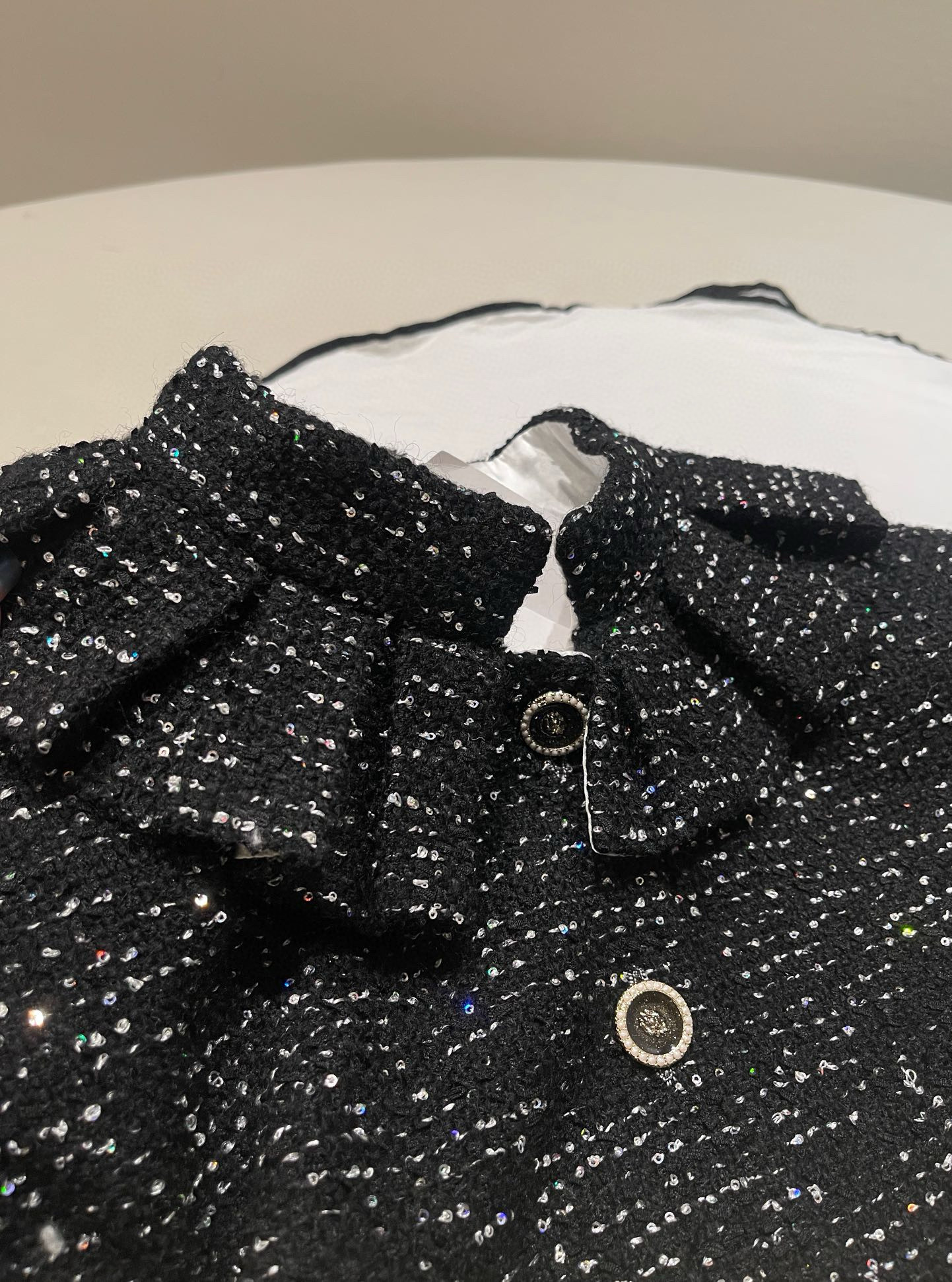 NIGO Chanel Women's Autumn/winter Black Shiny Tweed Single-breasted Jacket With Lace Collar Stylish Mini Skirt Suit Set Ngvp #nigo2172