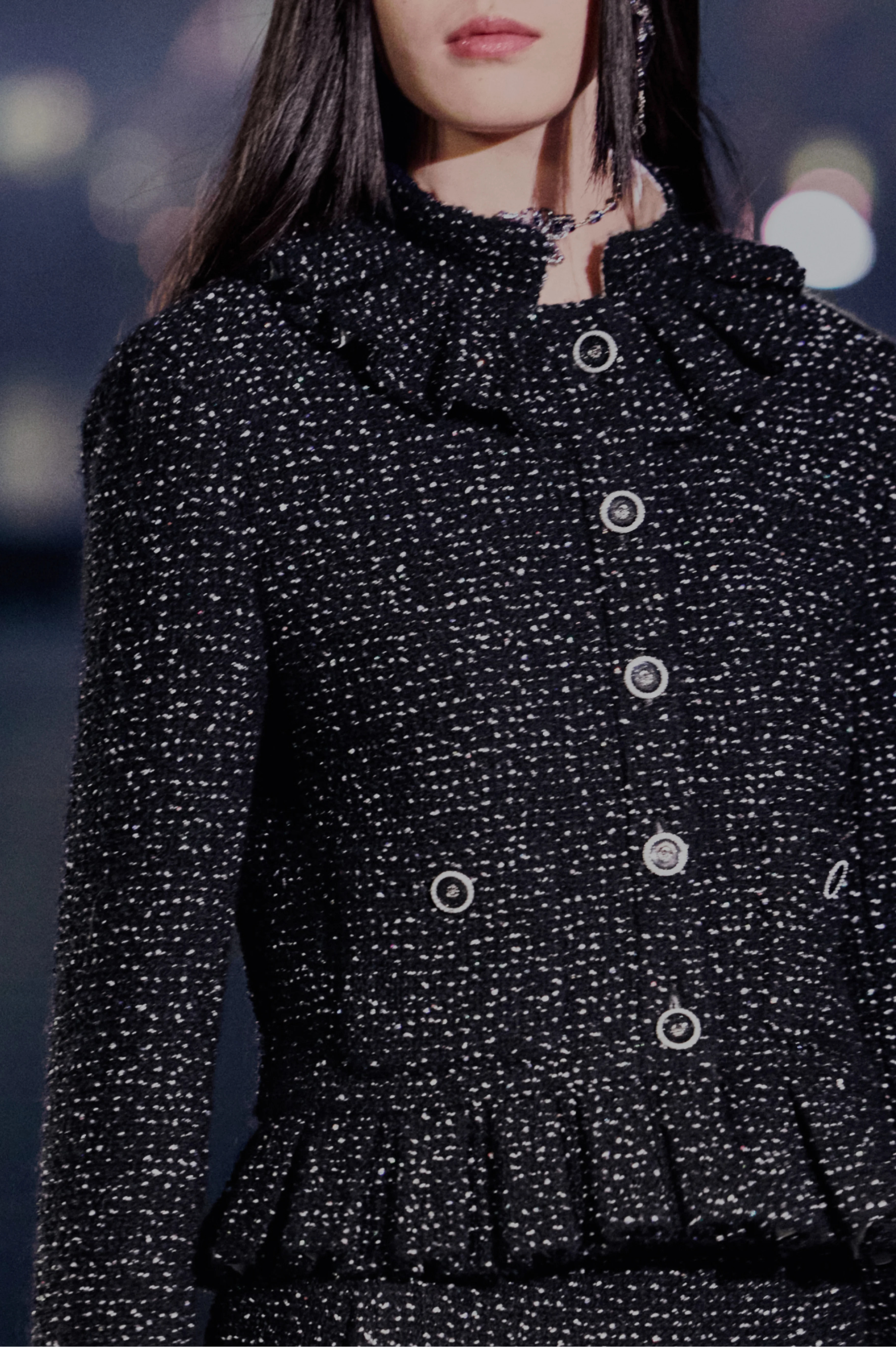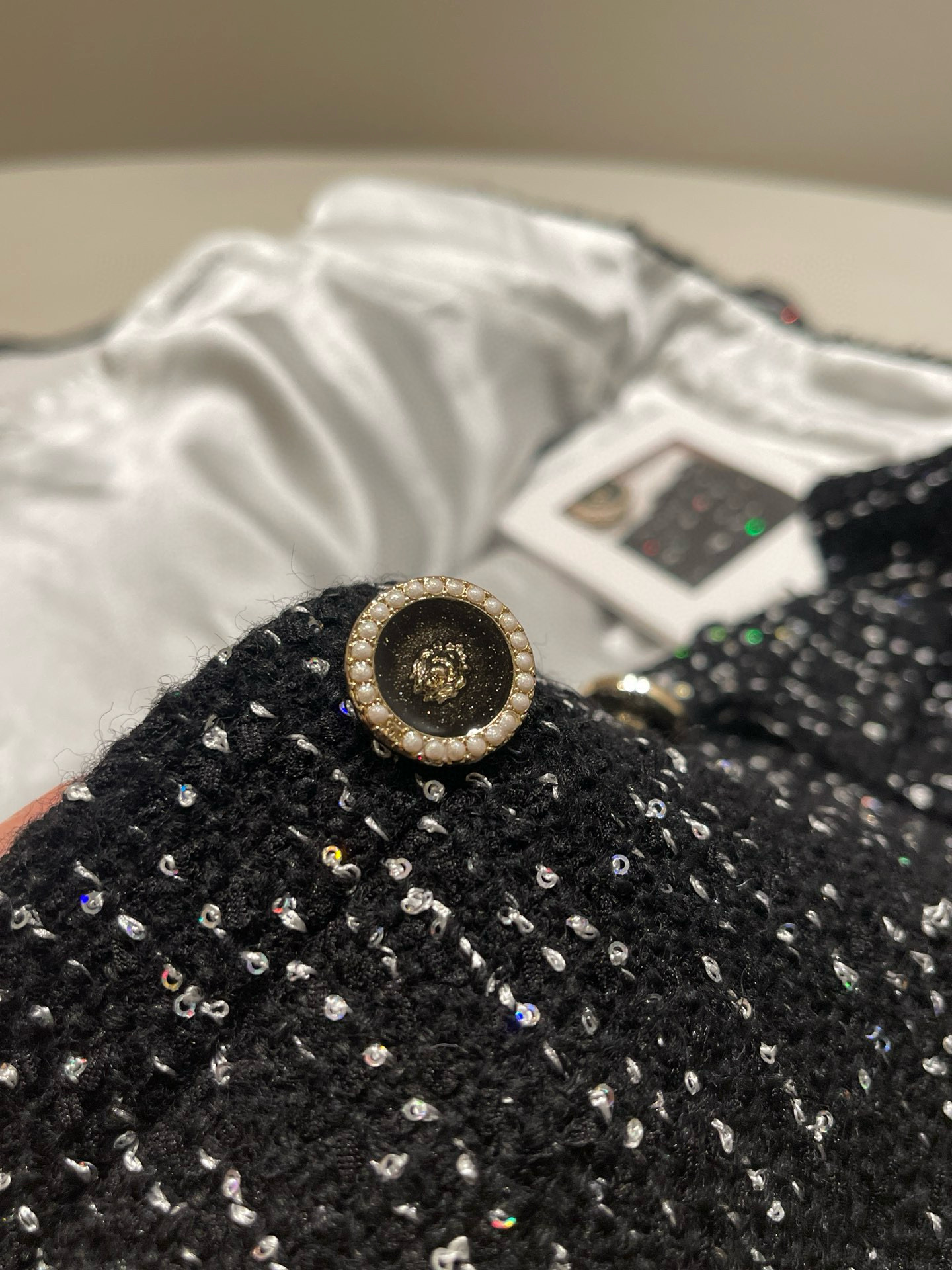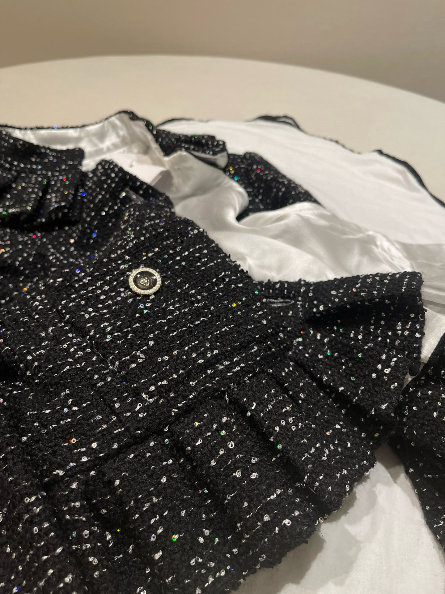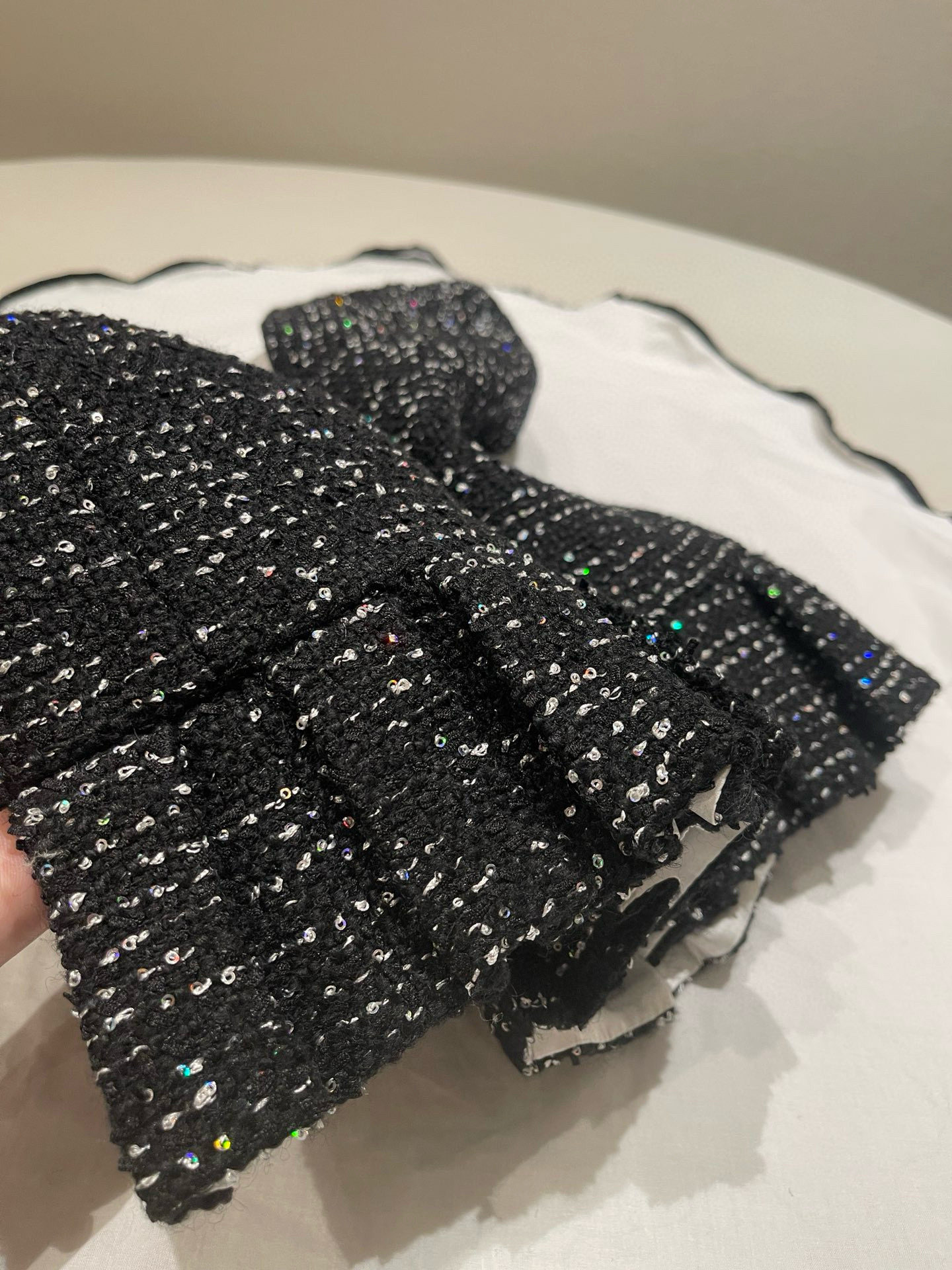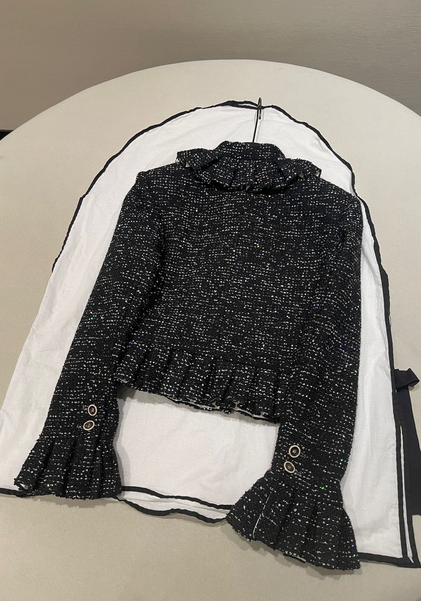 NIGO Chanel Women's Autumn/winter Black Shiny Tweed Single-breasted Jacket With Lace Collar Stylish Mini Skirt Suit Set Ngvp #nigo2172