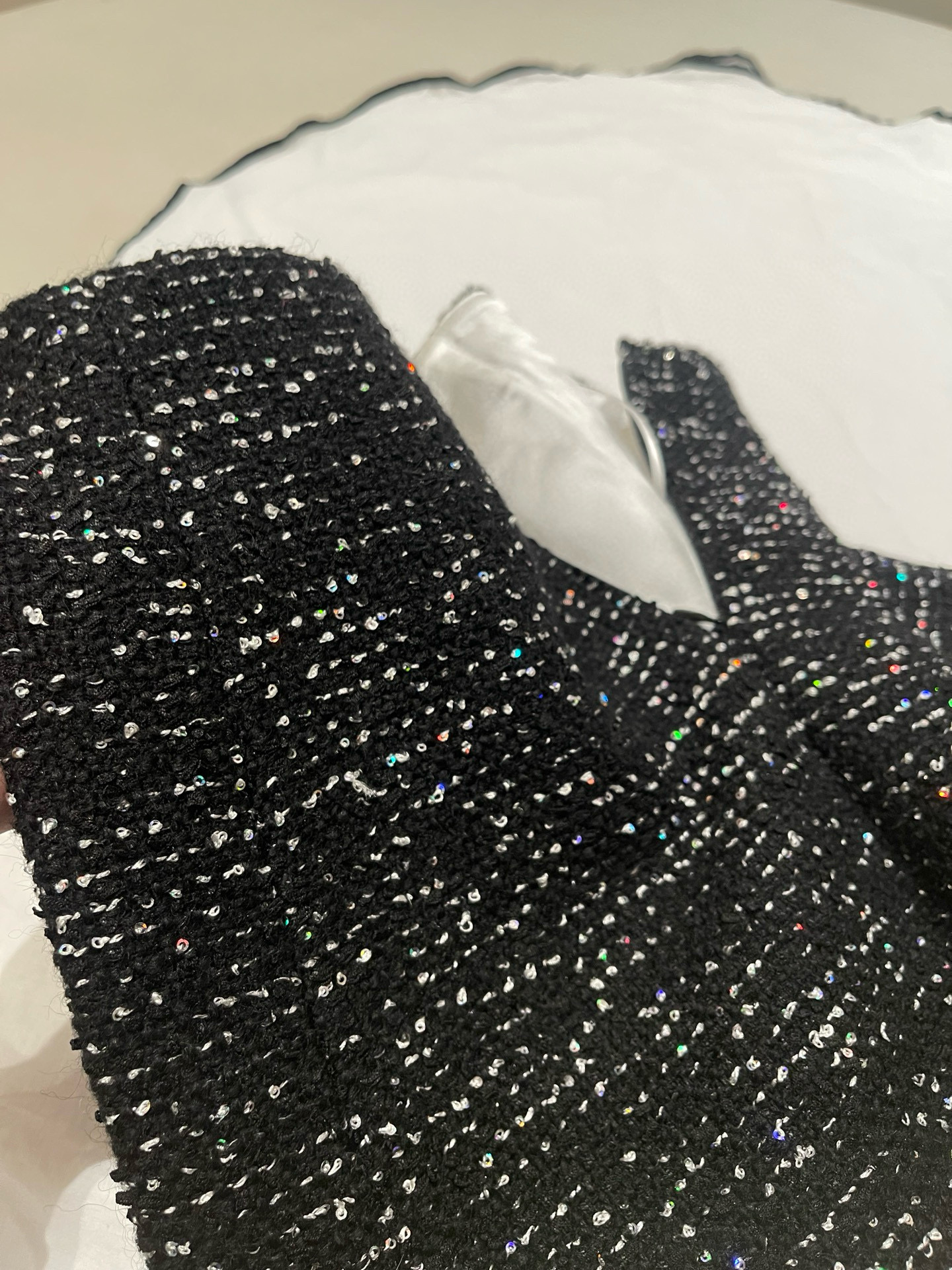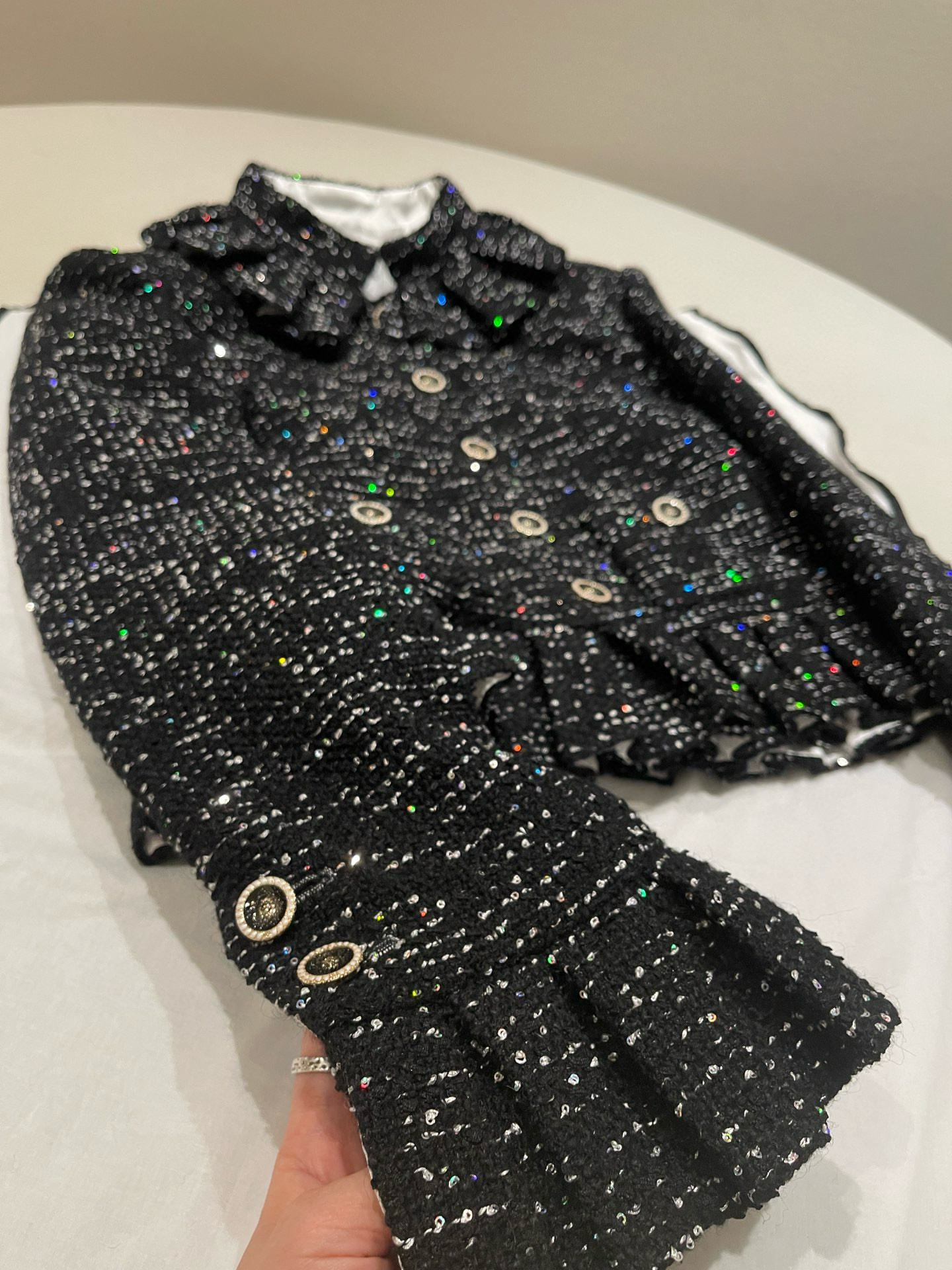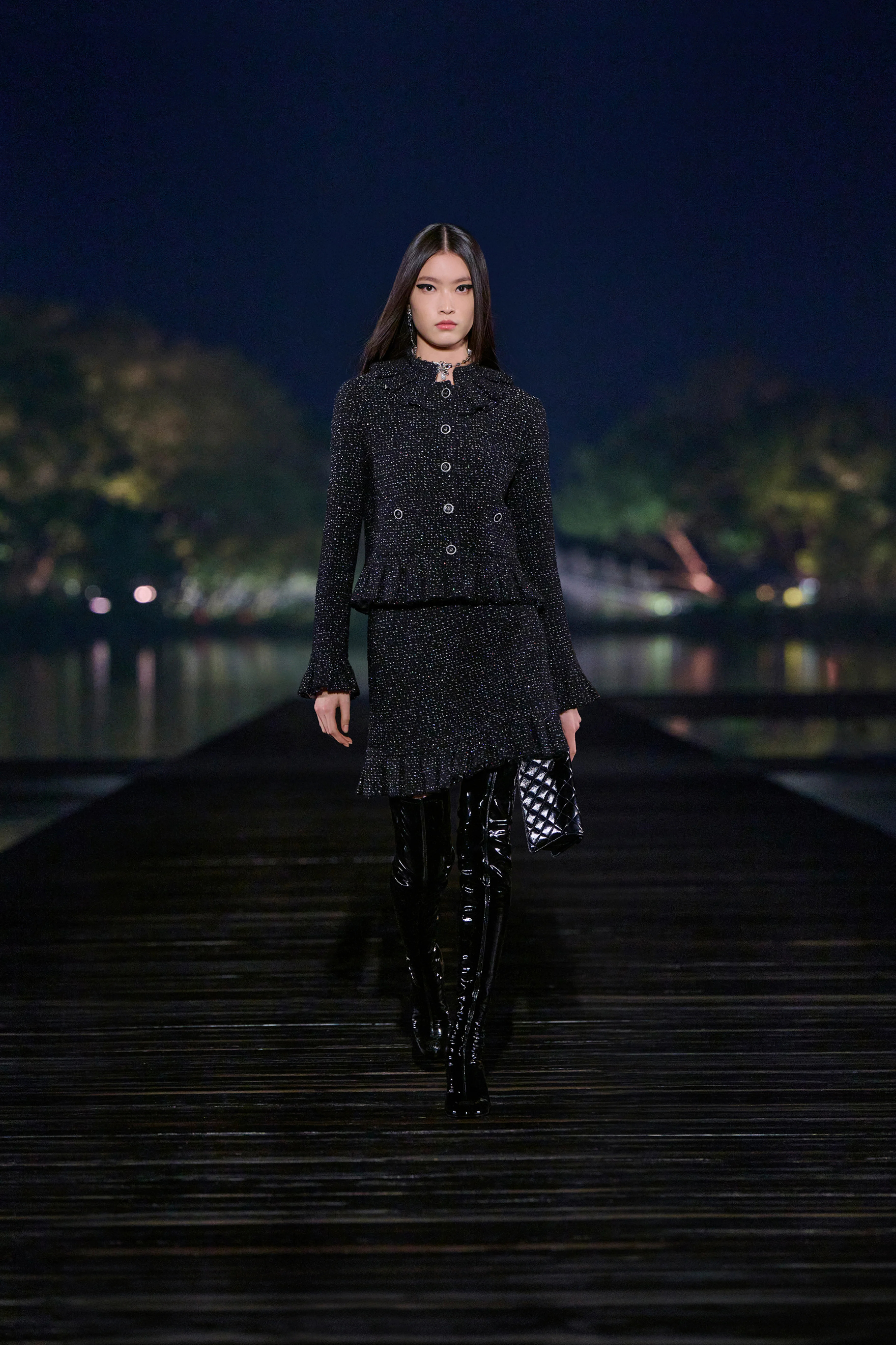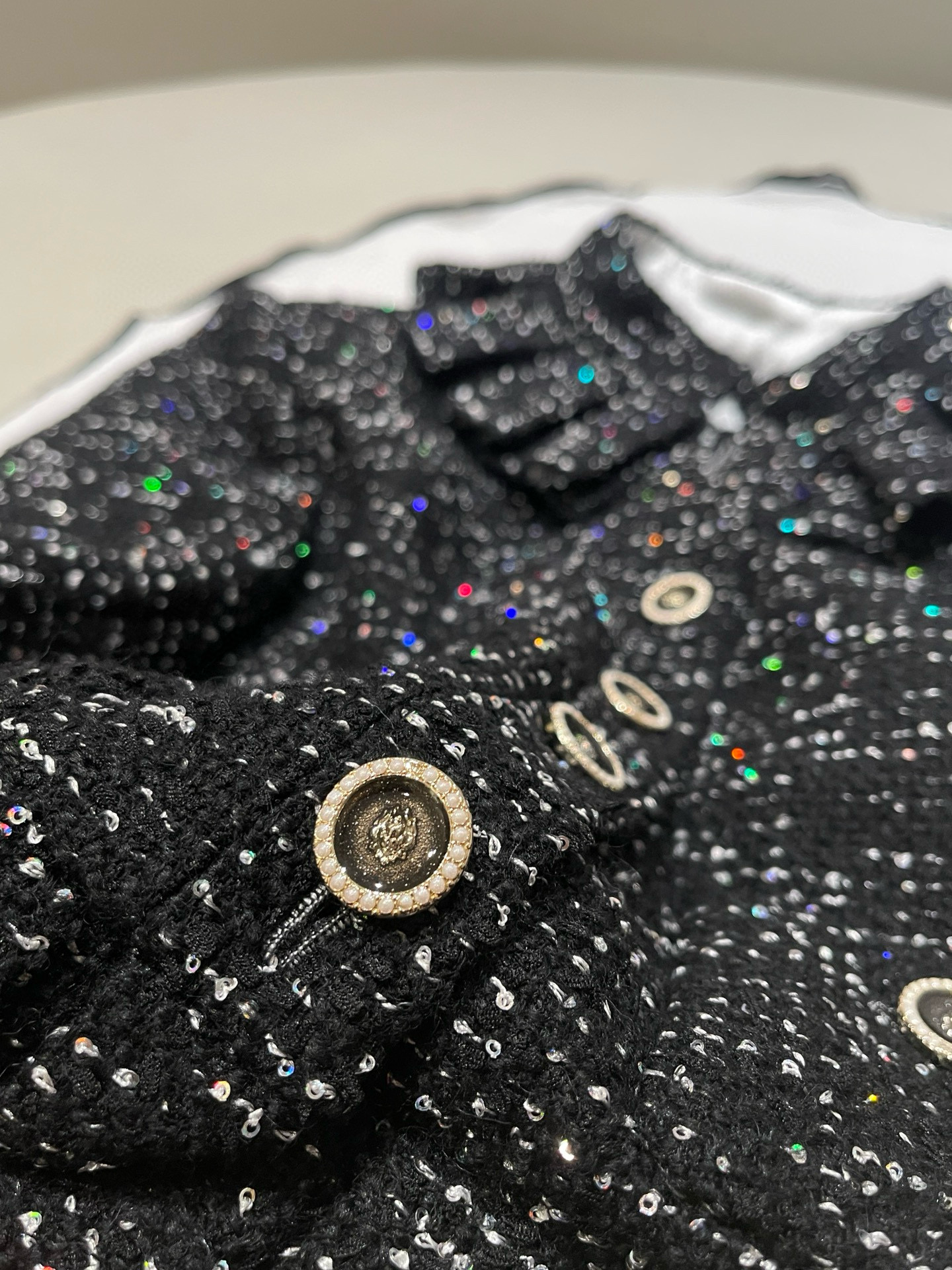 NIGO Chanel Women's Autumn/winter Black Shiny Tweed Single-breasted Jacket With Lace Collar Stylish Mini Skirt Suit Set Ngvp #nigo2172