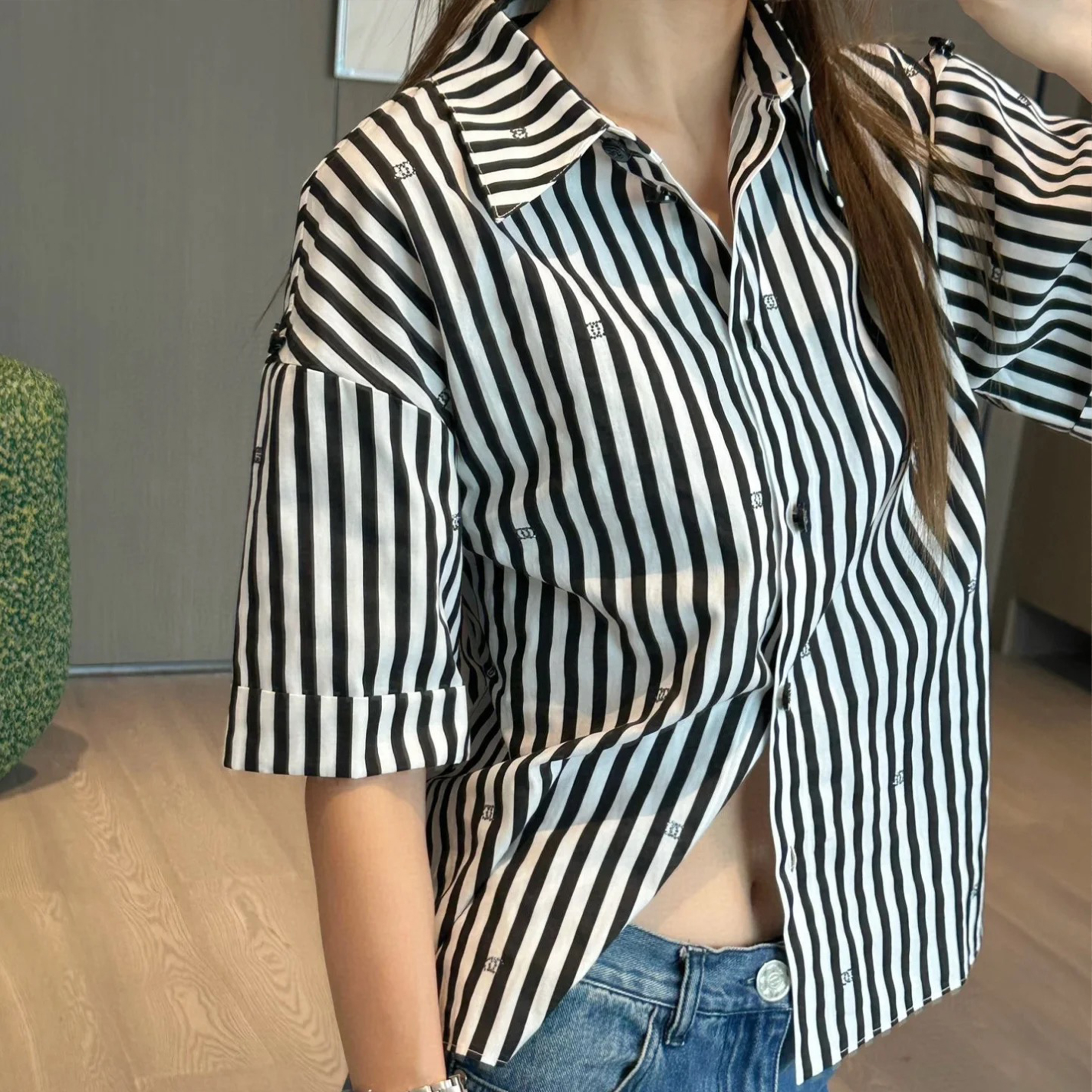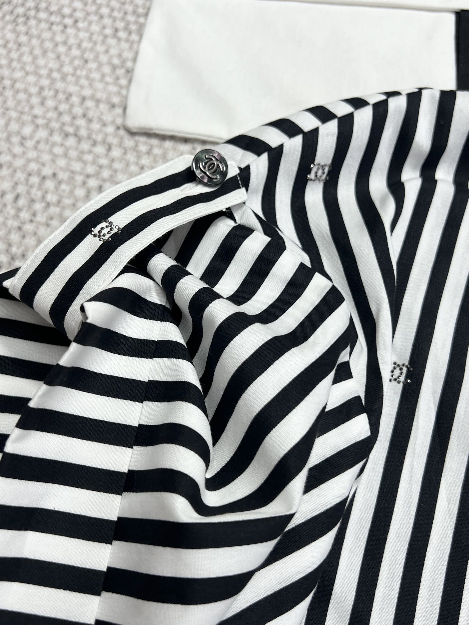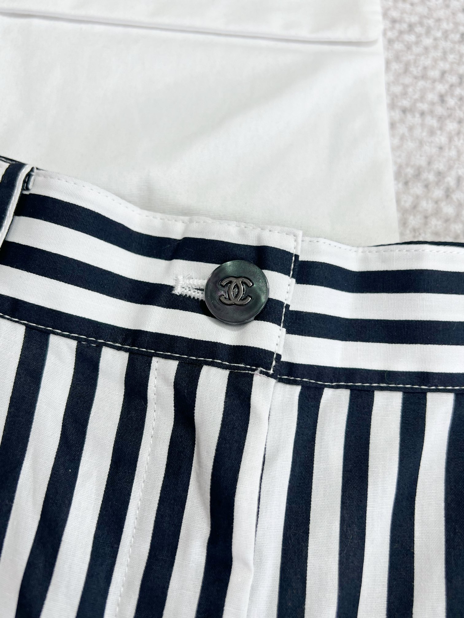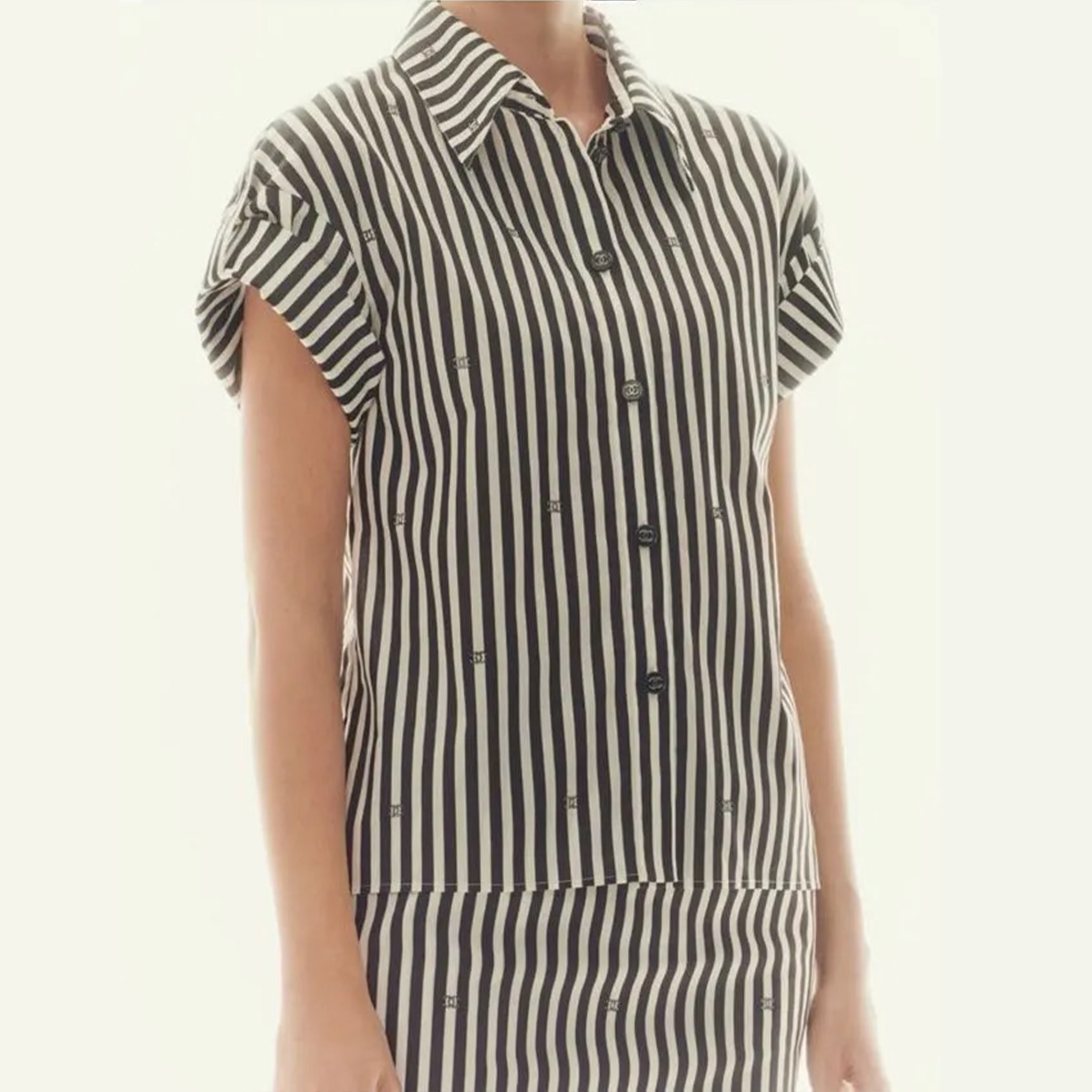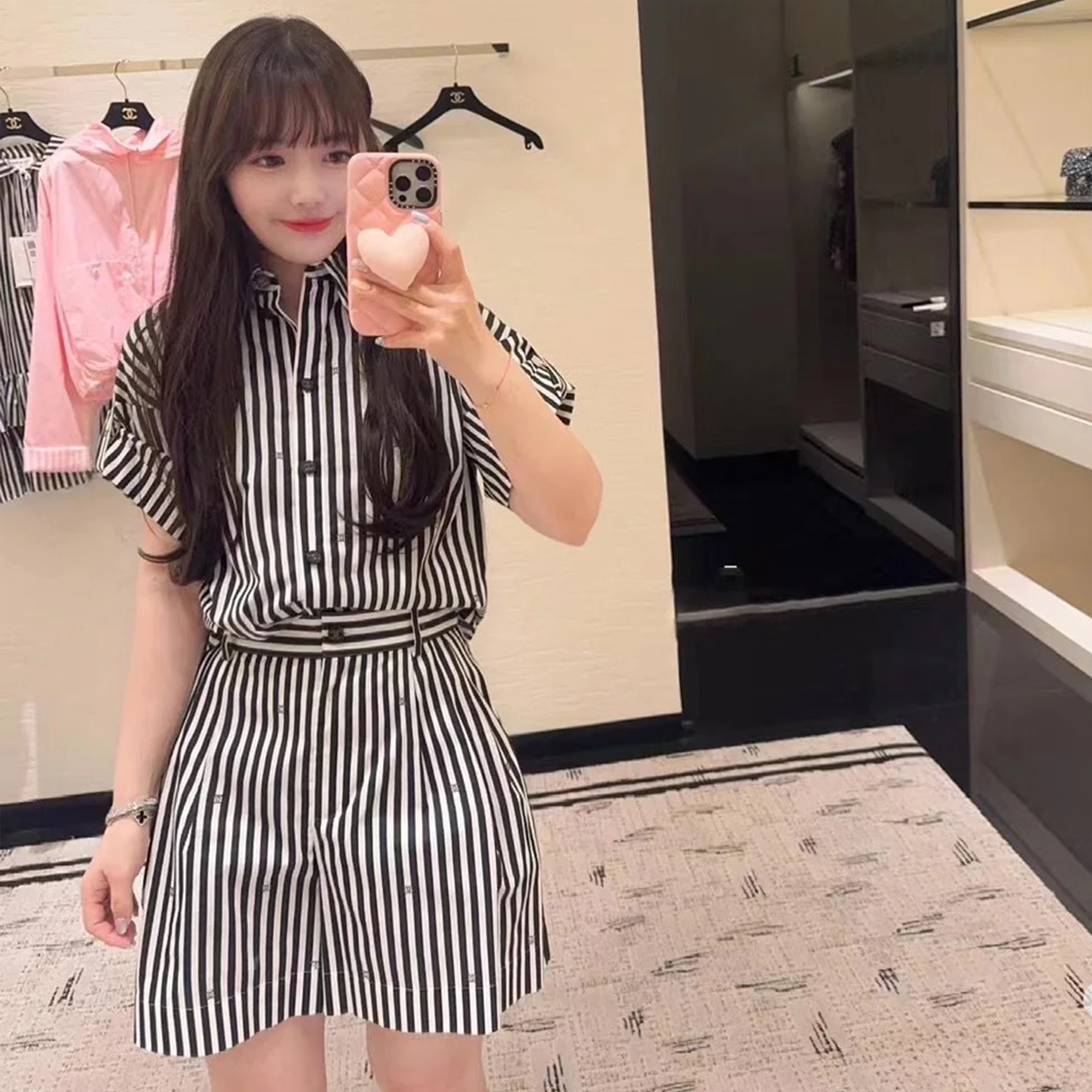 NIGO Chanel Women's Fashion Striped Black And White Logo Short Sleeve Shirt High Waisted Shorts Set Fashionable Temperament Simple Spring And Summer Vacation Suit Set Ngvp #nigo9994
