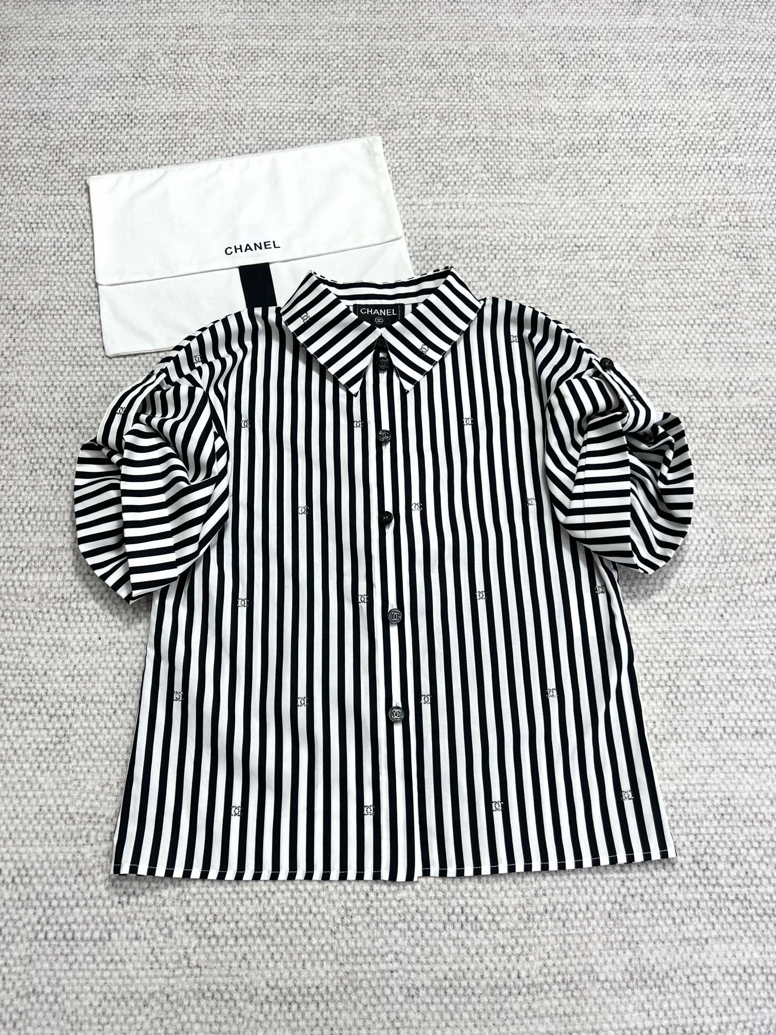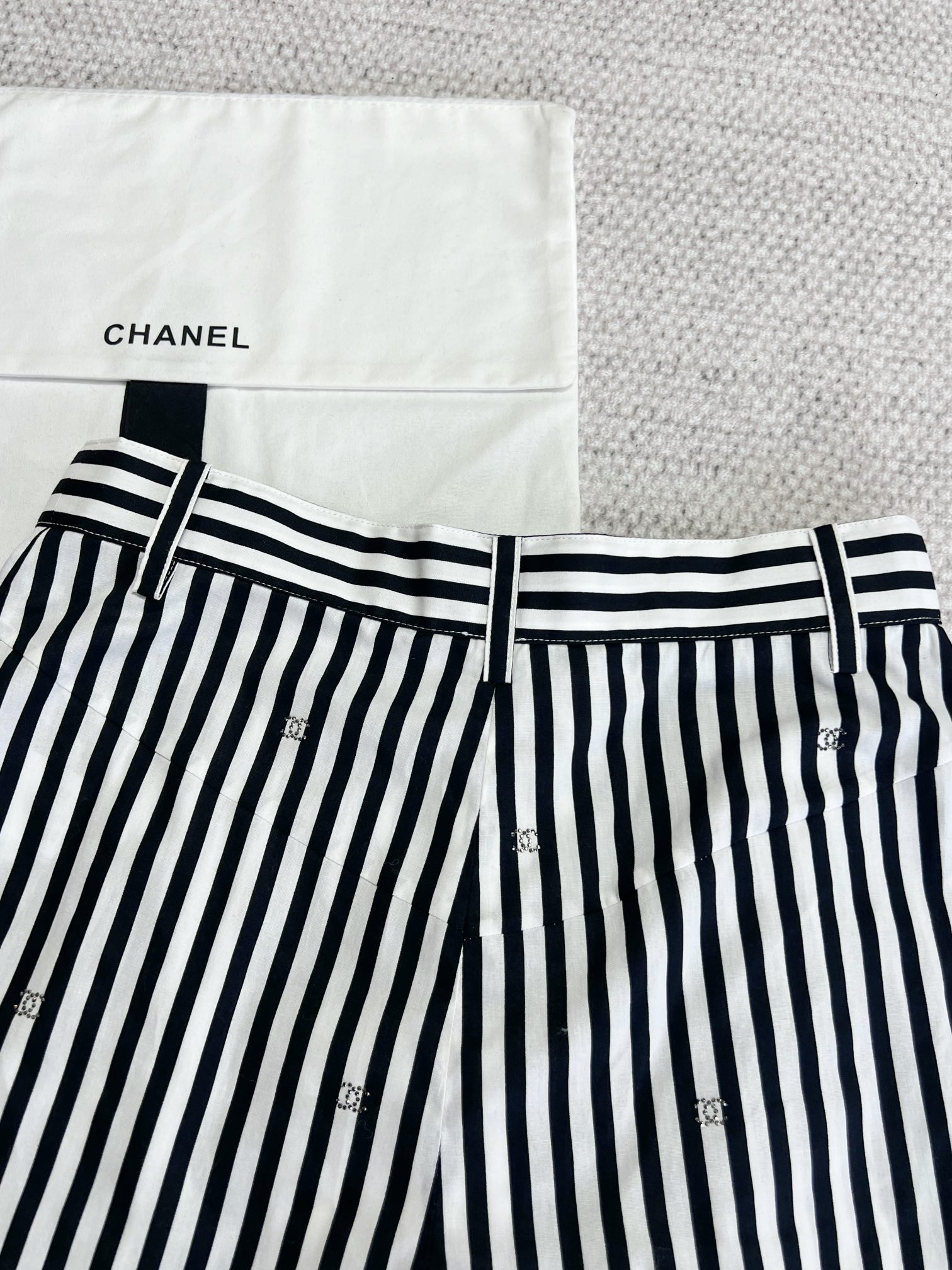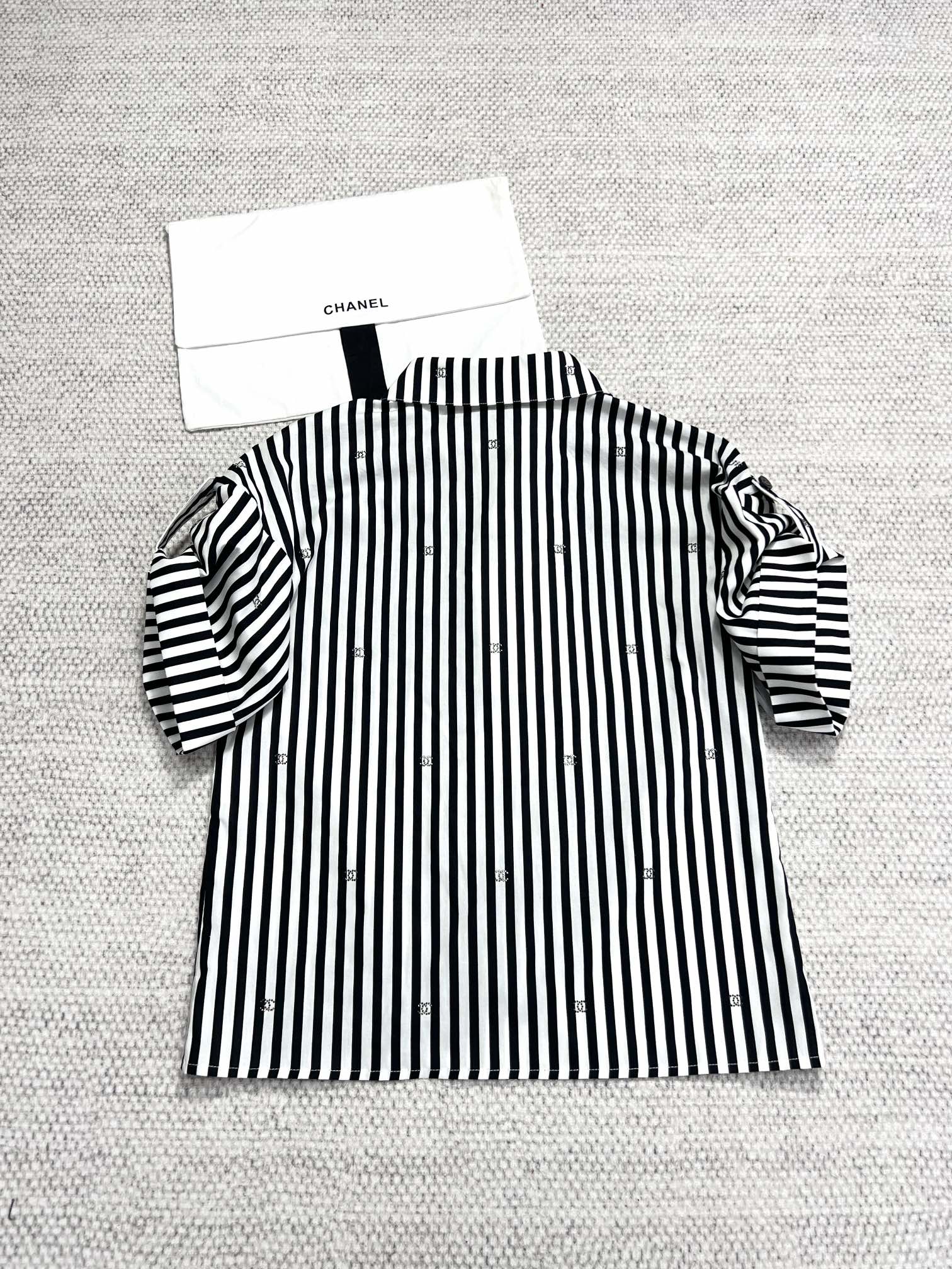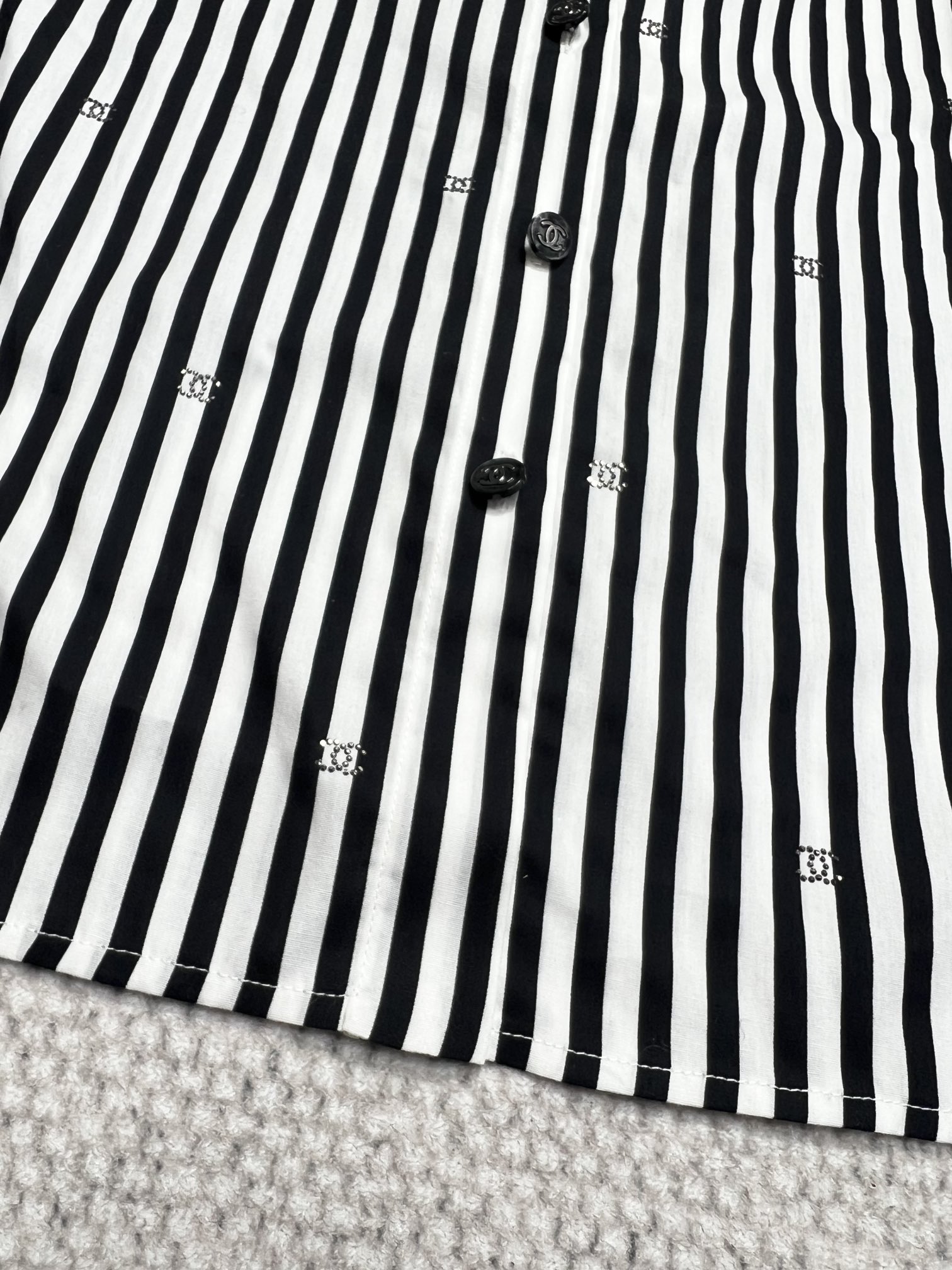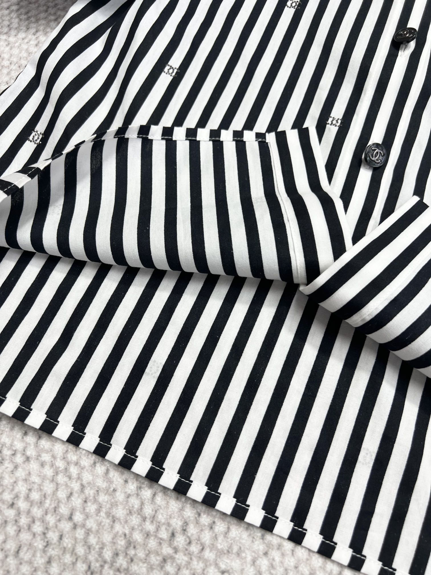 NIGO Chanel Women's Fashion Striped Black And White Logo Short Sleeve Shirt High Waisted Shorts Set Fashionable Temperament Simple Spring And Summer Vacation Suit Set Ngvp #nigo9994