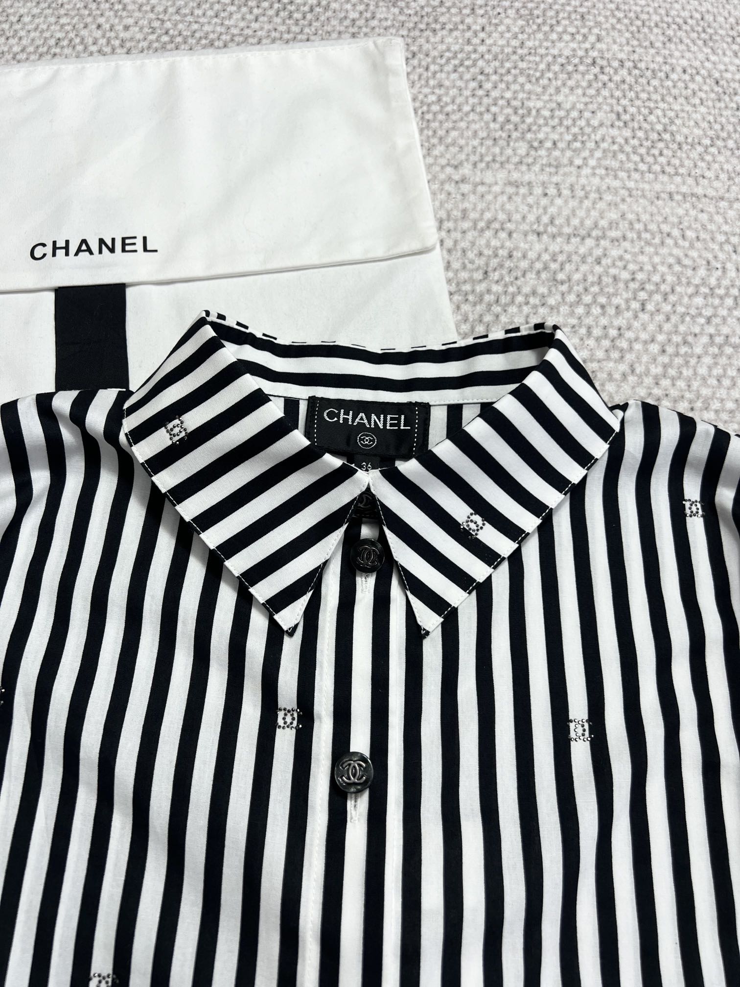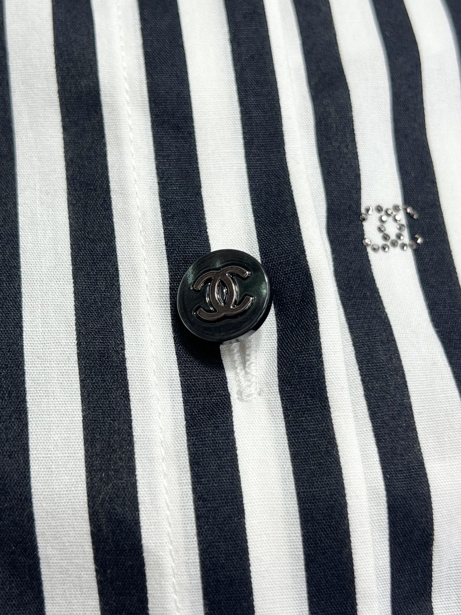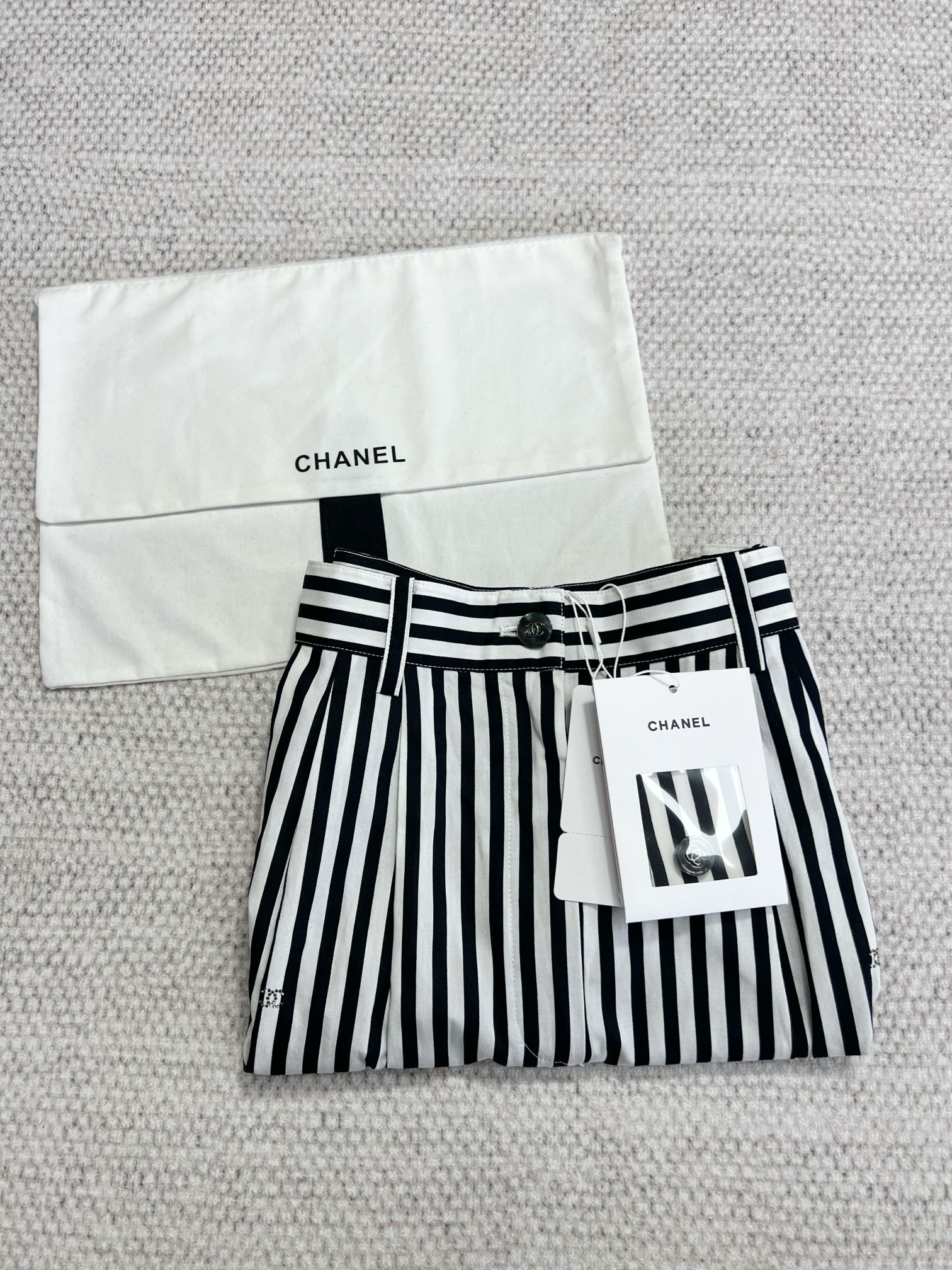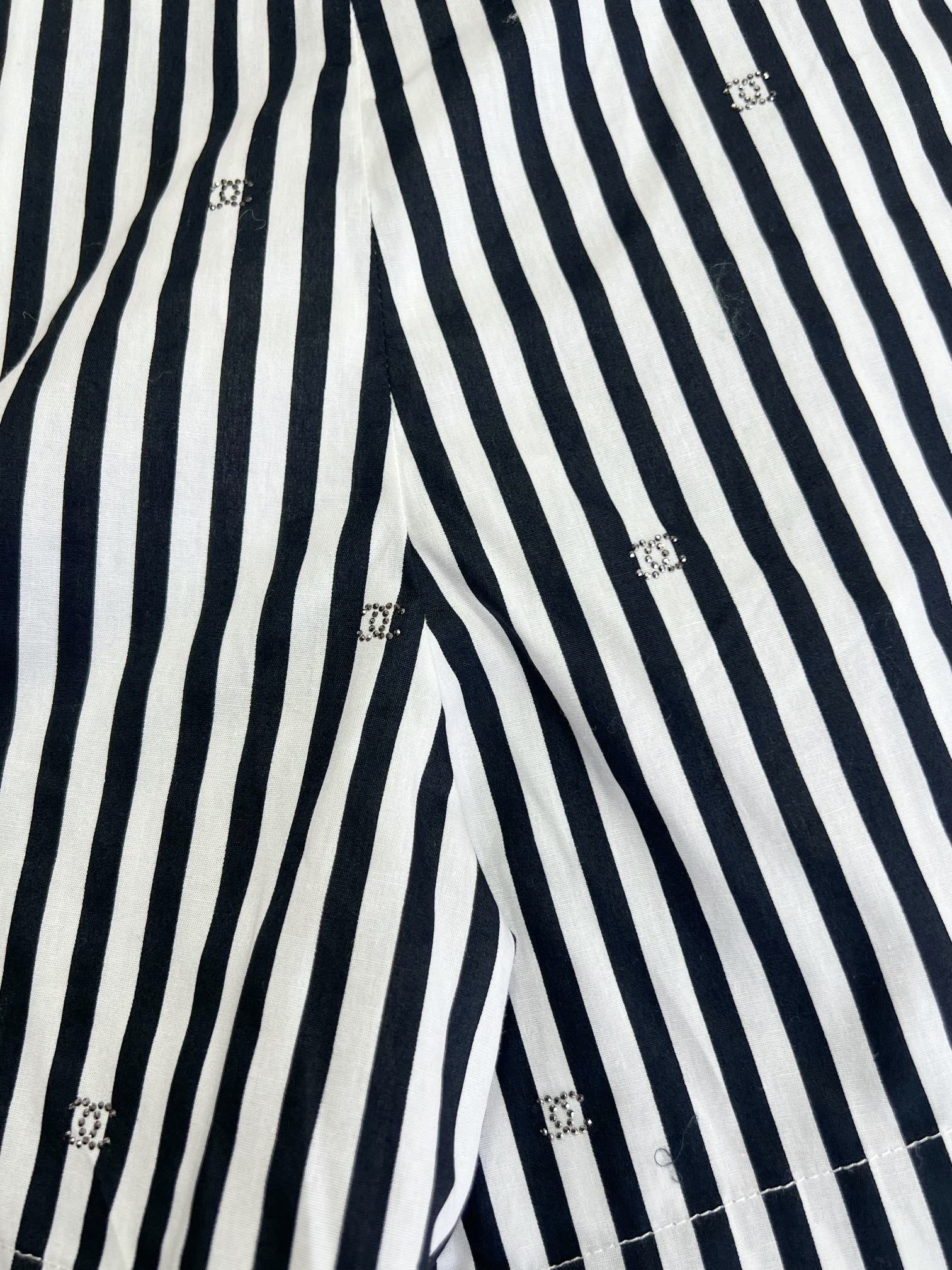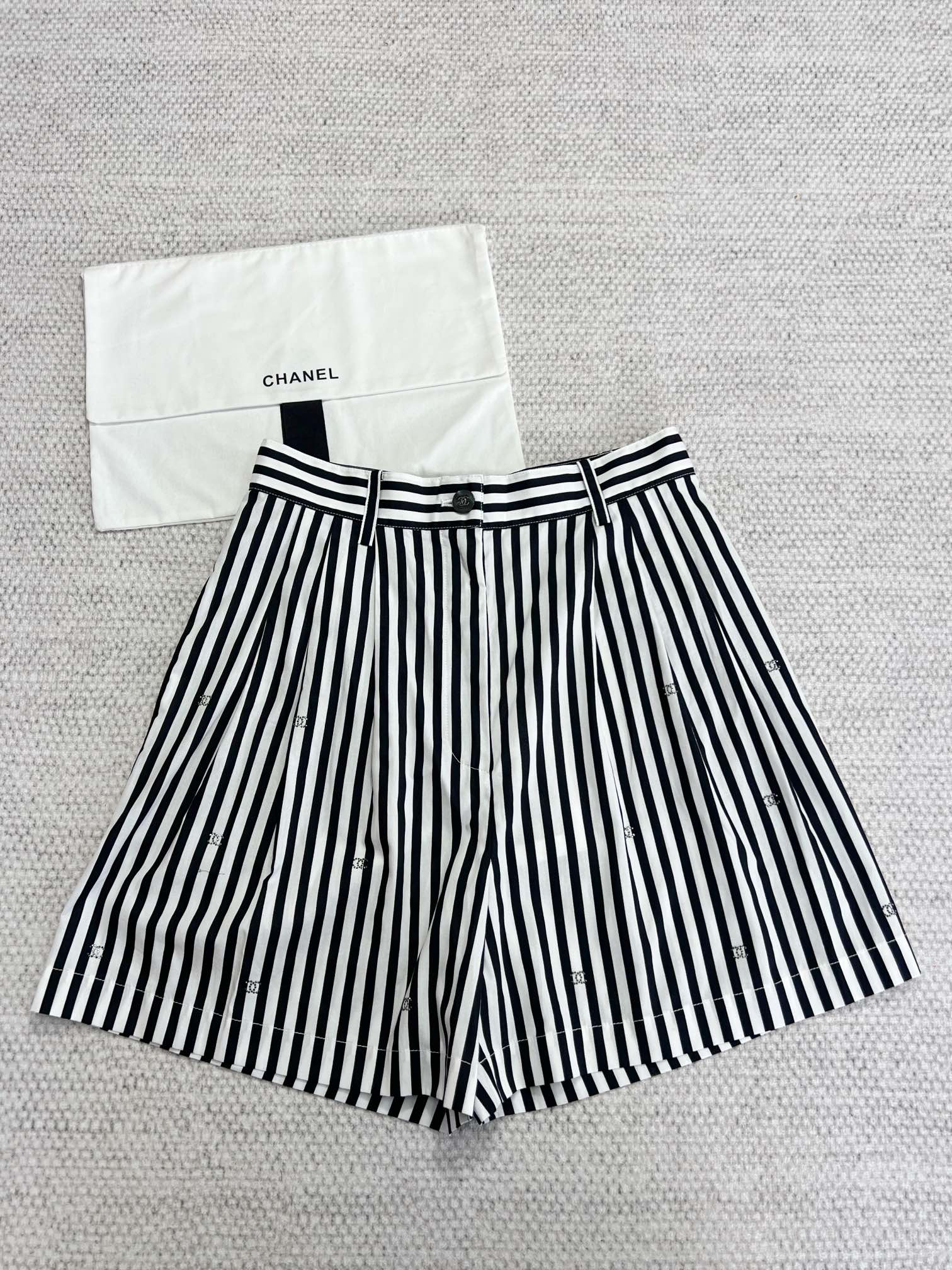 NIGO Chanel Women's Fashion Striped Black And White Logo Short Sleeve Shirt High Waisted Shorts Set Fashionable Temperament Simple Spring And Summer Vacation Suit Set Ngvp #nigo9994