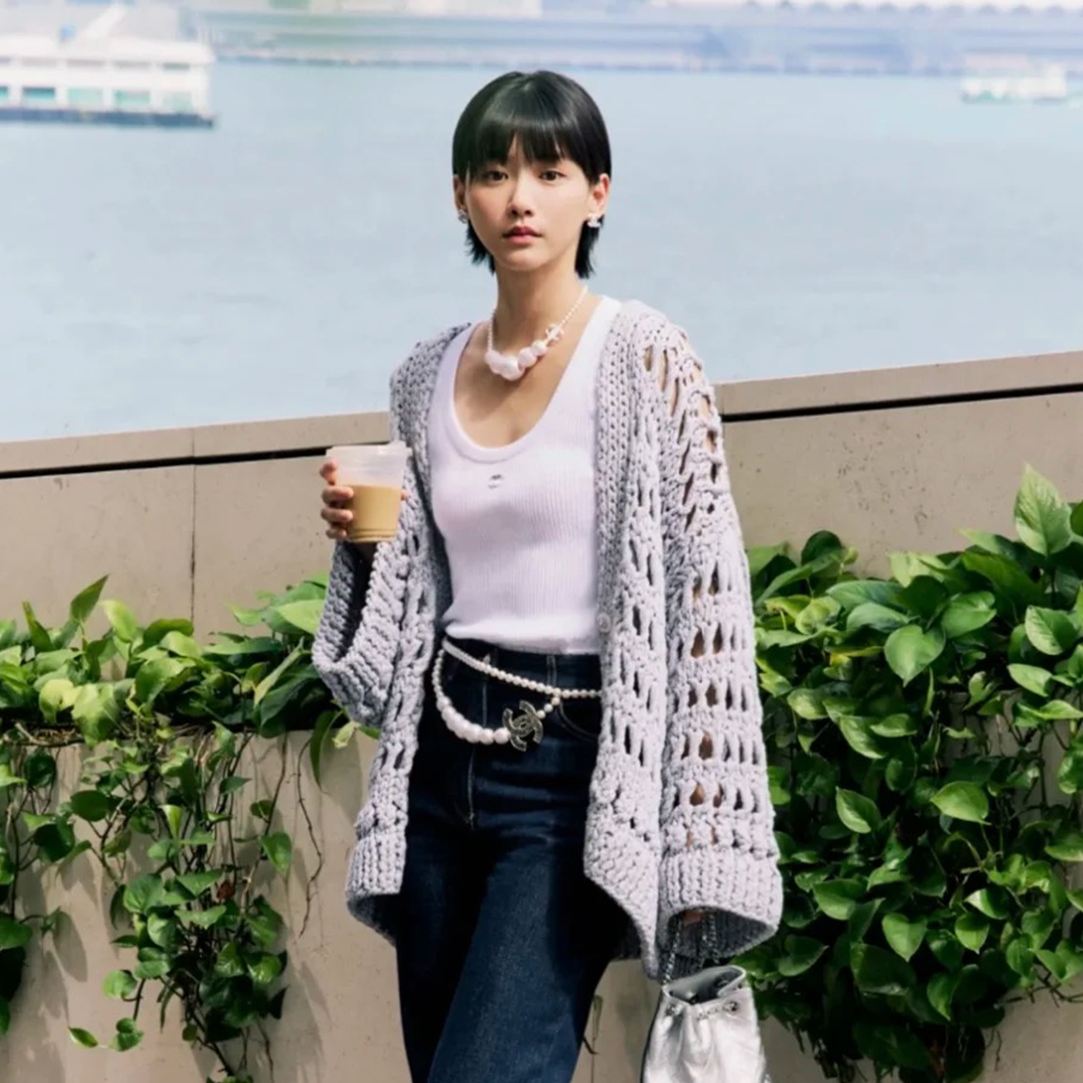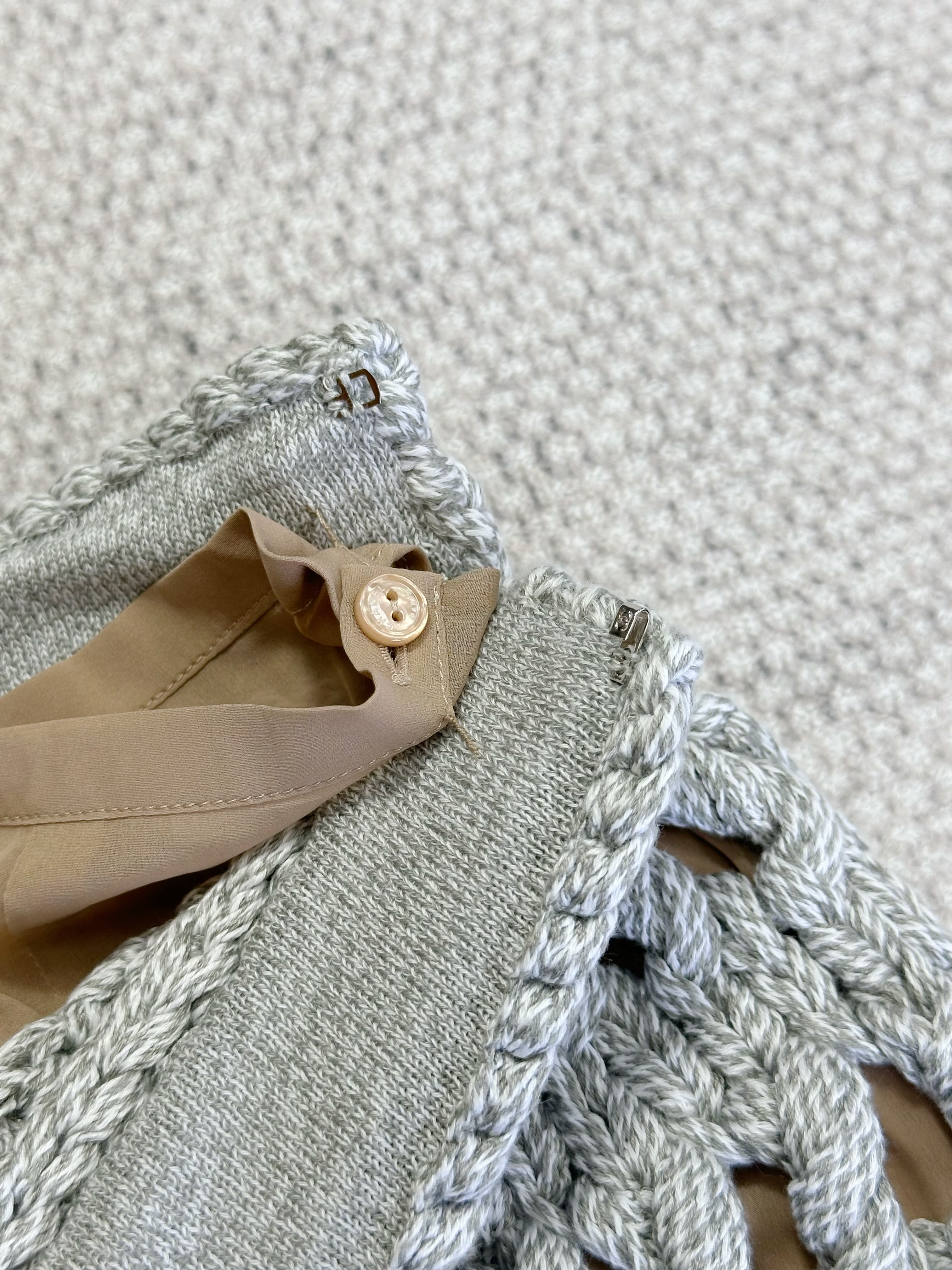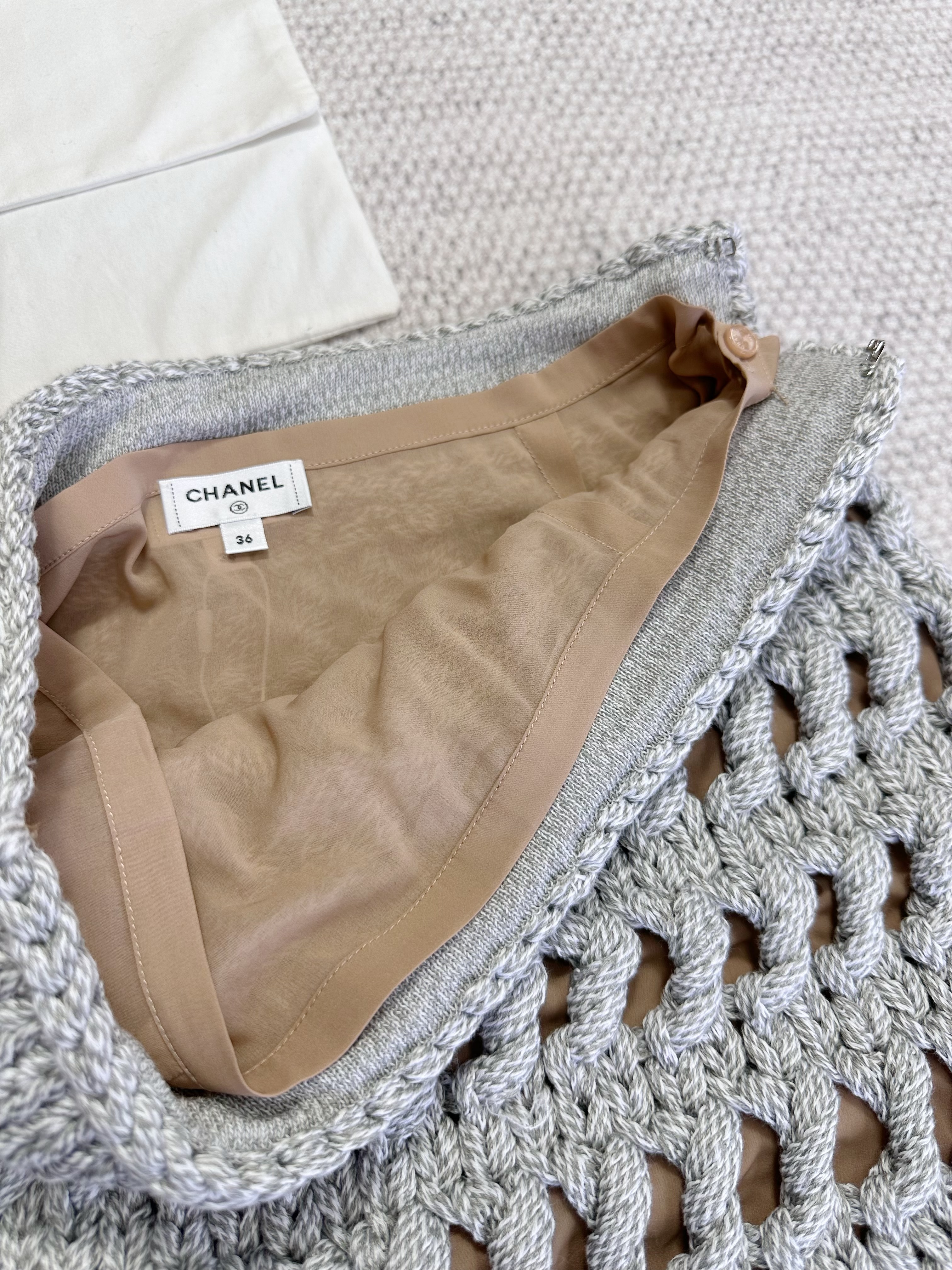 NIGO Chanel Women's Spring And Autumn Grey Coarse Knit Cotton Cardigan Jacket Wrap Hip Half Skirt Set Fashionable Temperament Elegant Knitting Suit Ngvp #nigo1326
