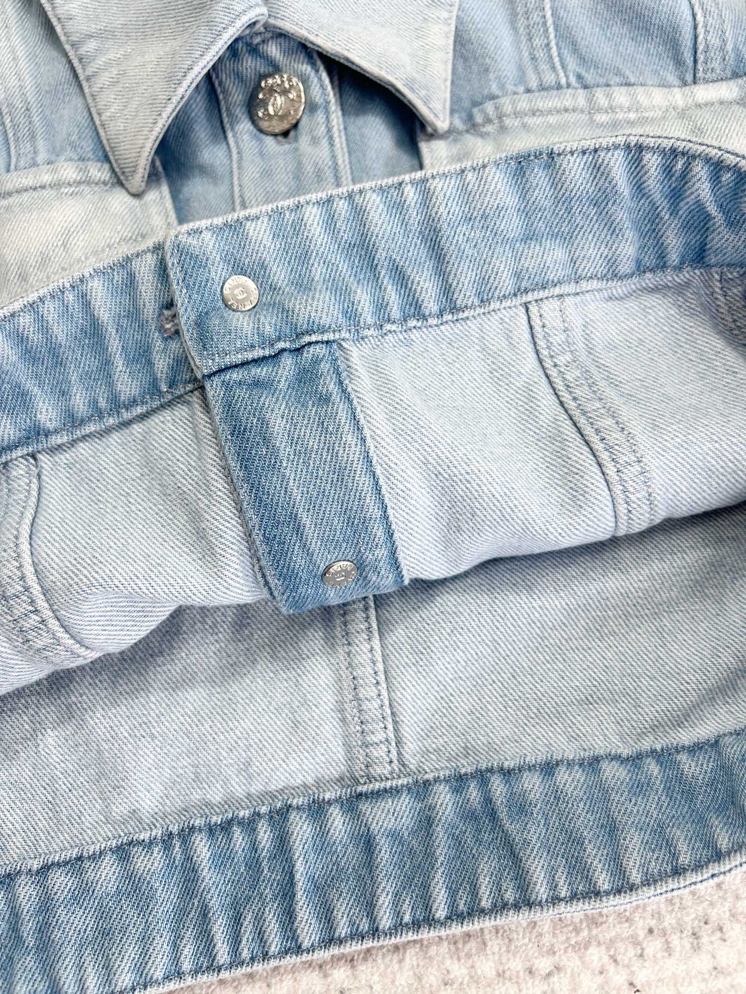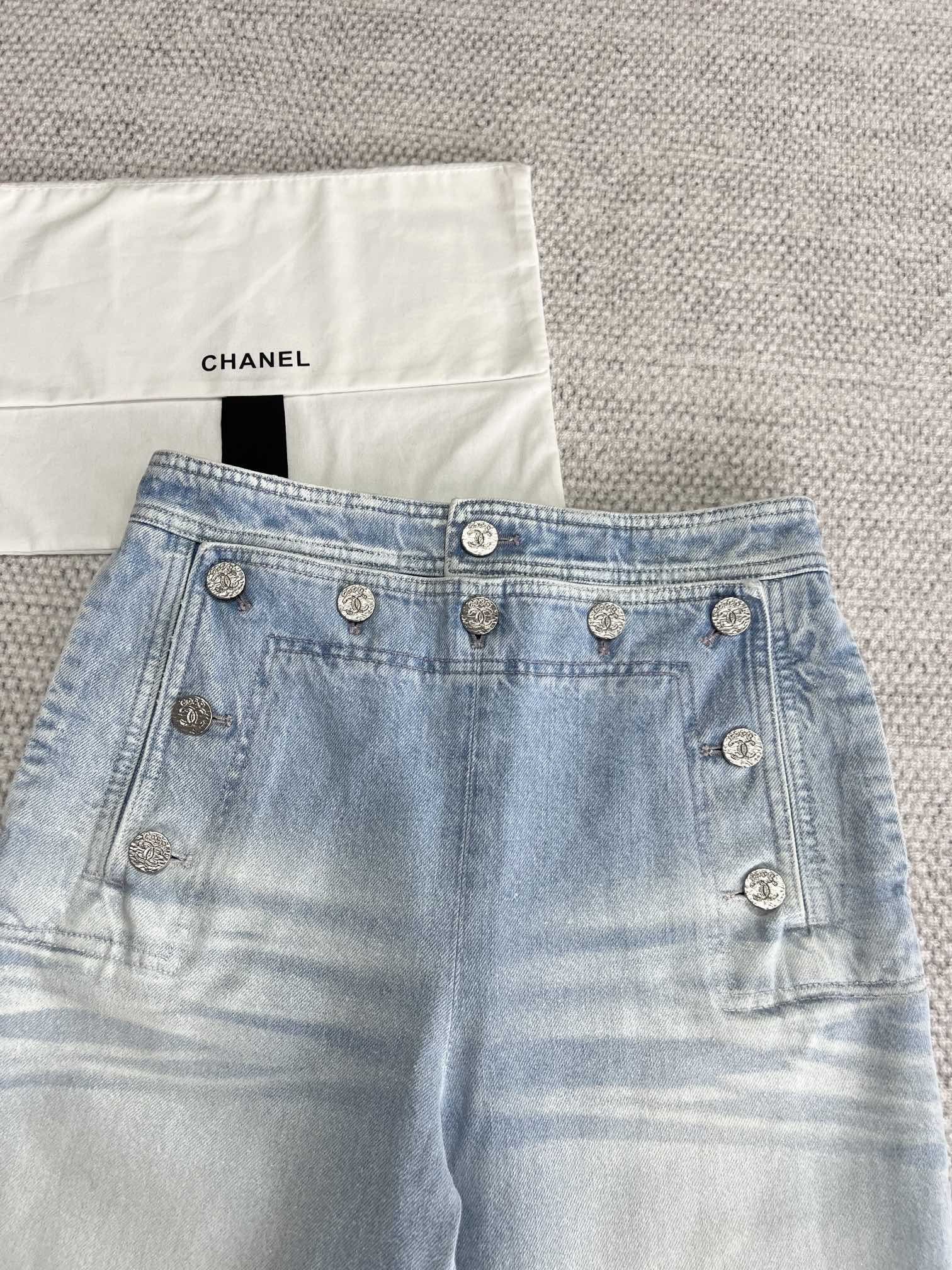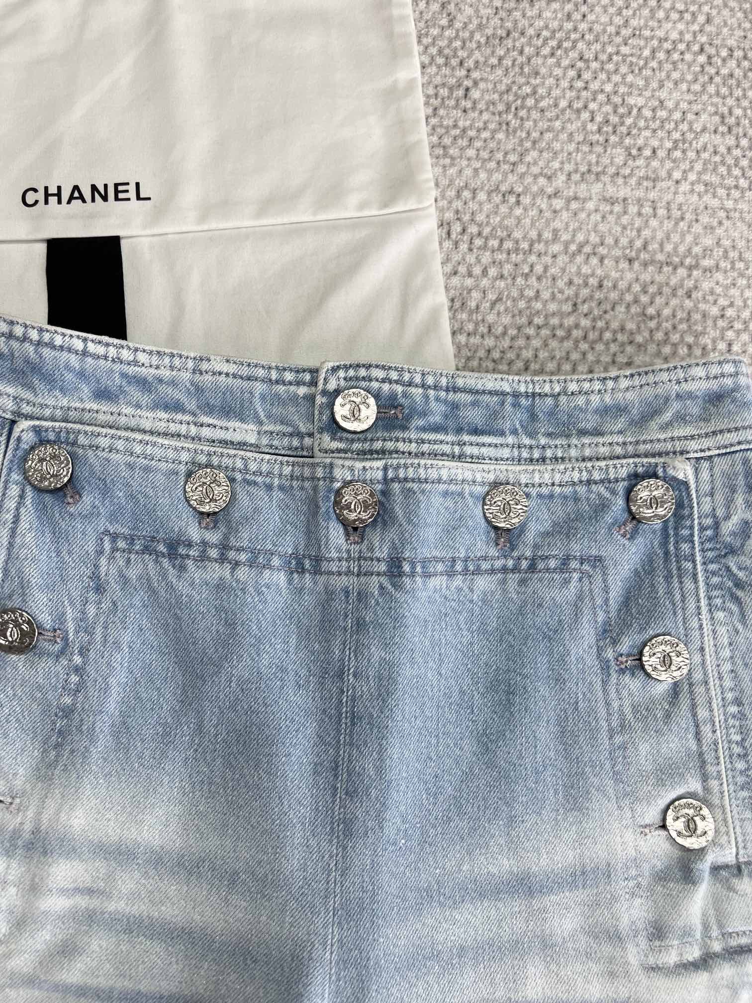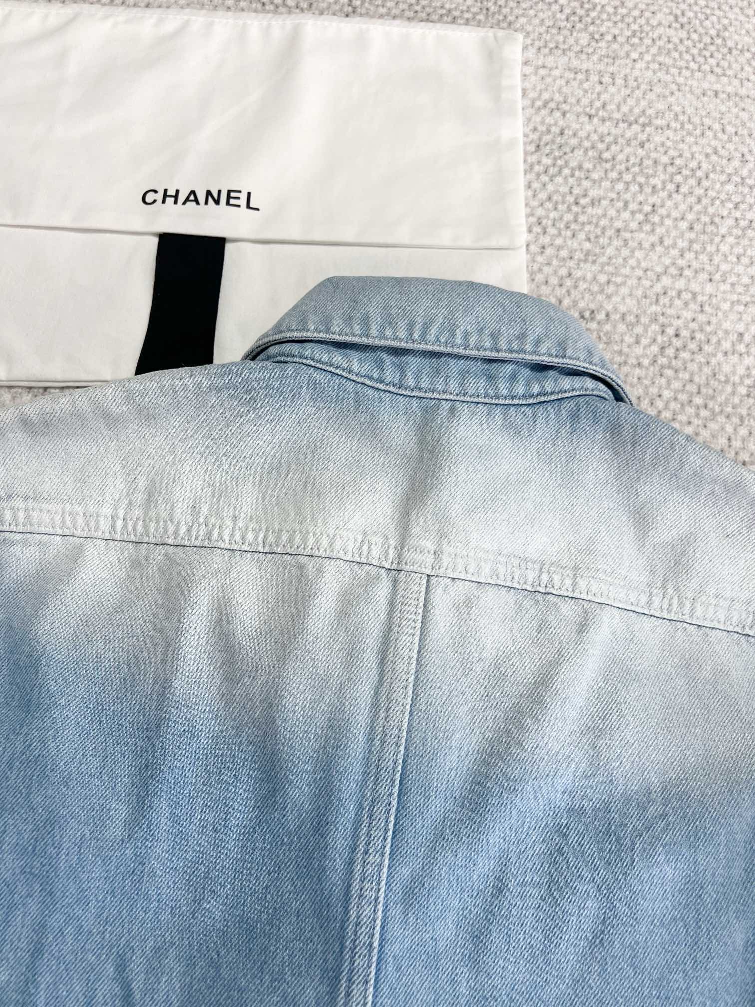 NIGO Chanel Women's Spring And Summer Blue Washed Lapel Single Breasted Short Short Sleeved Denim Jacket Casual Jeans Pants Suit Set #nigo76159