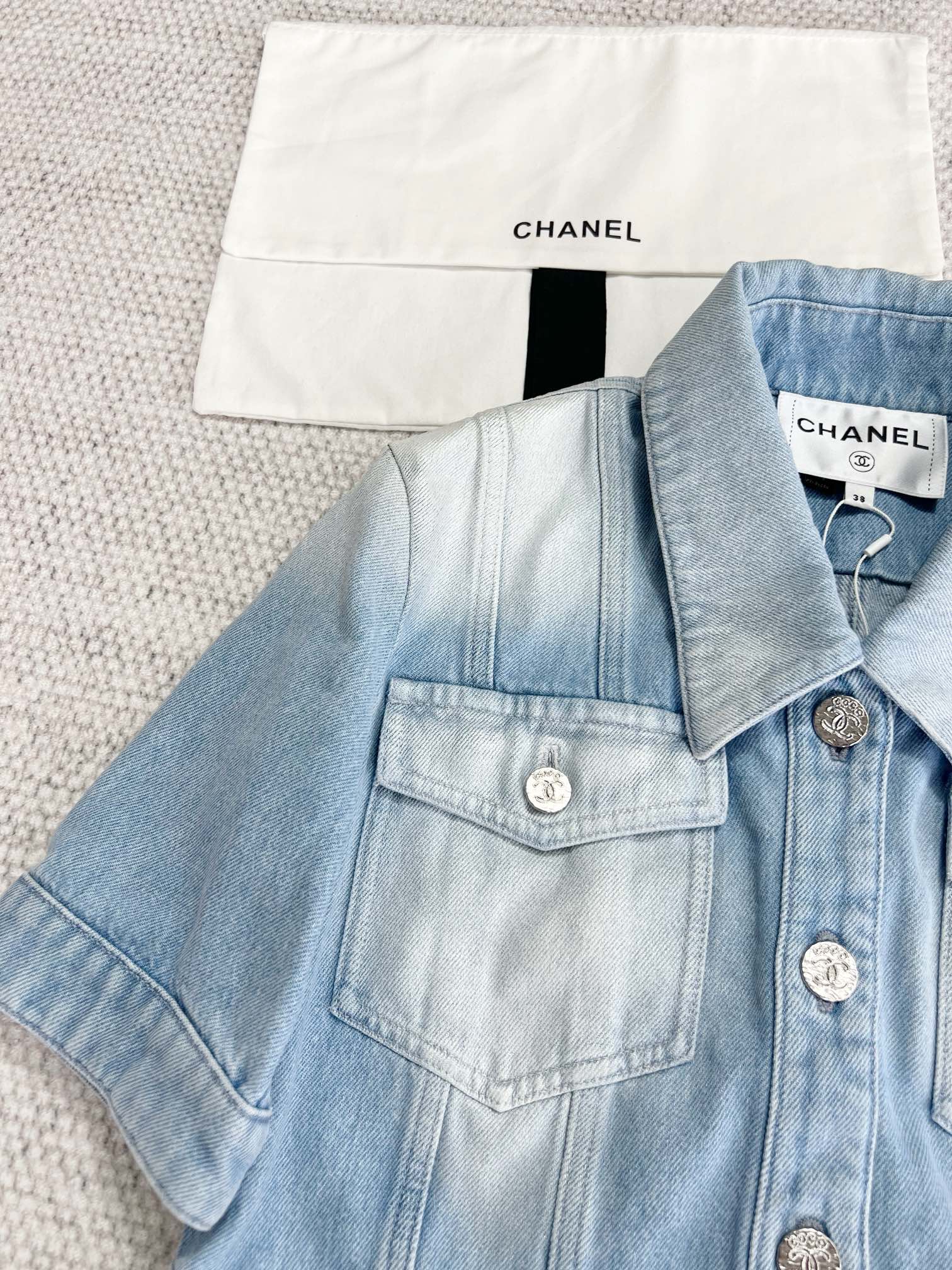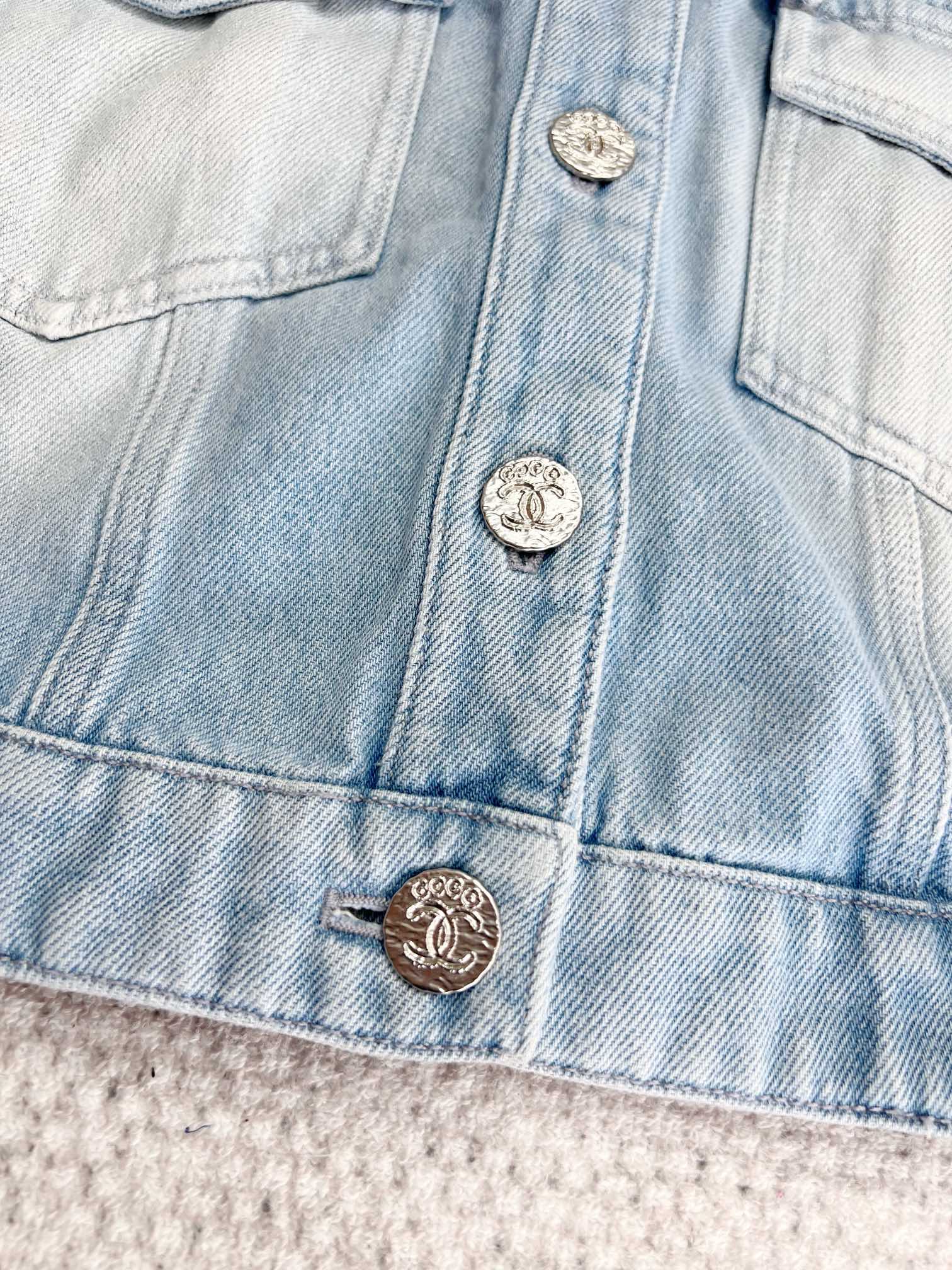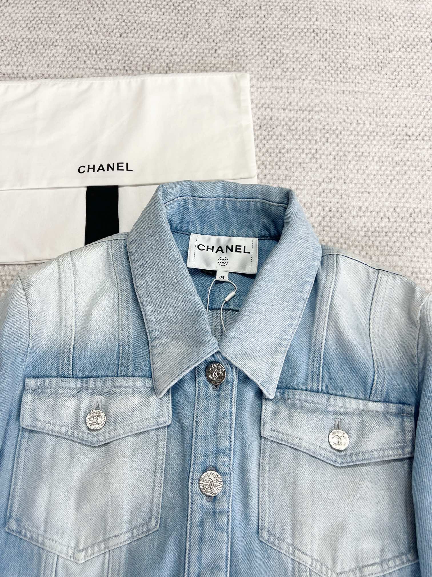 NIGO Chanel Women's Spring And Summer Blue Washed Lapel Single Breasted Short Short Sleeved Denim Jacket Casual Jeans Pants Suit Set #nigo76159