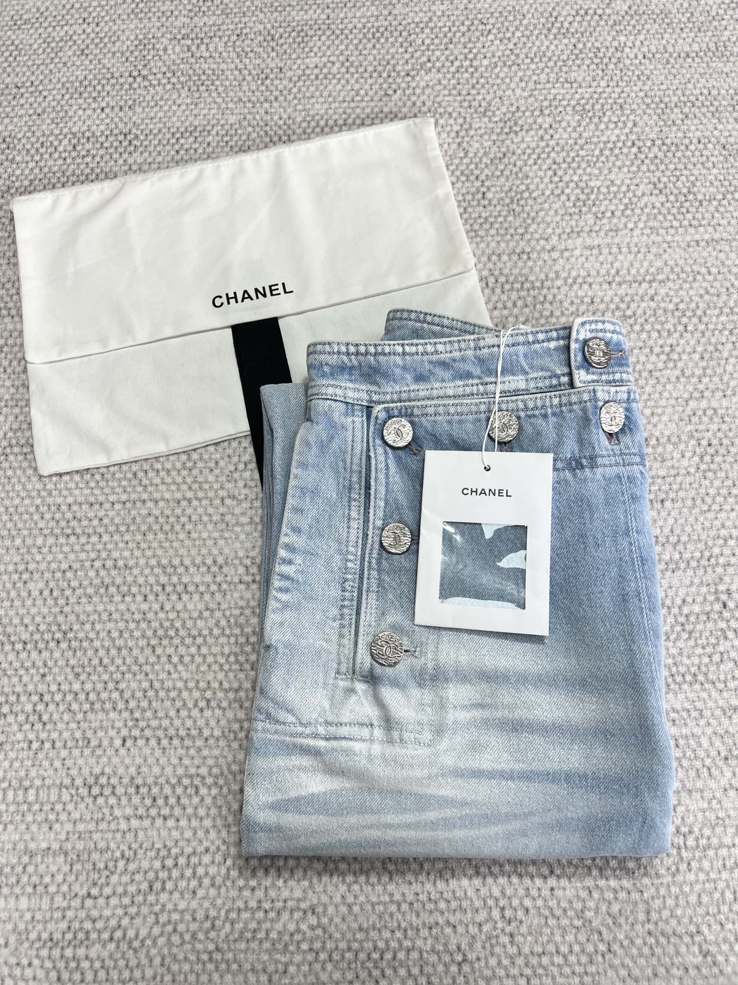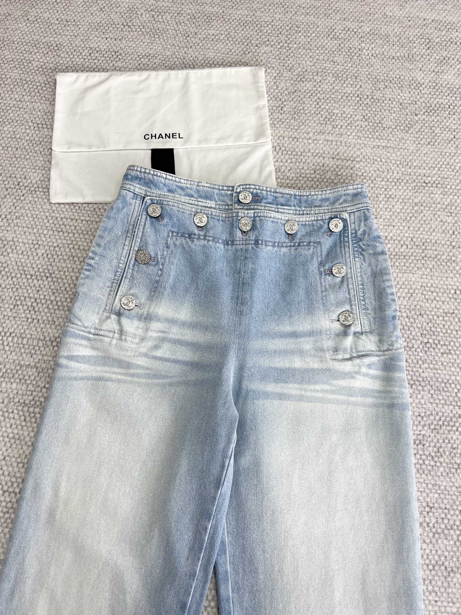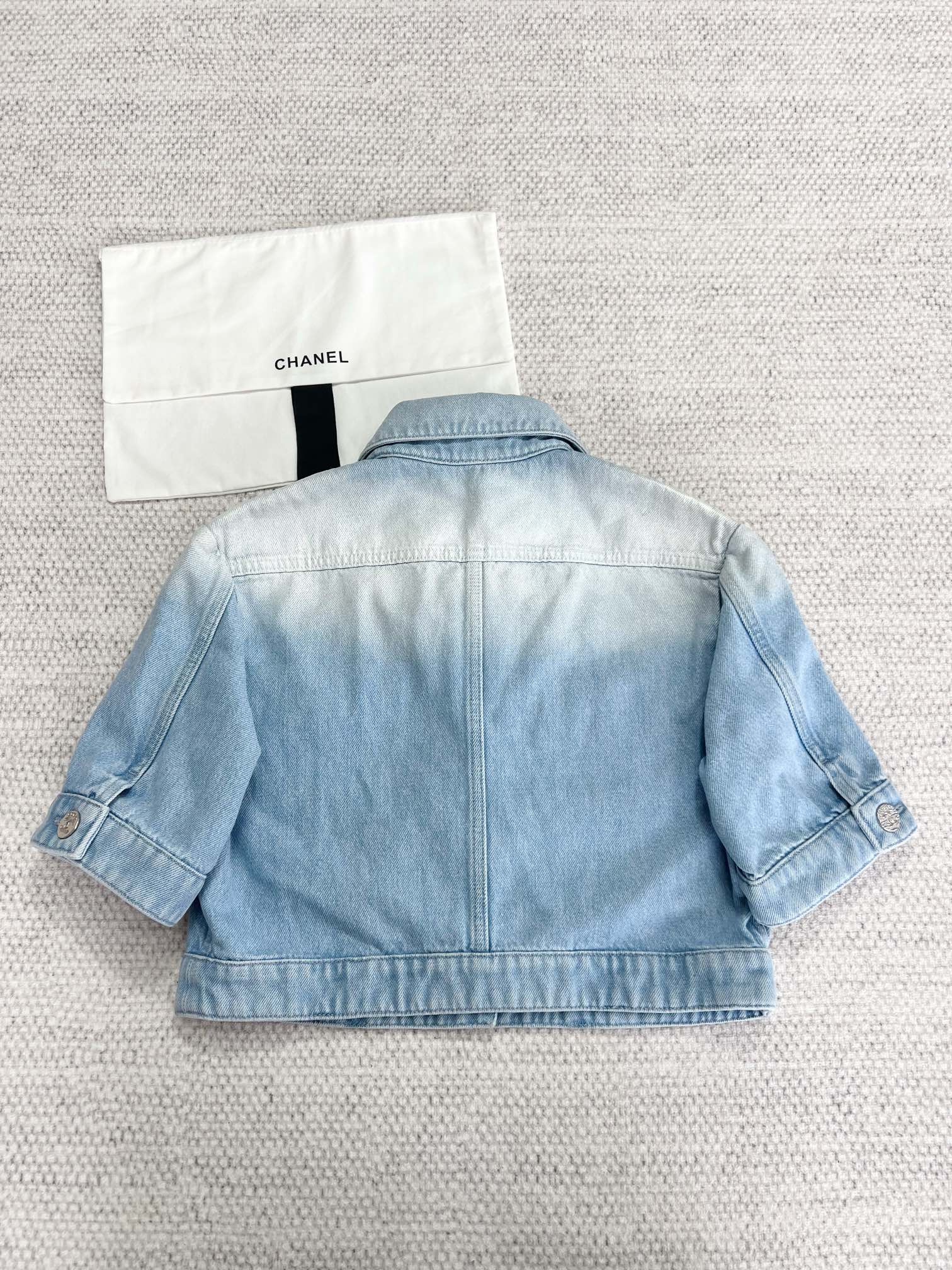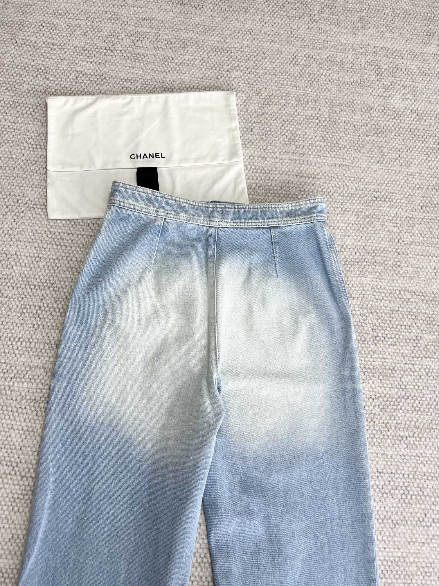 NIGO Chanel Women's Spring And Summer Blue Washed Lapel Single Breasted Short Short Sleeved Denim Jacket Casual Jeans Pants Suit Set #nigo76159
