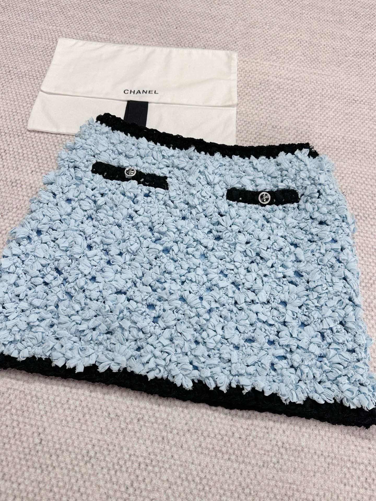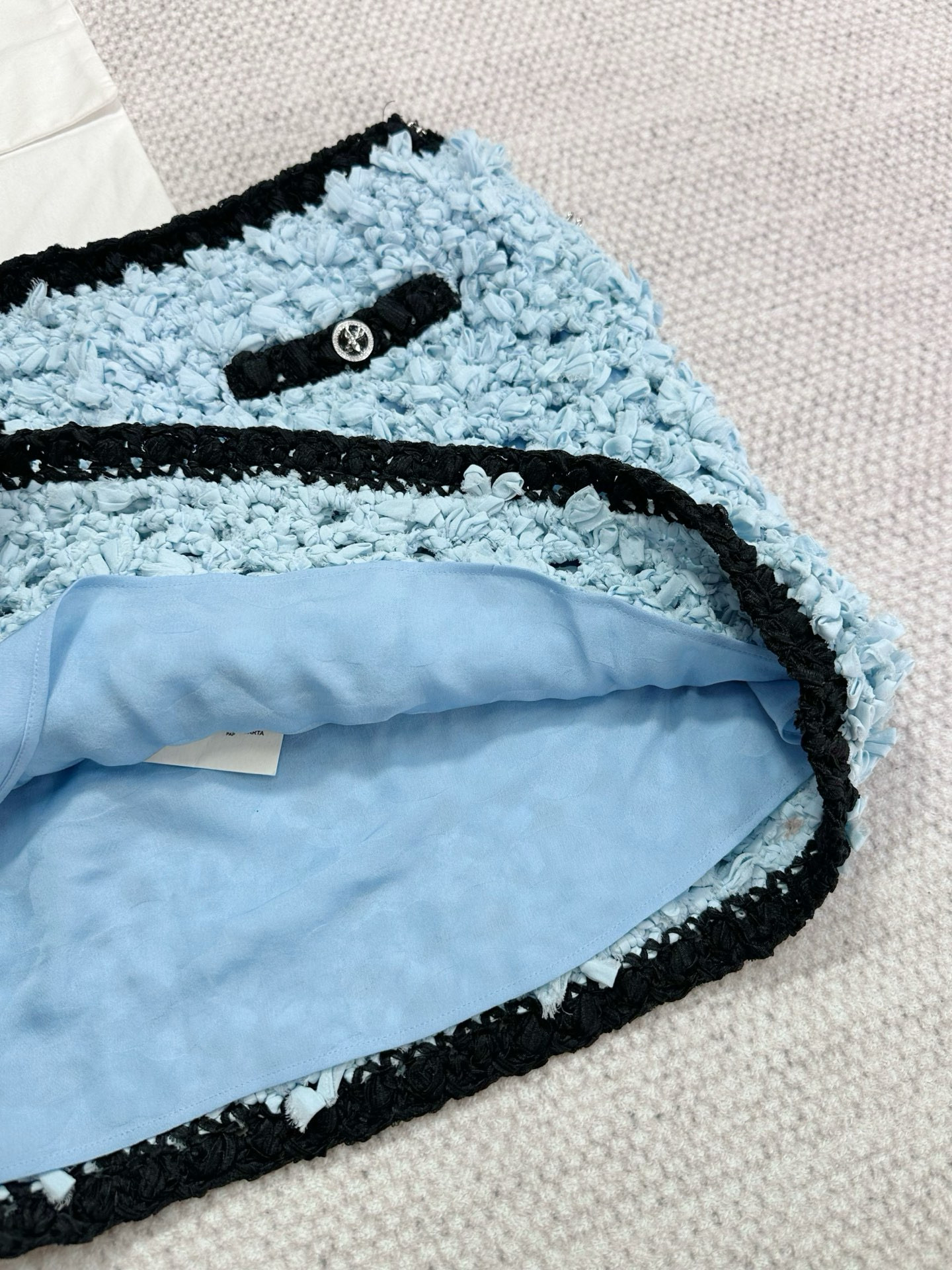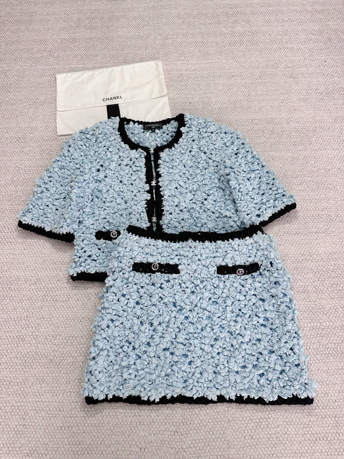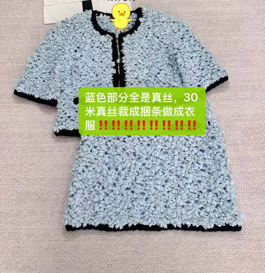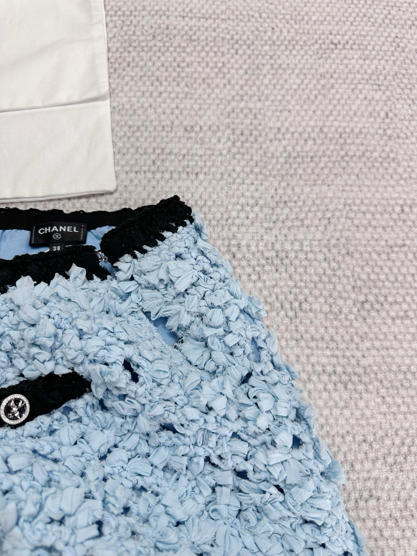 NIGO Chanel Women's Spring And Summer Luxury Silk Blue Jacket Temperament Elegant Fashion Round Neck Single-breasted Shirt T-shirt Bustier Skirt Suit Set Ngvp #nigo1716