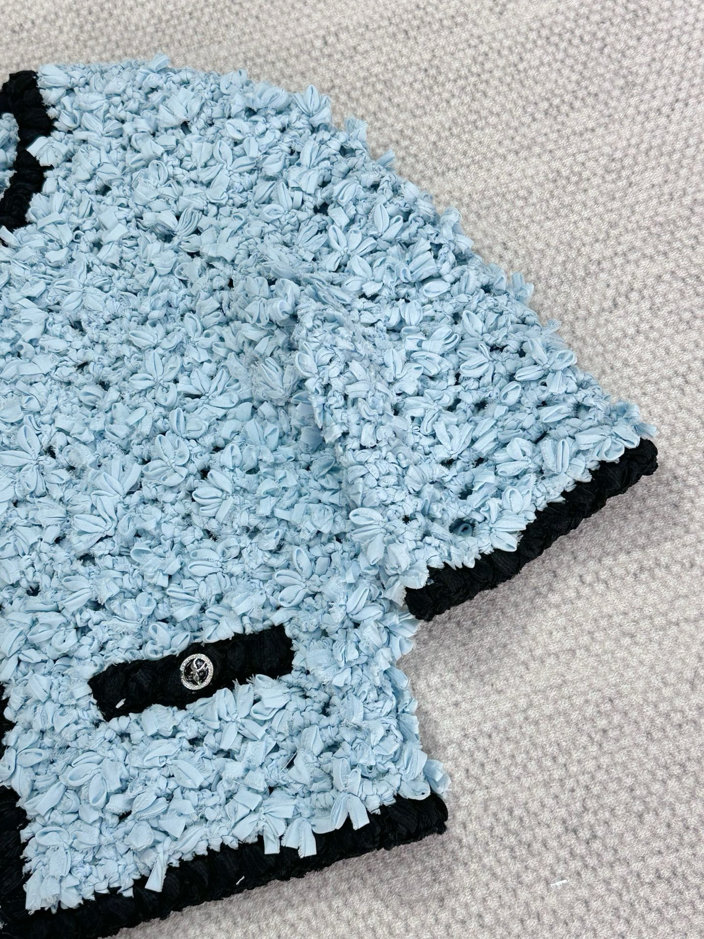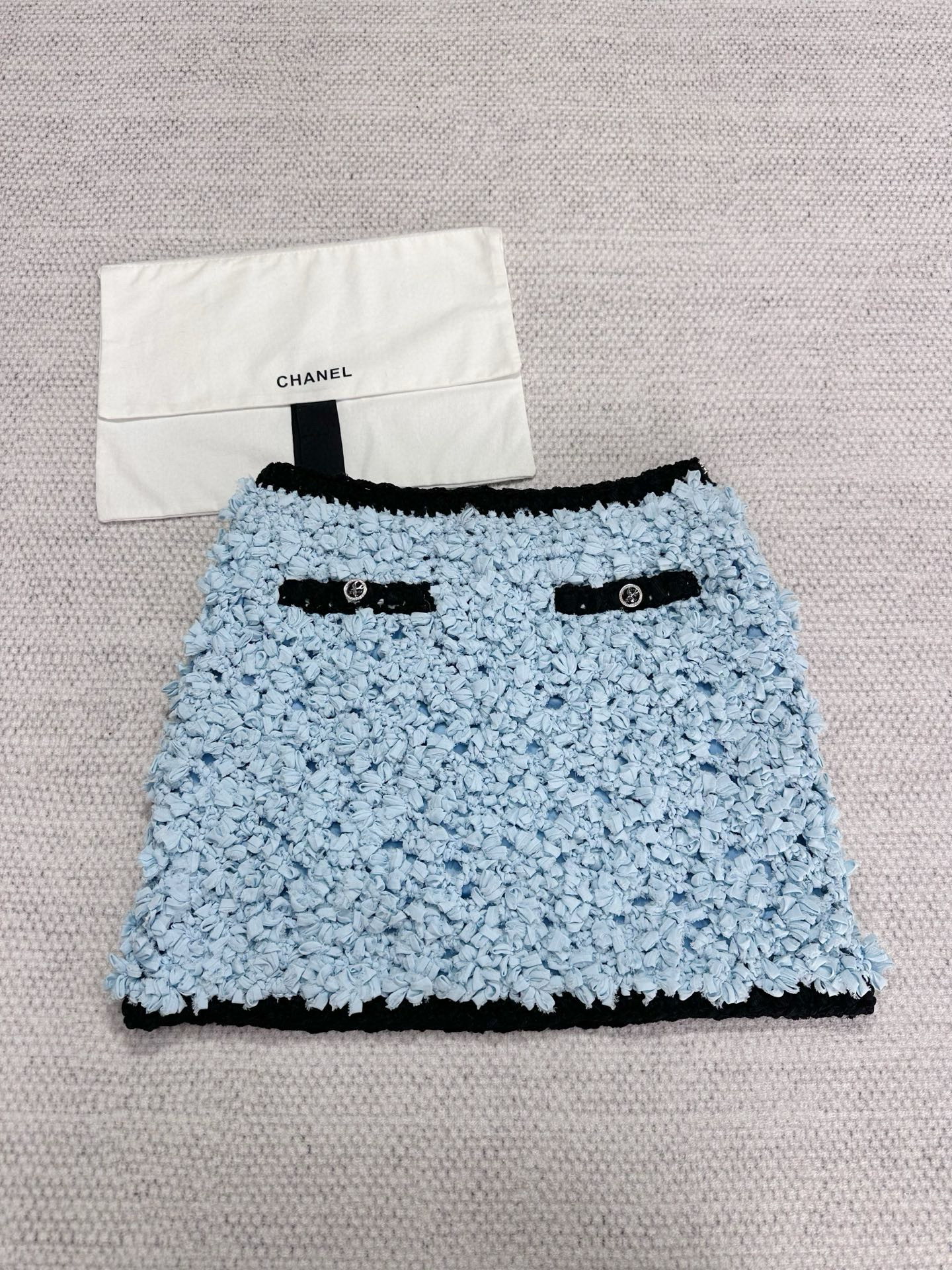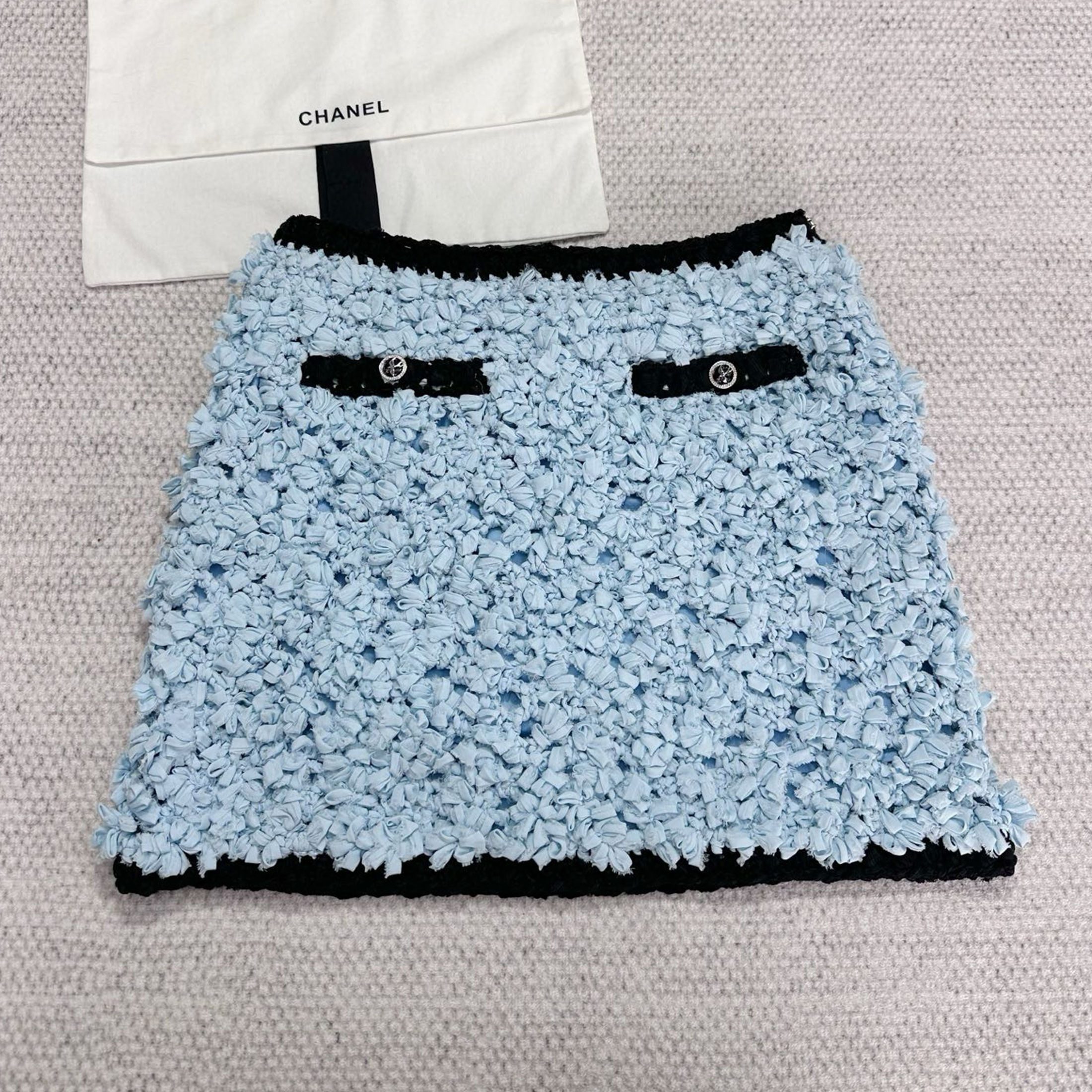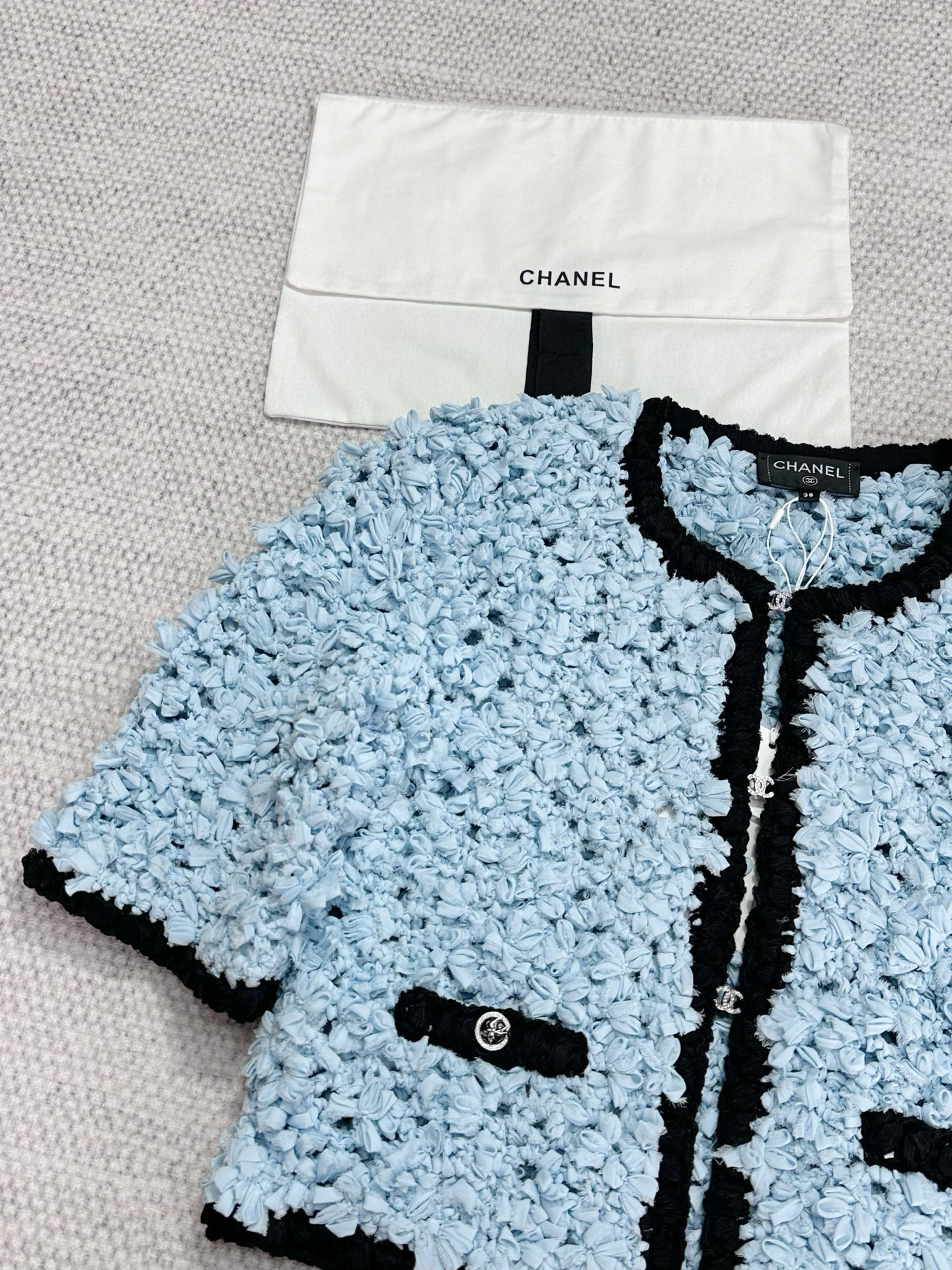 NIGO Chanel Women's Spring And Summer Luxury Silk Blue Jacket Temperament Elegant Fashion Round Neck Single-breasted Shirt T-shirt Bustier Skirt Suit Set Ngvp #nigo1716