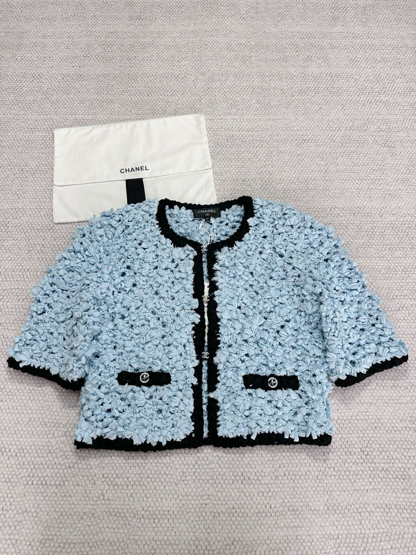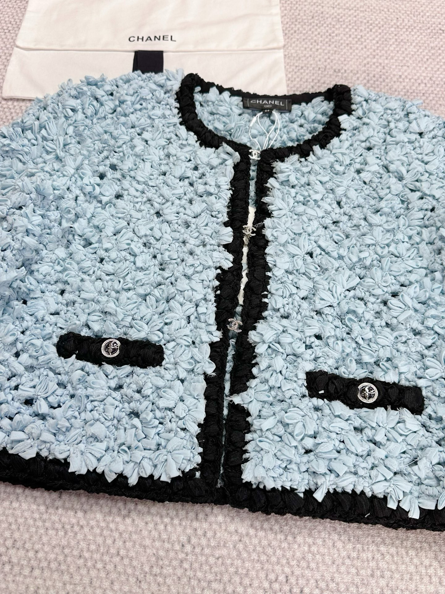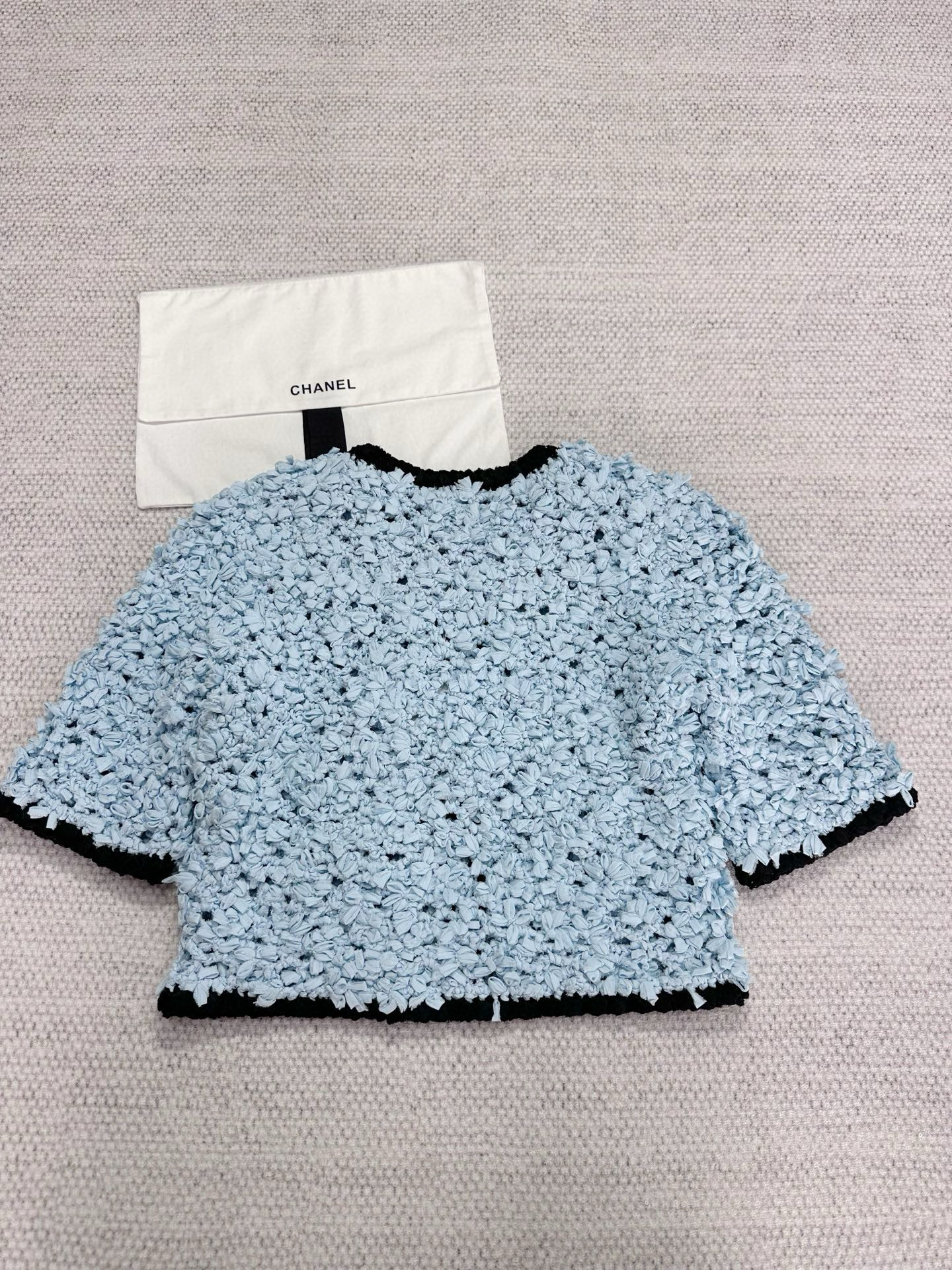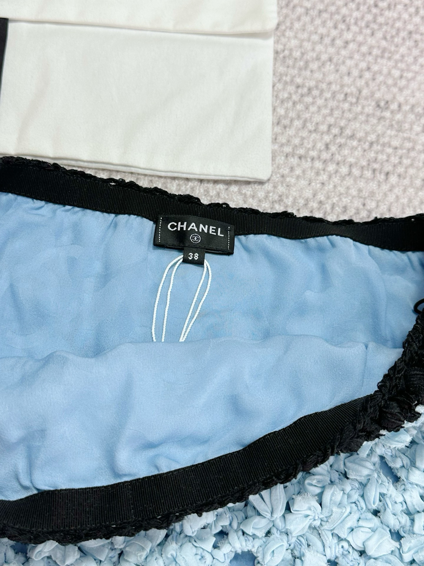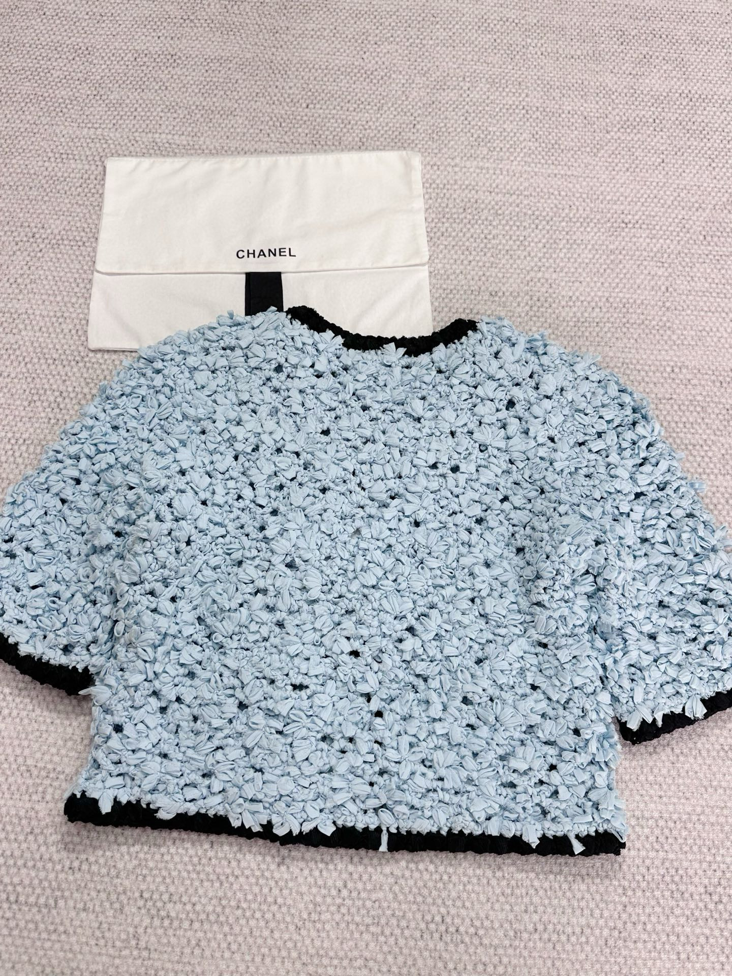 NIGO Chanel Women's Spring And Summer Luxury Silk Blue Jacket Temperament Elegant Fashion Round Neck Single-breasted Shirt T-shirt Bustier Skirt Suit Set Ngvp #nigo1716