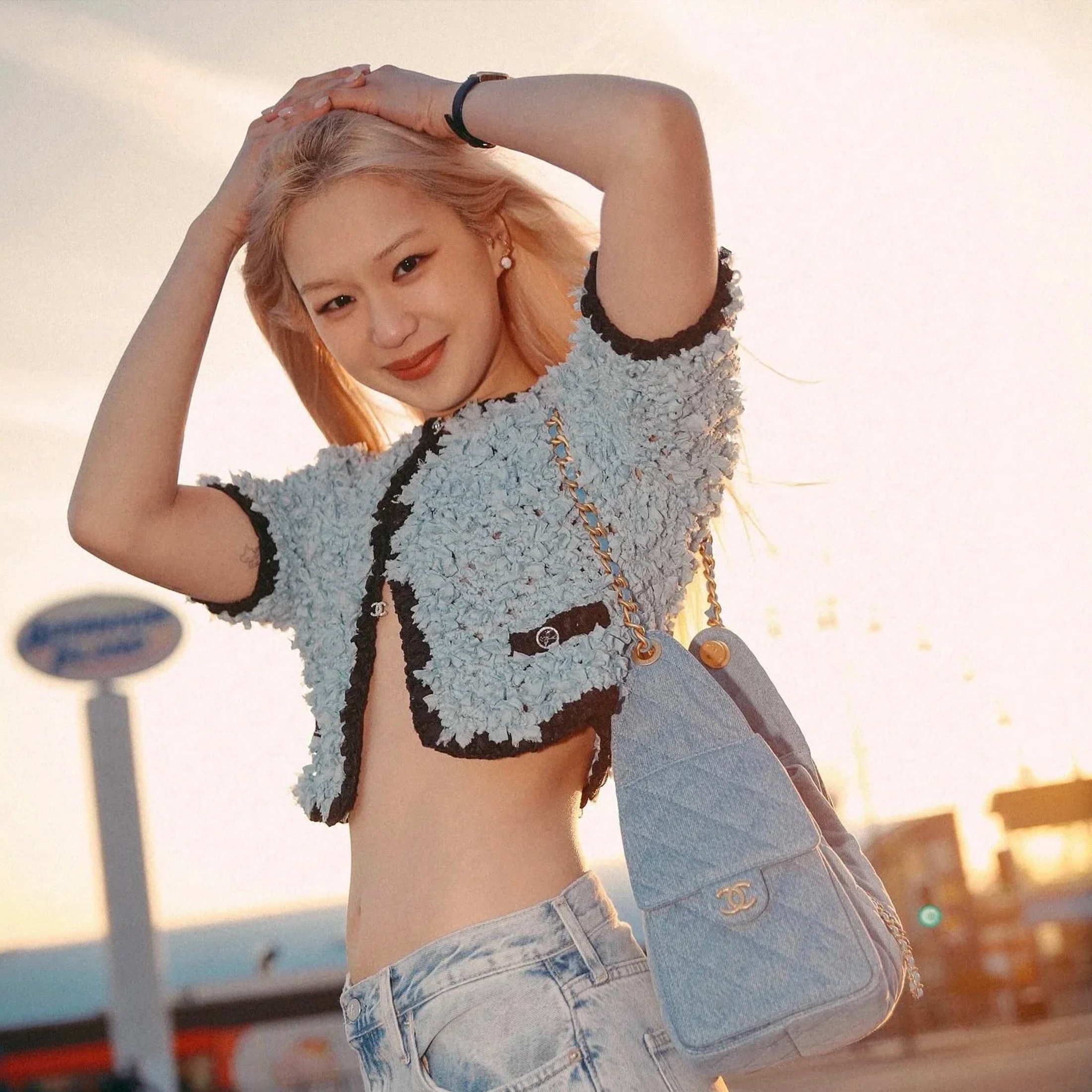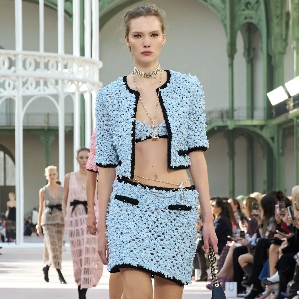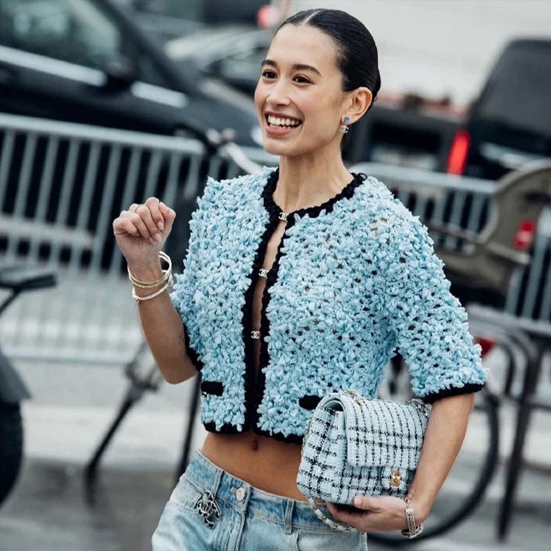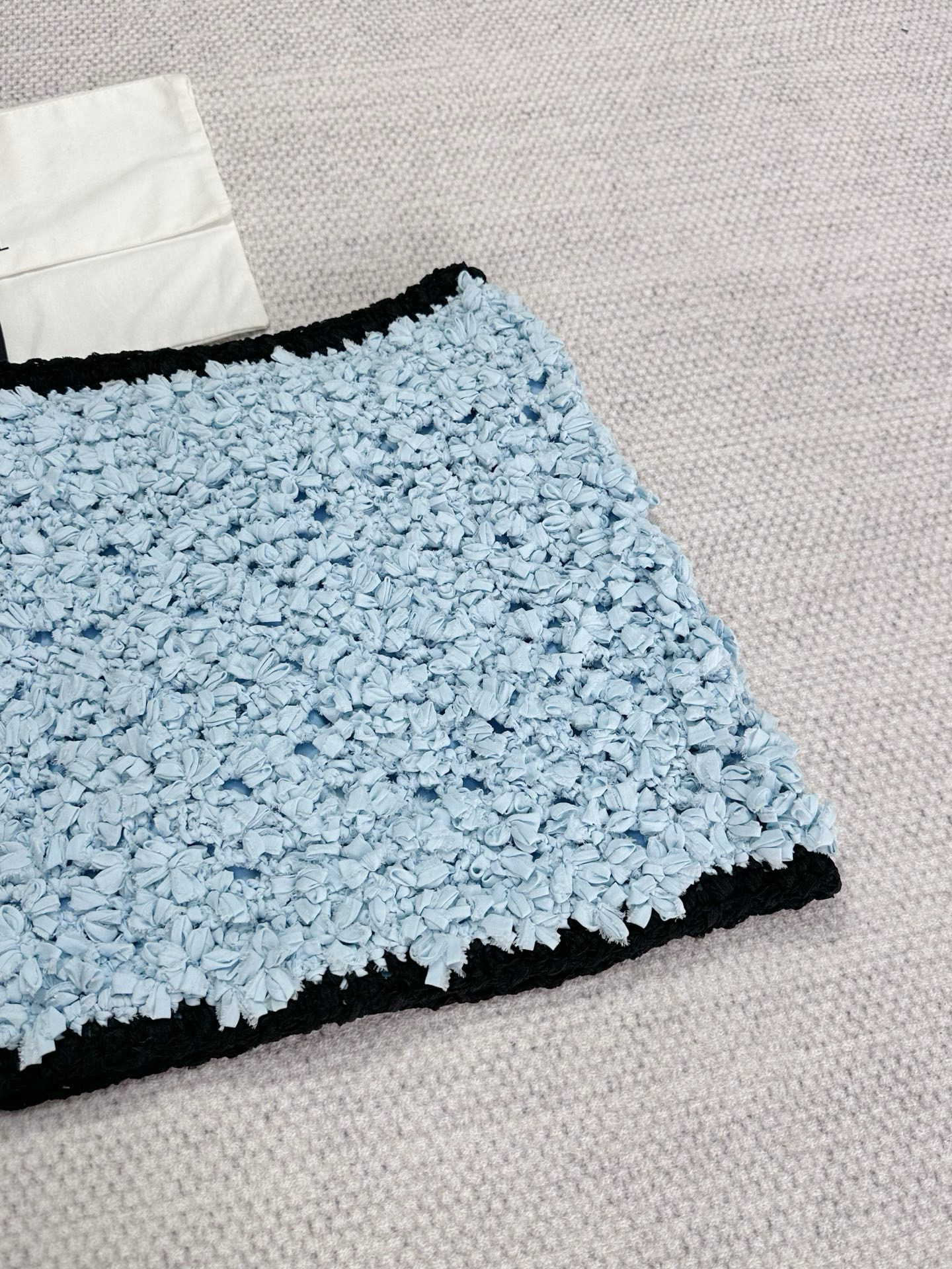 NIGO Chanel Women's Spring And Summer Luxury Silk Blue Jacket Temperament Elegant Fashion Round Neck Single-breasted Shirt T-shirt Bustier Skirt Suit Set Ngvp #nigo1716