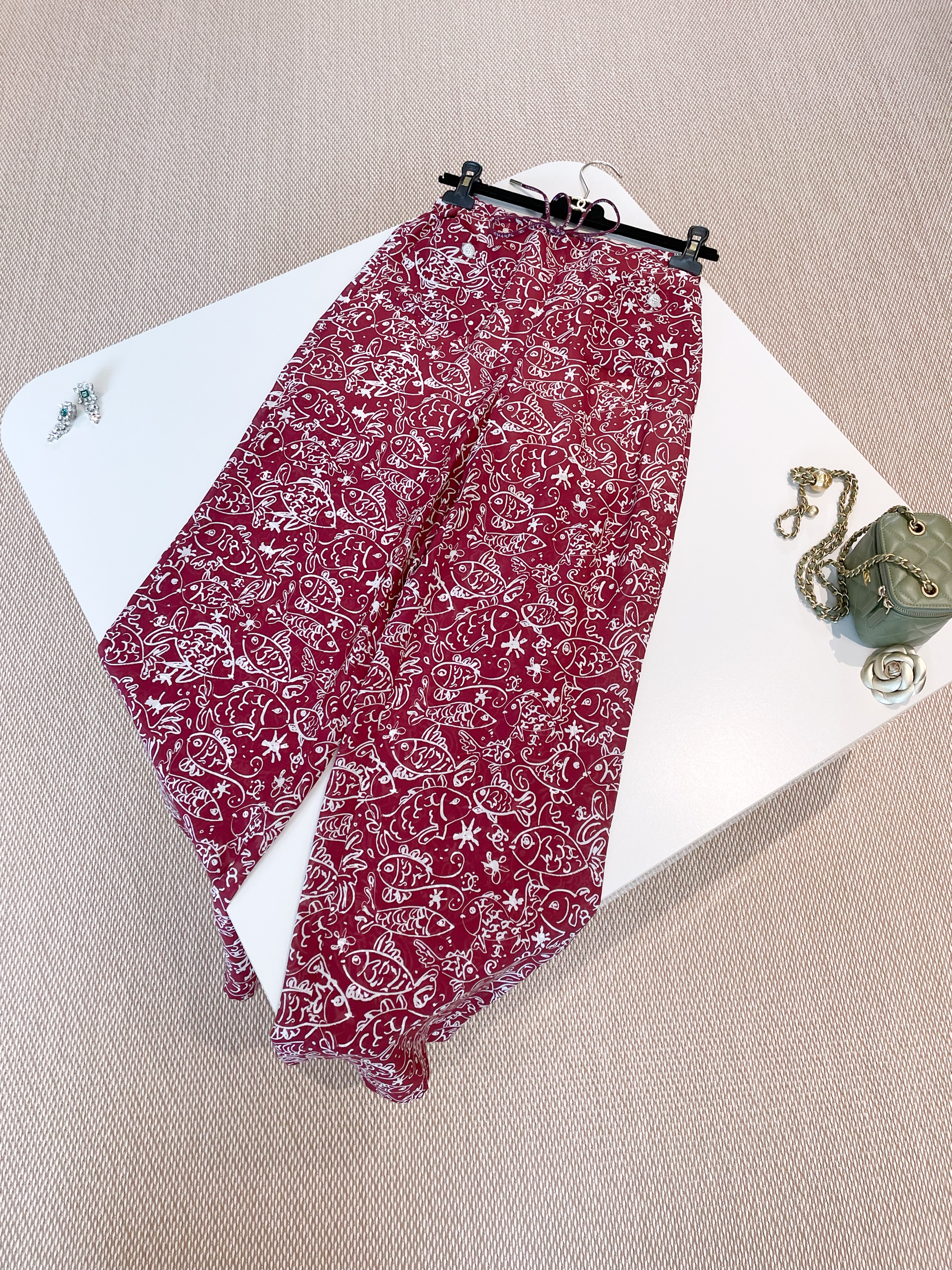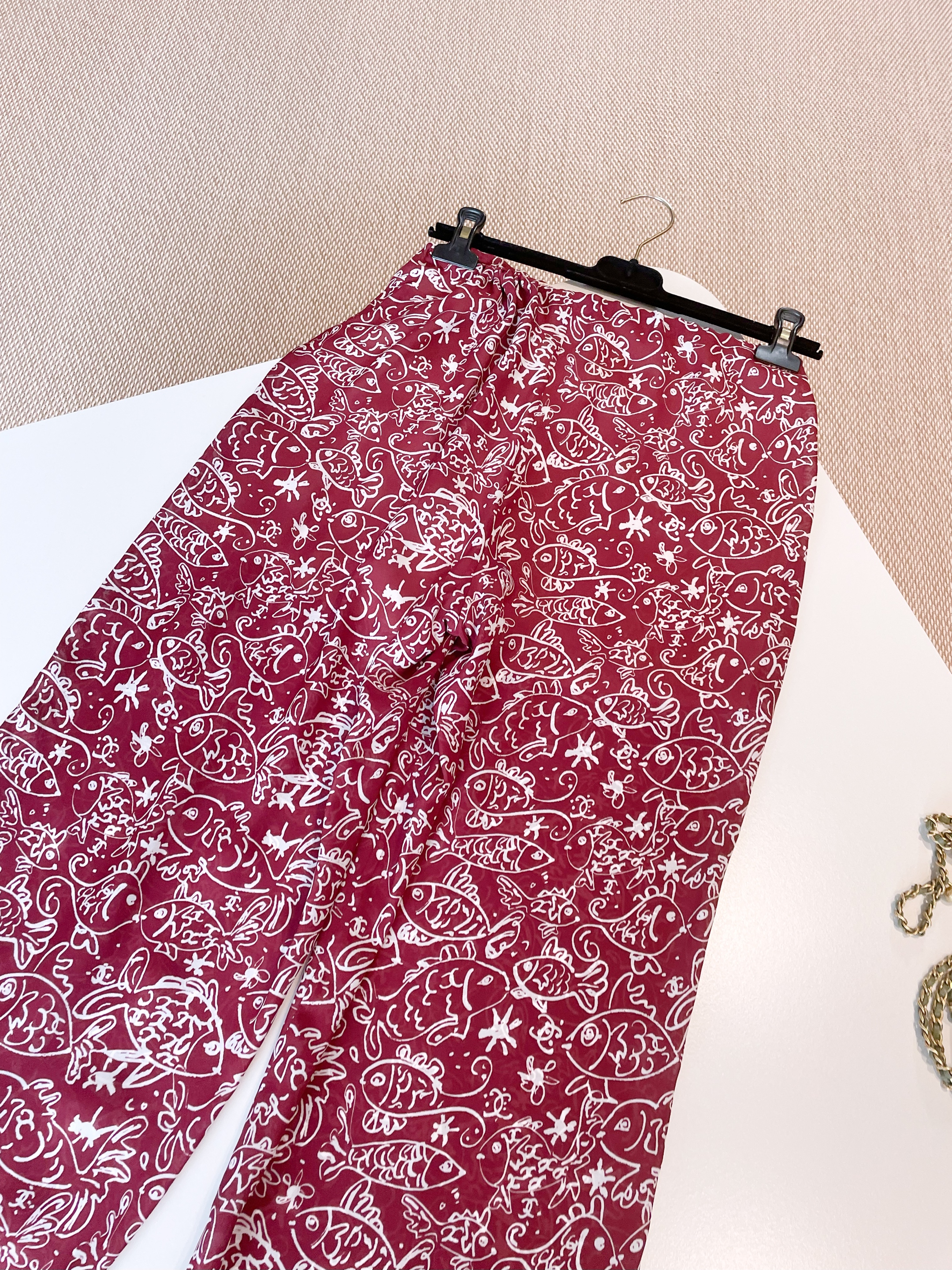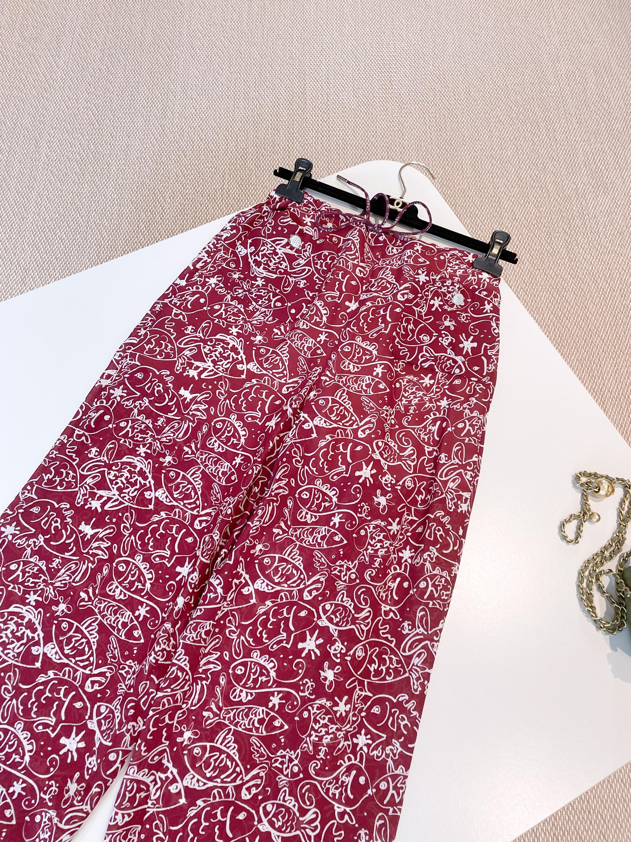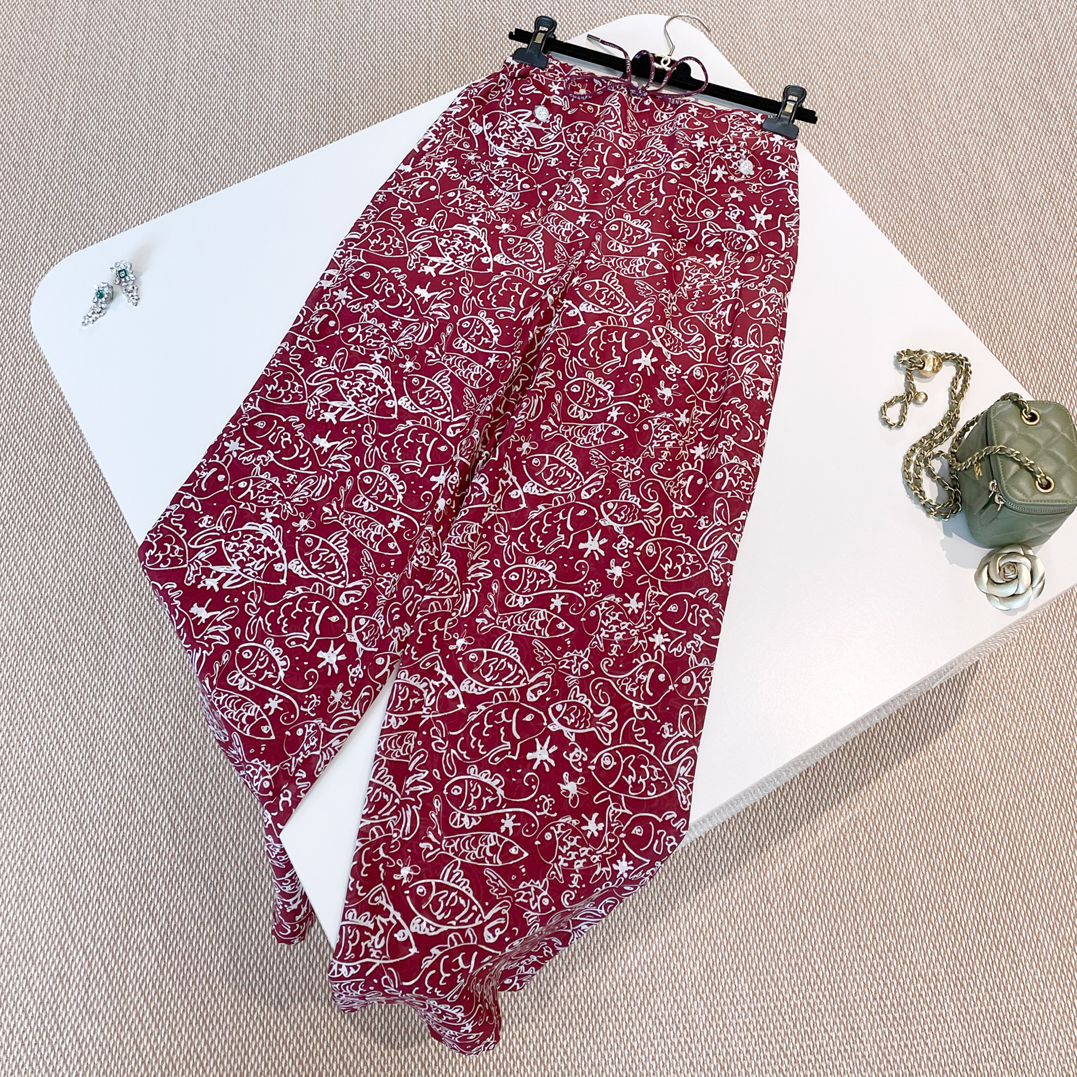 NIGO Chanel Women's Spring And Summer Printing Small Fish Silk Two-piece Drawstring Casual Shirt Straight Trousers Fashion Temperament Comfortable Suit Set Ngvp #nigo1334